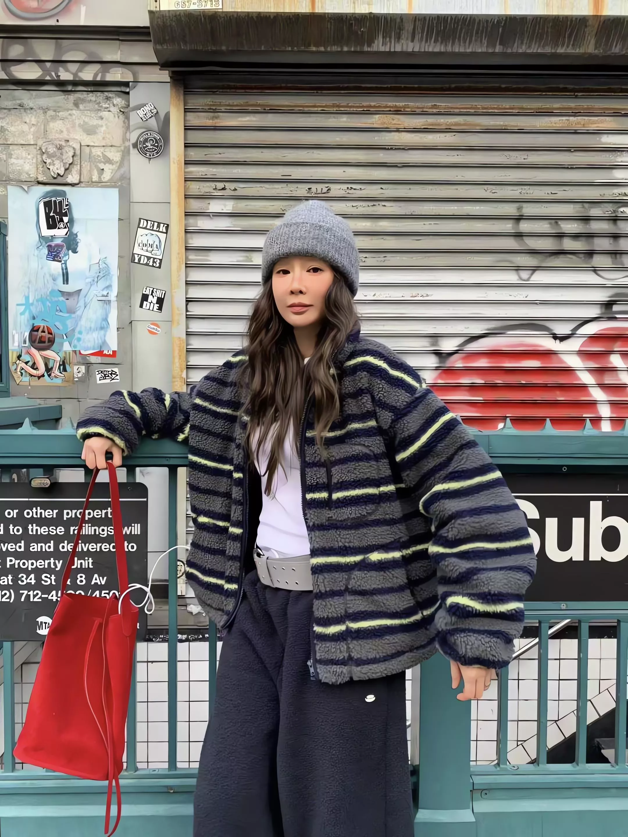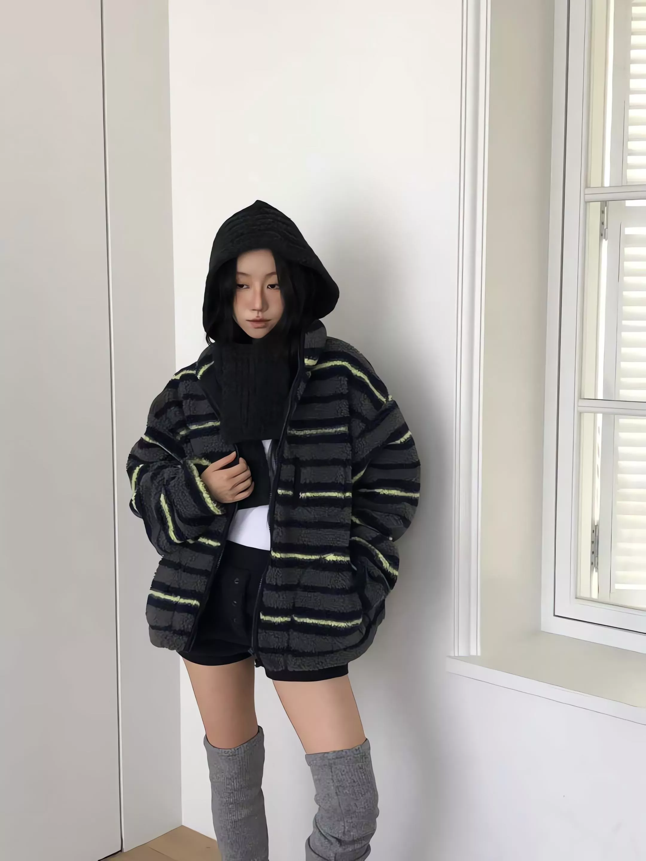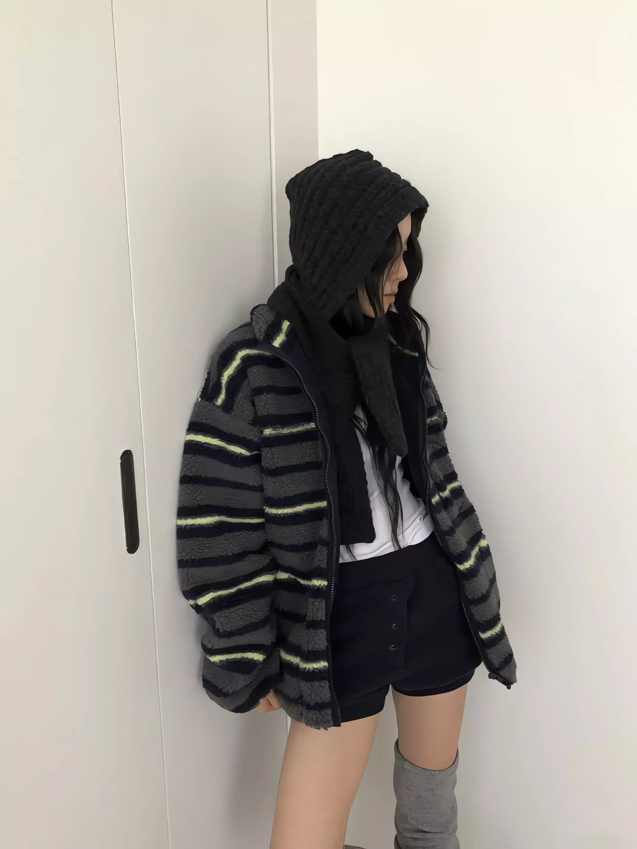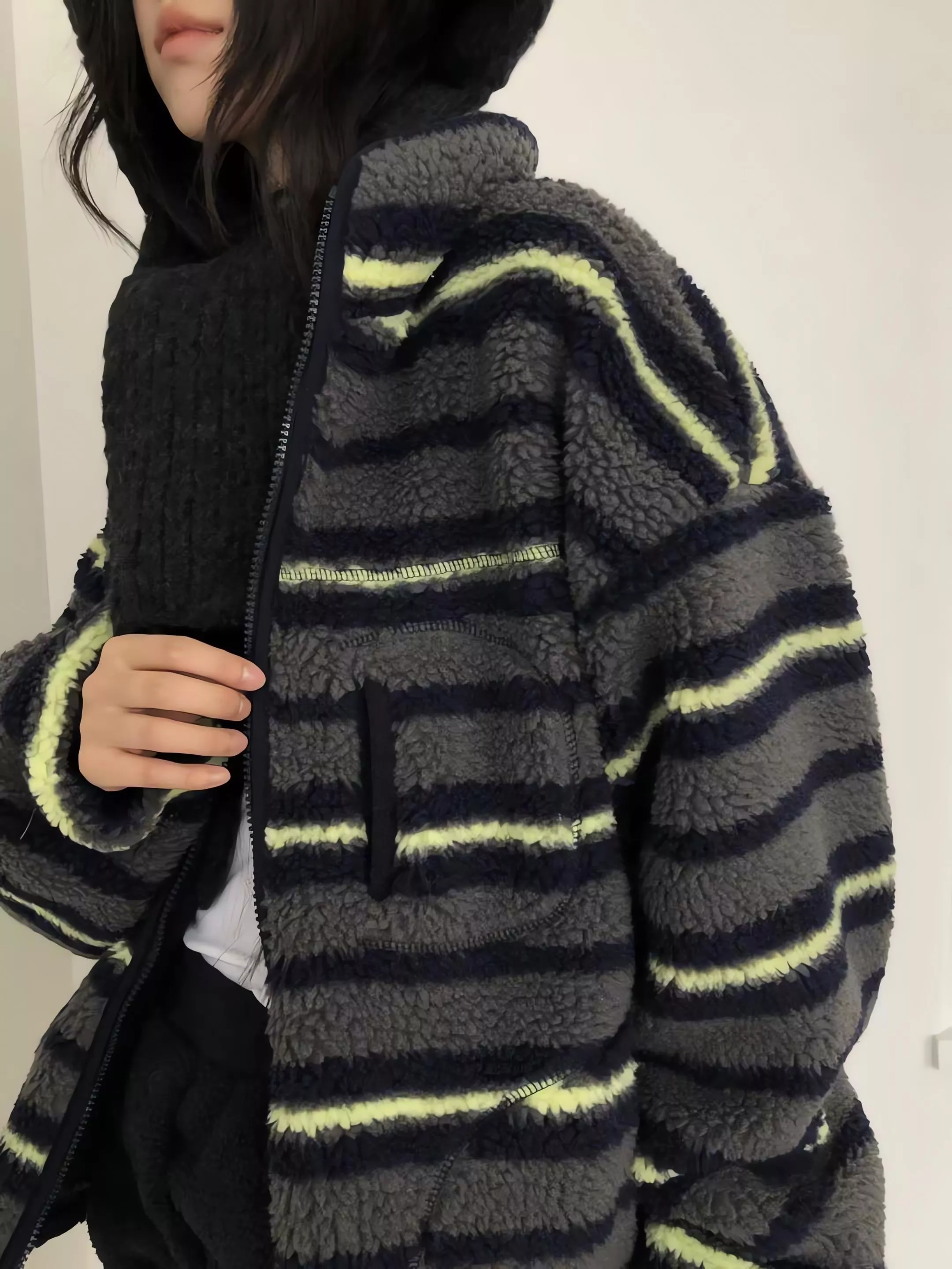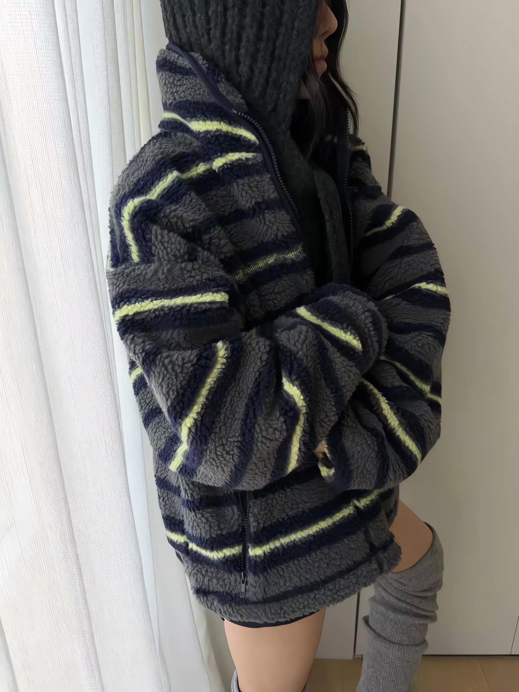 Tom Girl 雙面搖粒絨條紋極暖外套