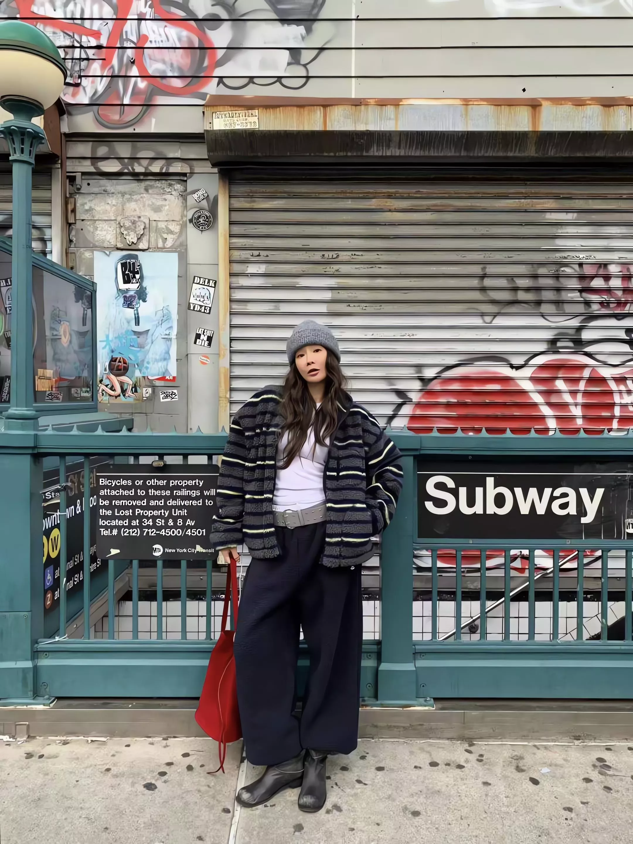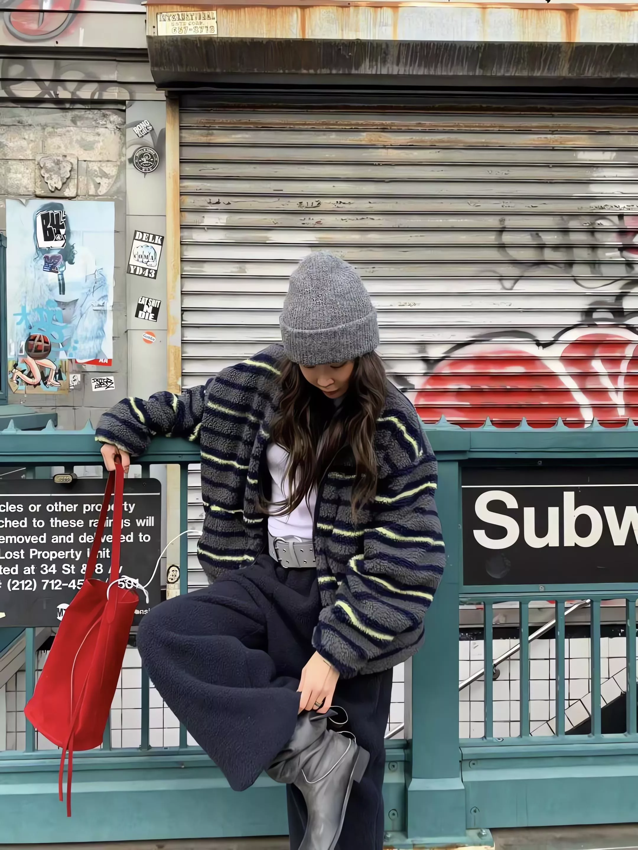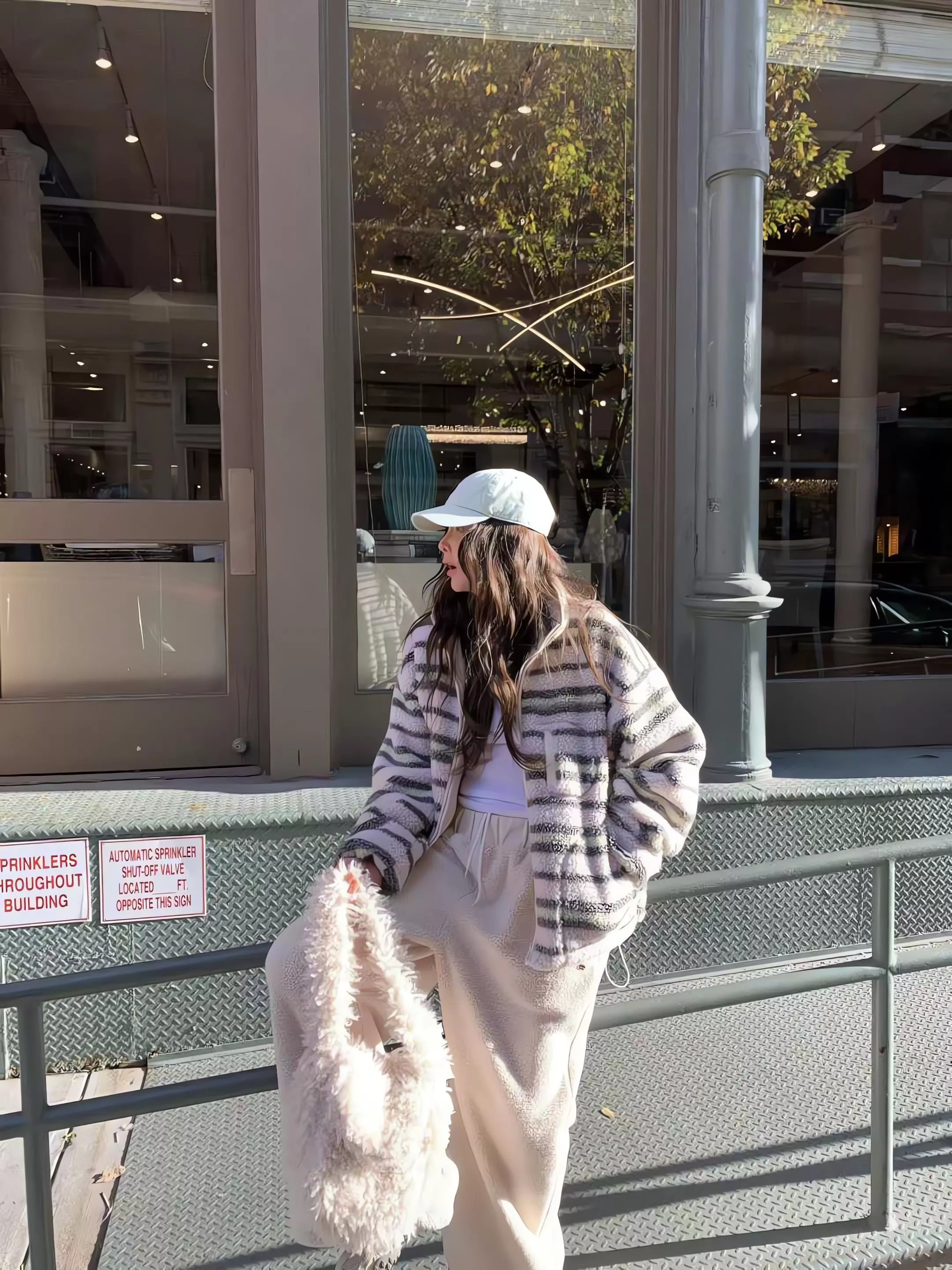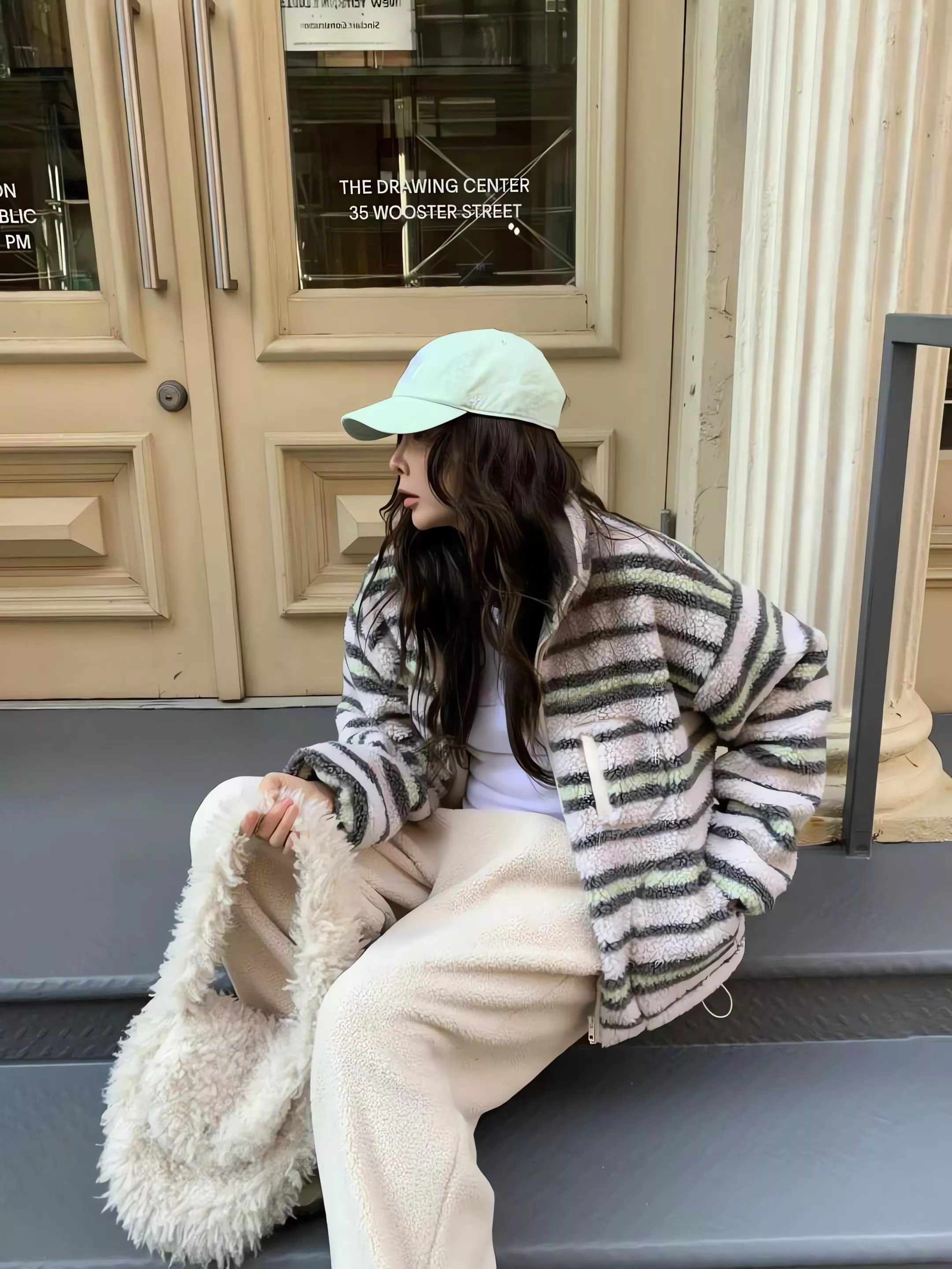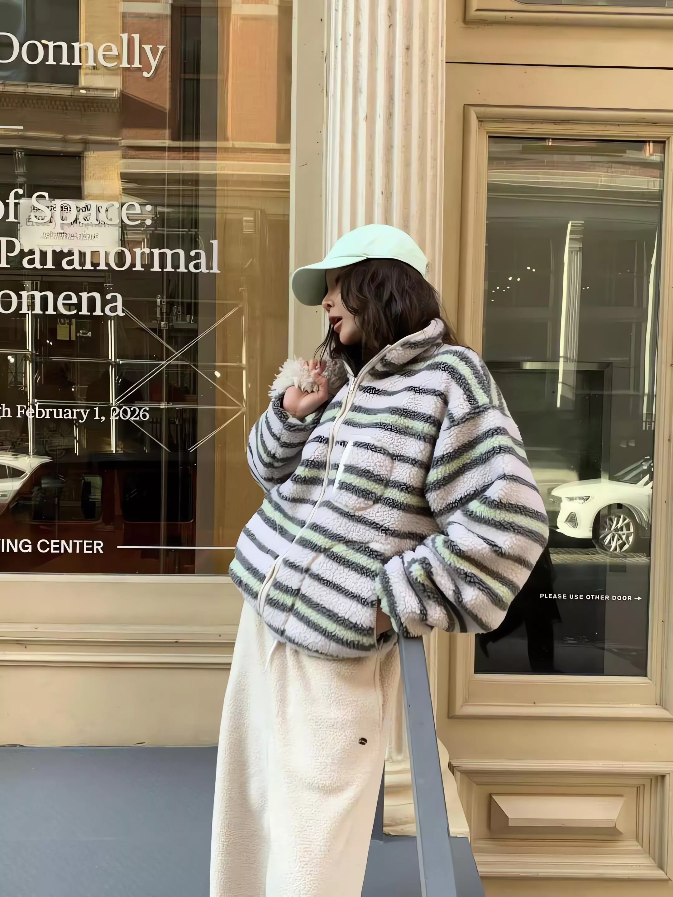Tom Girl 雙面搖粒絨條紋極暖外套