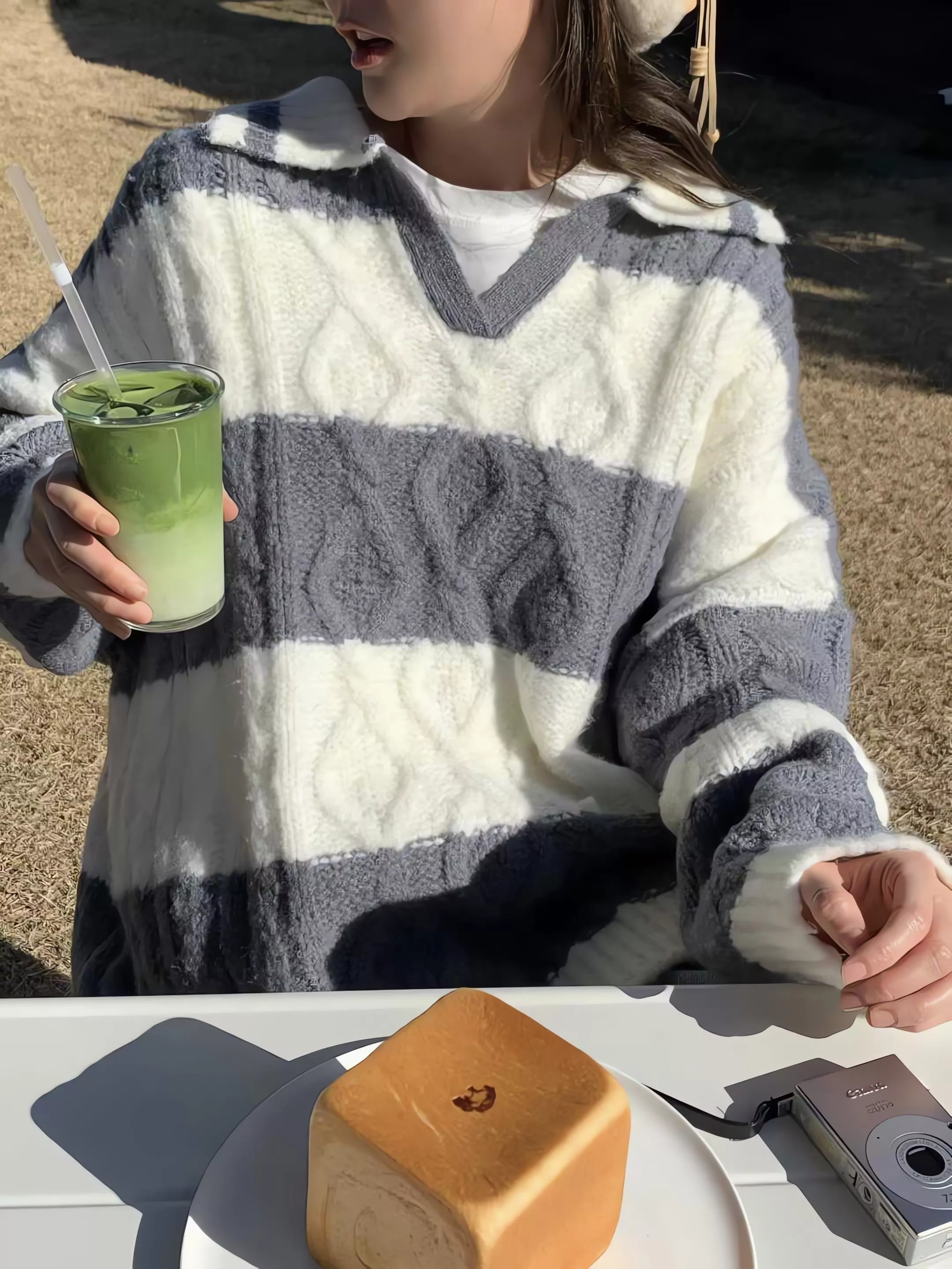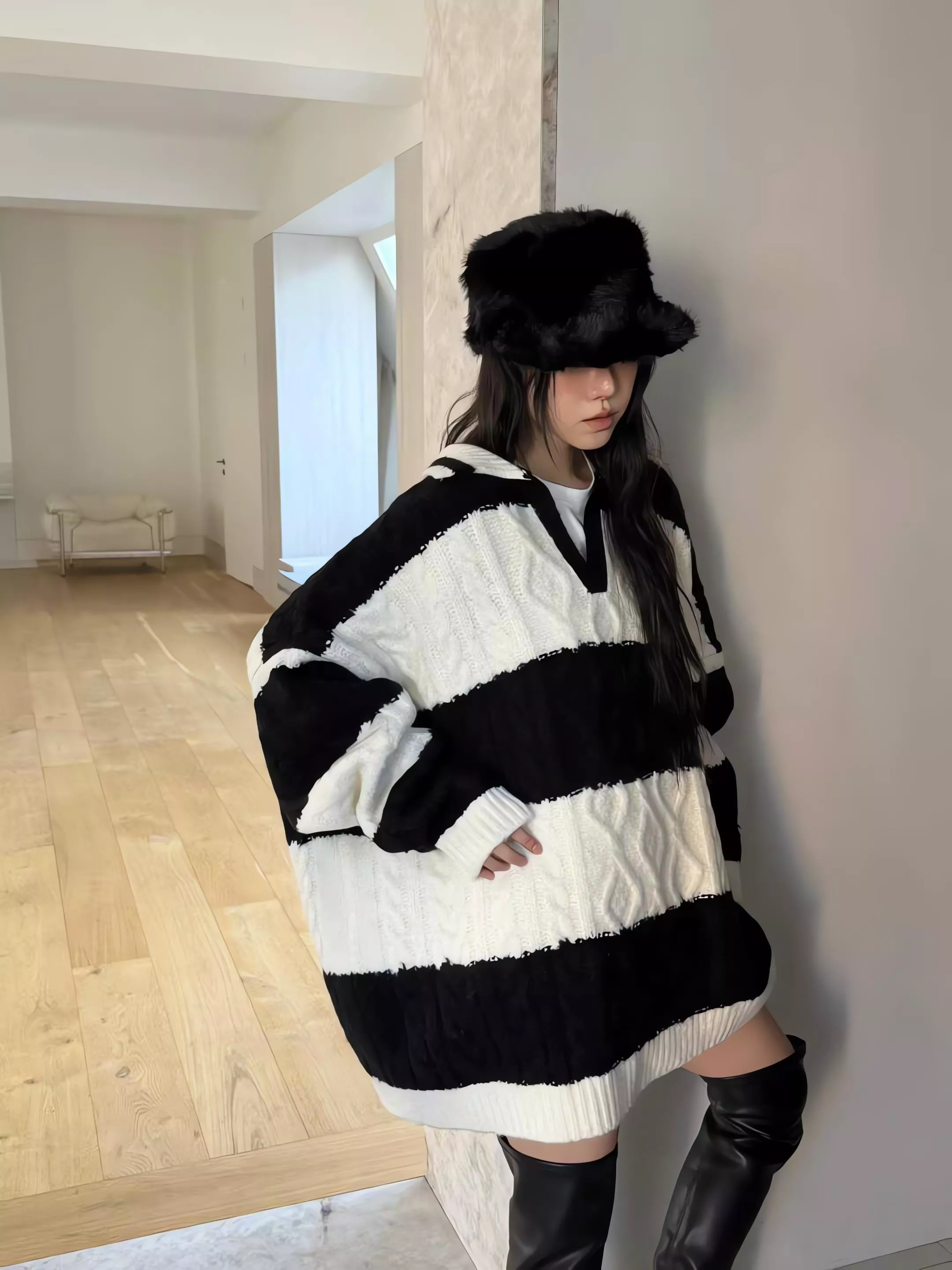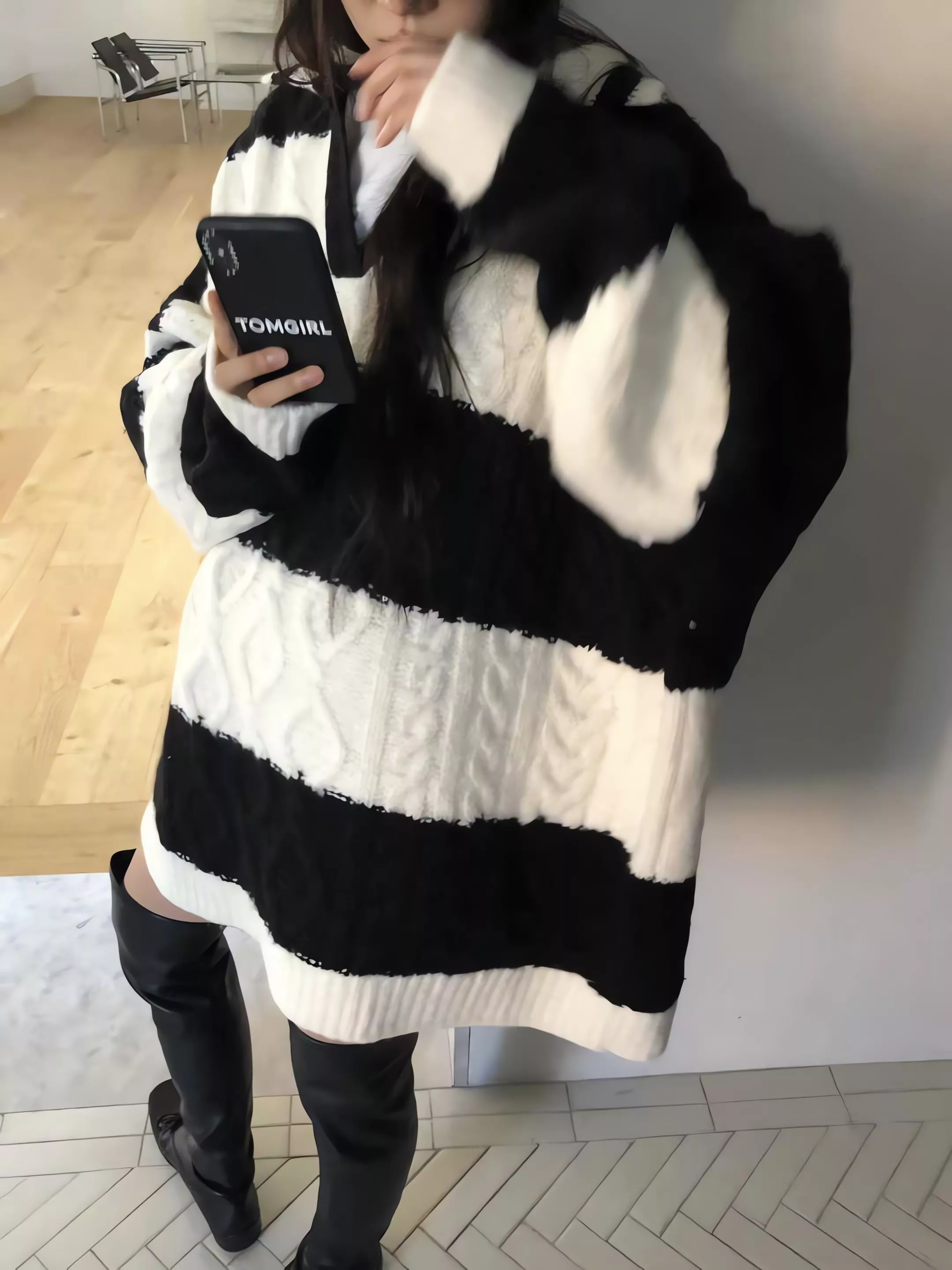 Tom Girl 條紋麻花長版羊毛針織衫