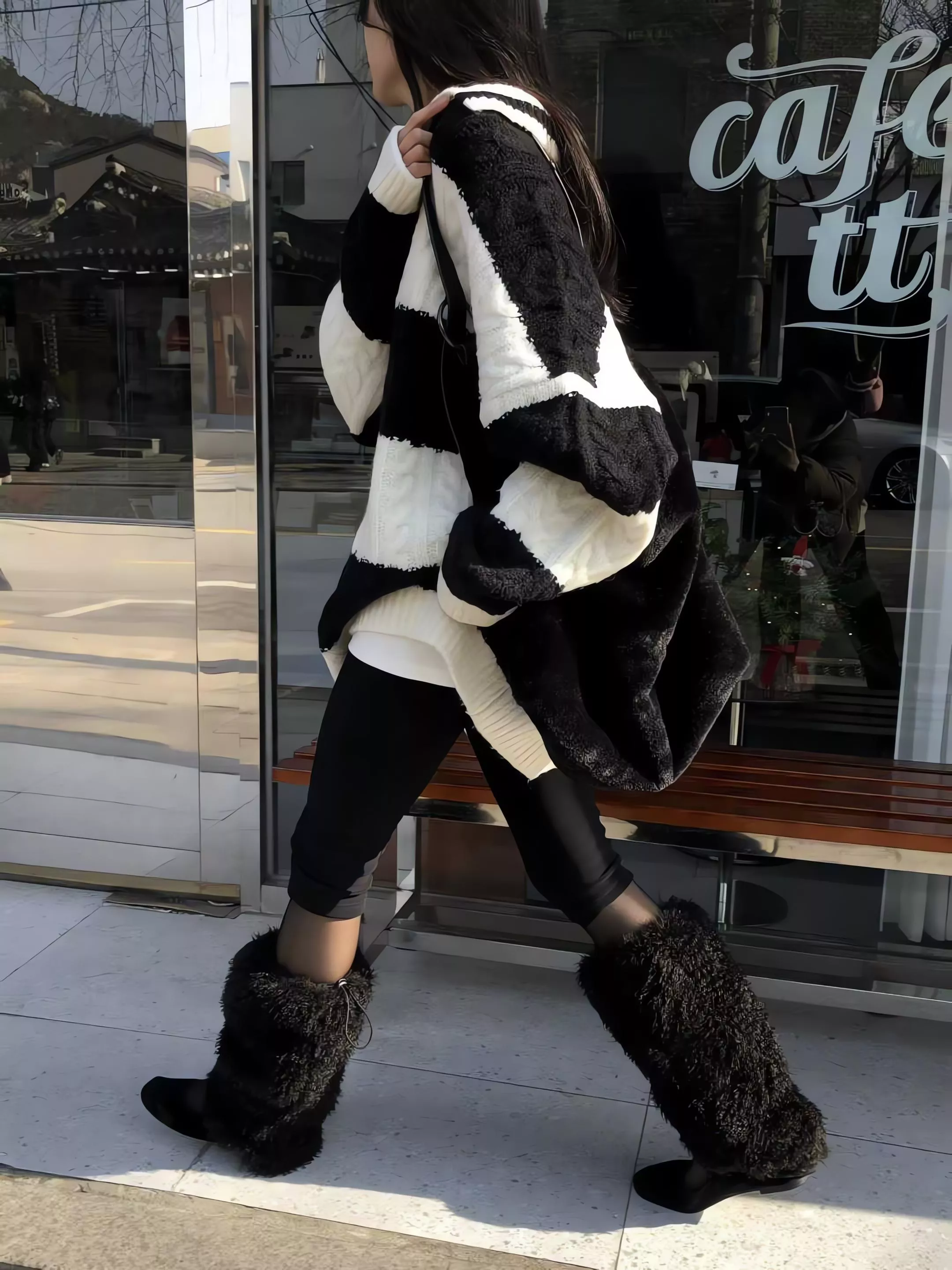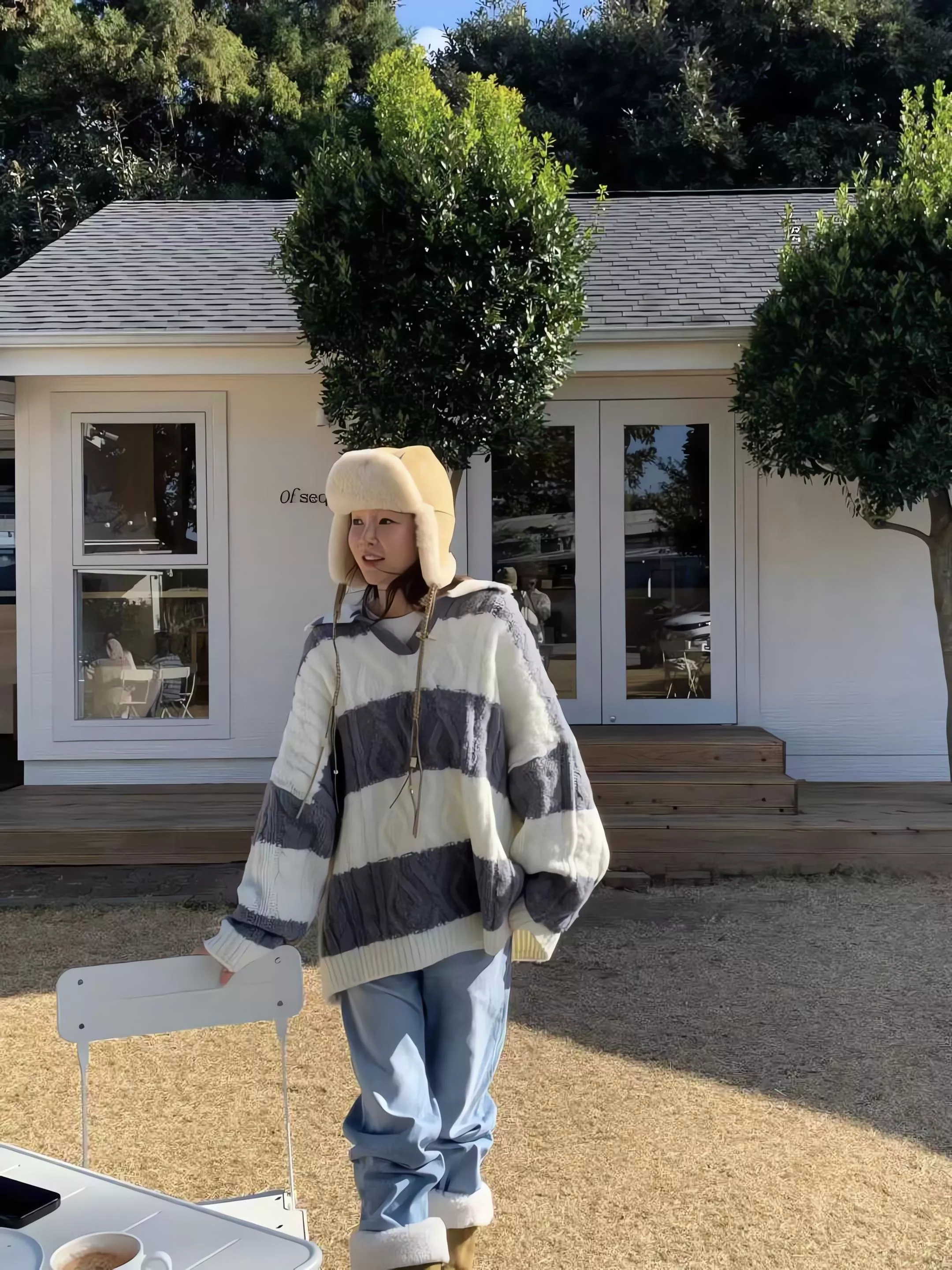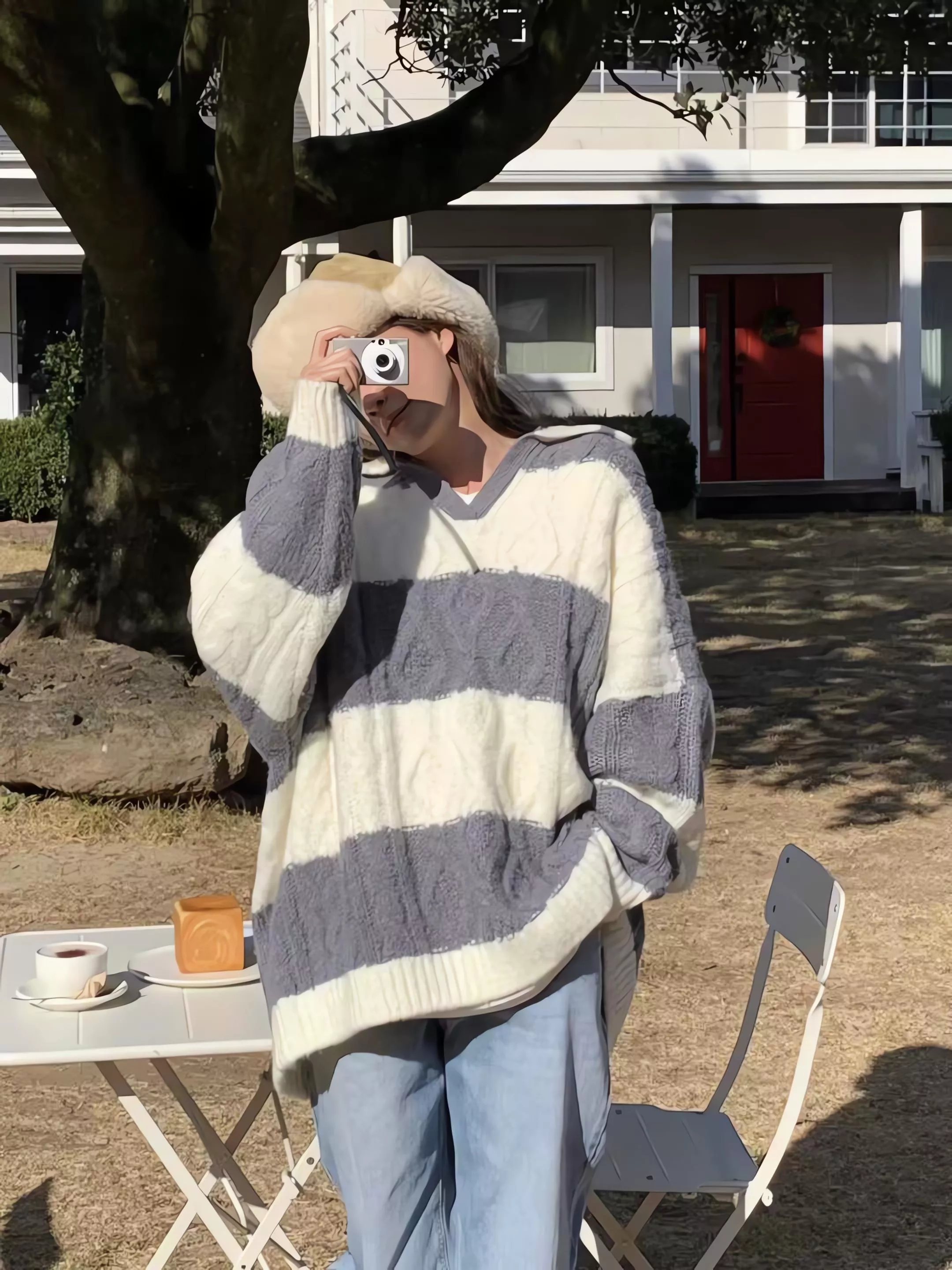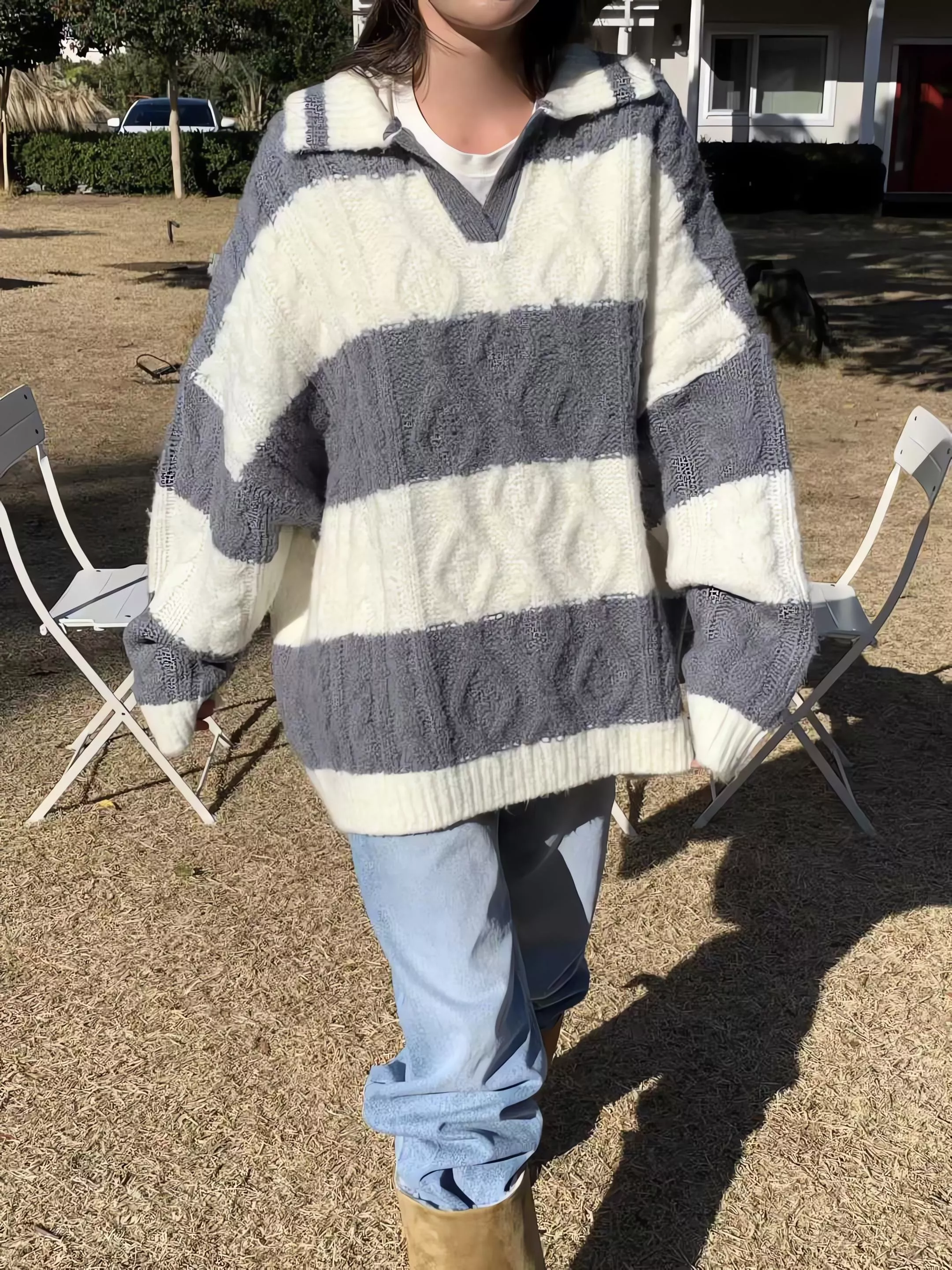 Tom Girl 條紋麻花長版羊毛針織衫