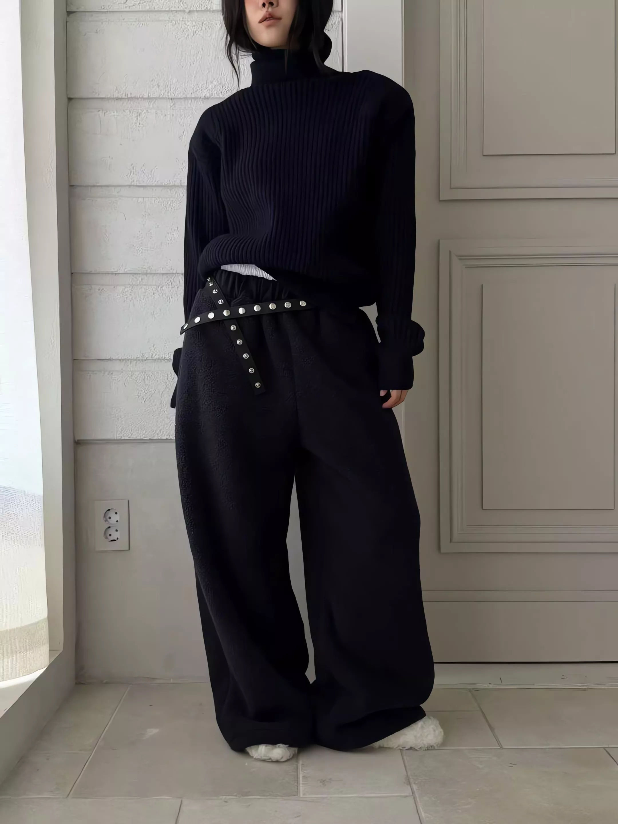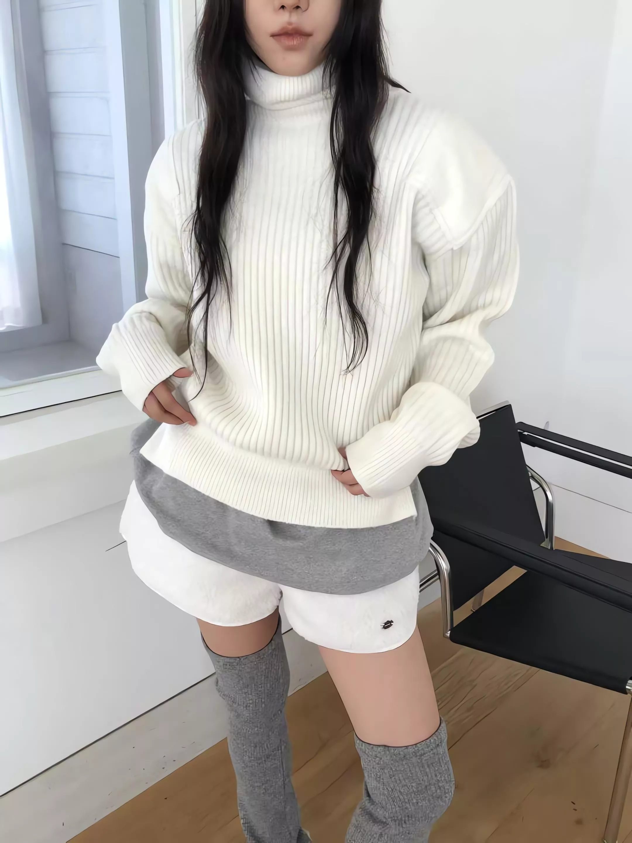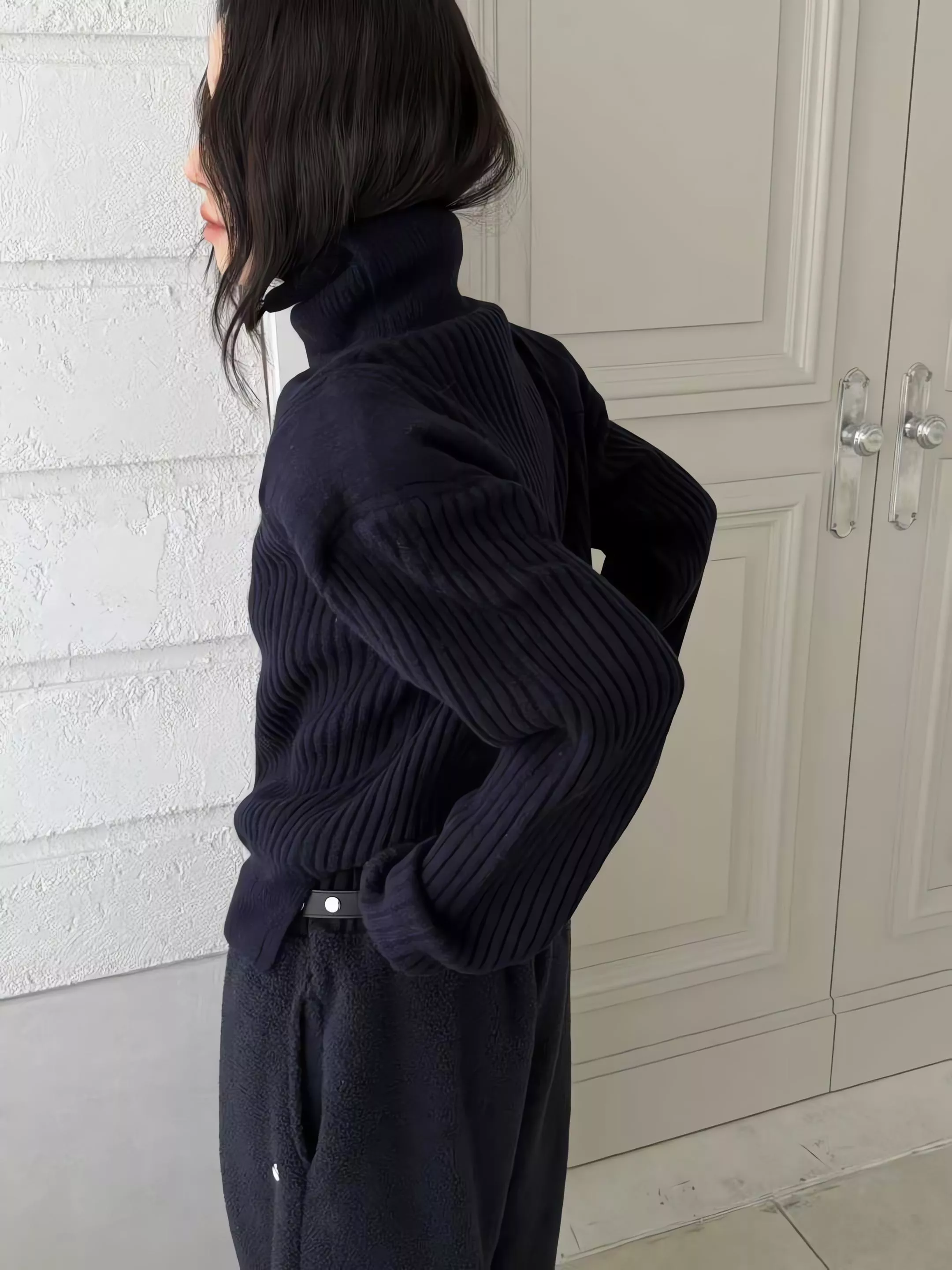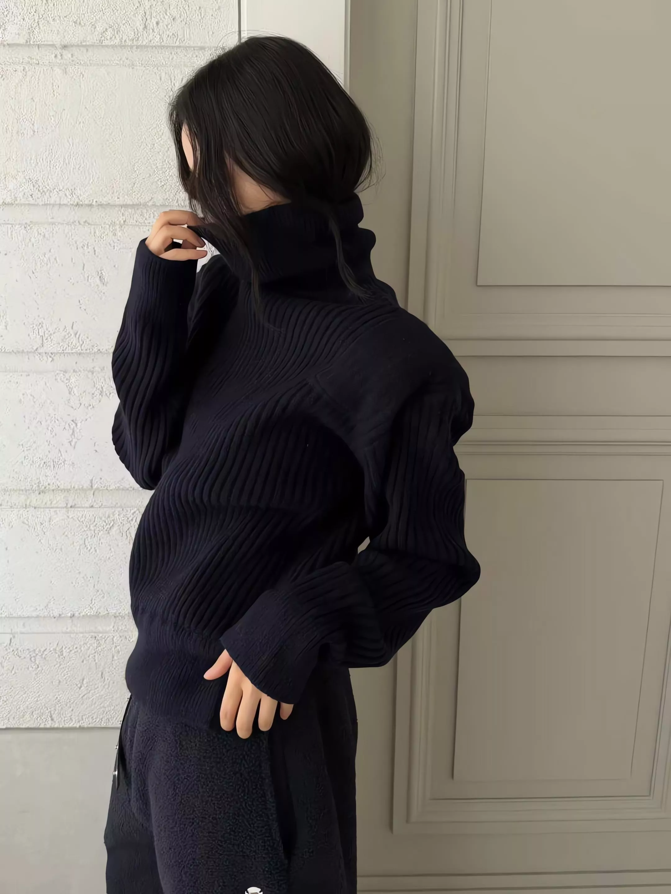 Tom Girl 彈性羅紋高領羊毛針織衫