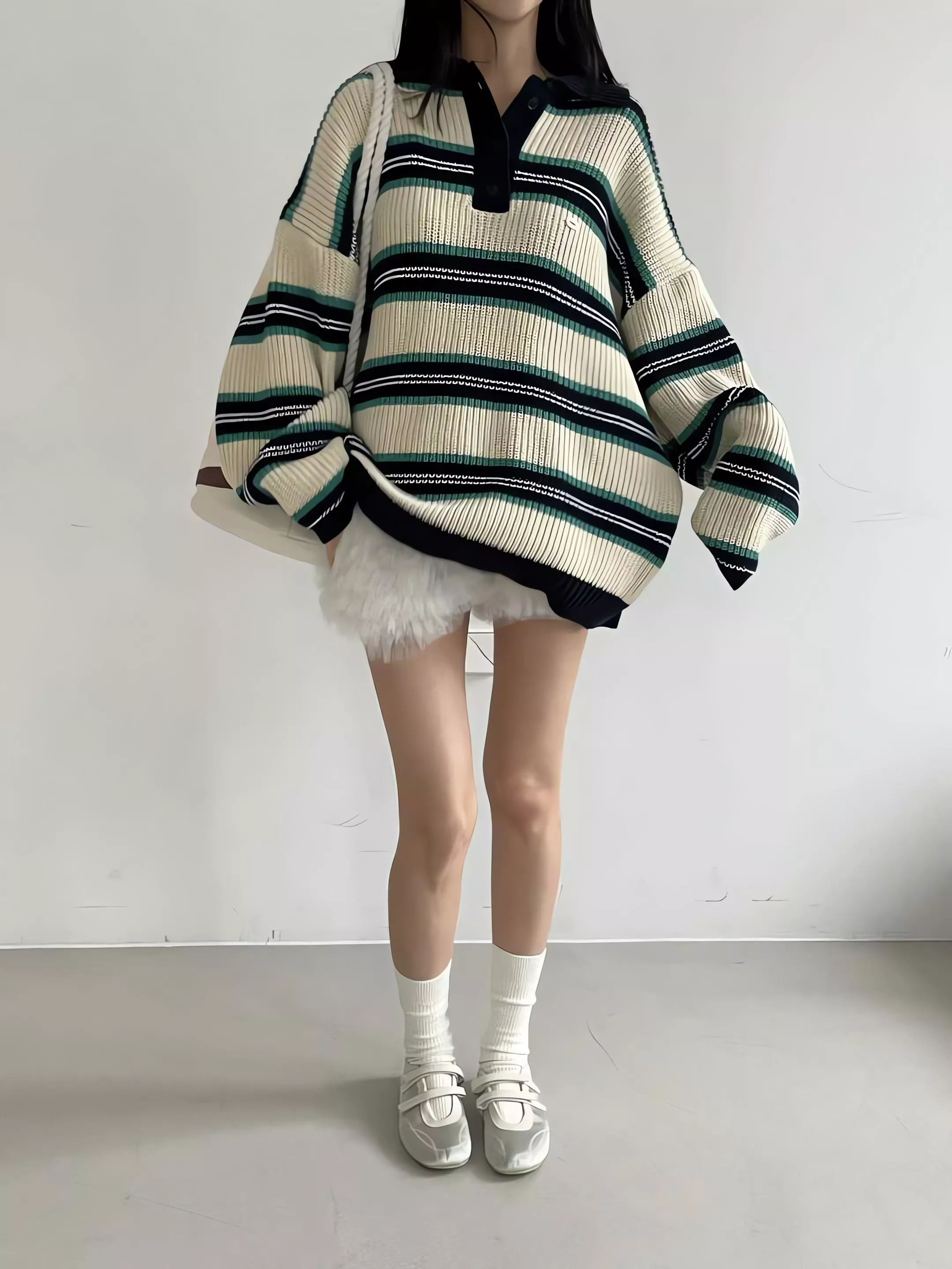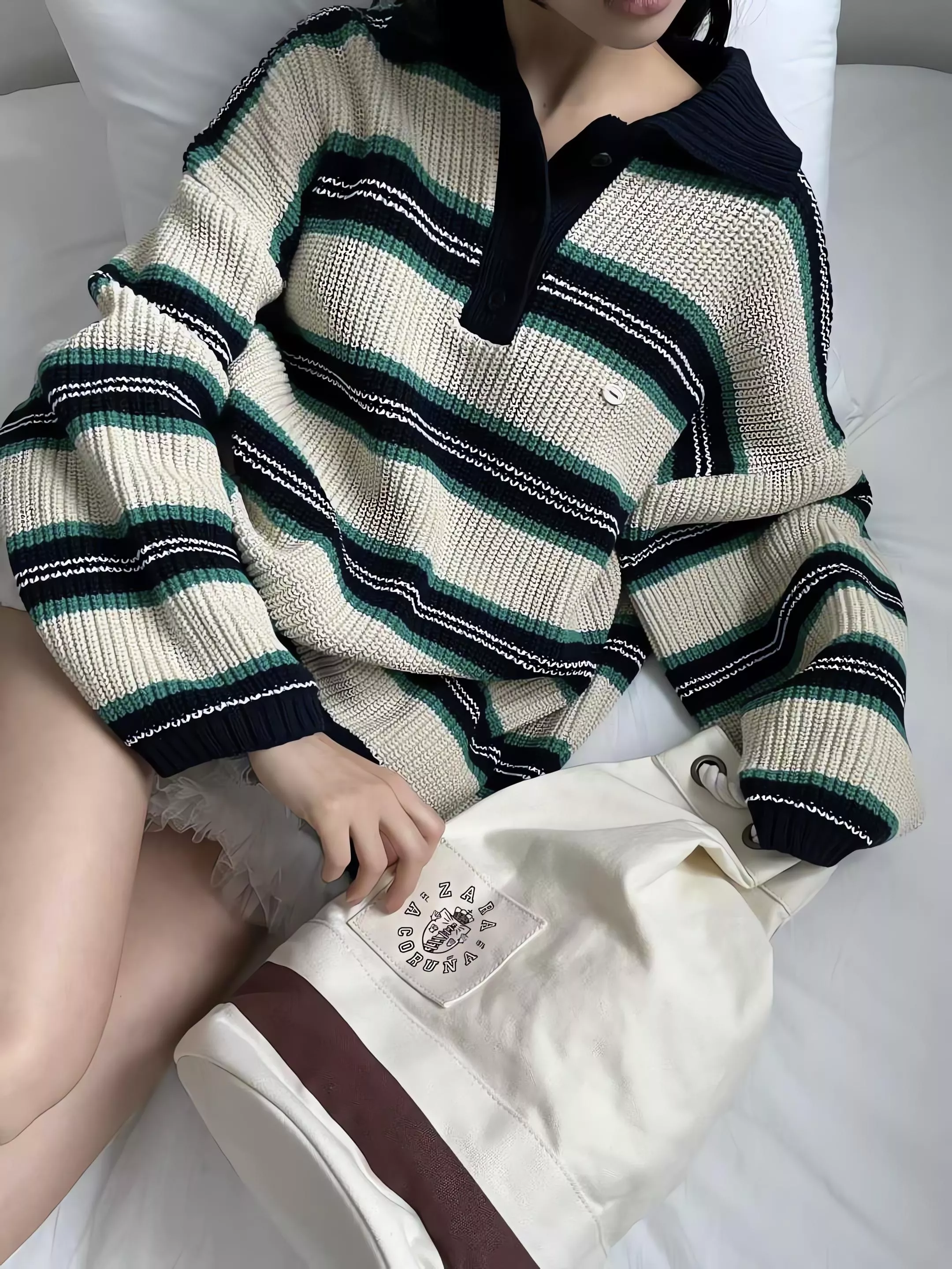 Tom Girl 慵懶美式復古・撞色條紋粗針織 POLO 衫