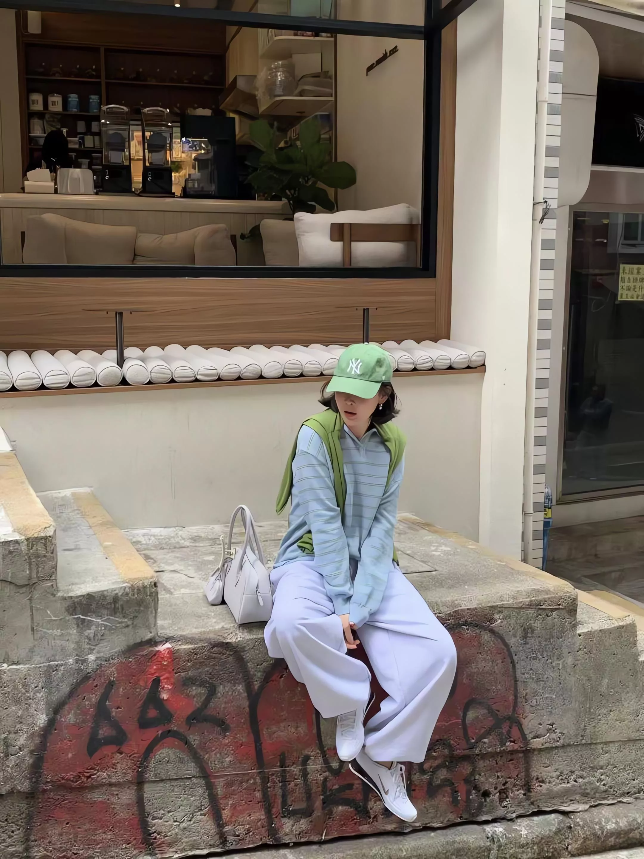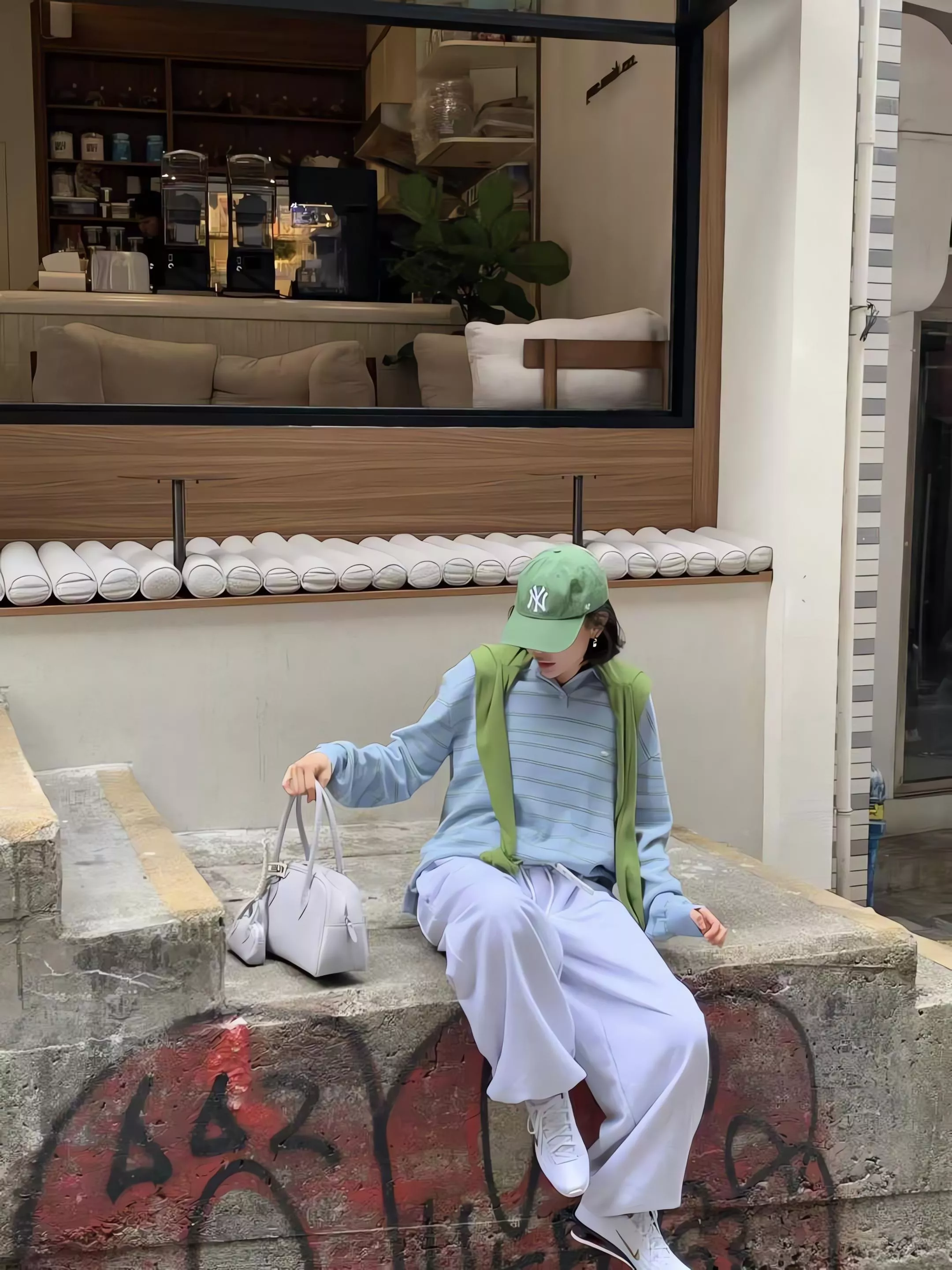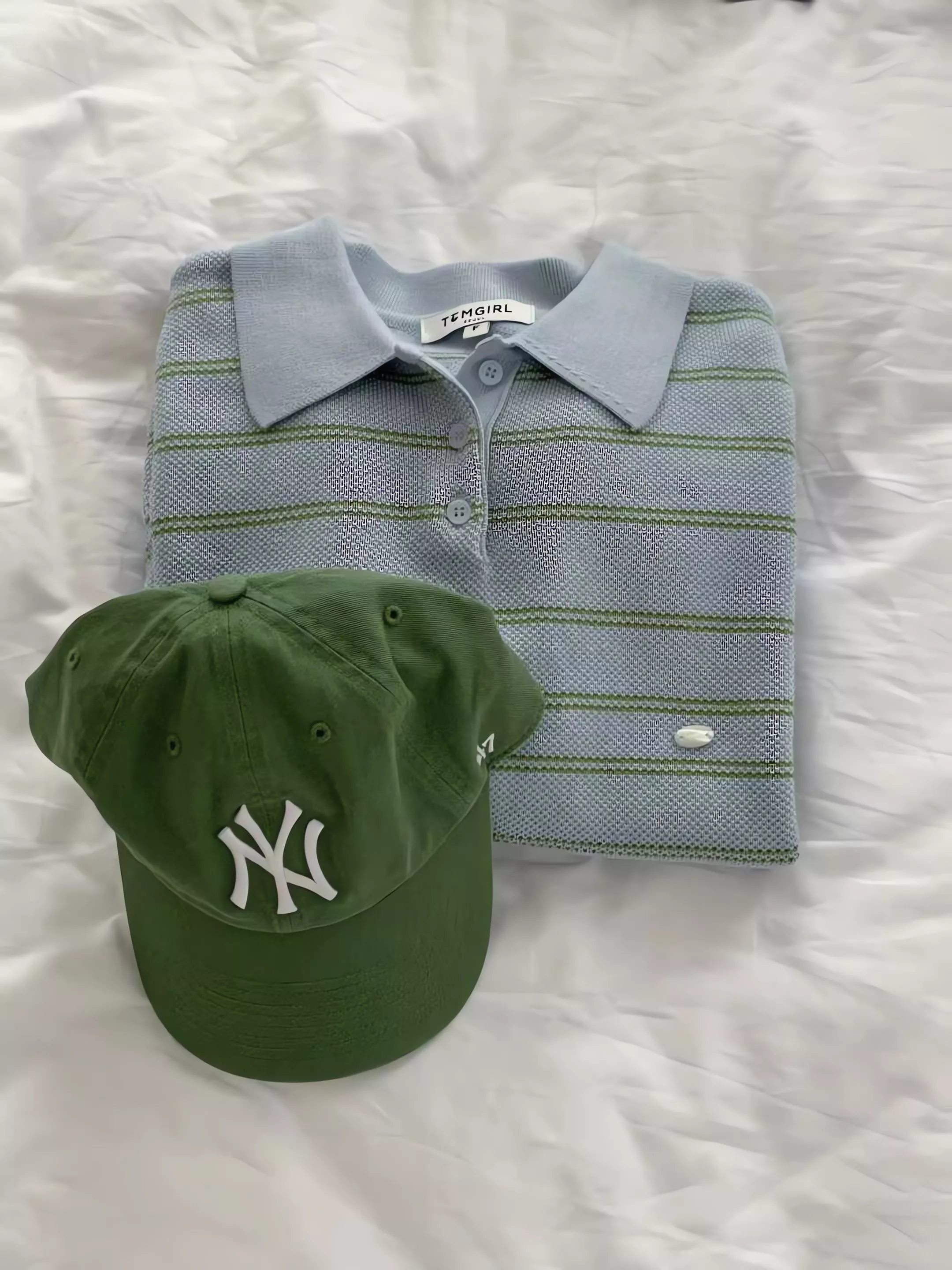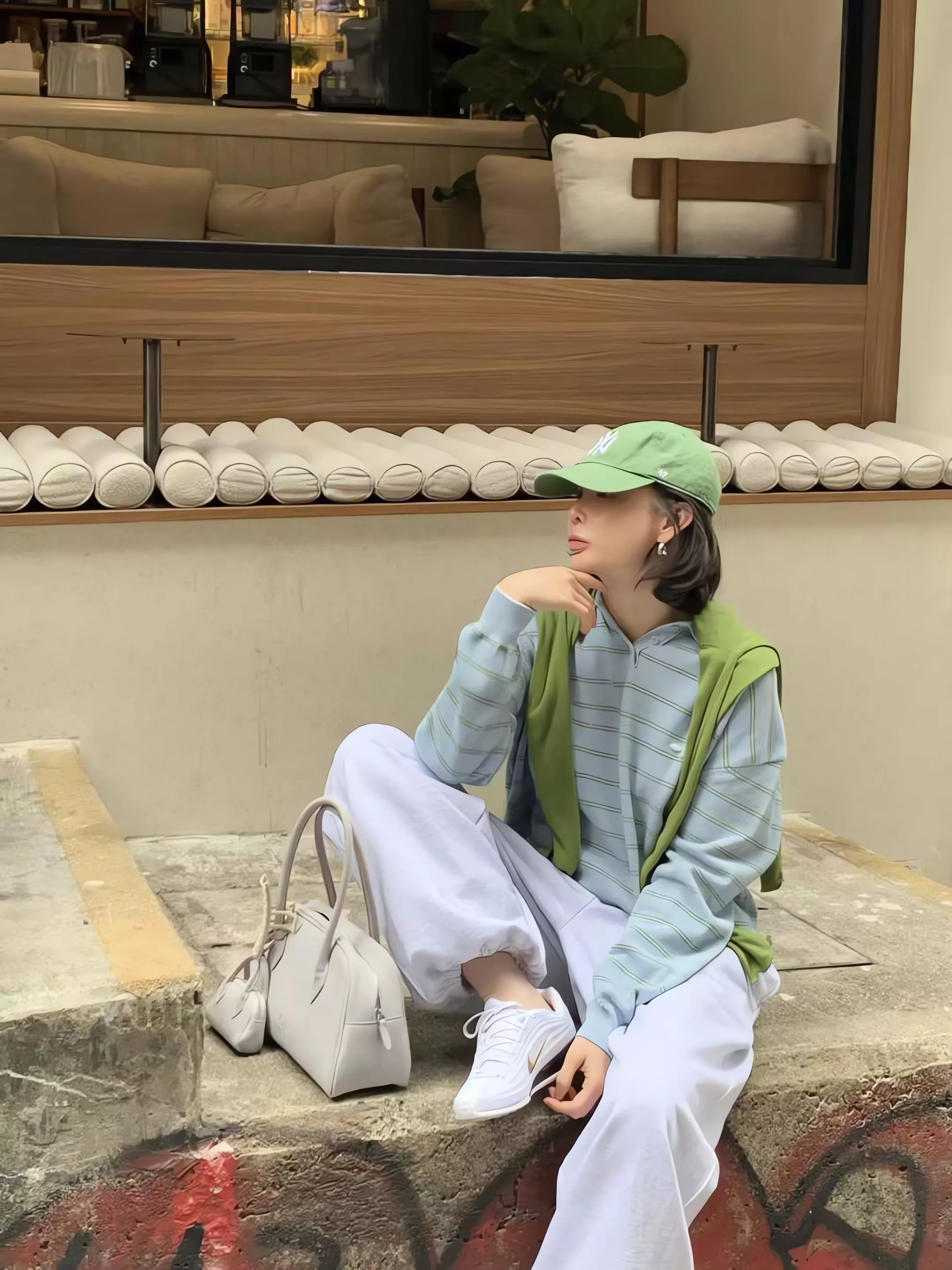 藍綠條紋:清爽的淡藍底色配上草綠條紋,這就是圖片中賣家主打的「野餐感」配色,也是最受歡迎的韓系休閒風格。