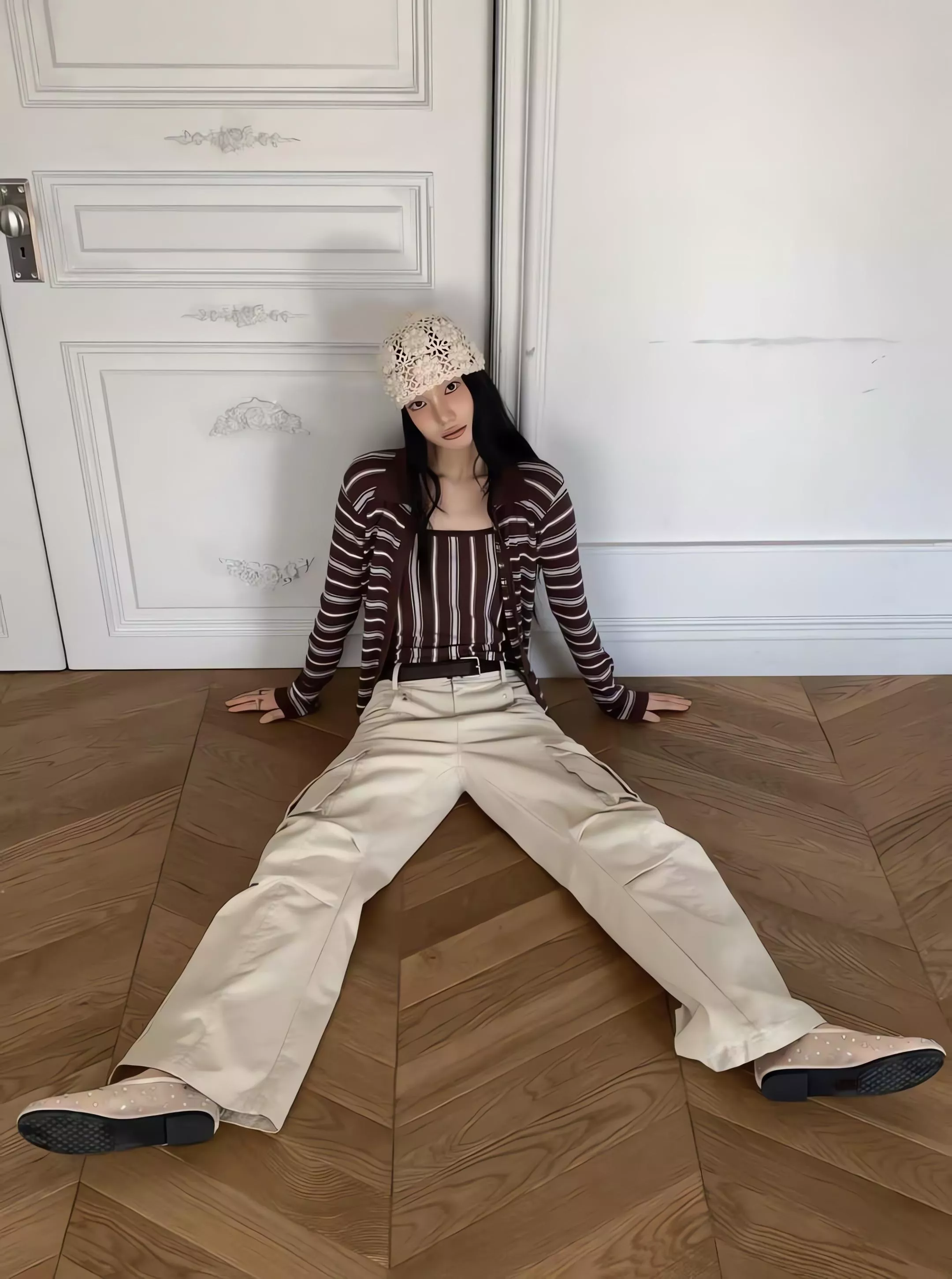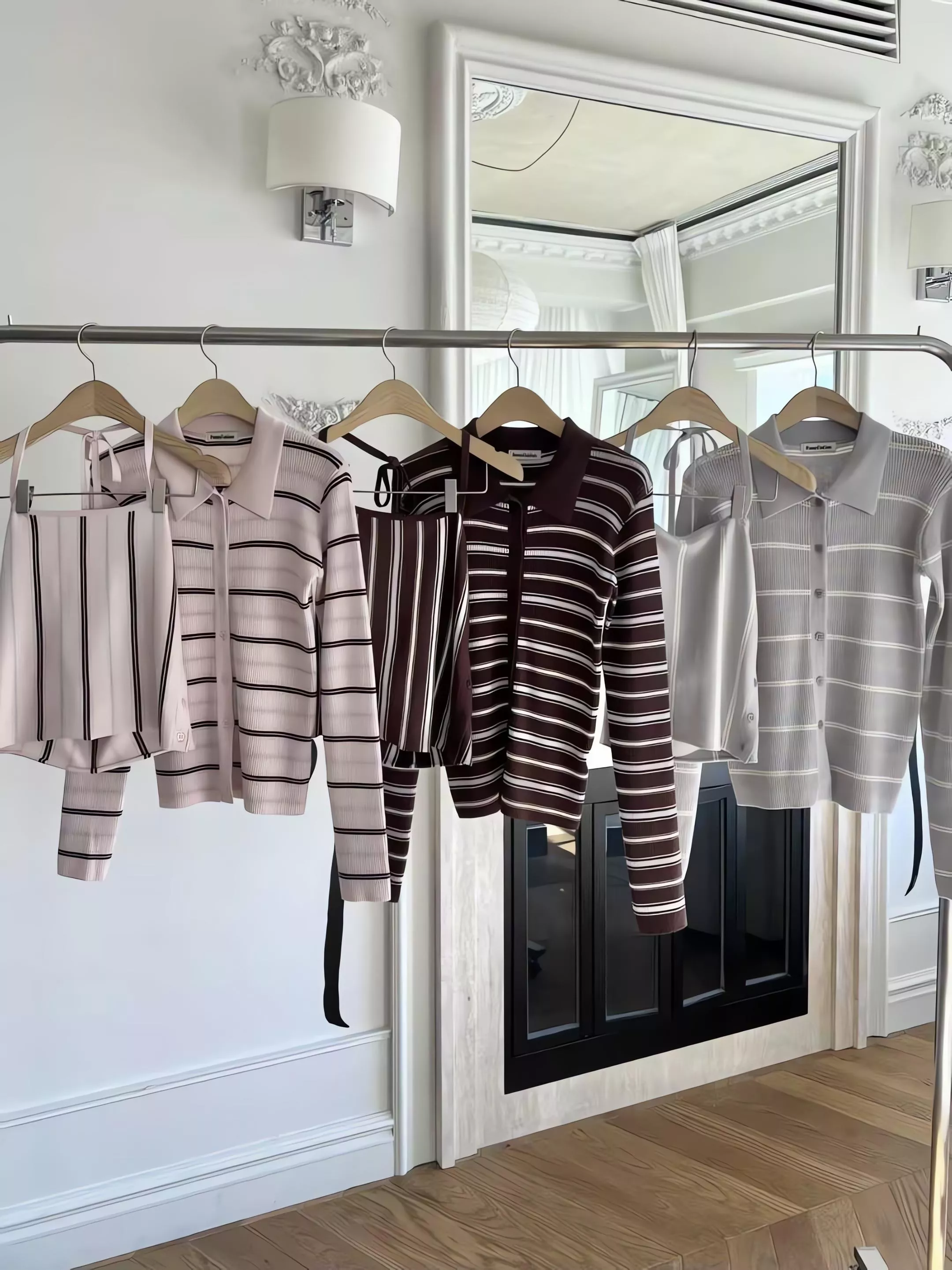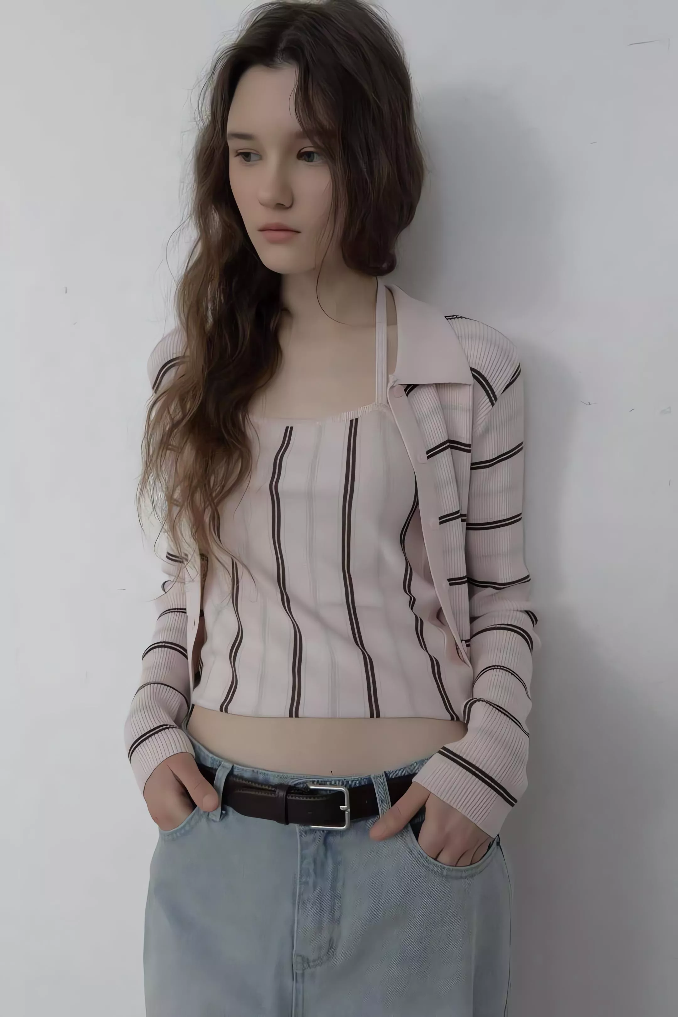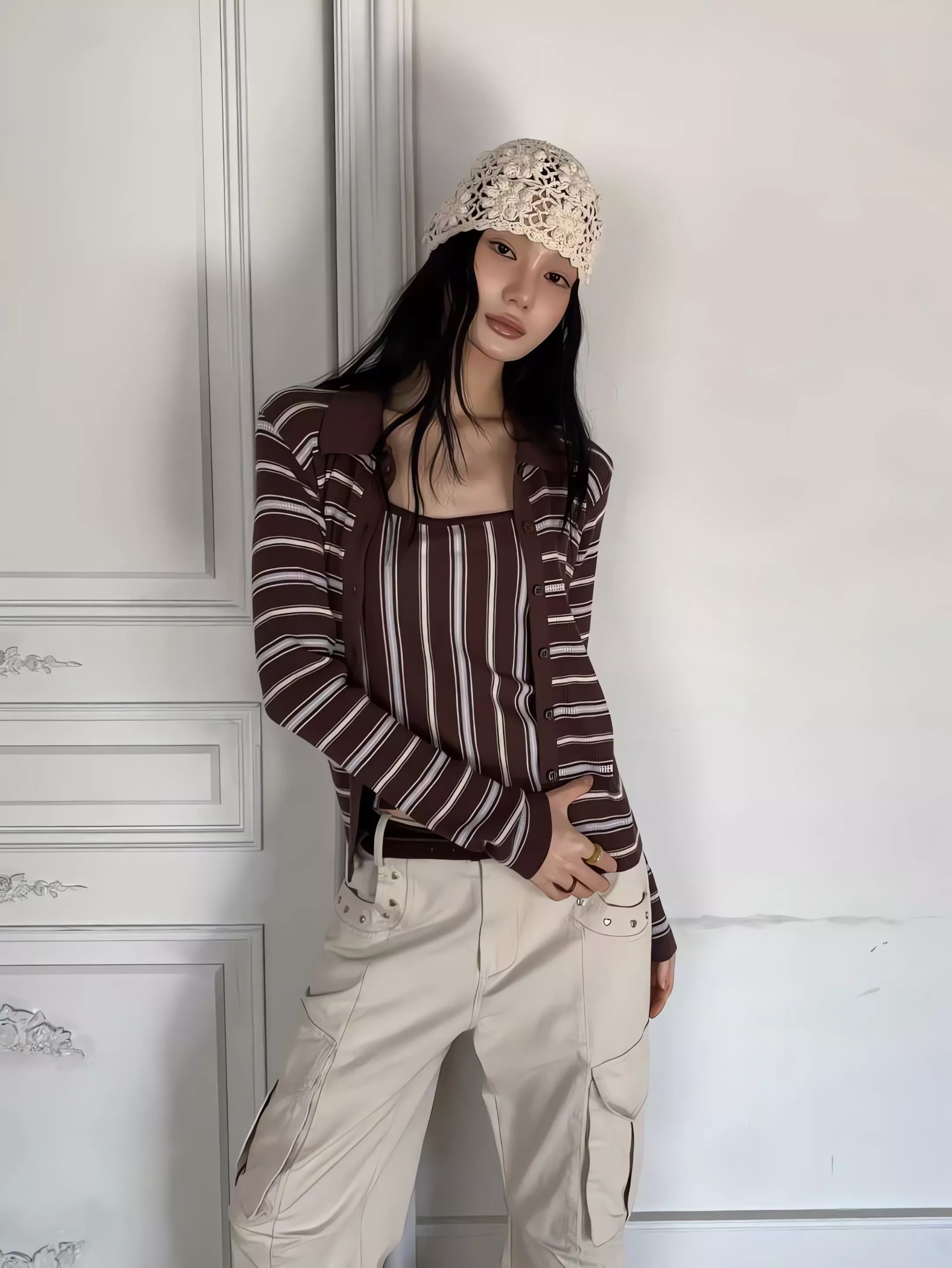 這套不是那種寬鬆遮肉的版型,而是讓你在簡約的細條紋中,穿出一種俐落、乾淨、不拖泥帶水的高級氛圍。