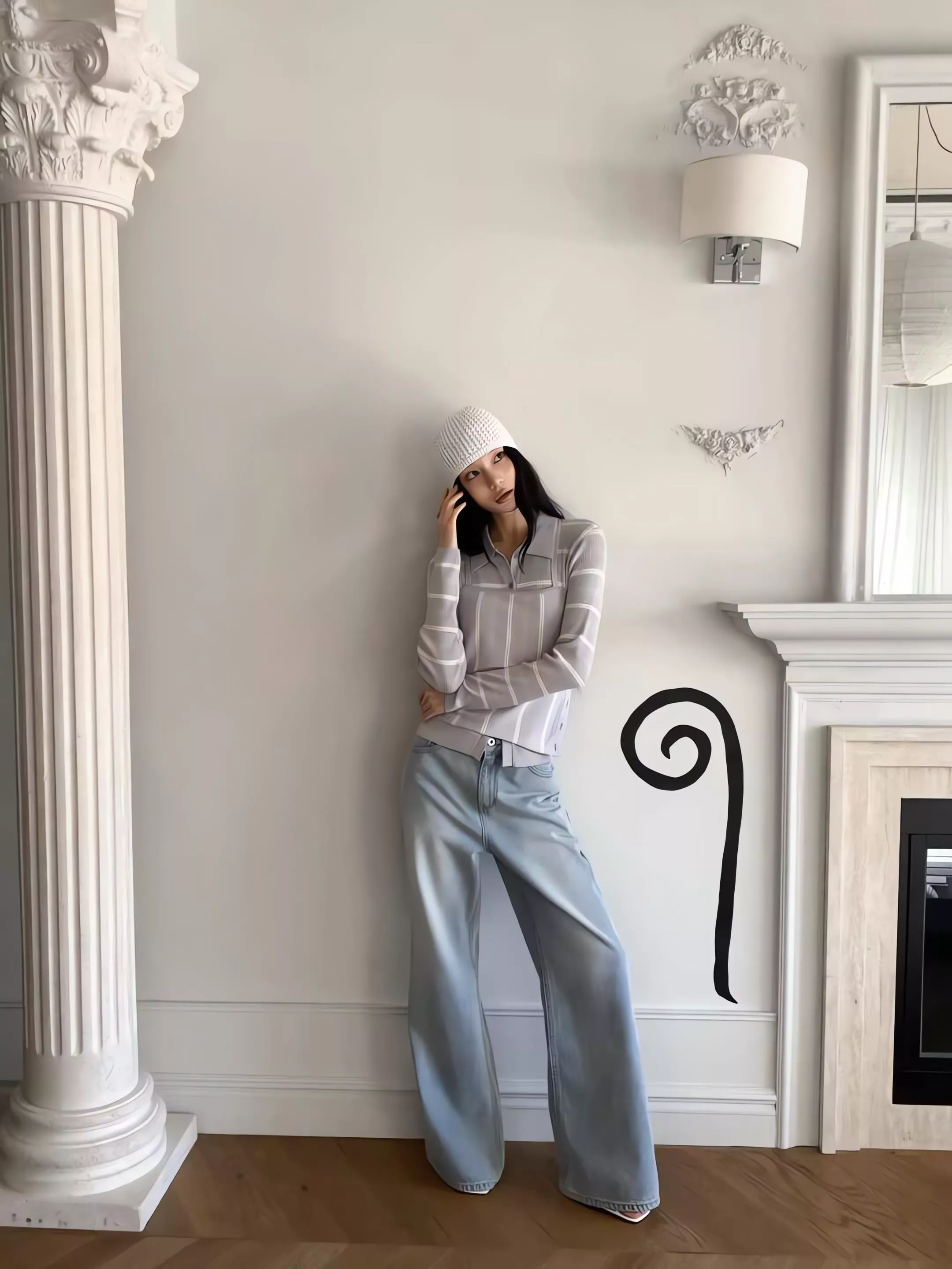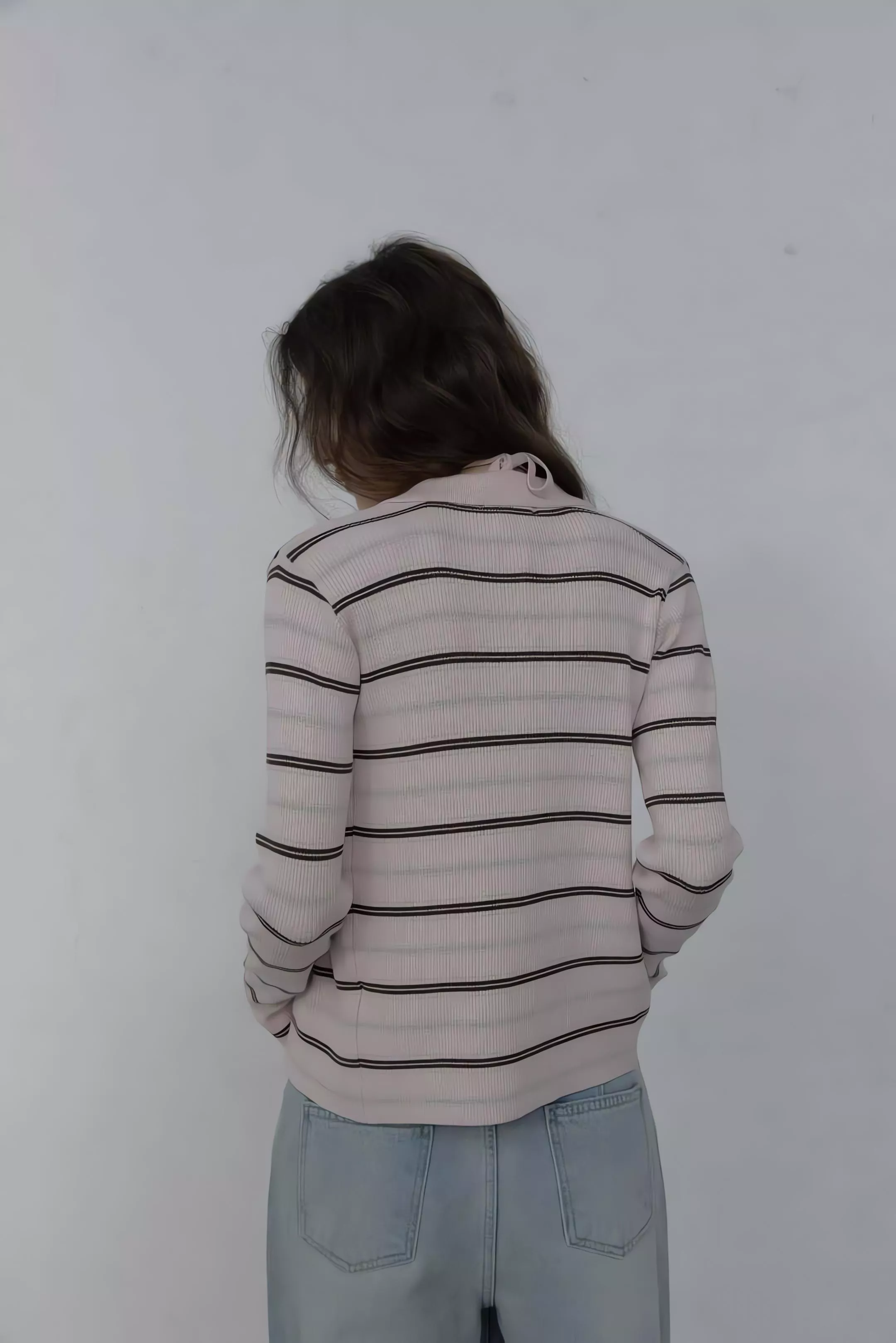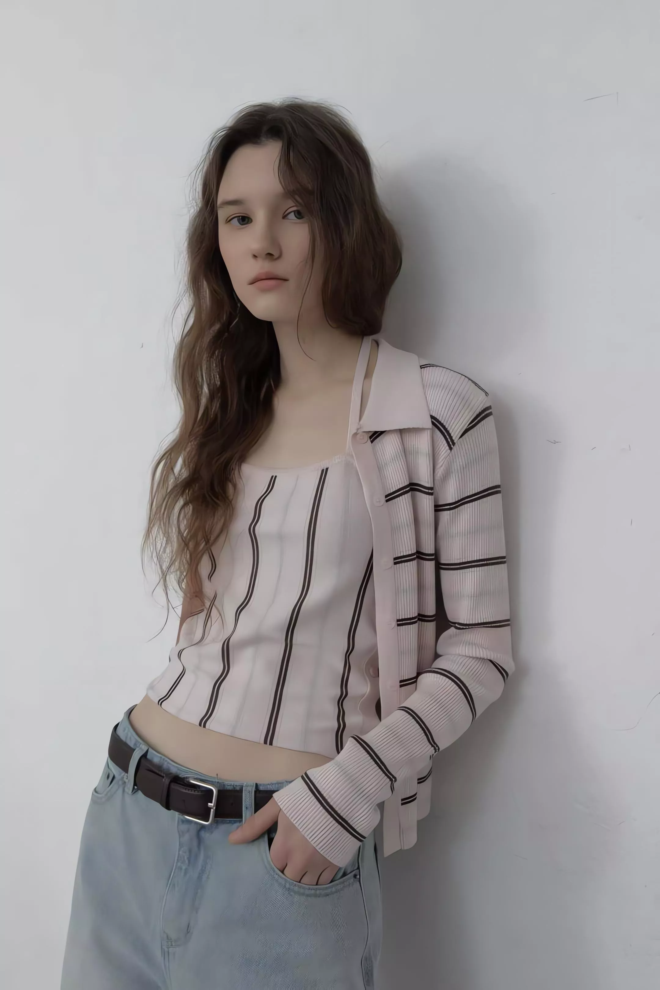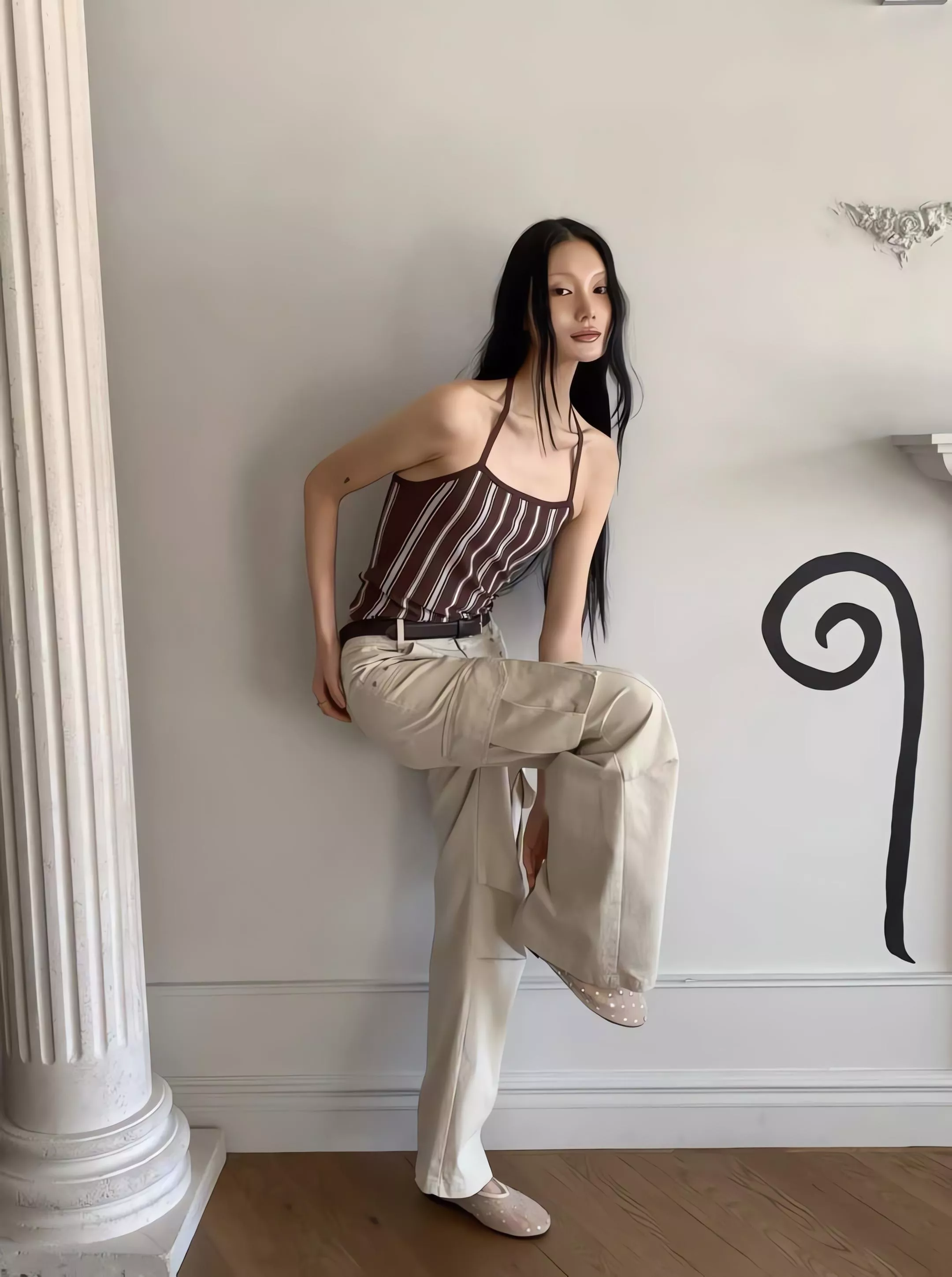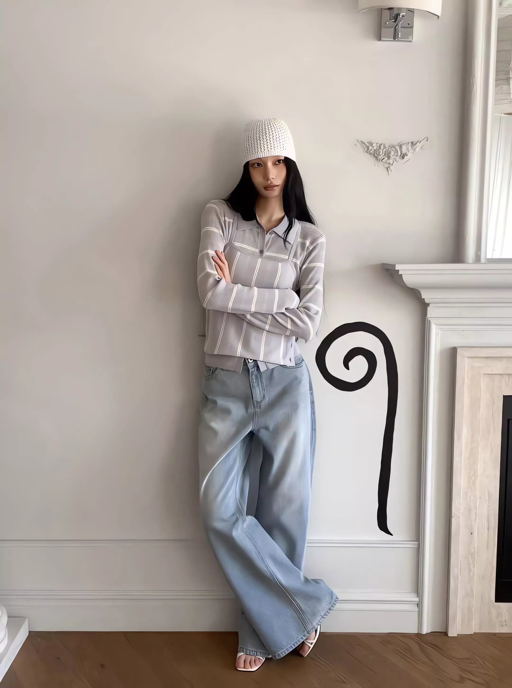 這套不是那種寬鬆遮肉的版型,而是讓你在簡約的細條紋中,穿出一種俐落、乾淨、不拖泥帶水的高級氛圍。