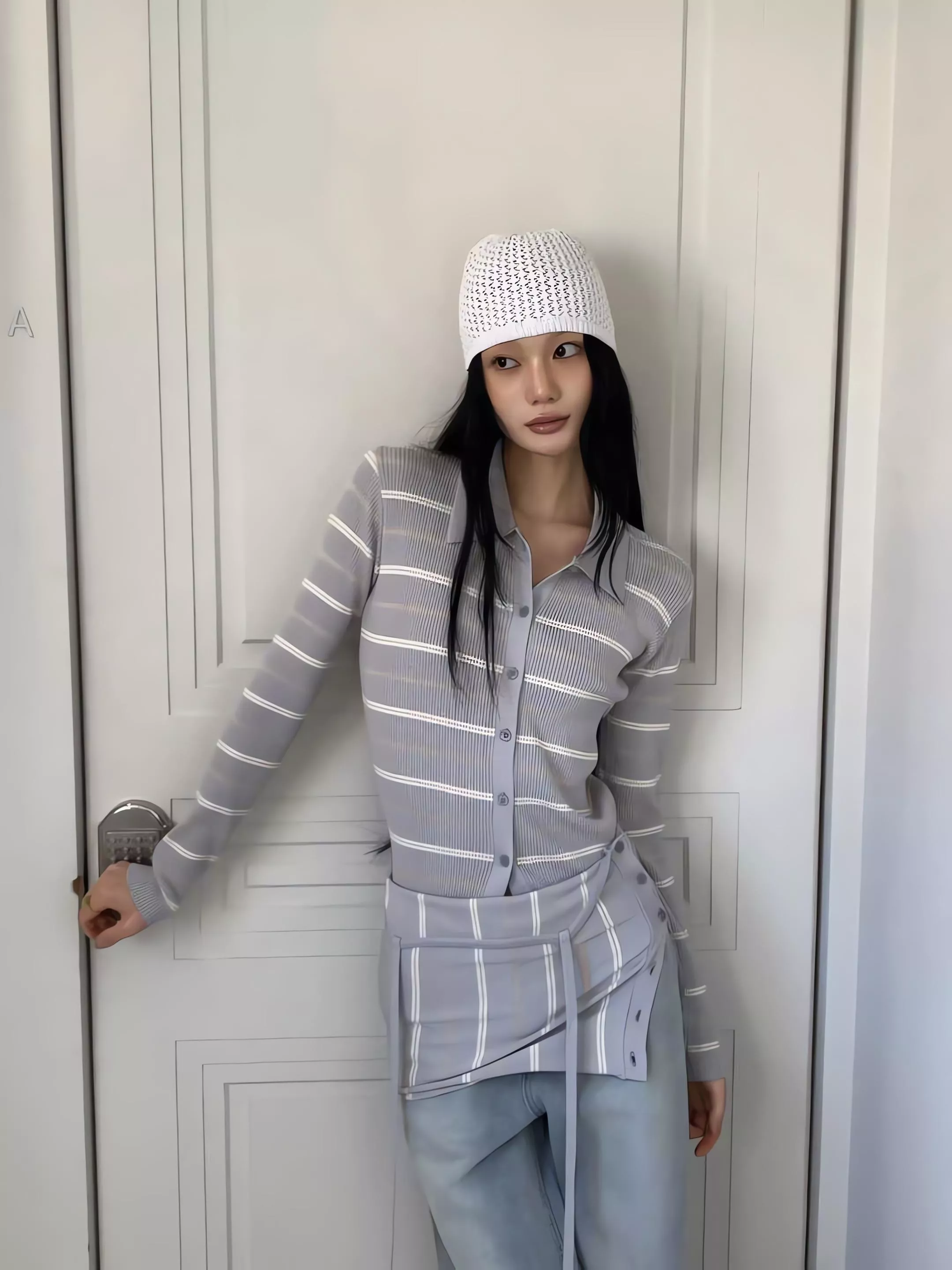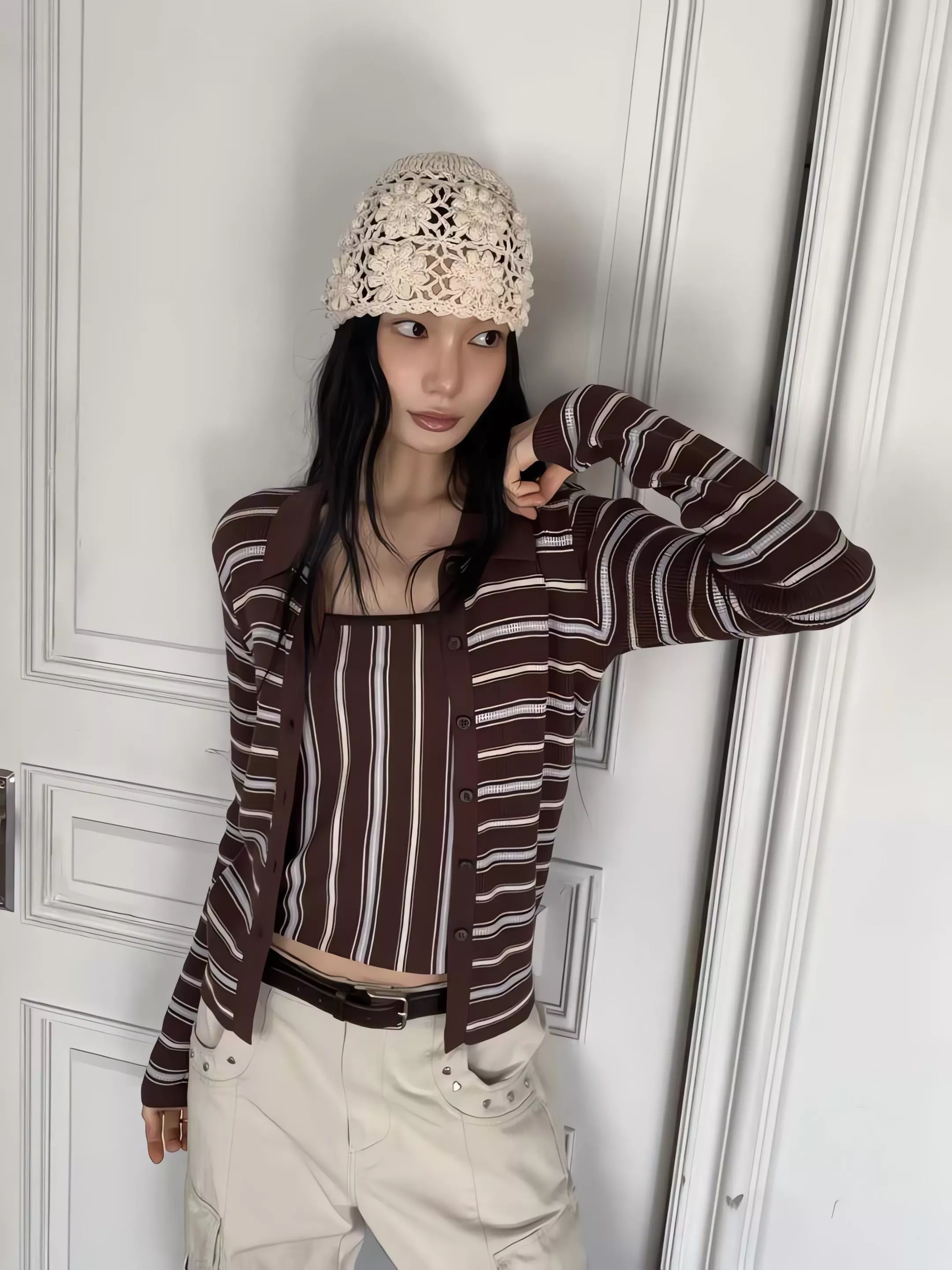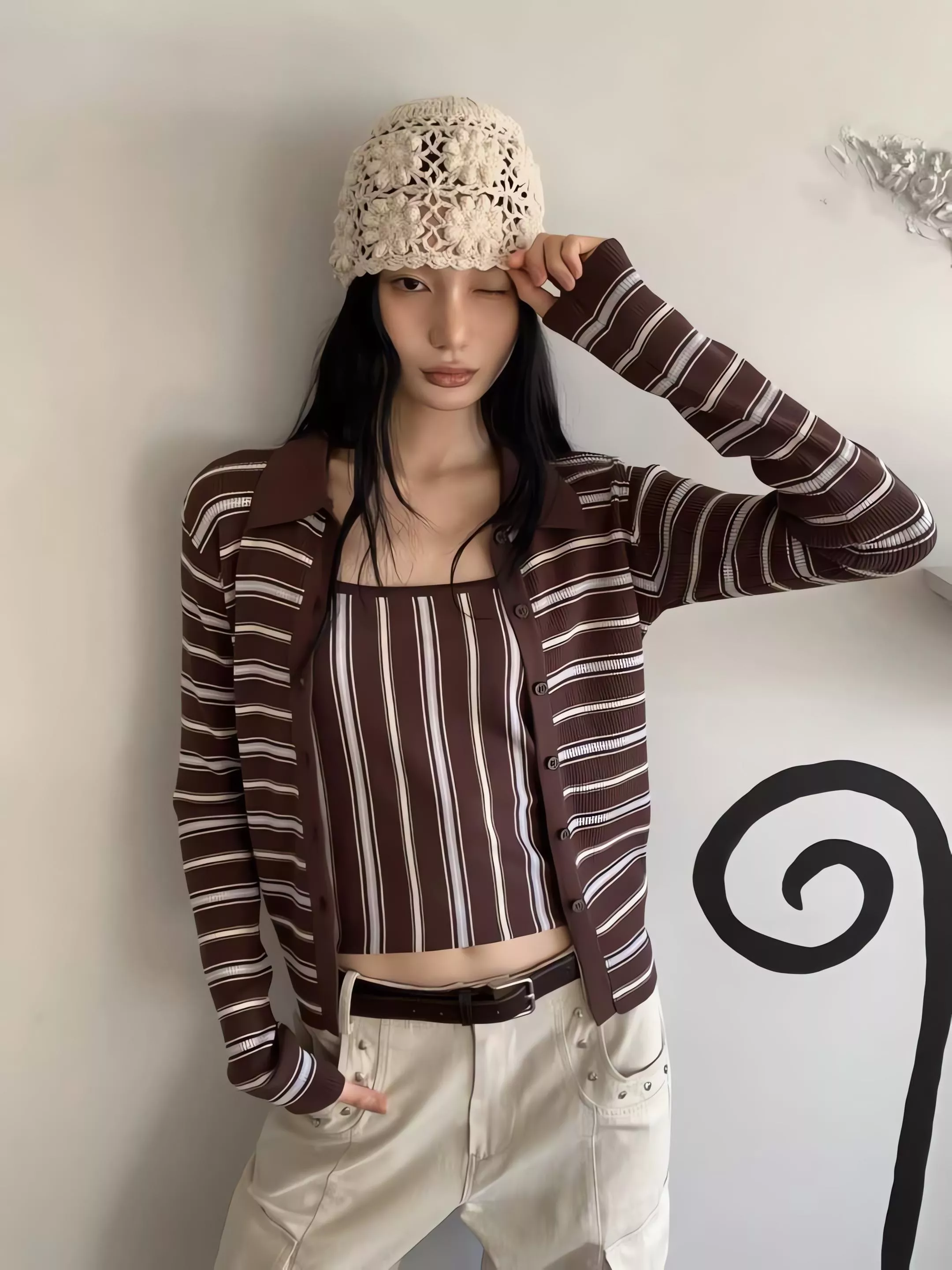 這組走的是精緻的韓系姊姊風,貼身的細針織面料能完美貼合身形,展現出最真實的線條感。