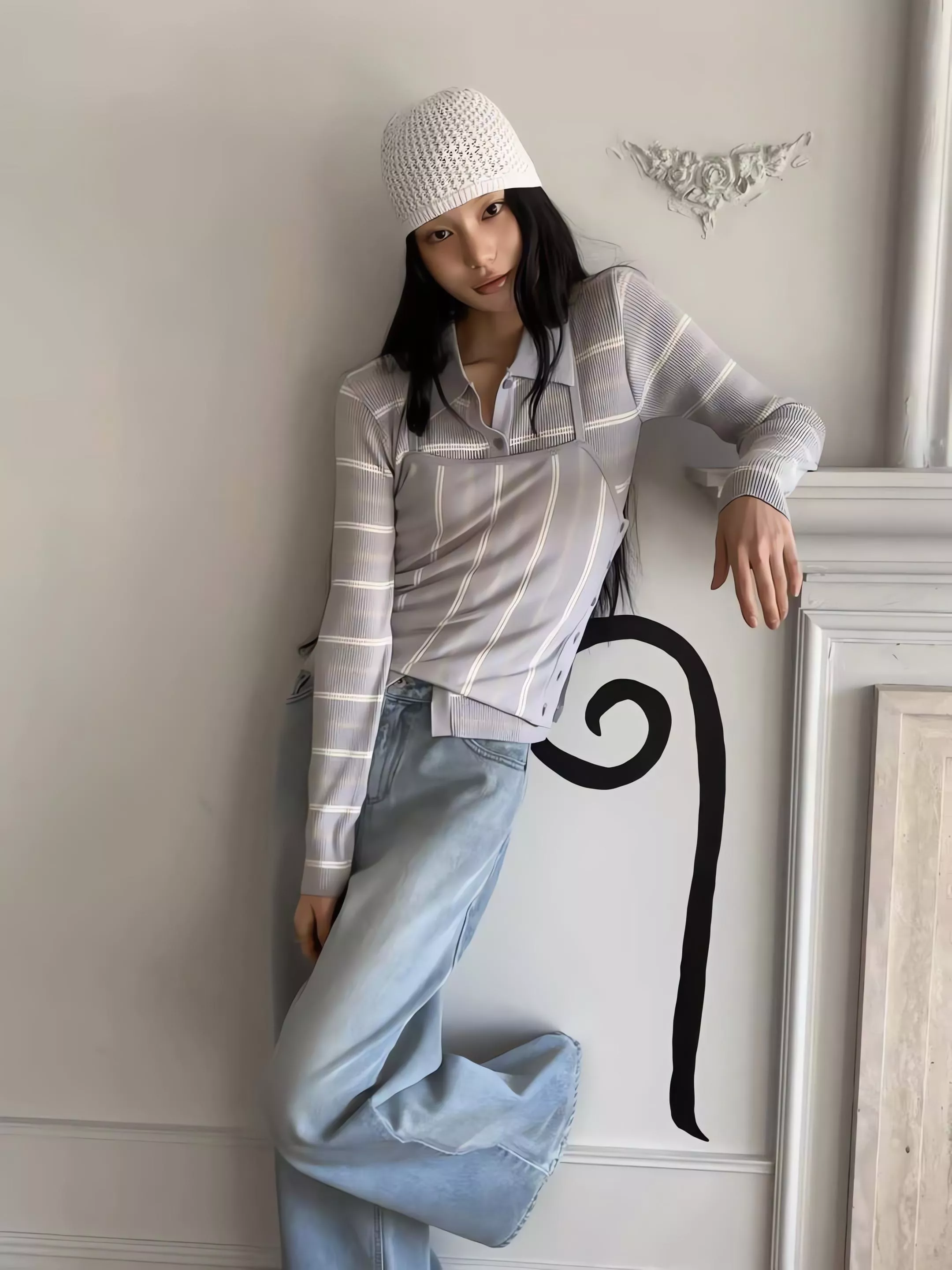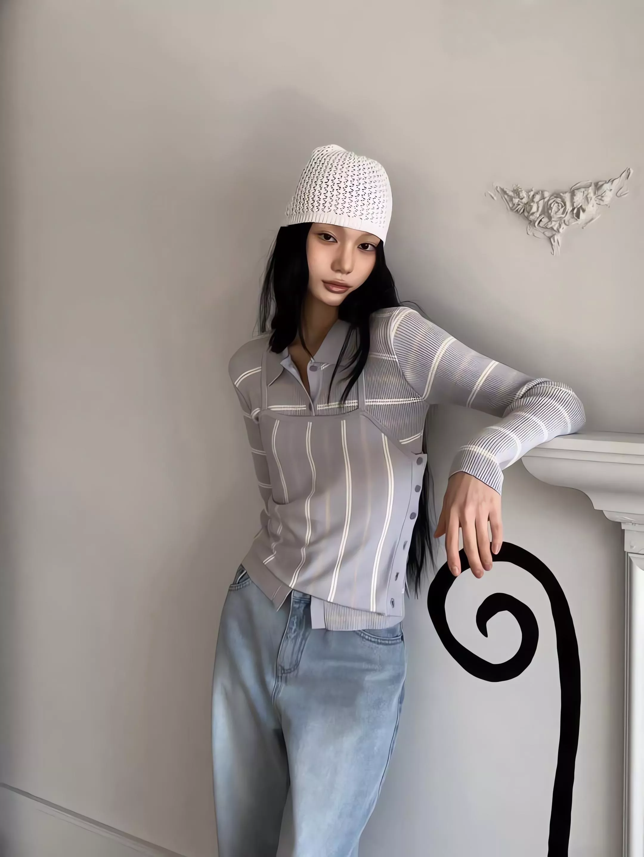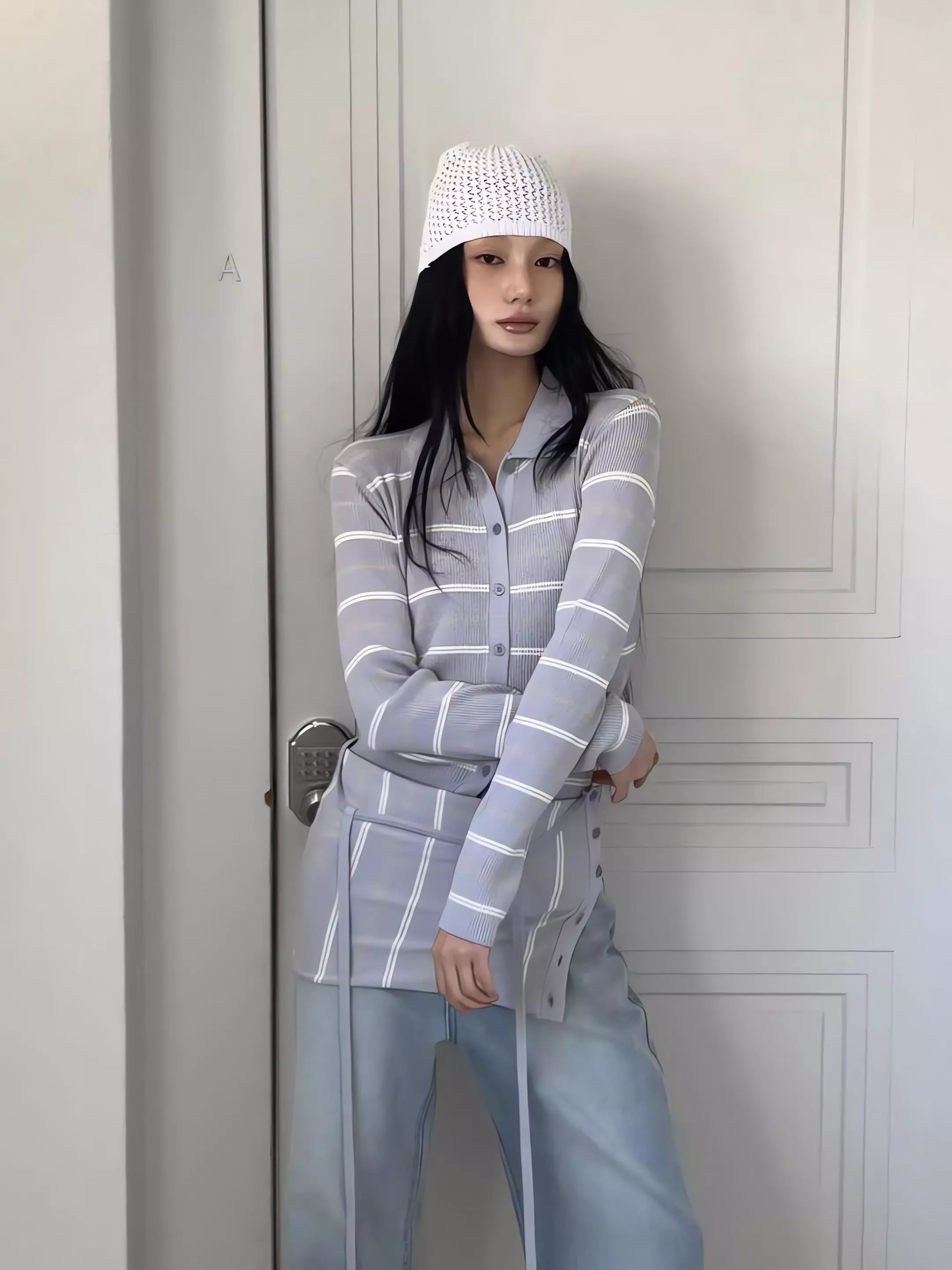 這組走的是精緻的韓系姊姊風,貼身的細針織面料能完美貼合身形,展現出最真實的線條感。