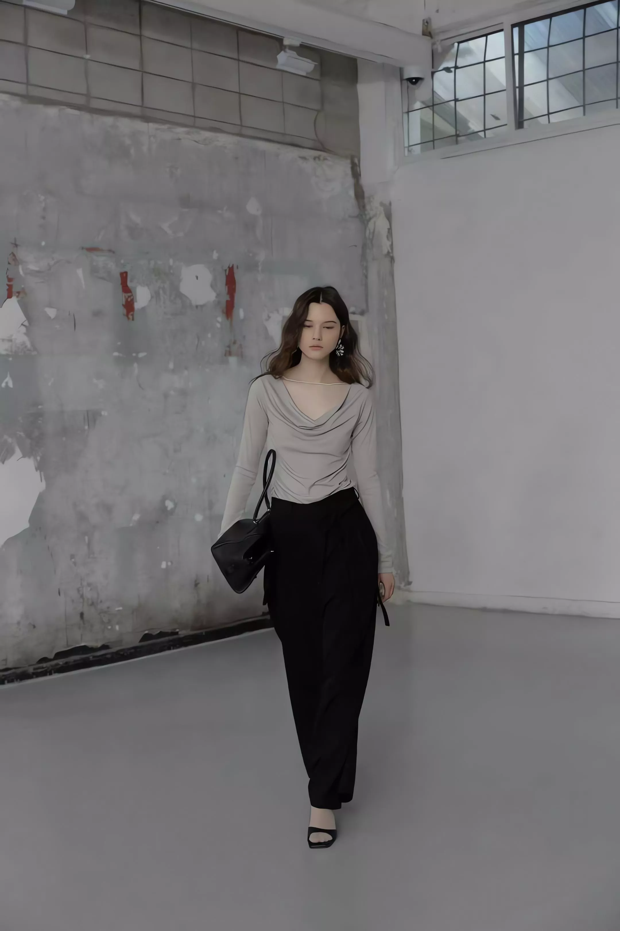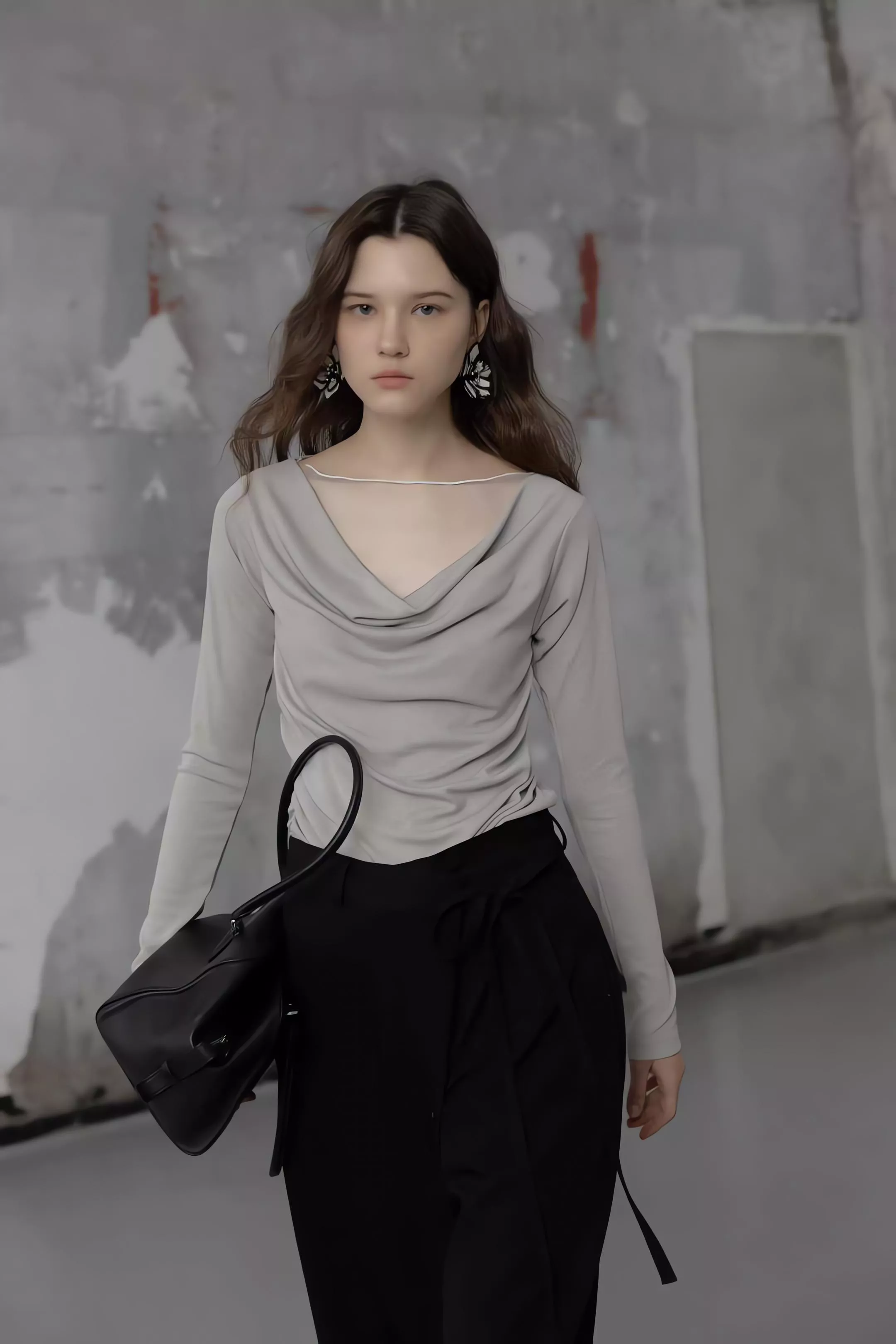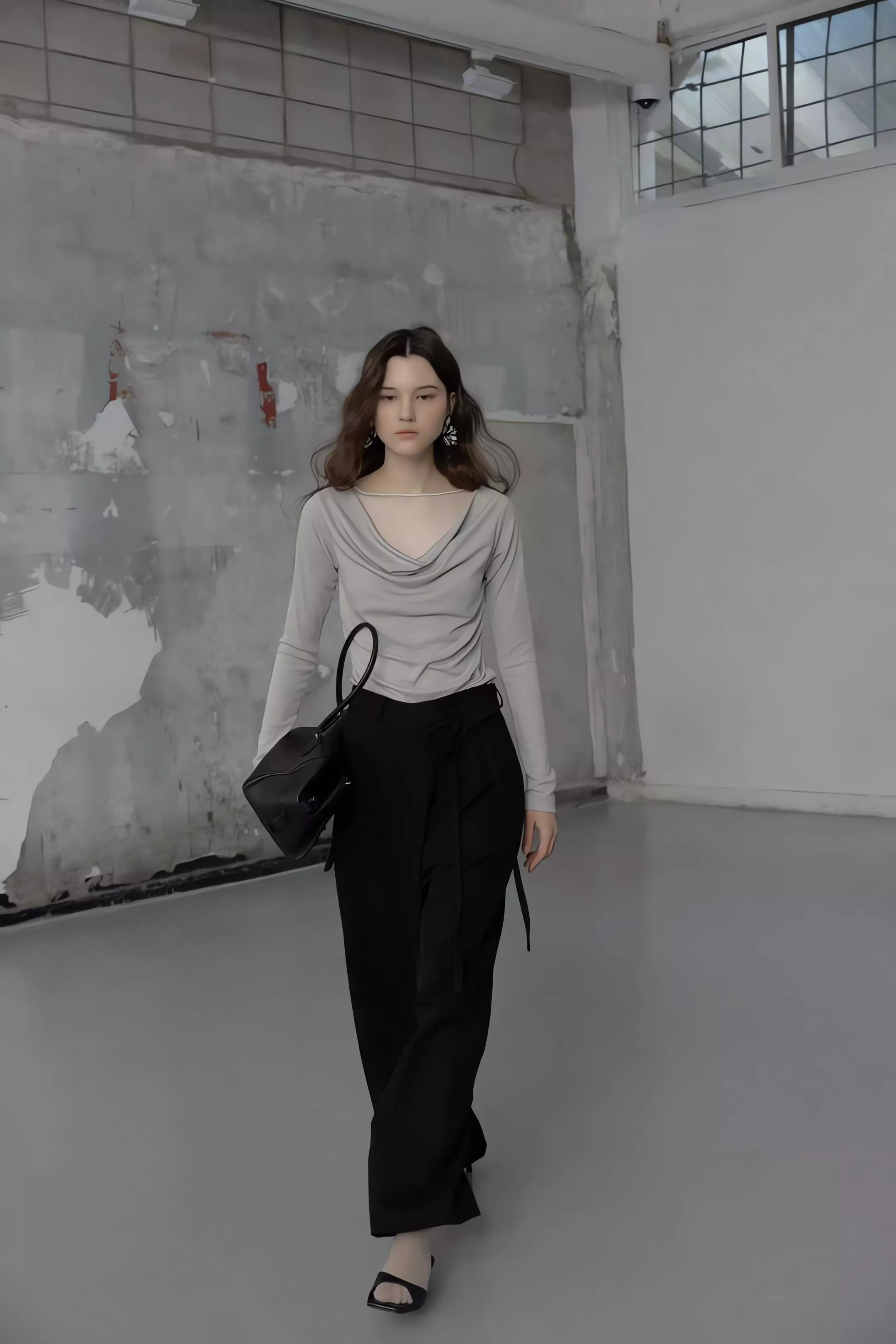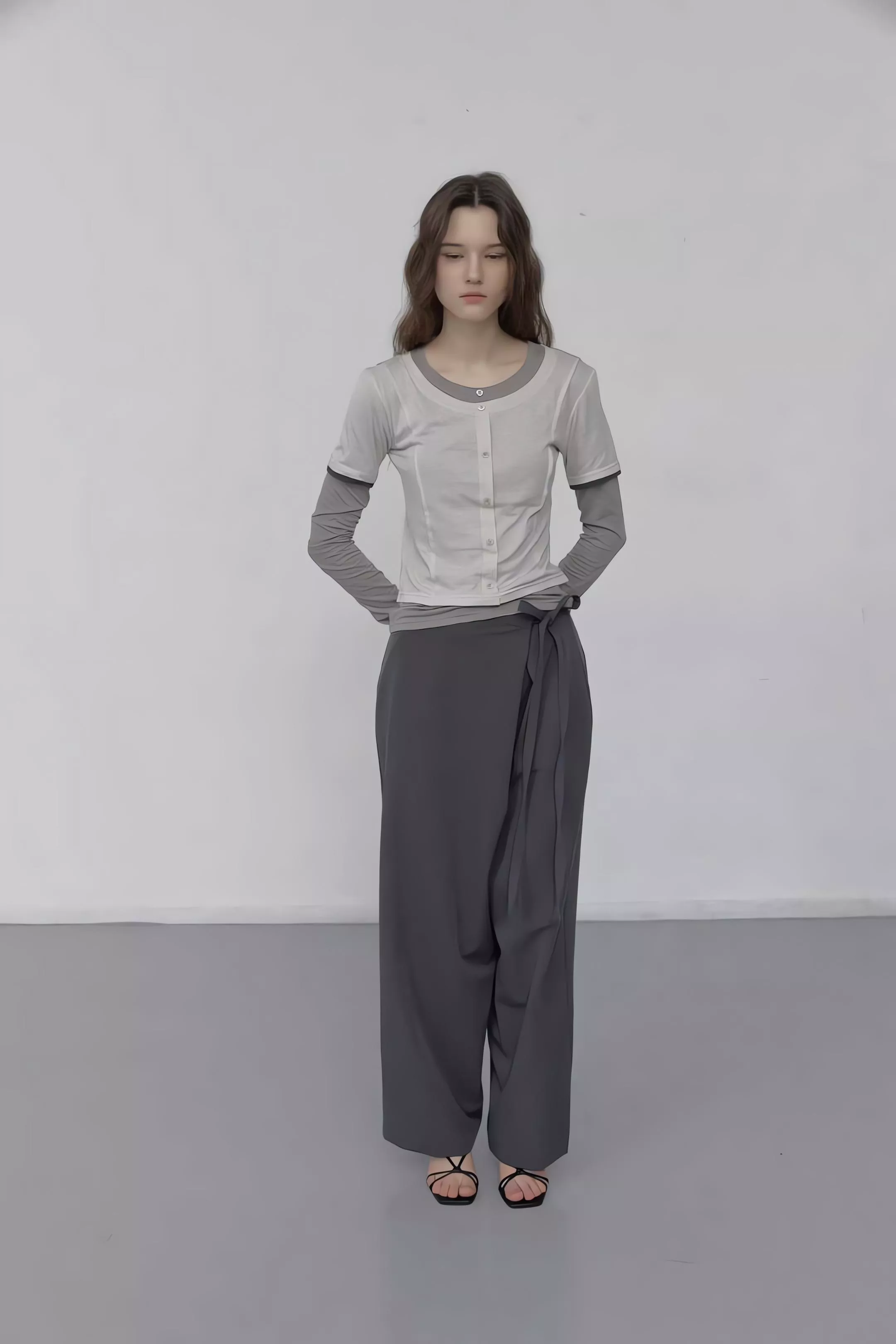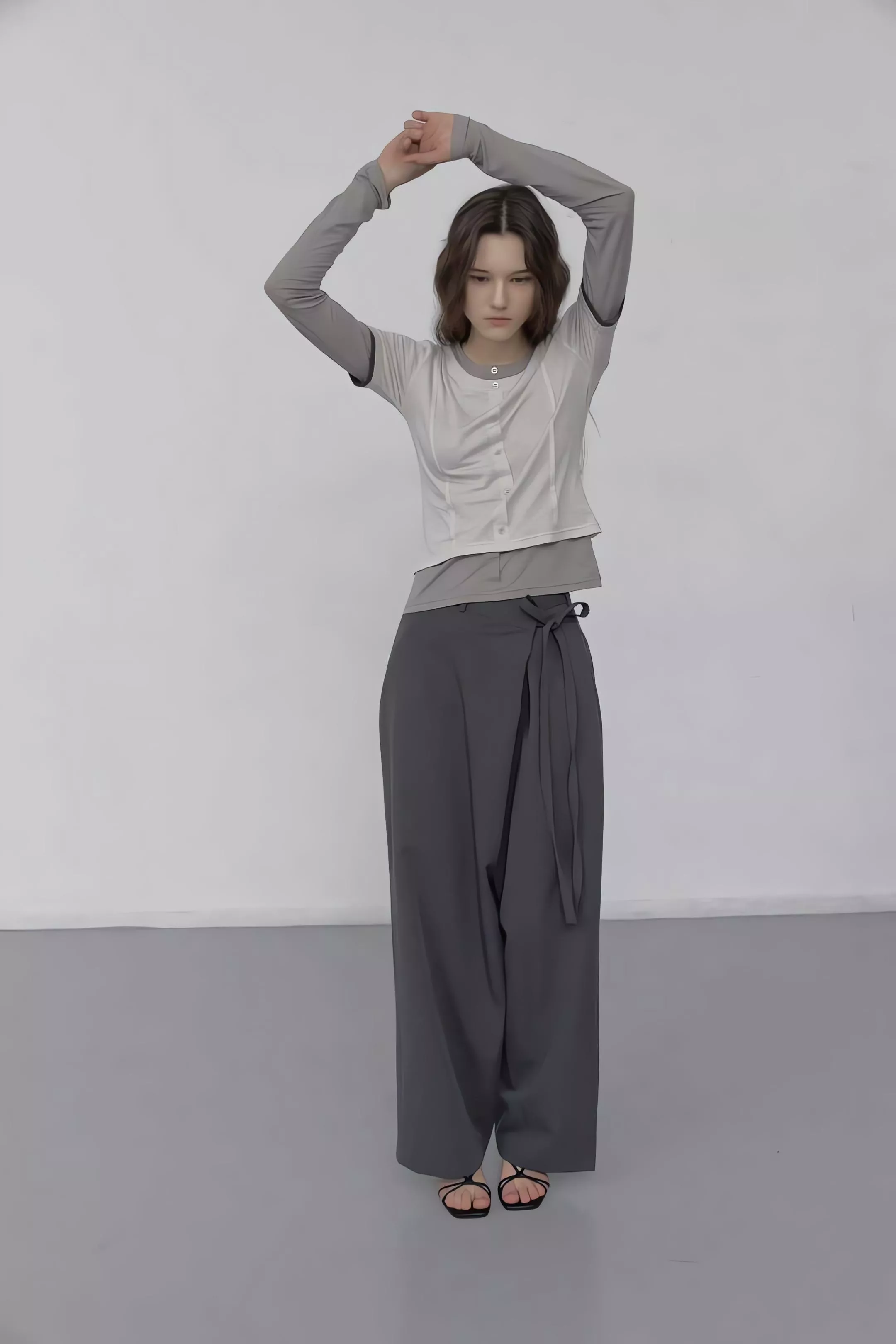 重點在於面料極致的垂墜感,能順著身型垂直延伸,確保寬鬆褲管保持筆直。不論是搭配尖頭鞋拉長線條,或是穿著平底鞋散發自在氣息,都能展現這款褲子特有的流動感。