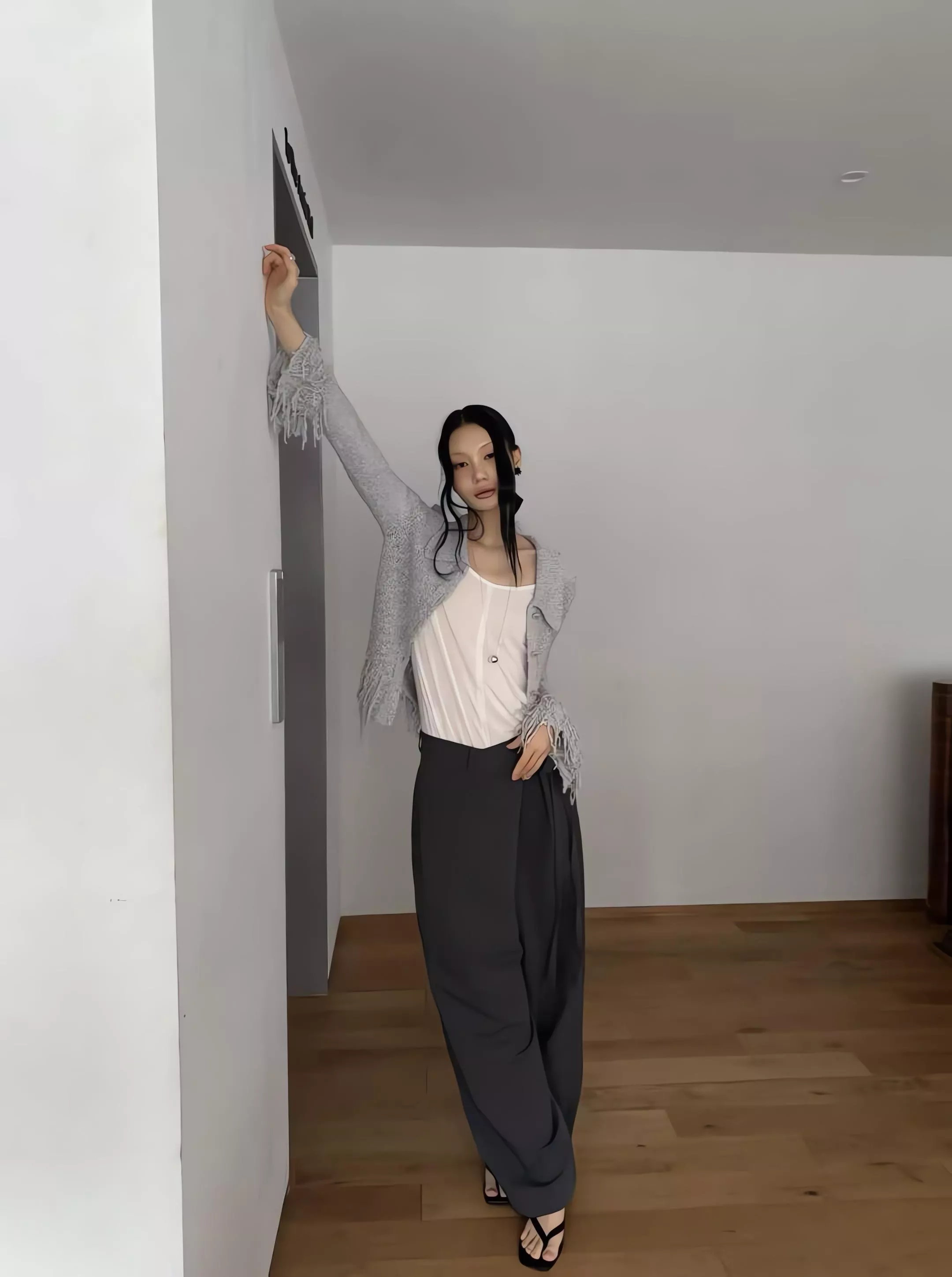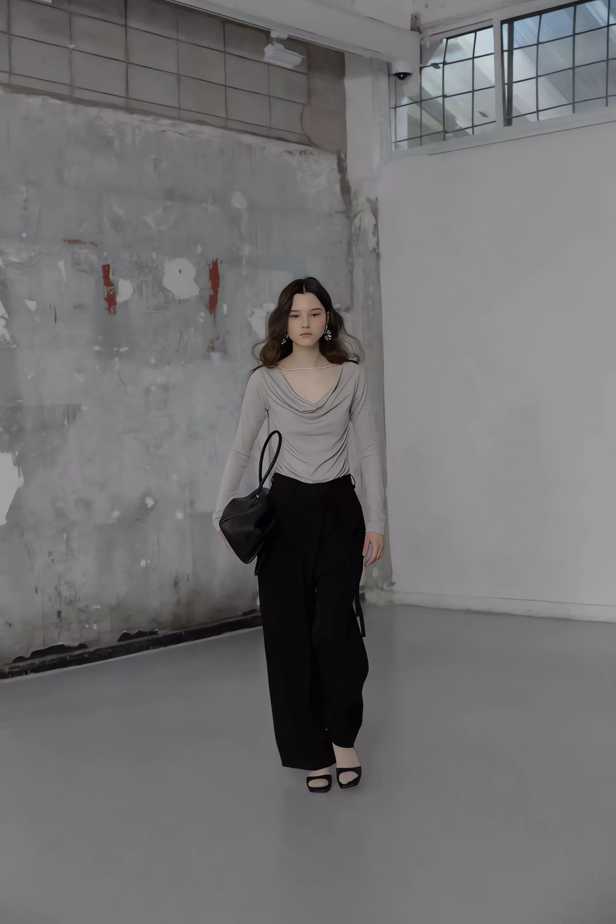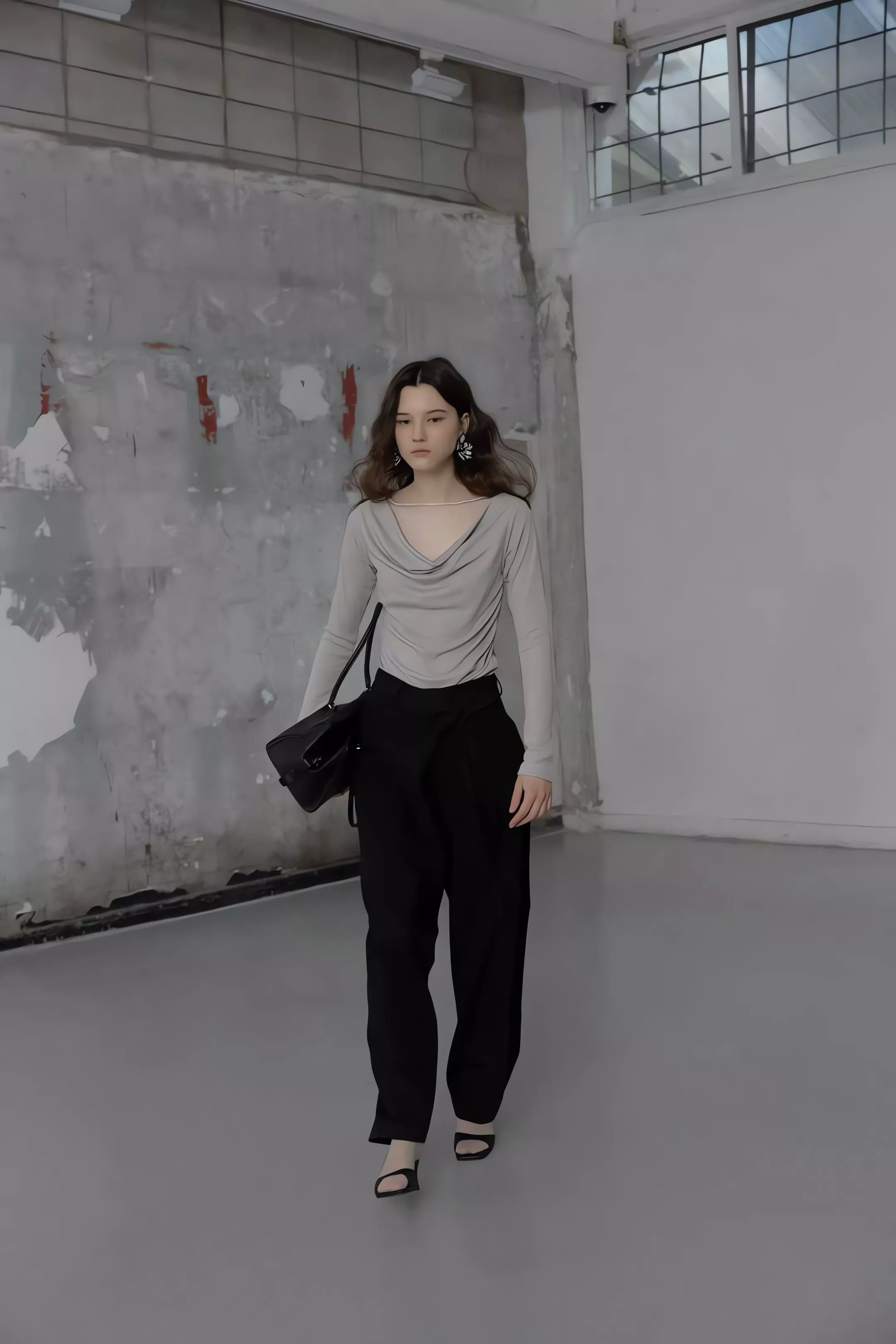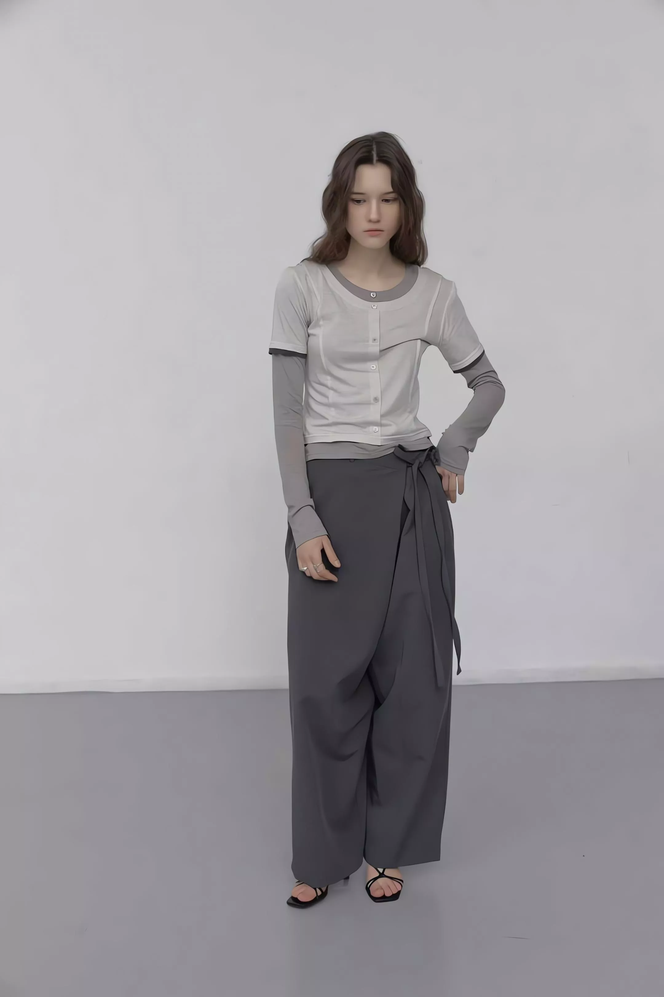 重點在於面料極致的垂墜感,能順著身型垂直延伸,確保寬鬆褲管保持筆直。不論是搭配尖頭鞋拉長線條,或是穿著平底鞋散發自在氣息,都能展現這款褲子特有的流動感。