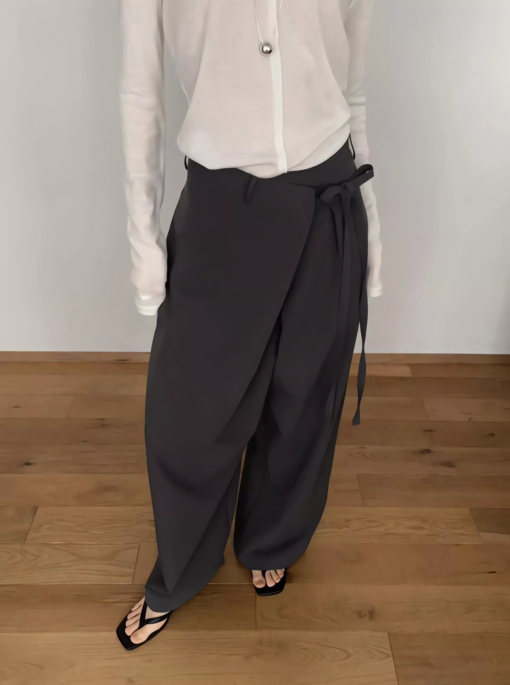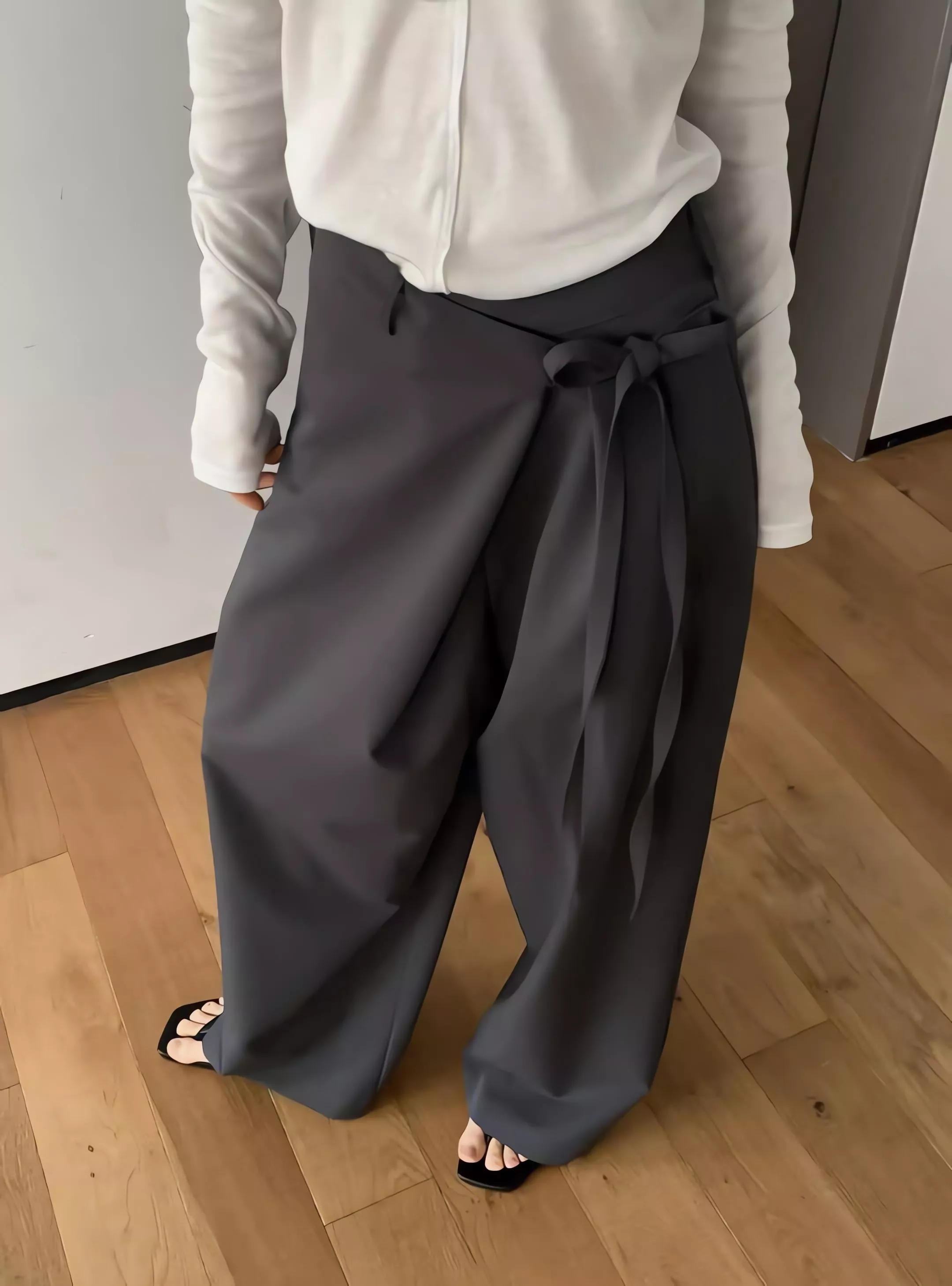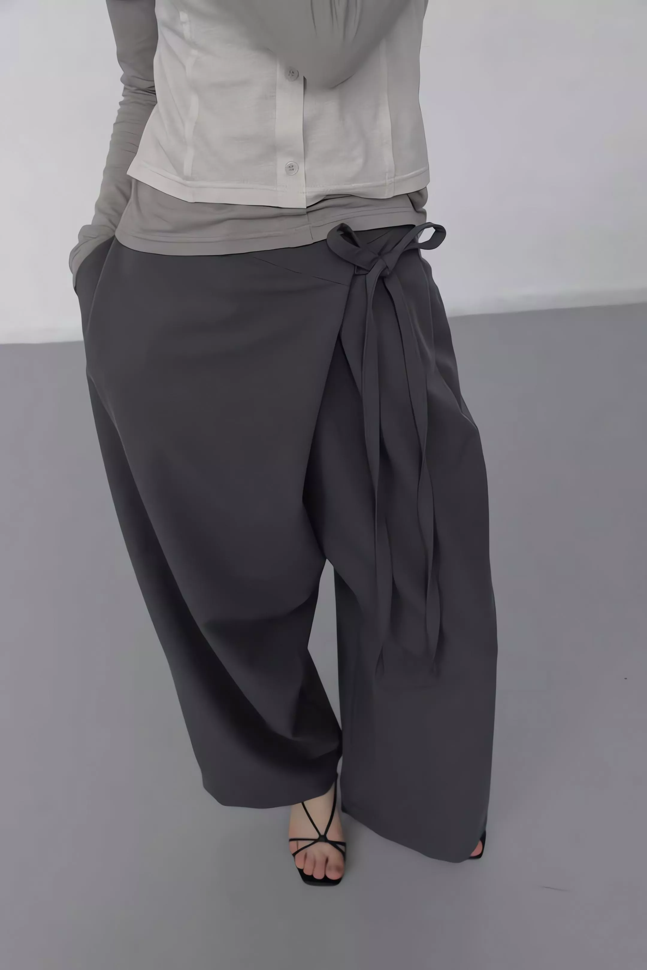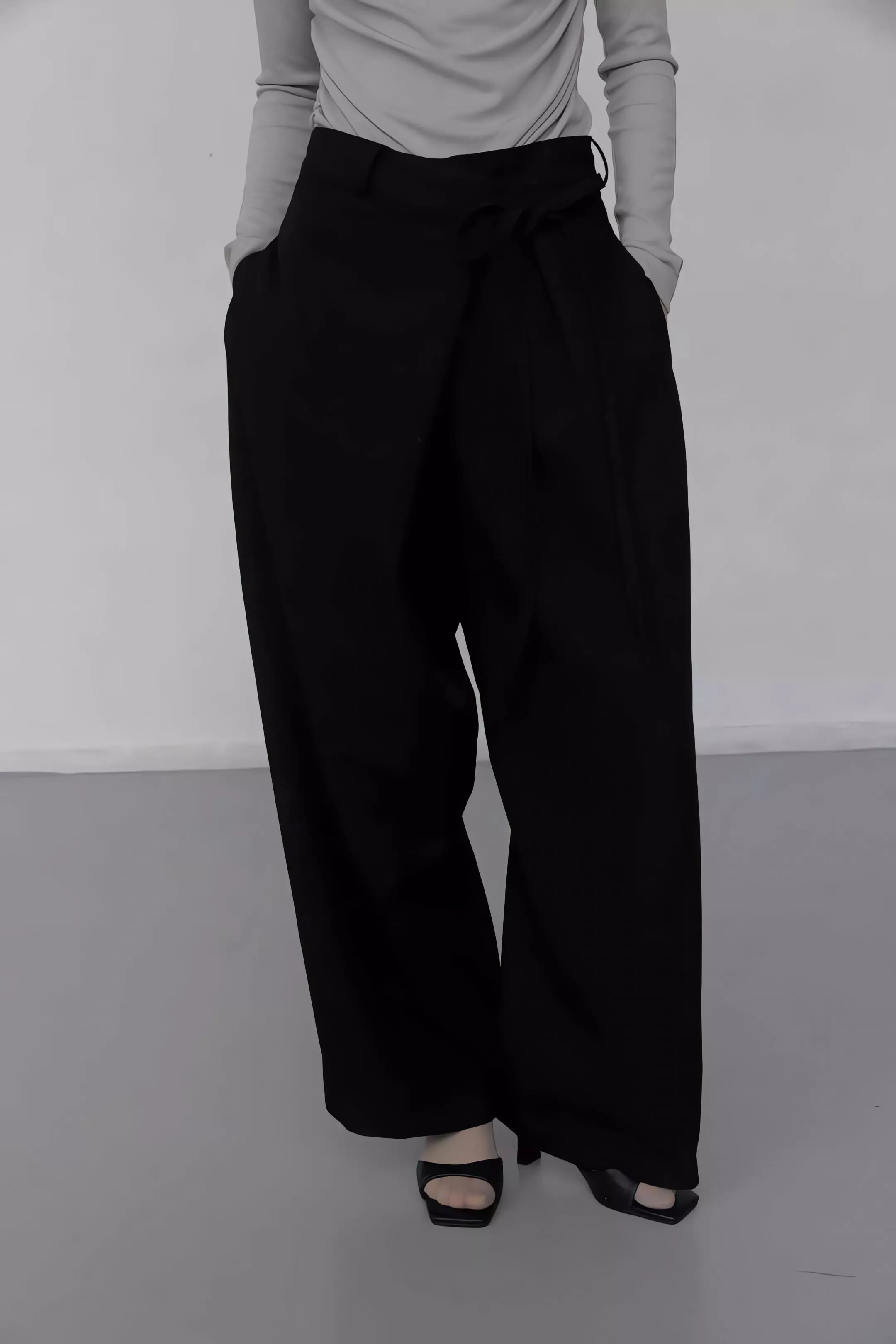 Foundation 高腰不對稱繫帶垂墜感西裝寬褲