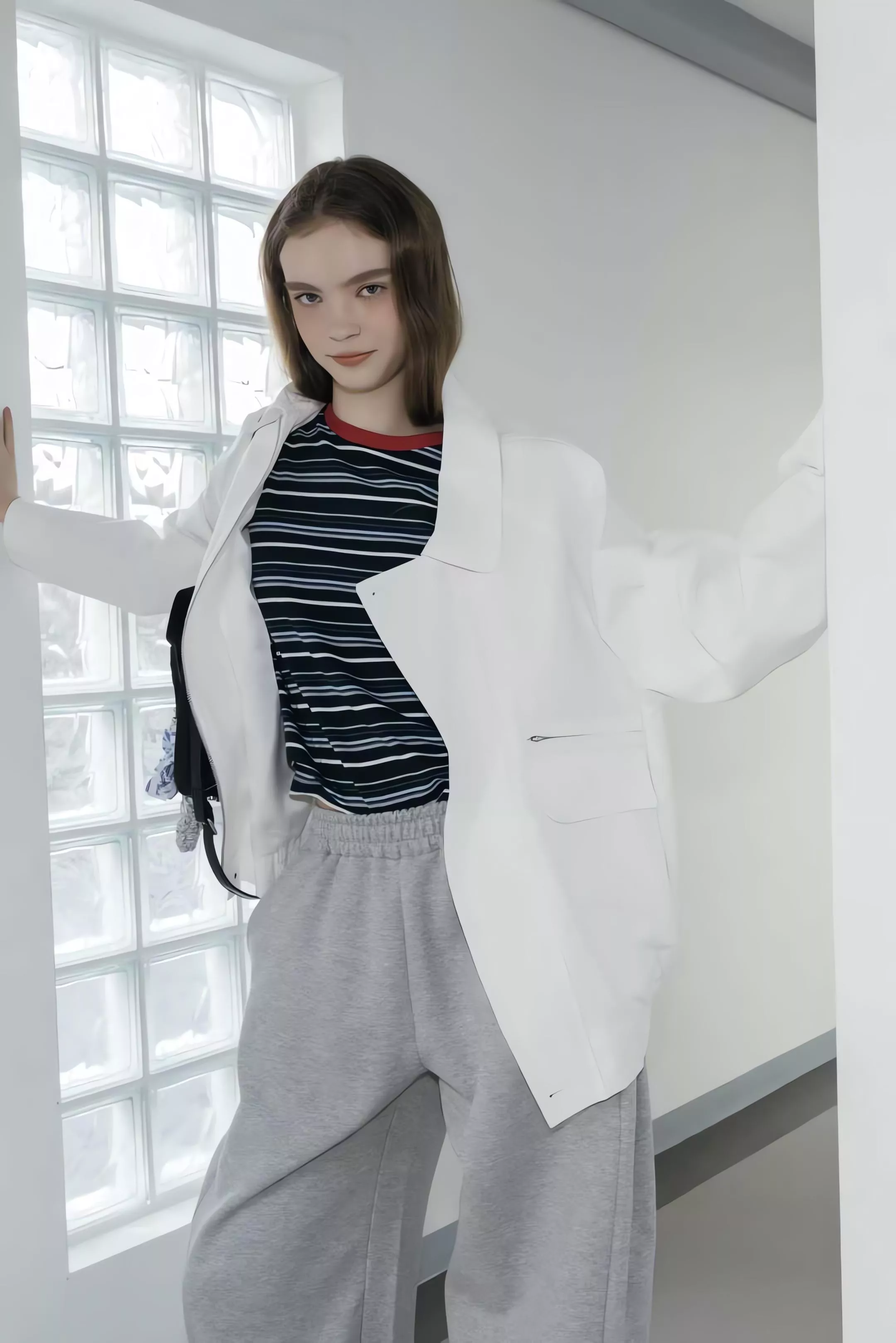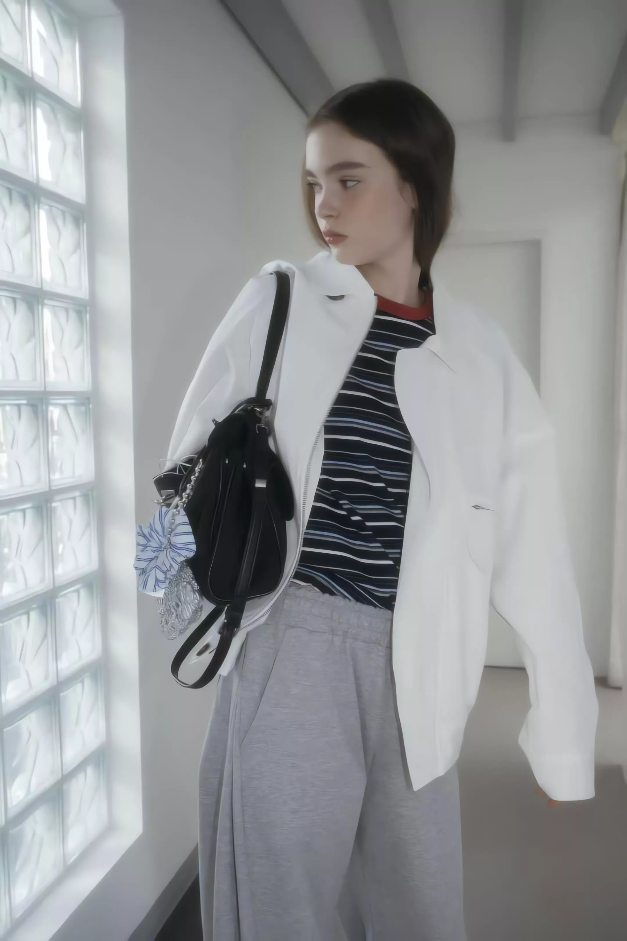 不論是與休閒棉褲成套穿搭,展現慵懶的居家美學;還是混搭工裝長褲,走入城市街頭,這四色條紋,就是你衣櫥裡最不需要思考、卻最有質感的存在。