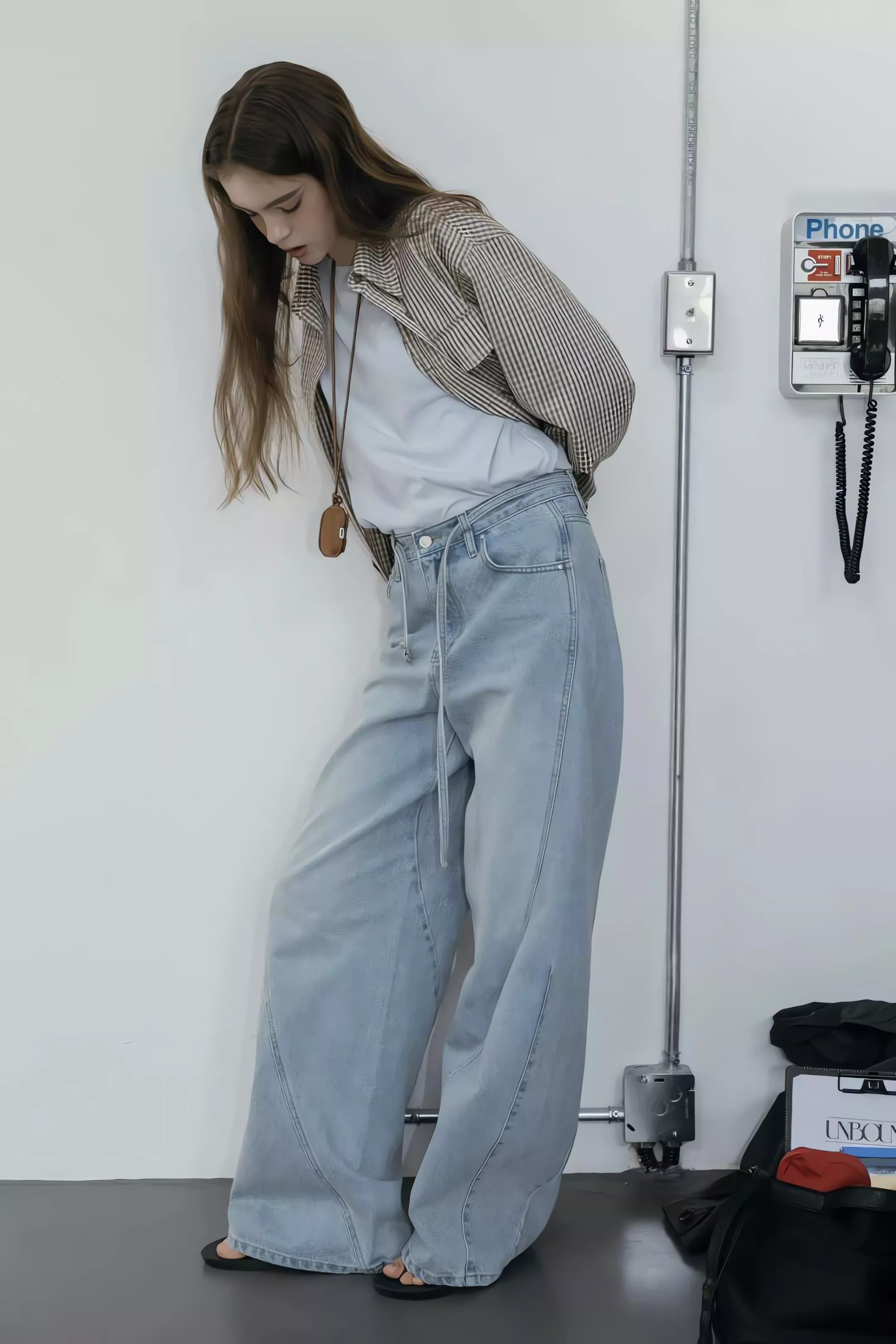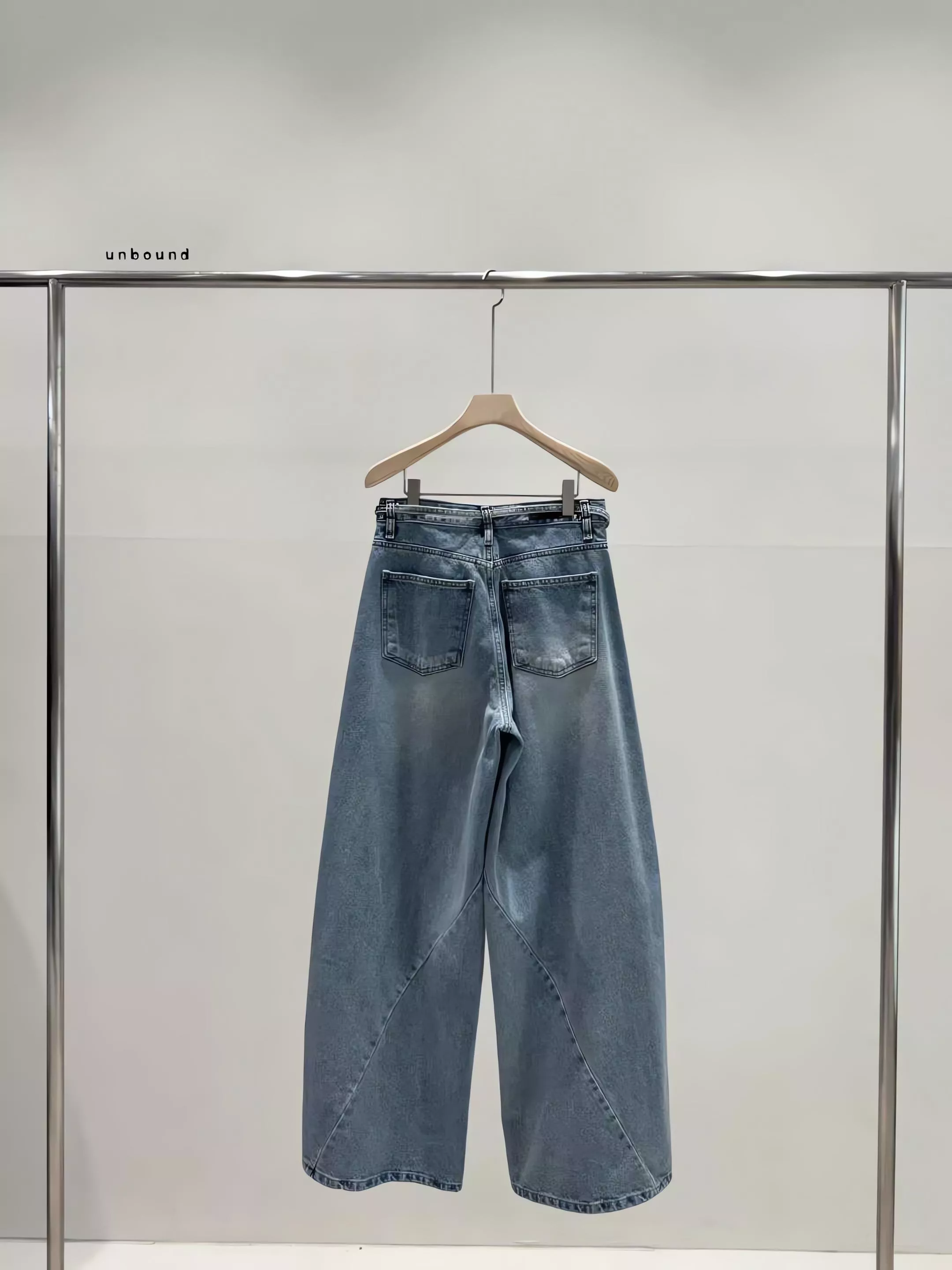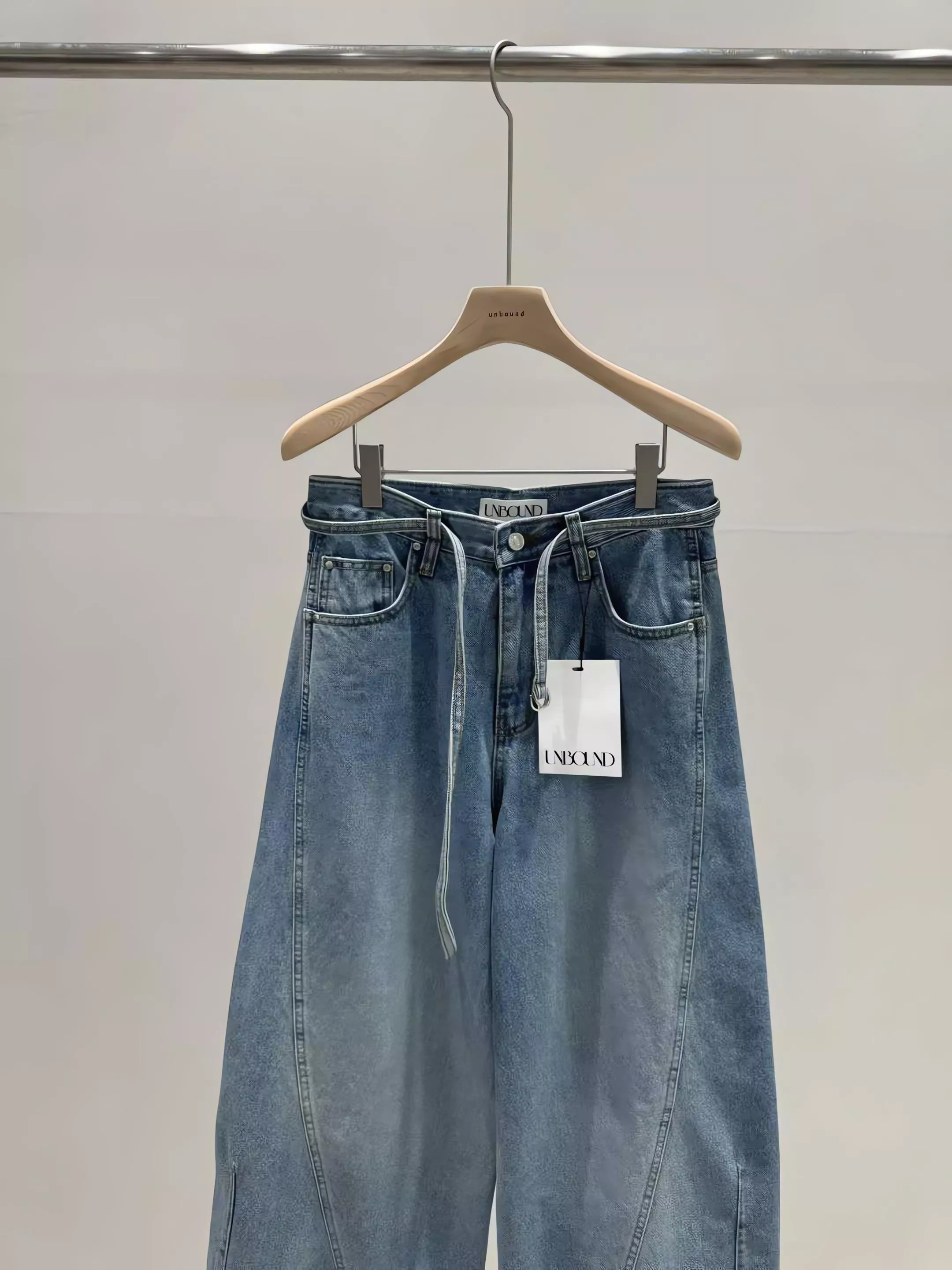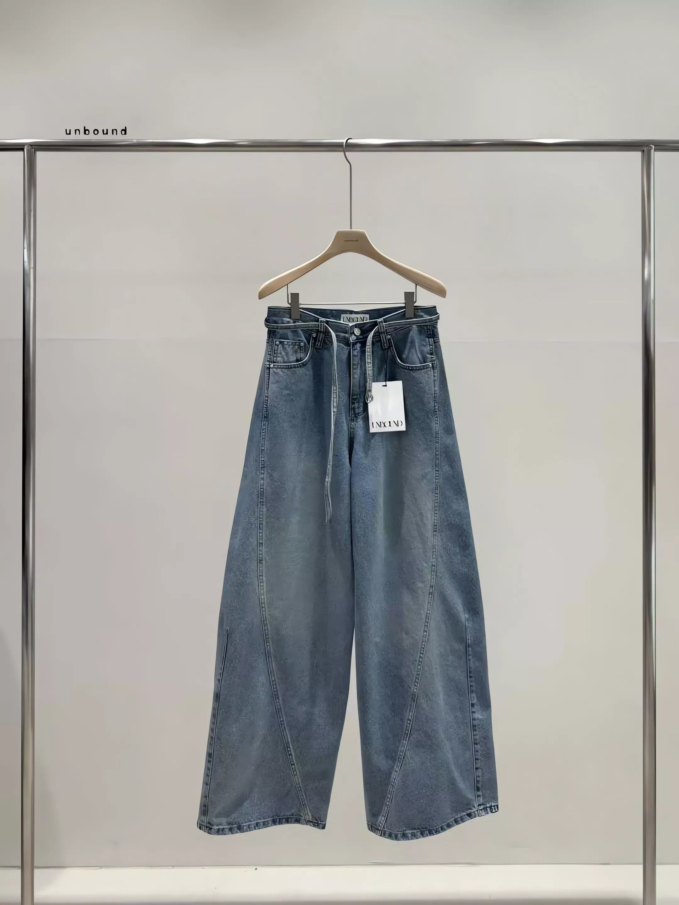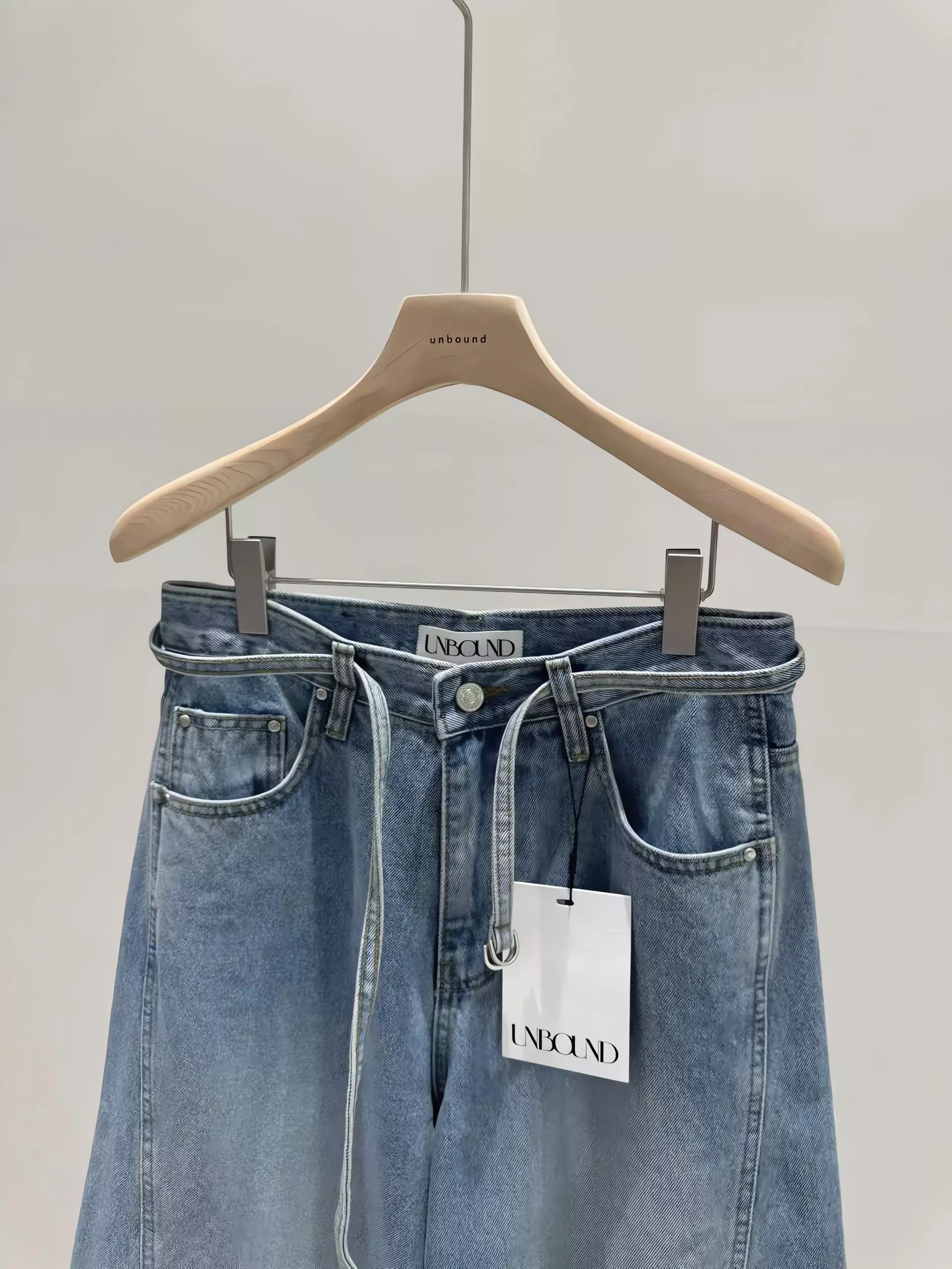 unbound 線條感顯瘦腰帶水洗牛仔寬褲