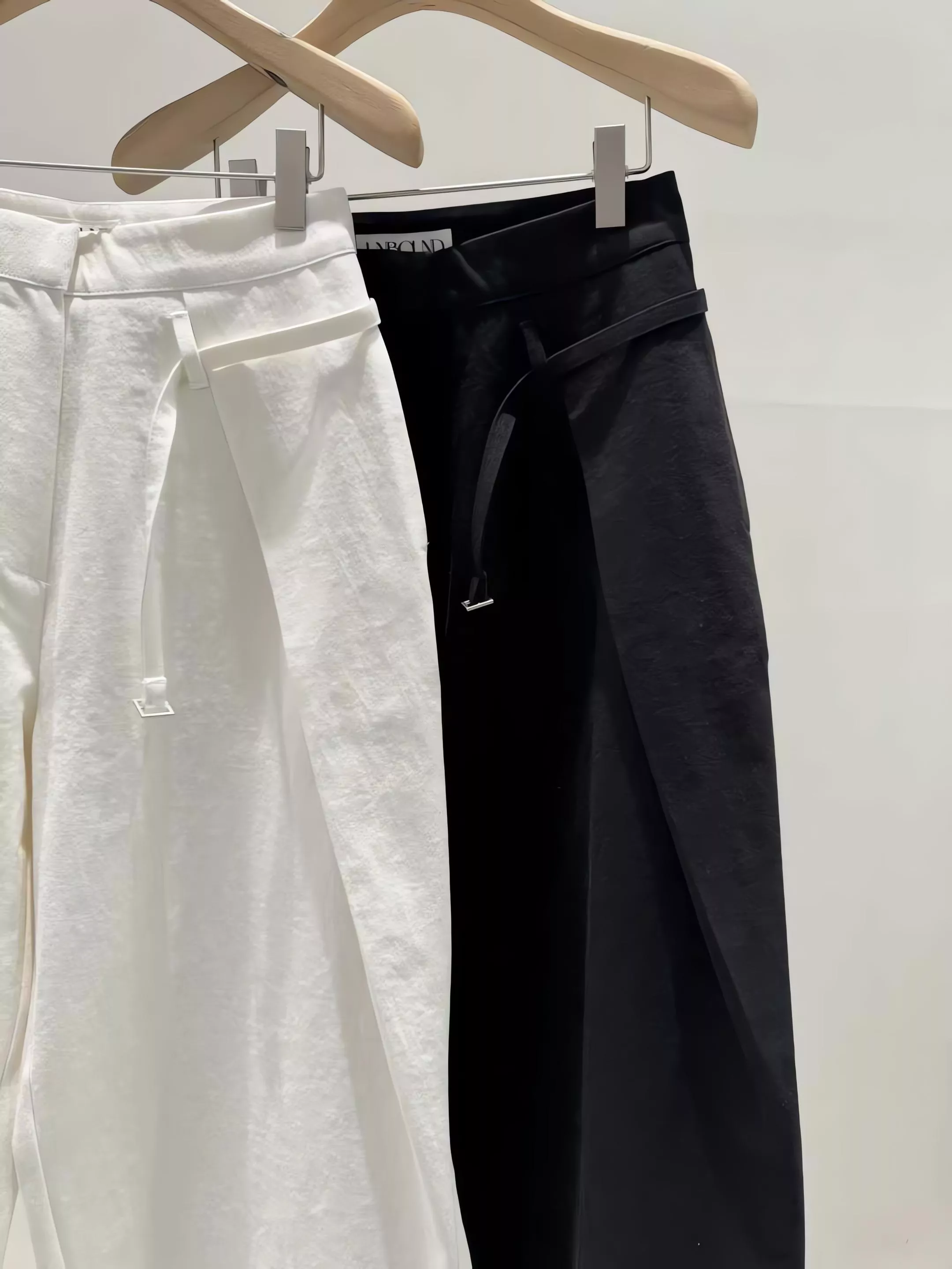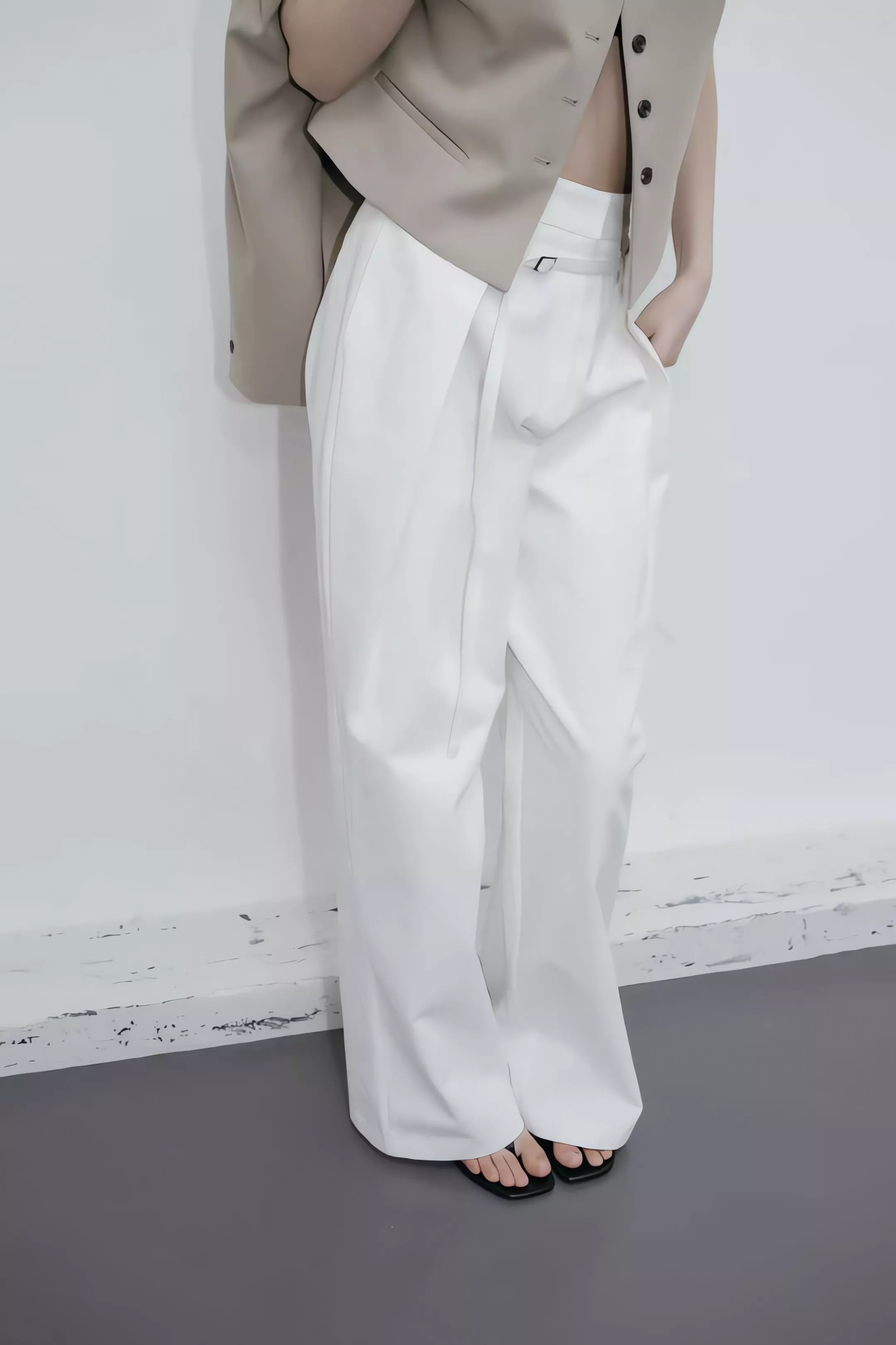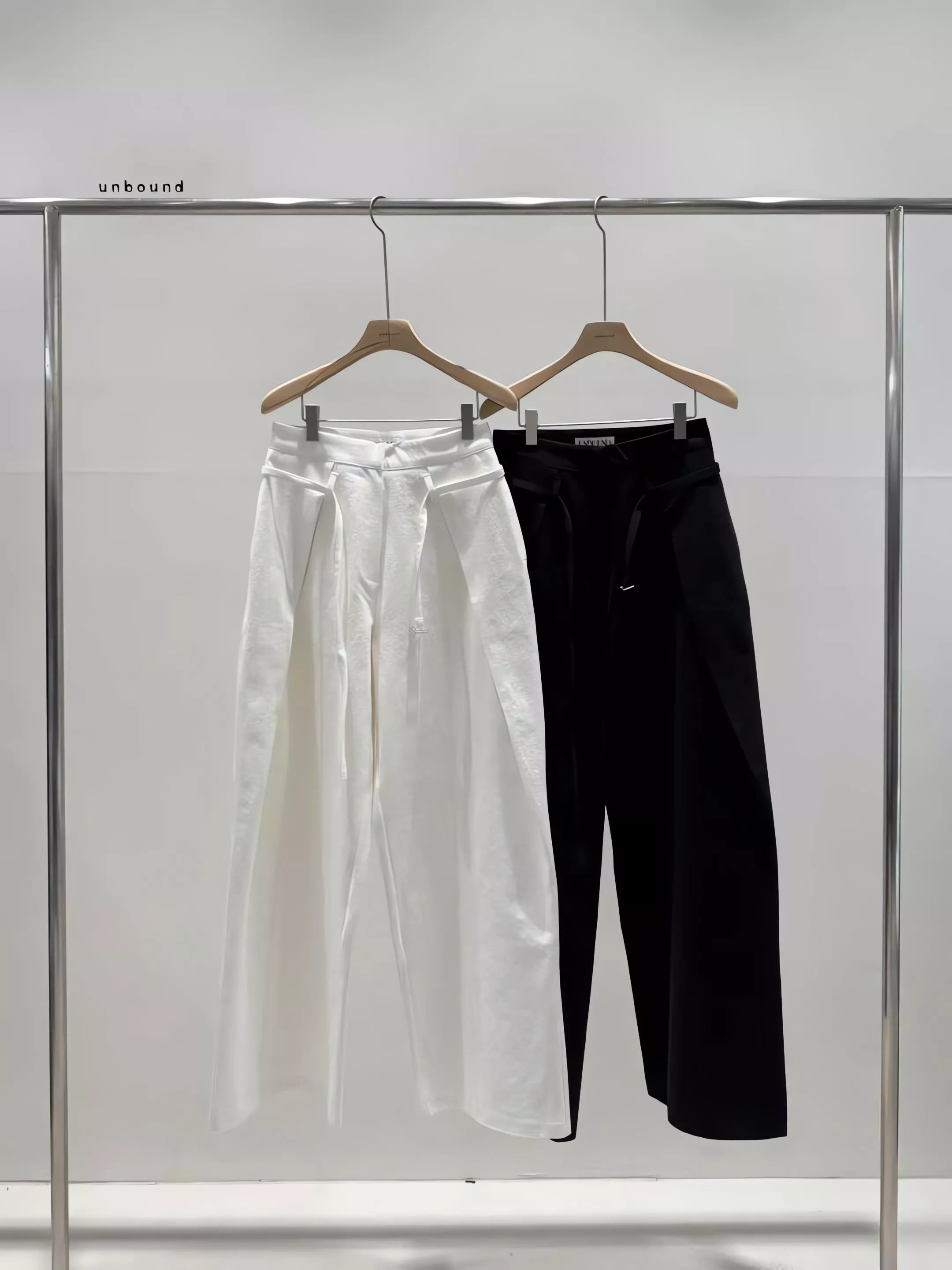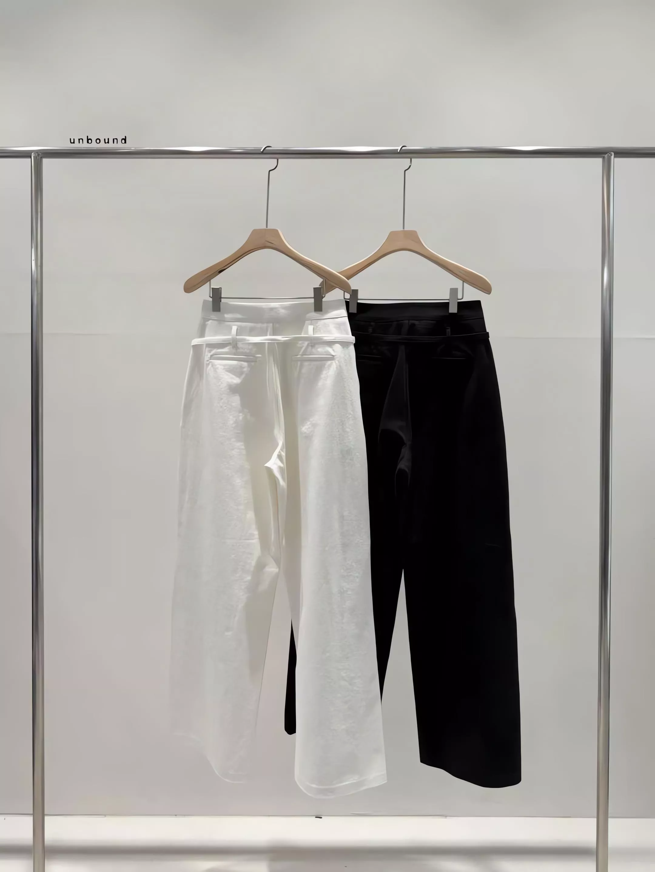 unbound 都會簡約 打褶腰帶修身高腰寬褲