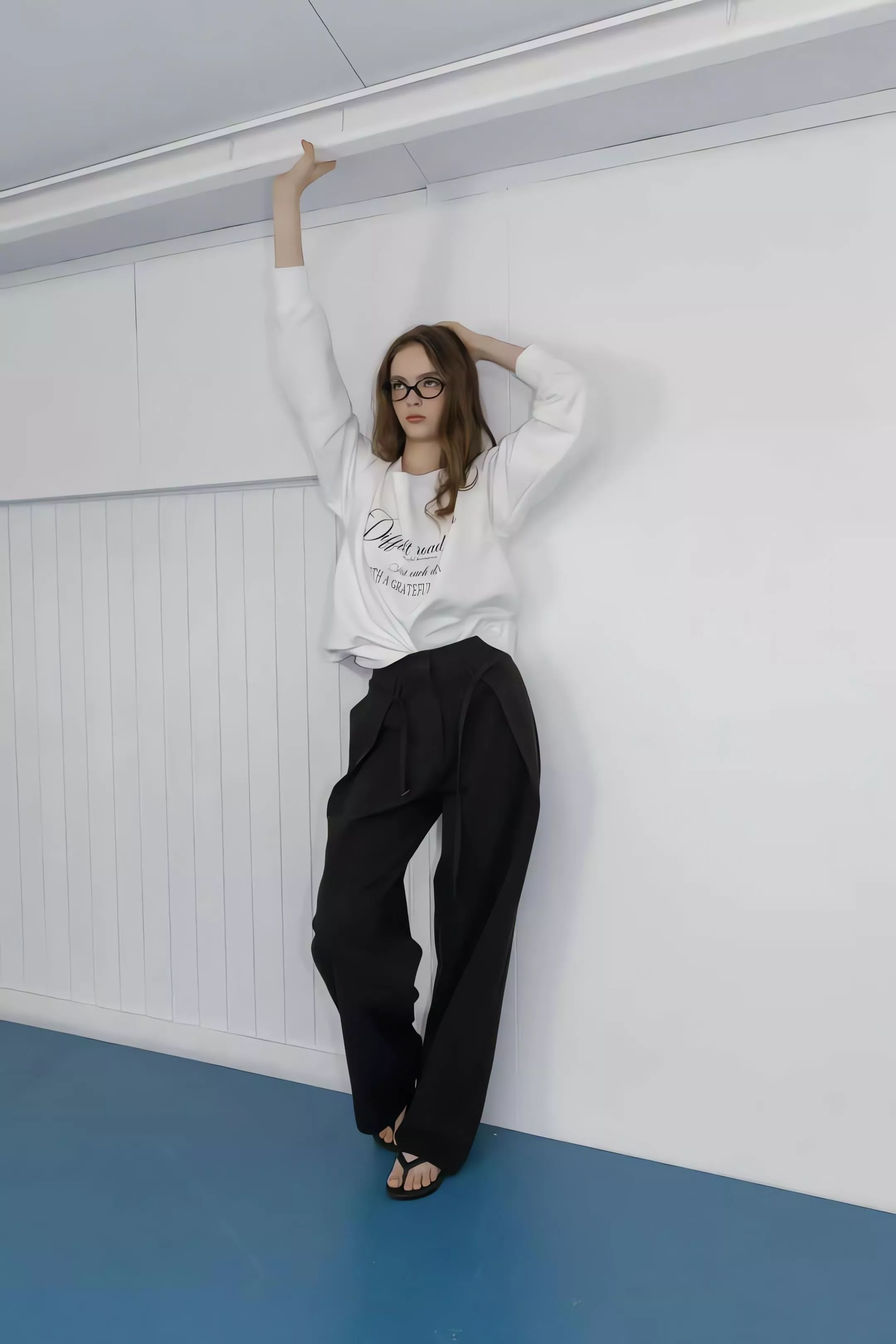 這款寬褲以流暢的打褶剪裁,將下半身線條無限延伸。高腰設計搭配專屬同色系腰帶,不僅勾勒出纖細腰身,更散發出一種內斂的知性美。垂墜感極佳的布料,讓妳在行走間自帶優雅律動感,輕鬆駕馭每一天的都會生活。