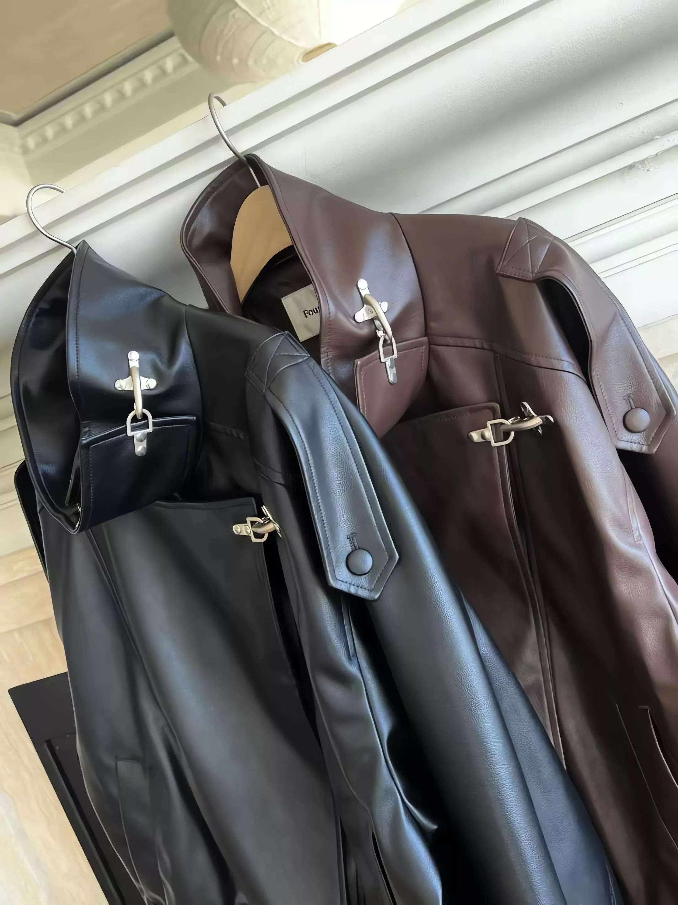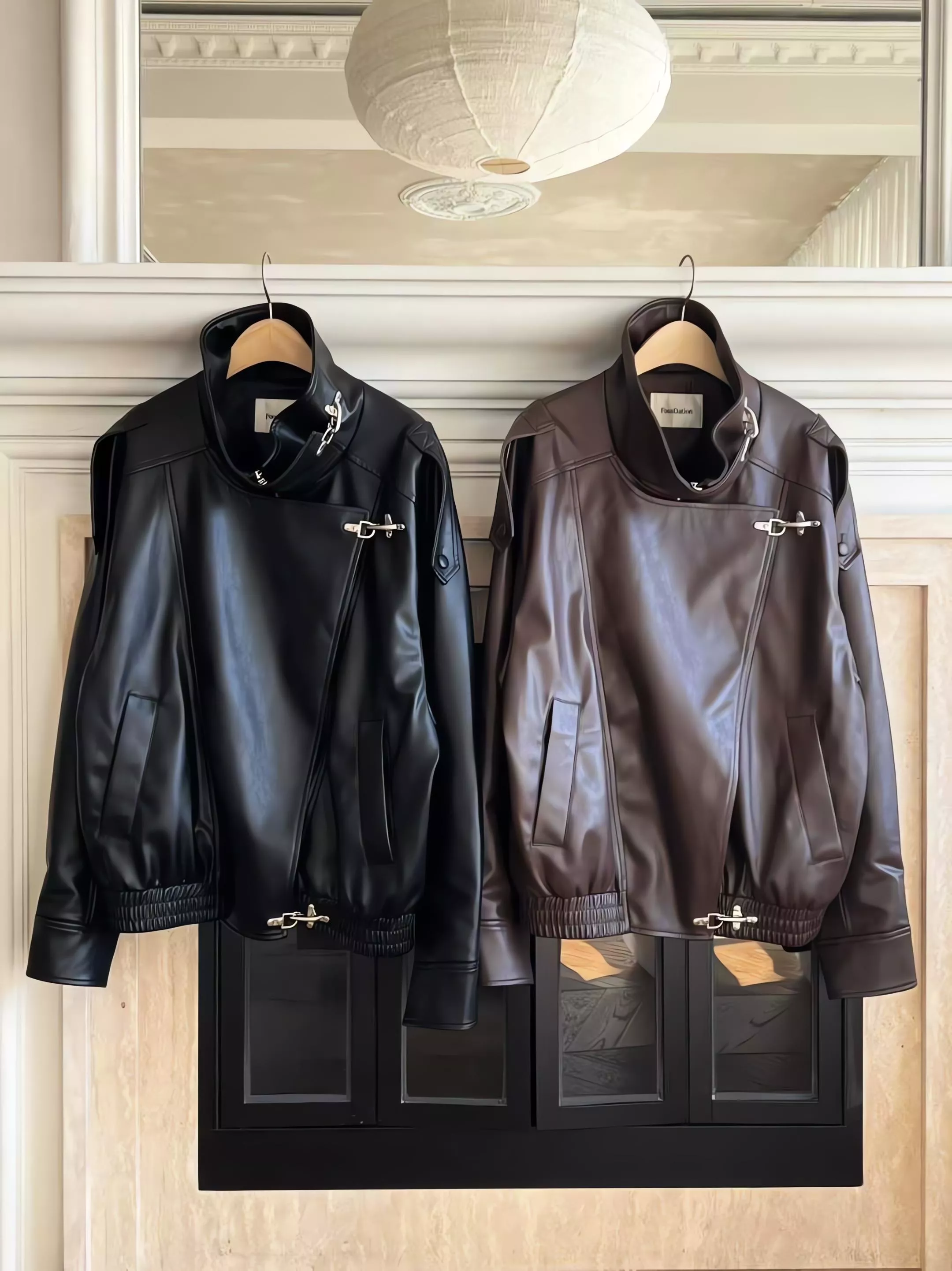 Foundation 斜扣立領皮革騎士外套 皮衣外套