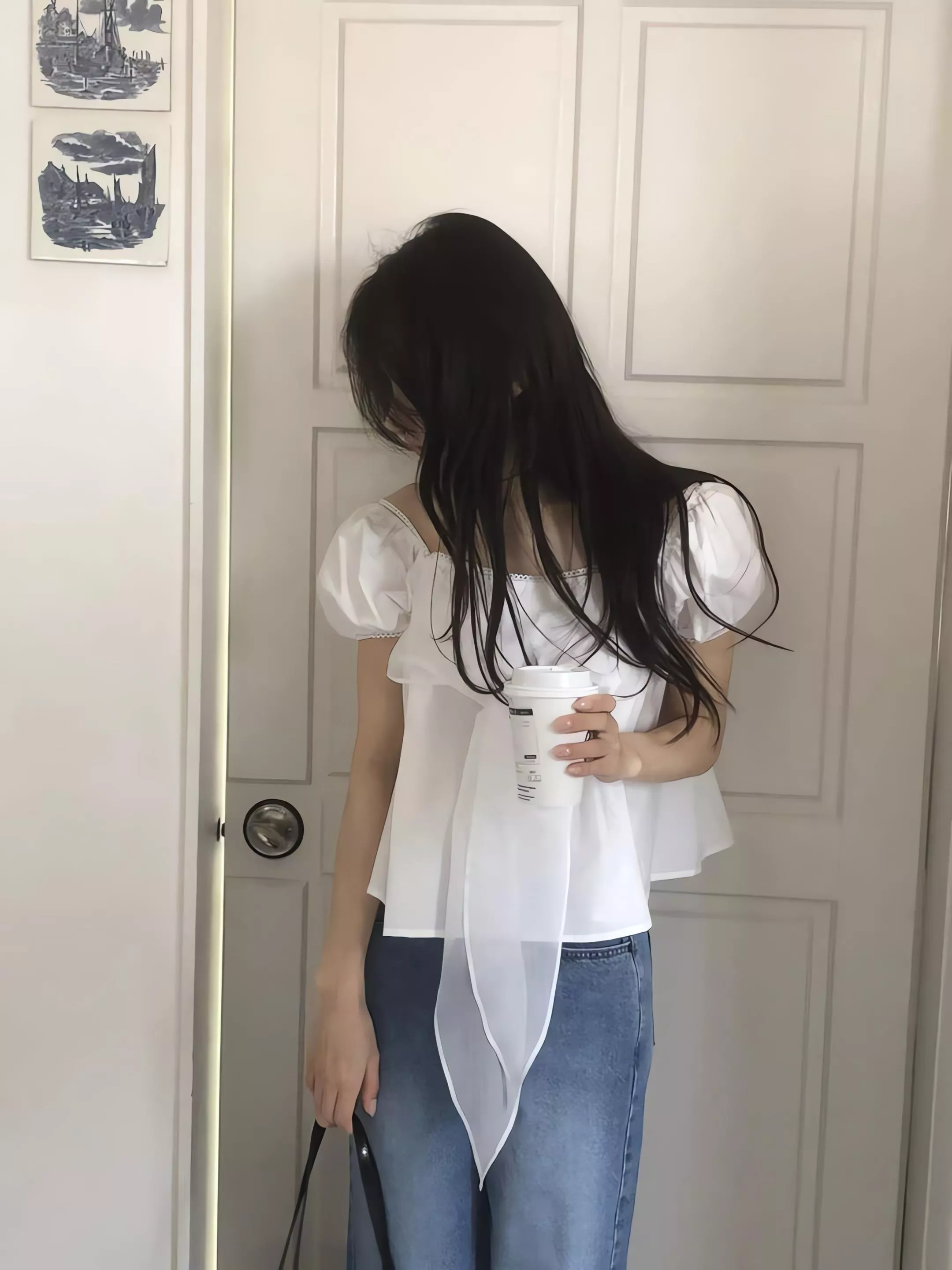 前片的長綁帶設計順著身形垂落,線條很安靜,但存在感剛剛好,不會過於可愛,反而讓整體多了一點有距離感的優雅。