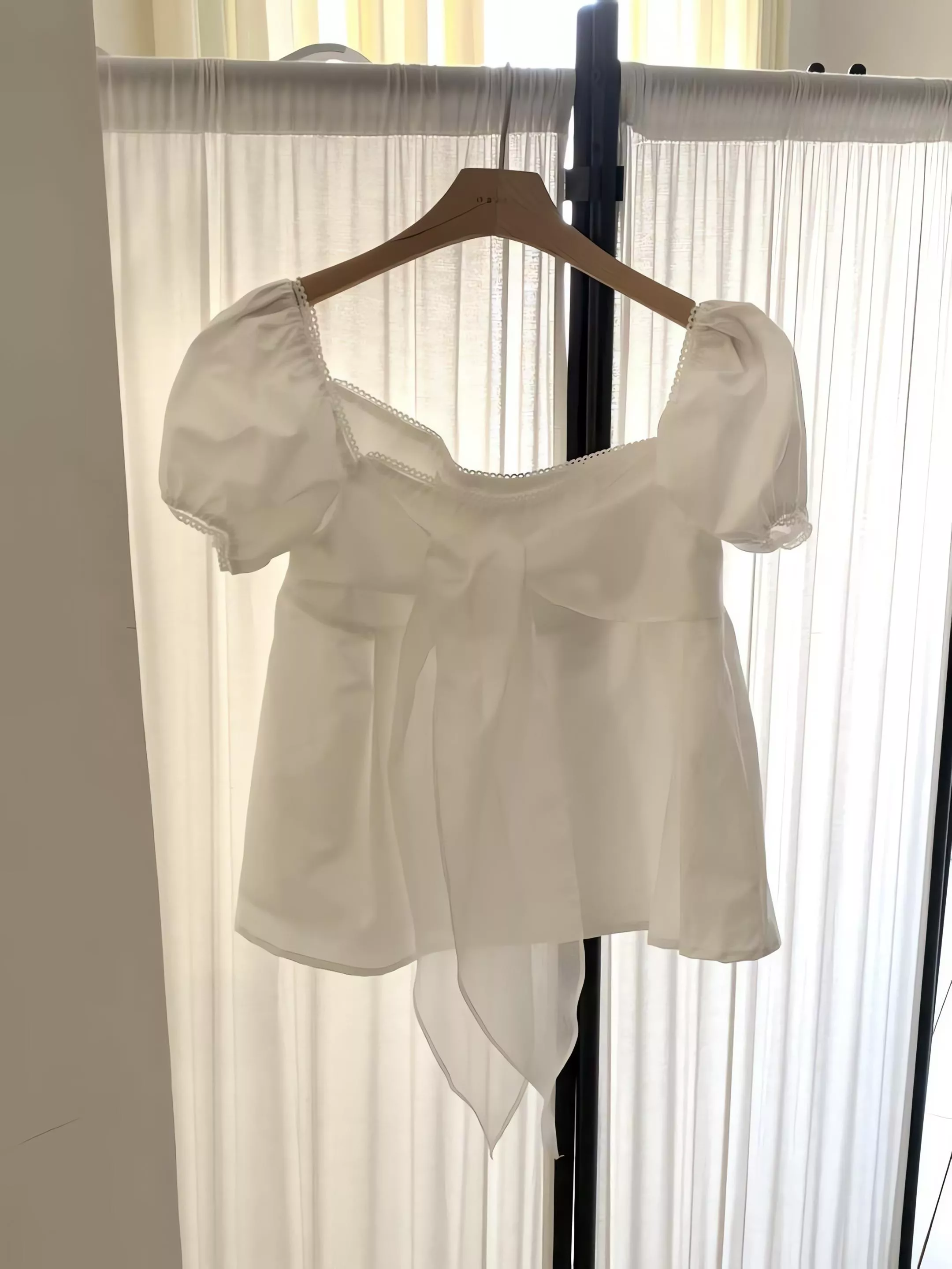 objet 方領綁帶蝴蝶結泡泡袖上衣
