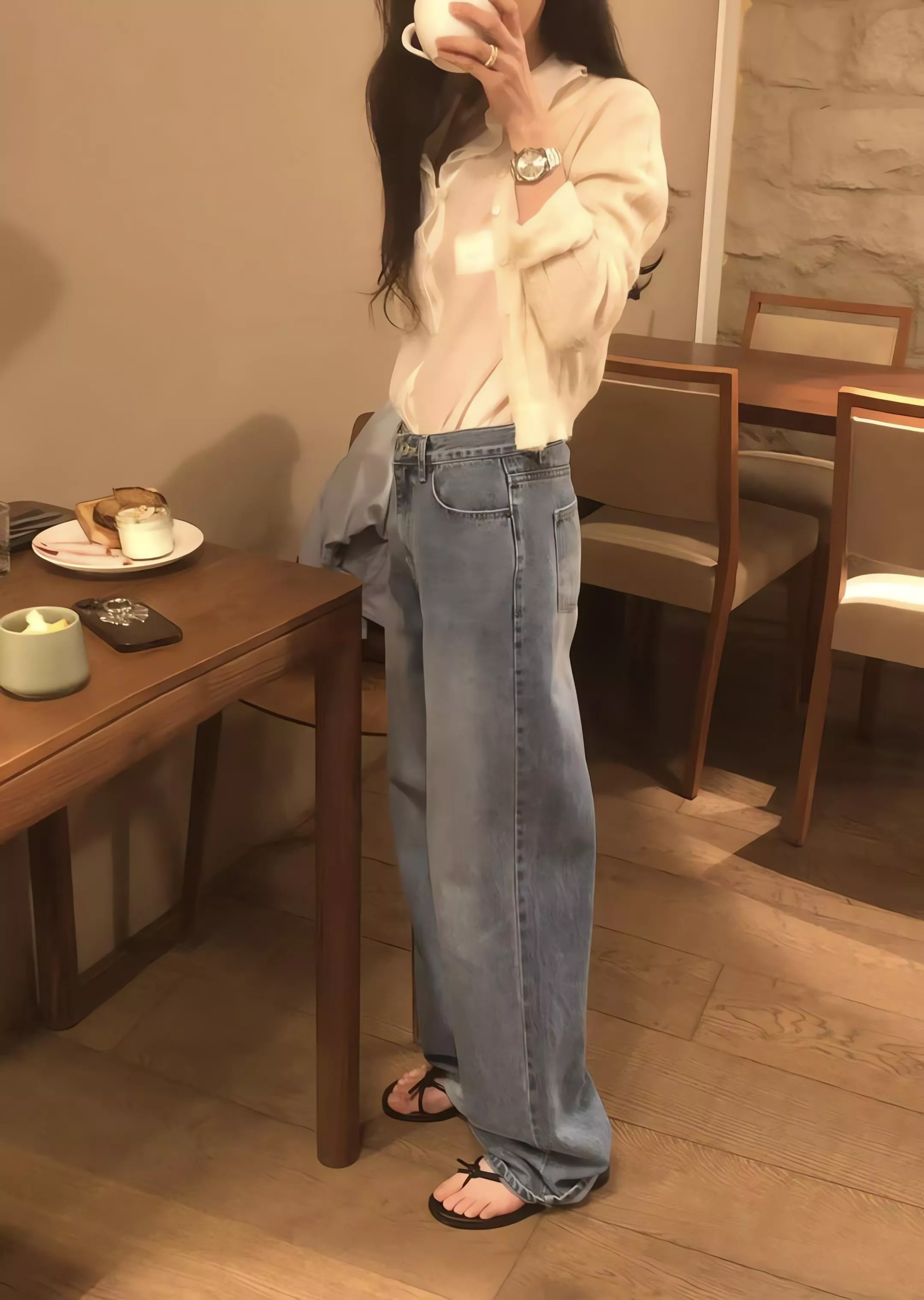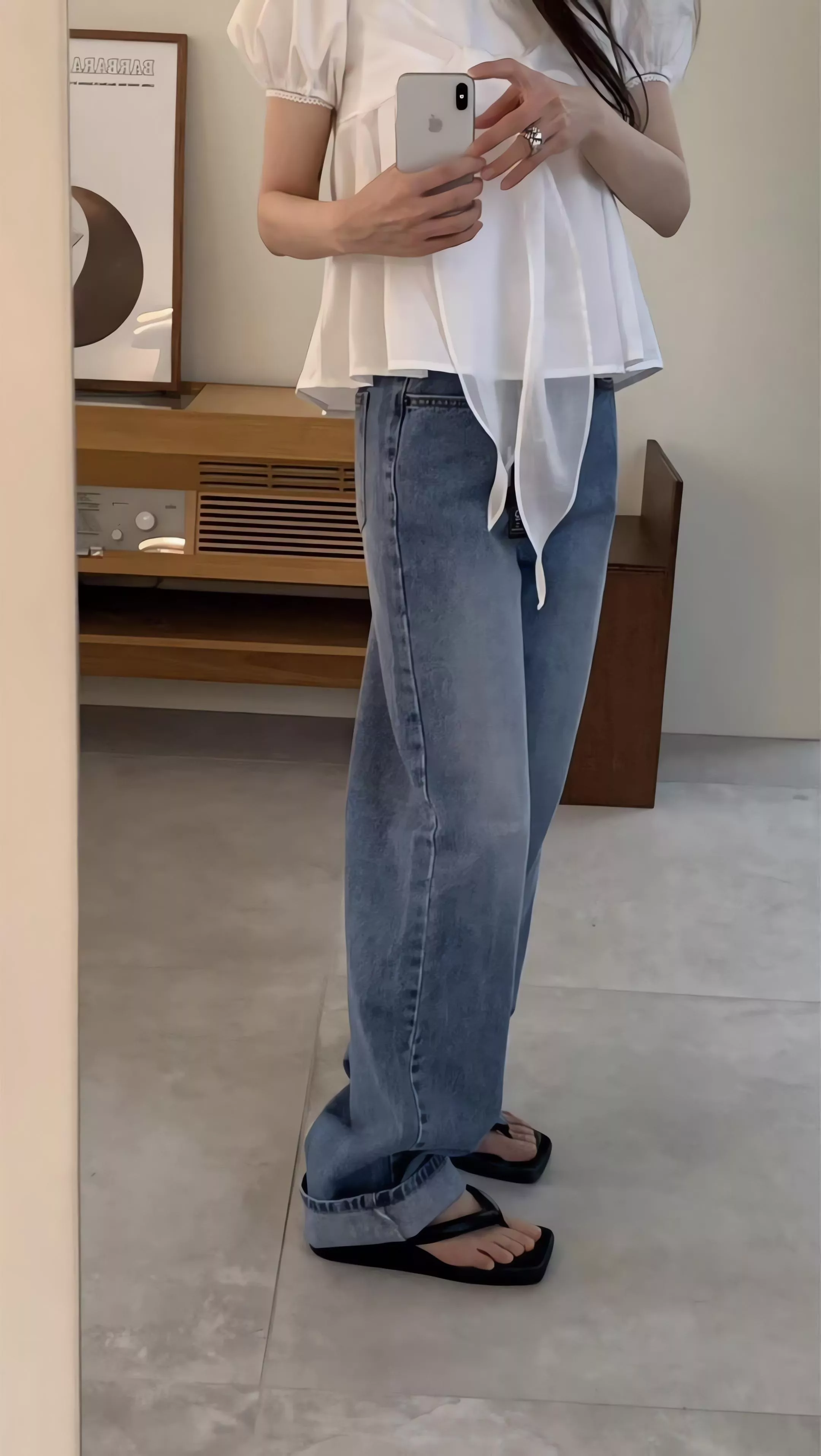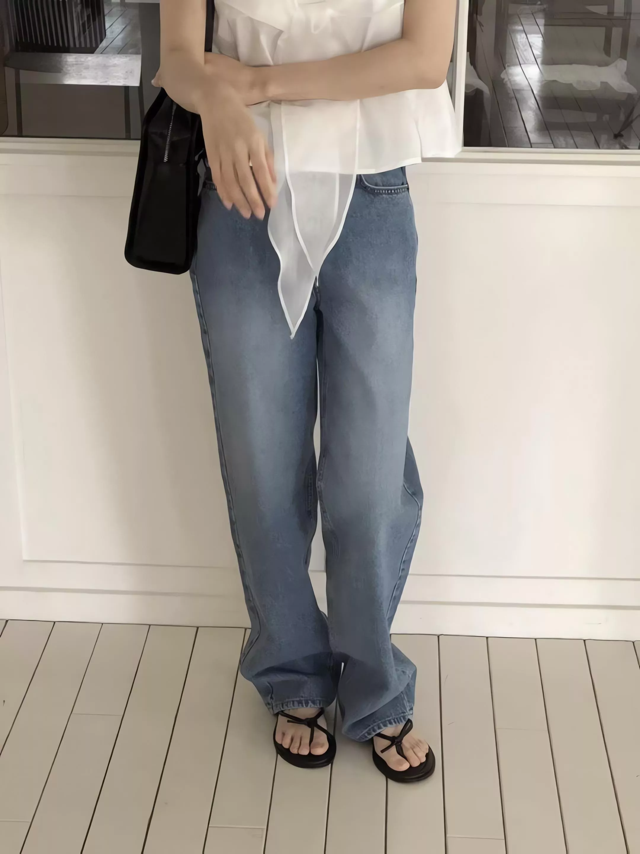布料厚度適中,不厚重也不過薄,日常穿著沒有負擔。一年四季都能輕鬆搭配,和各種上衣搭都很順,是一條會一直想拿出來穿的牛仔褲🖤