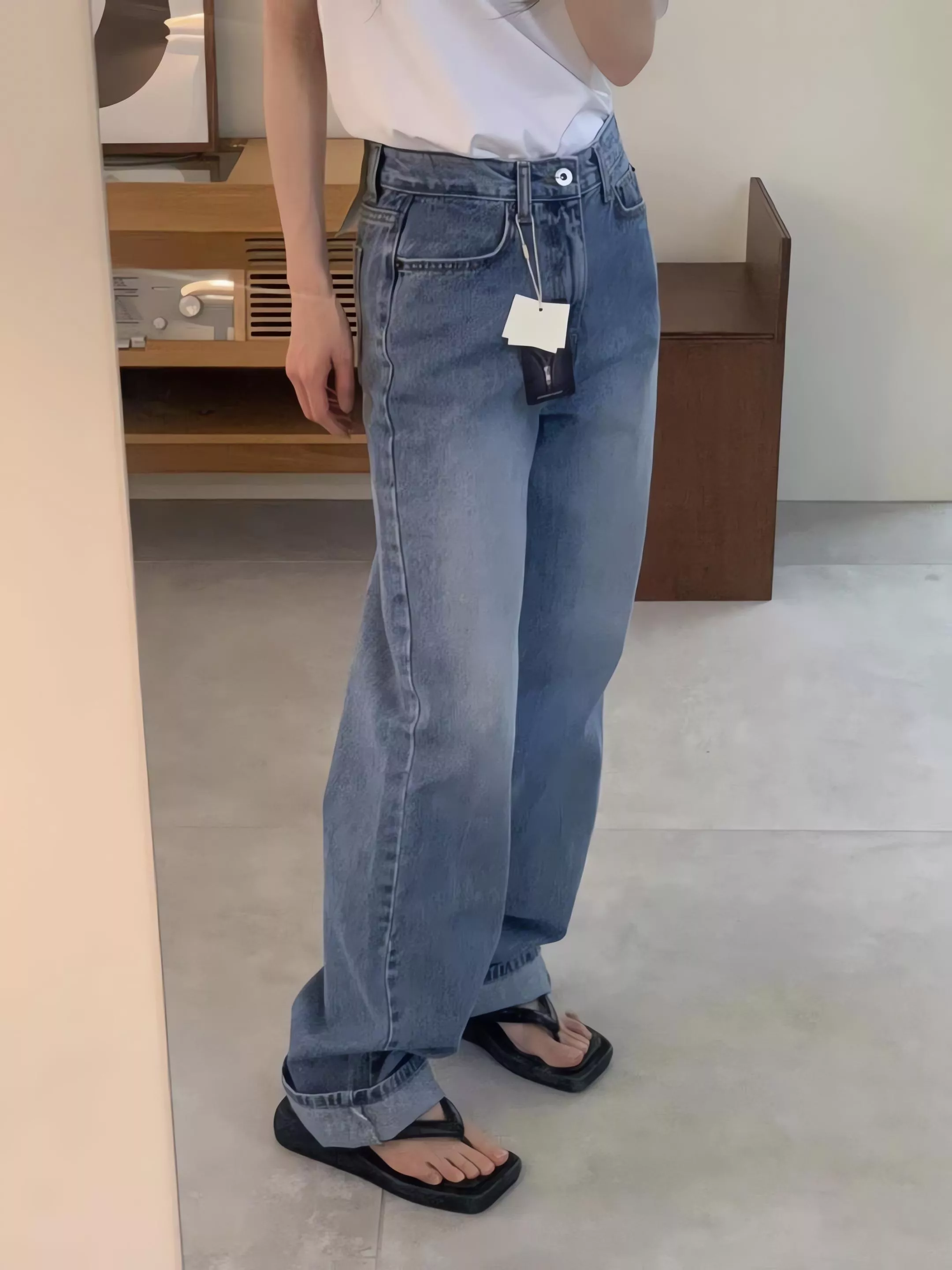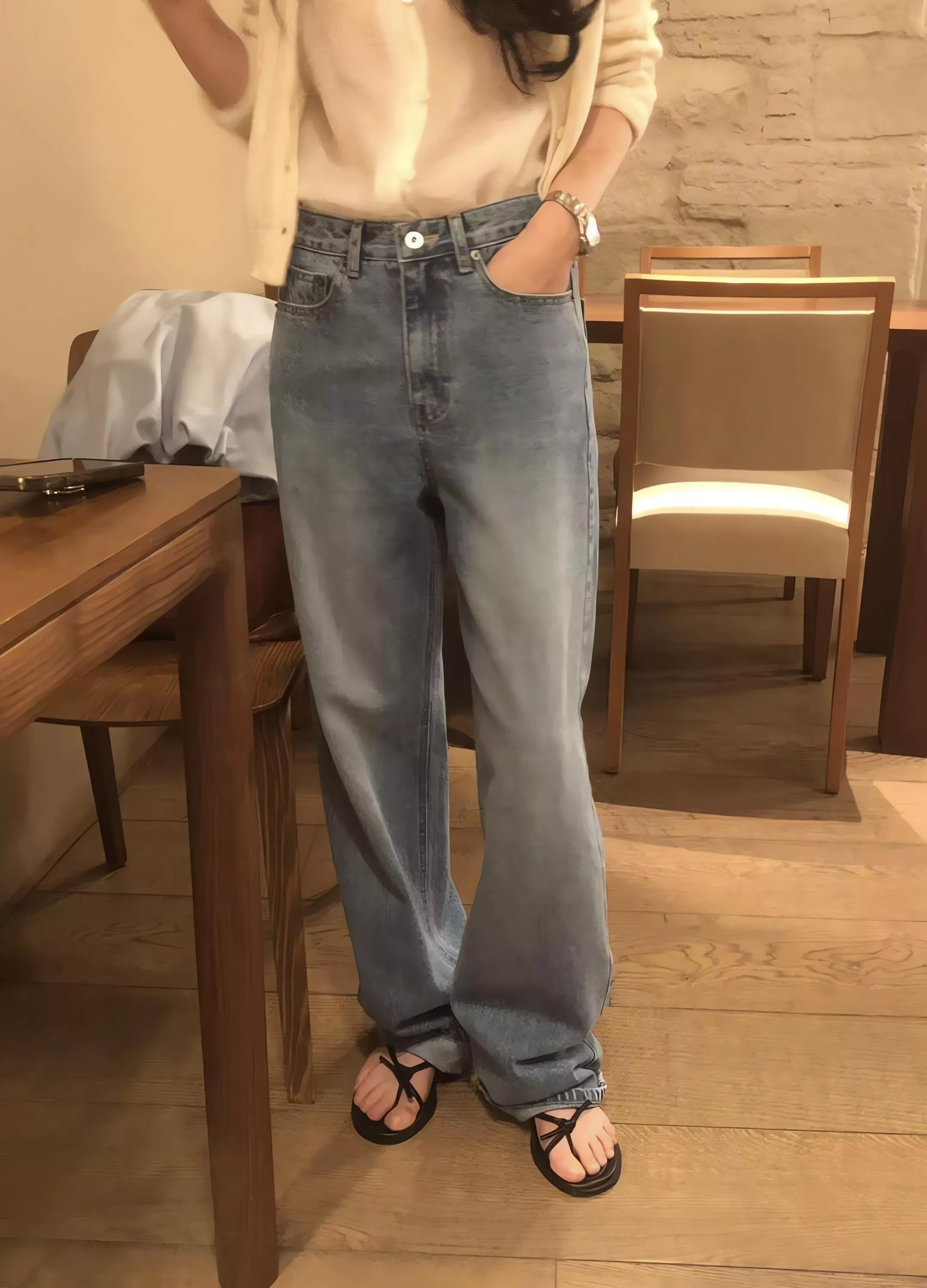 objet 溫柔個性水洗高腰直筒牛仔褲