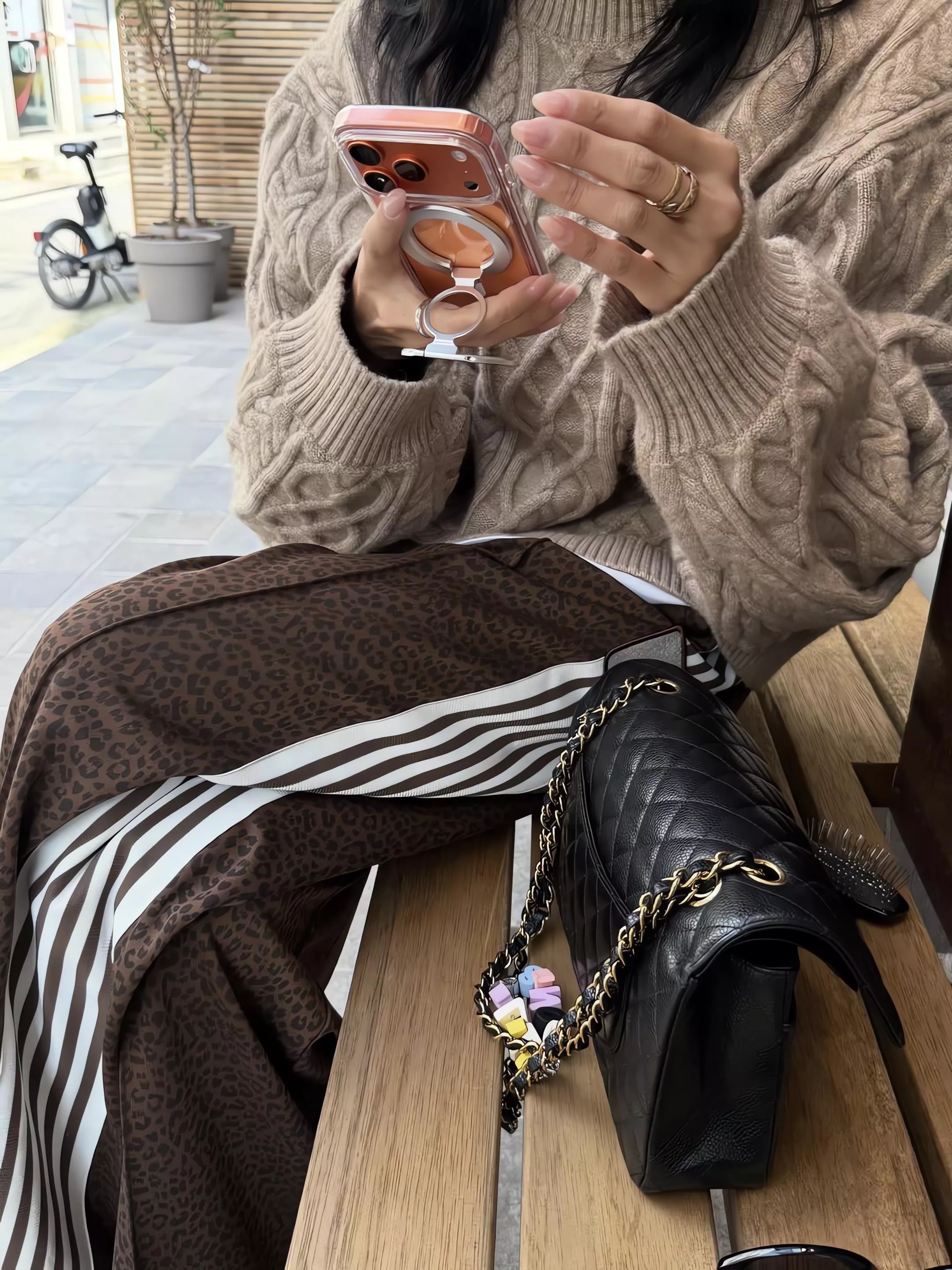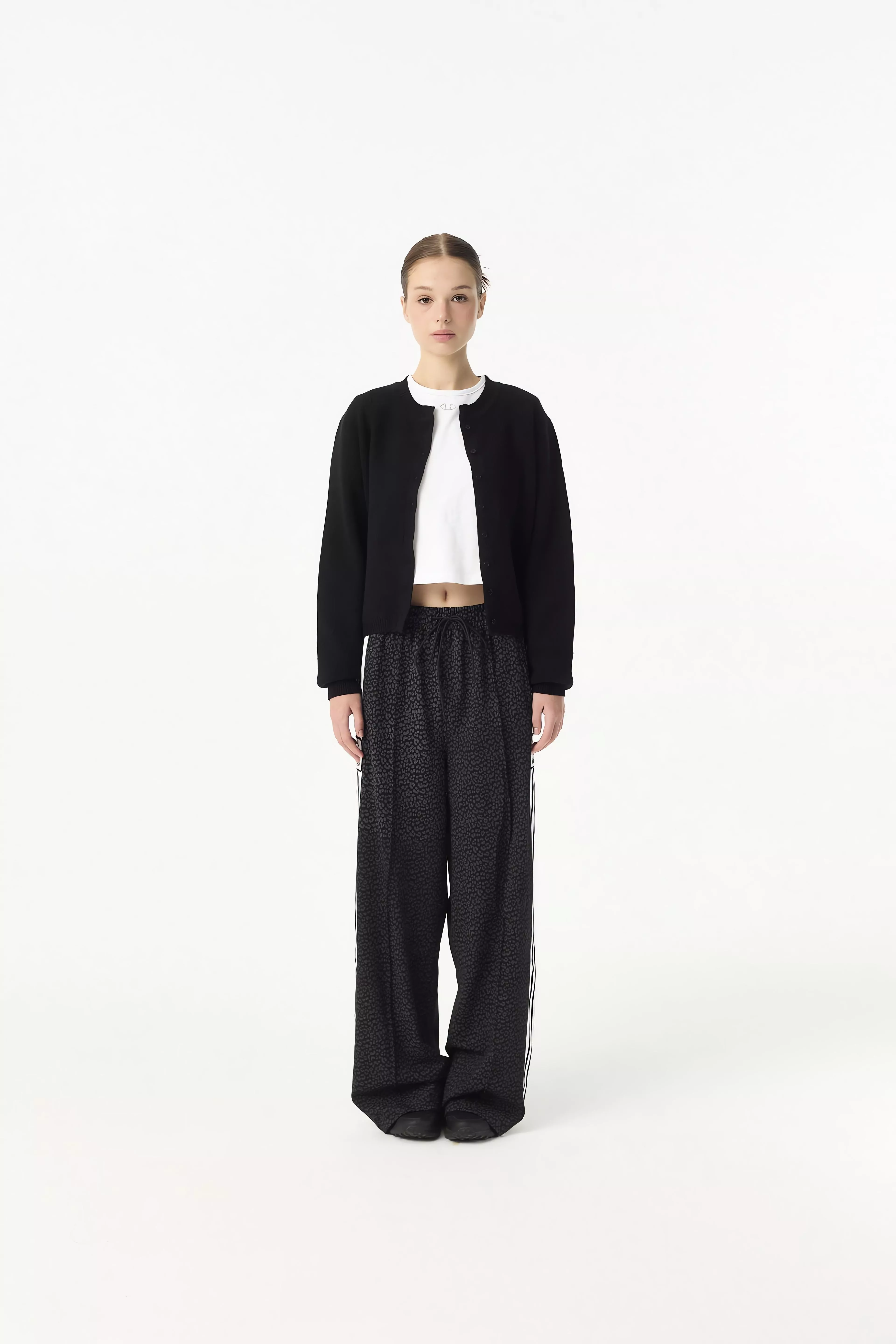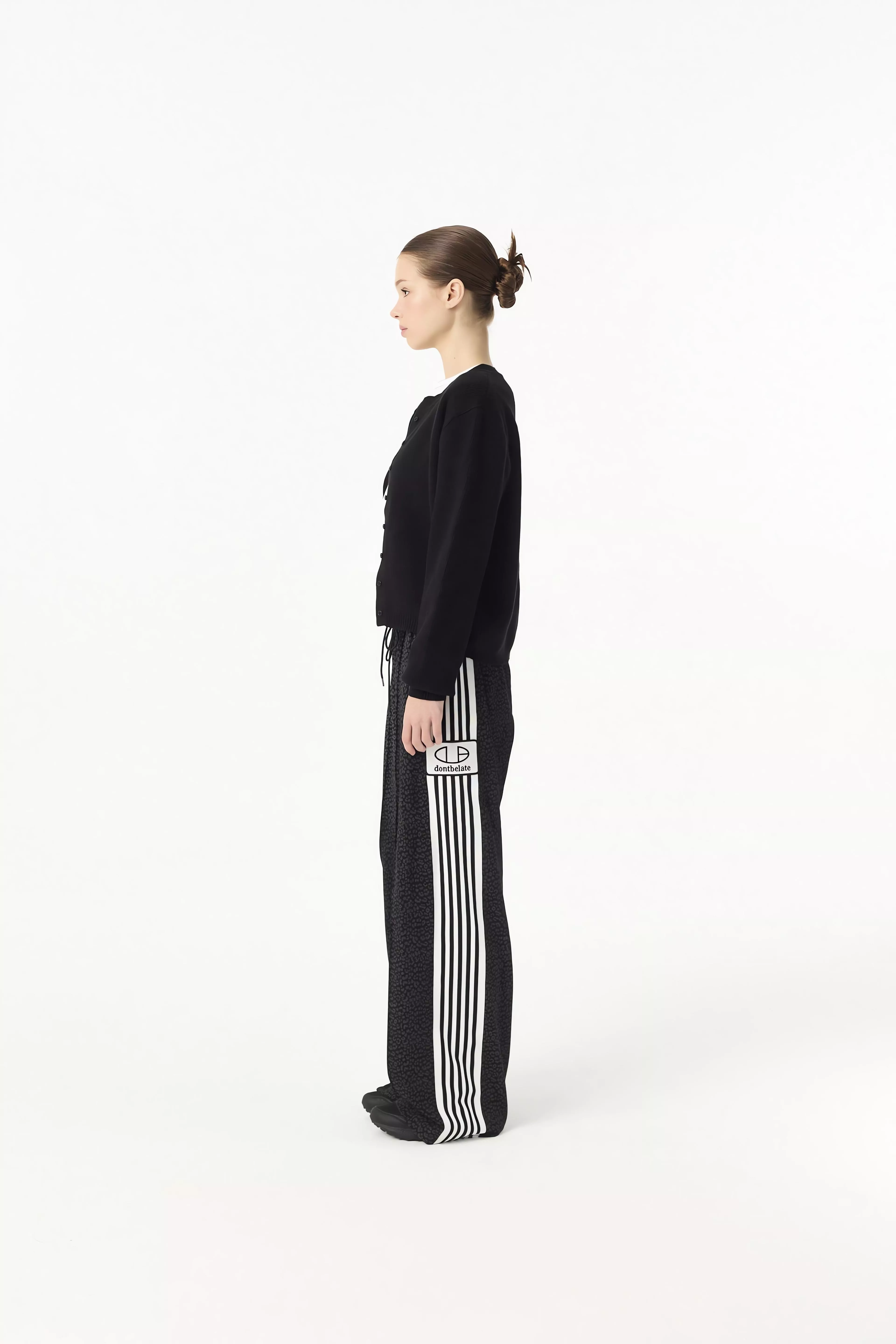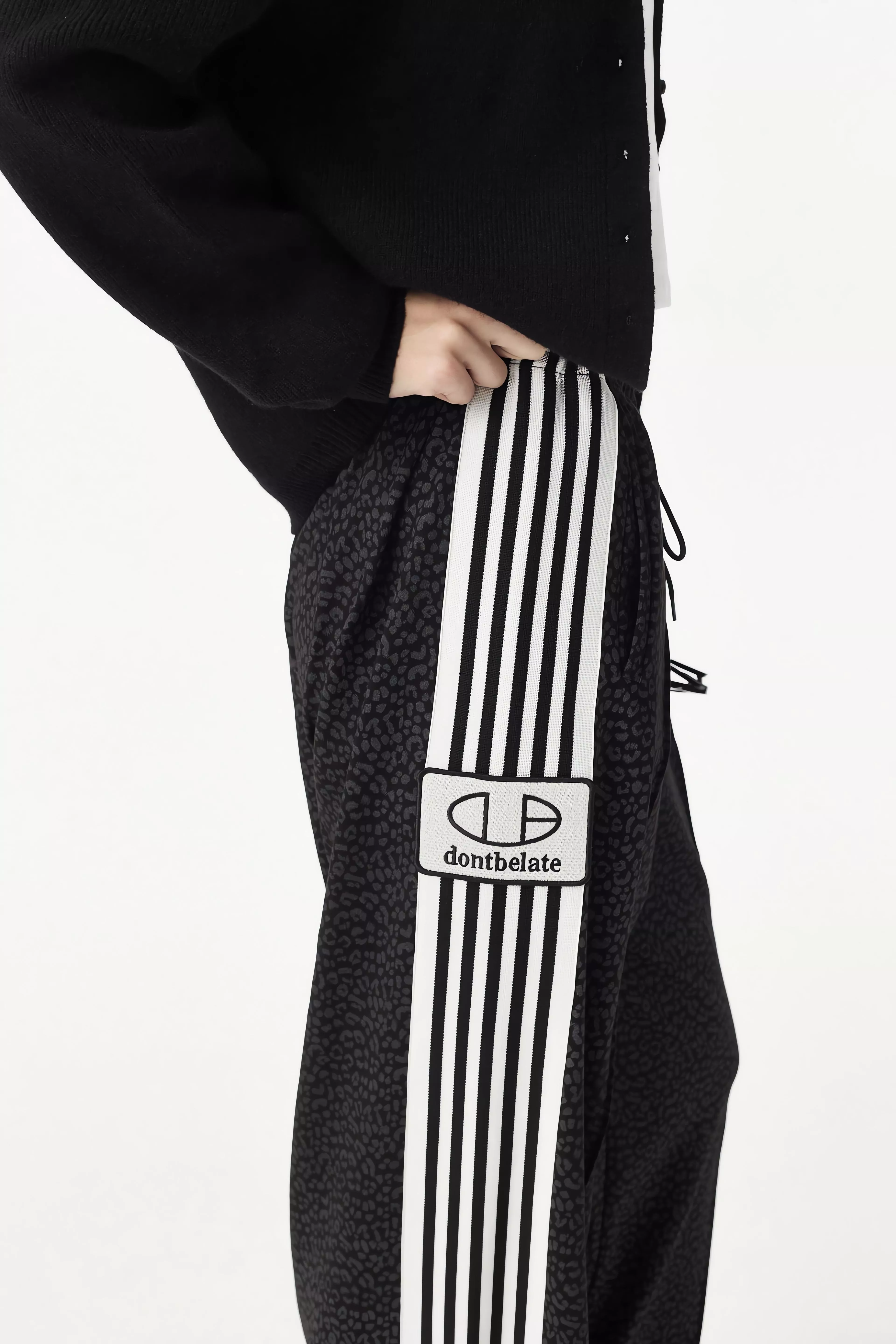 DONTBELATE 豹紋款 條紋Logo側標運動感休閒長褲 鬆緊腰長褲