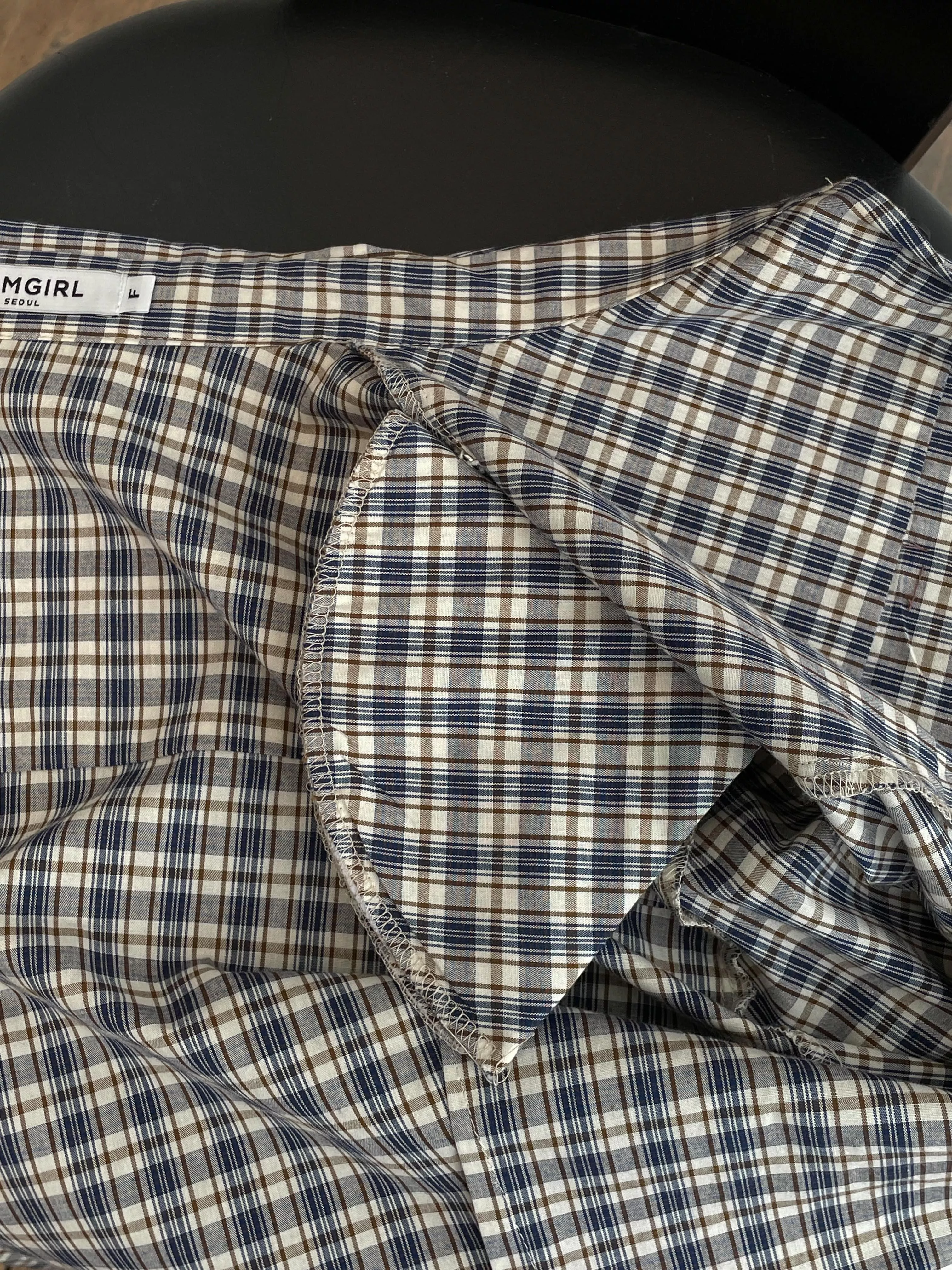 Tom Girl 短版收腰格紋襯衫 可拆式墊肩