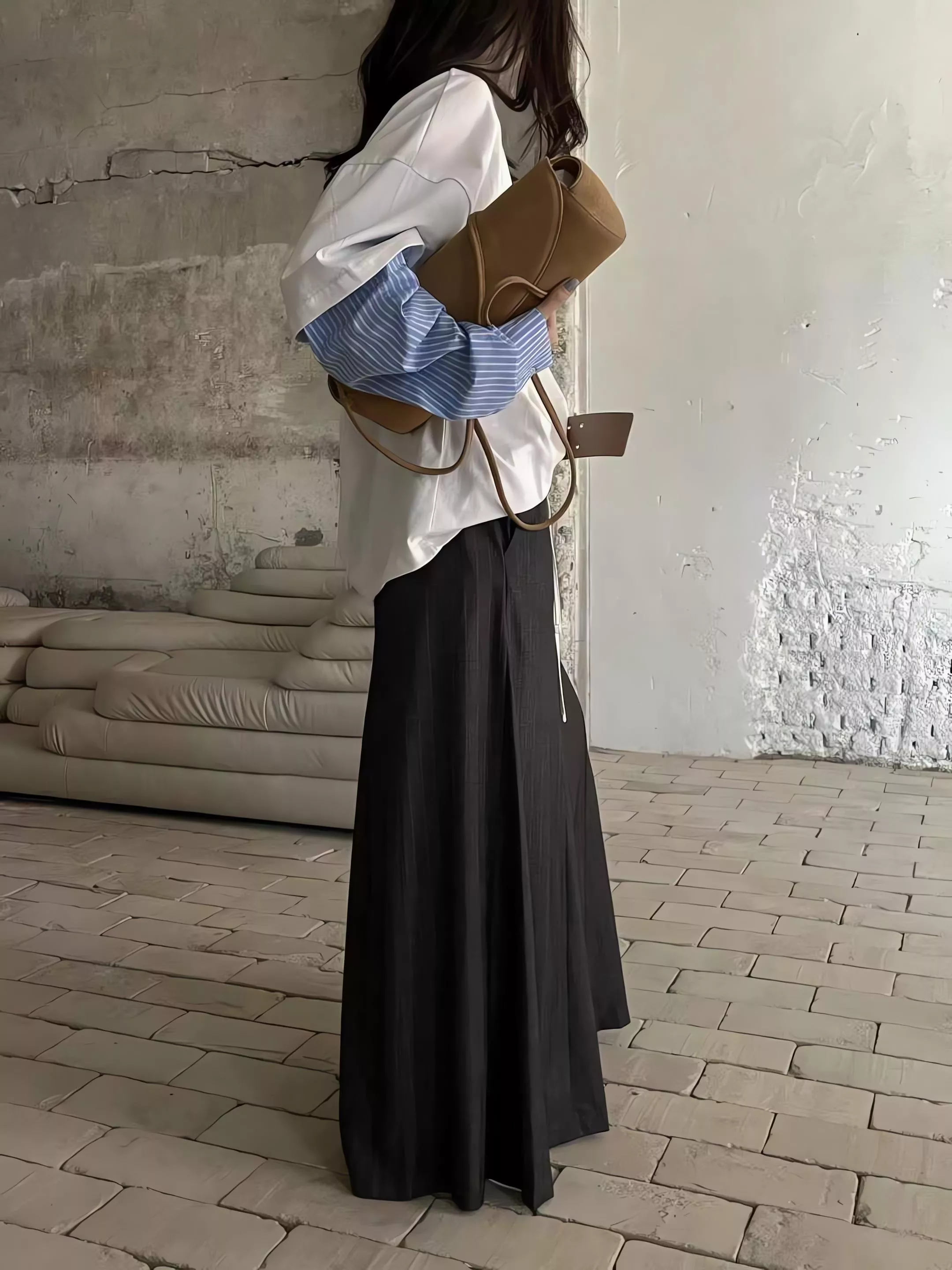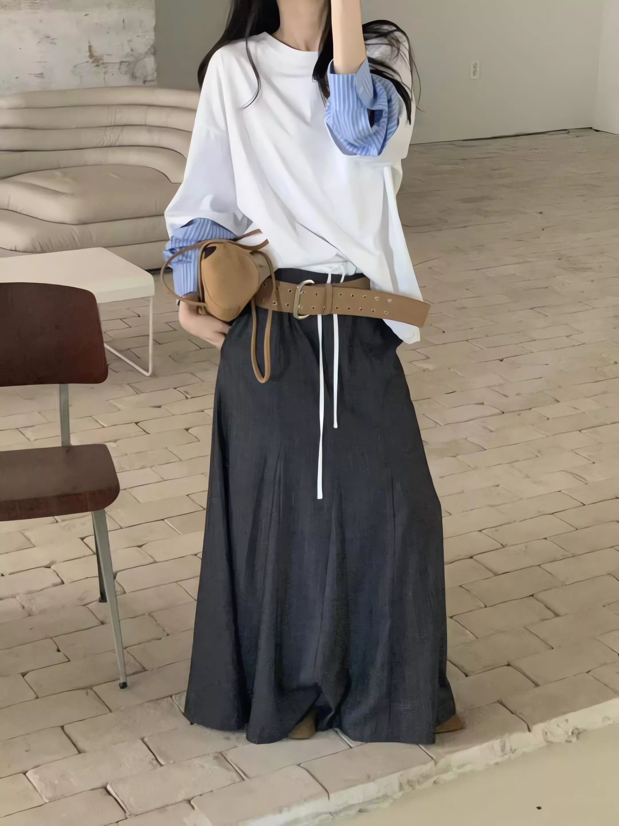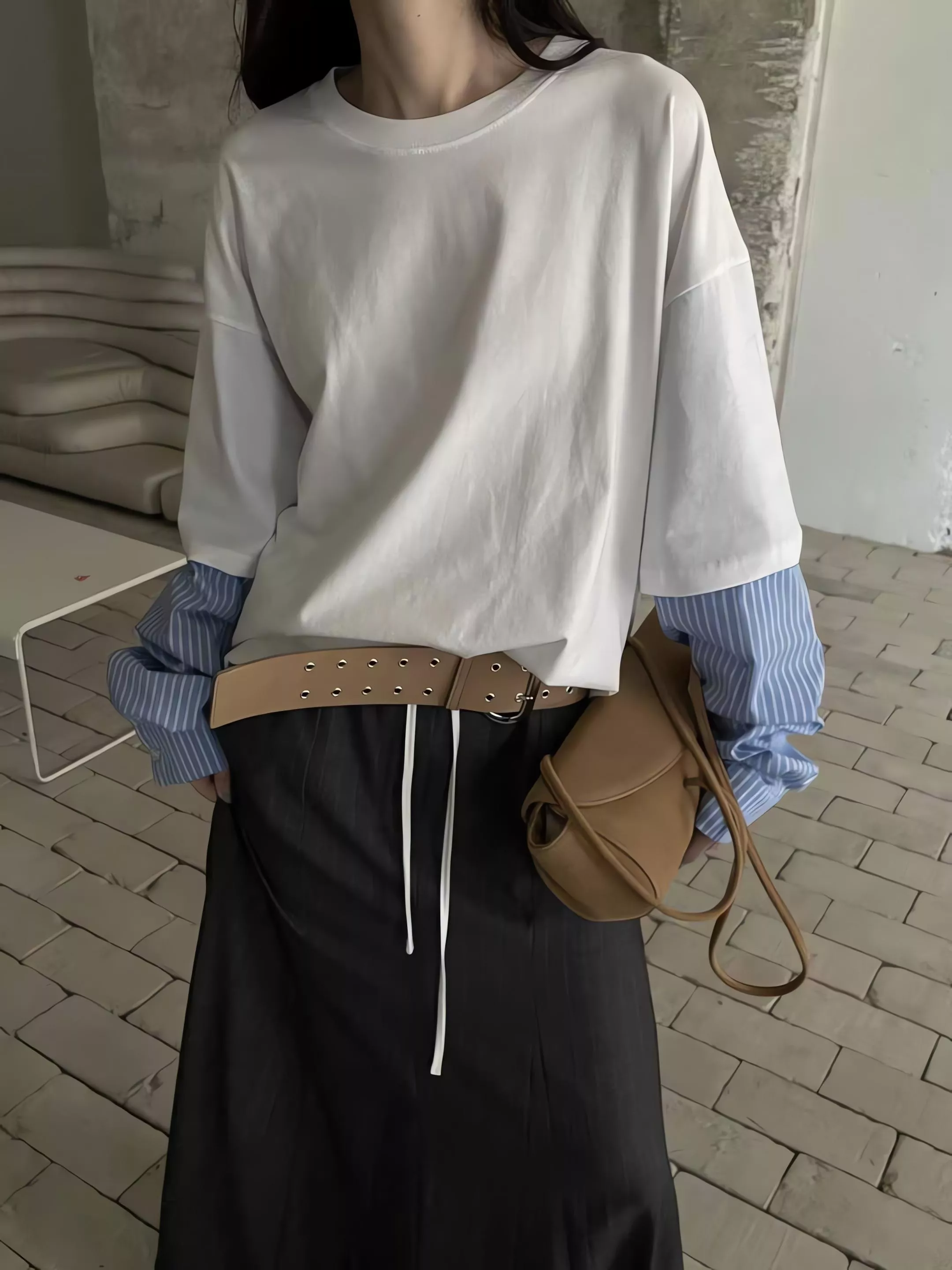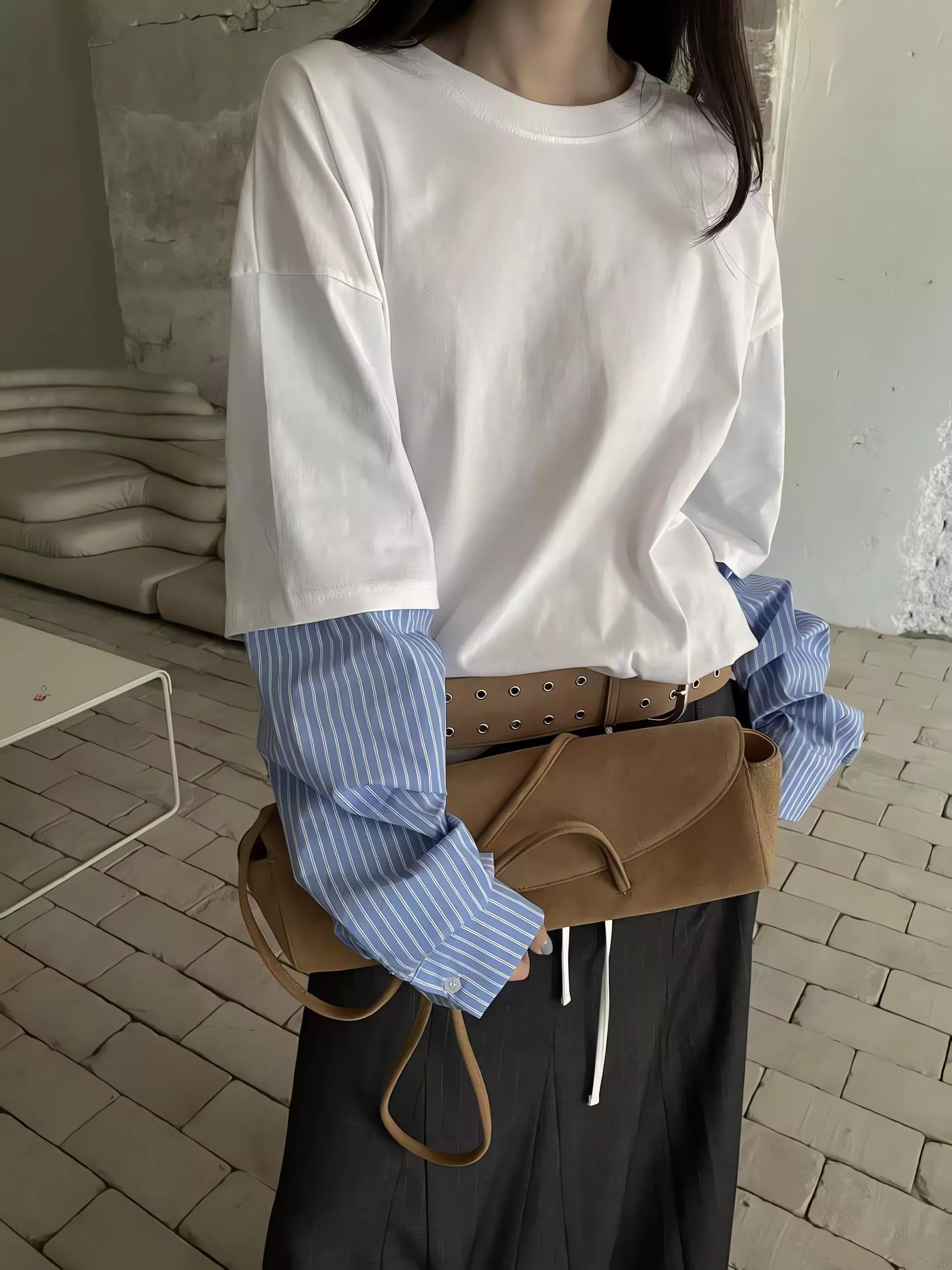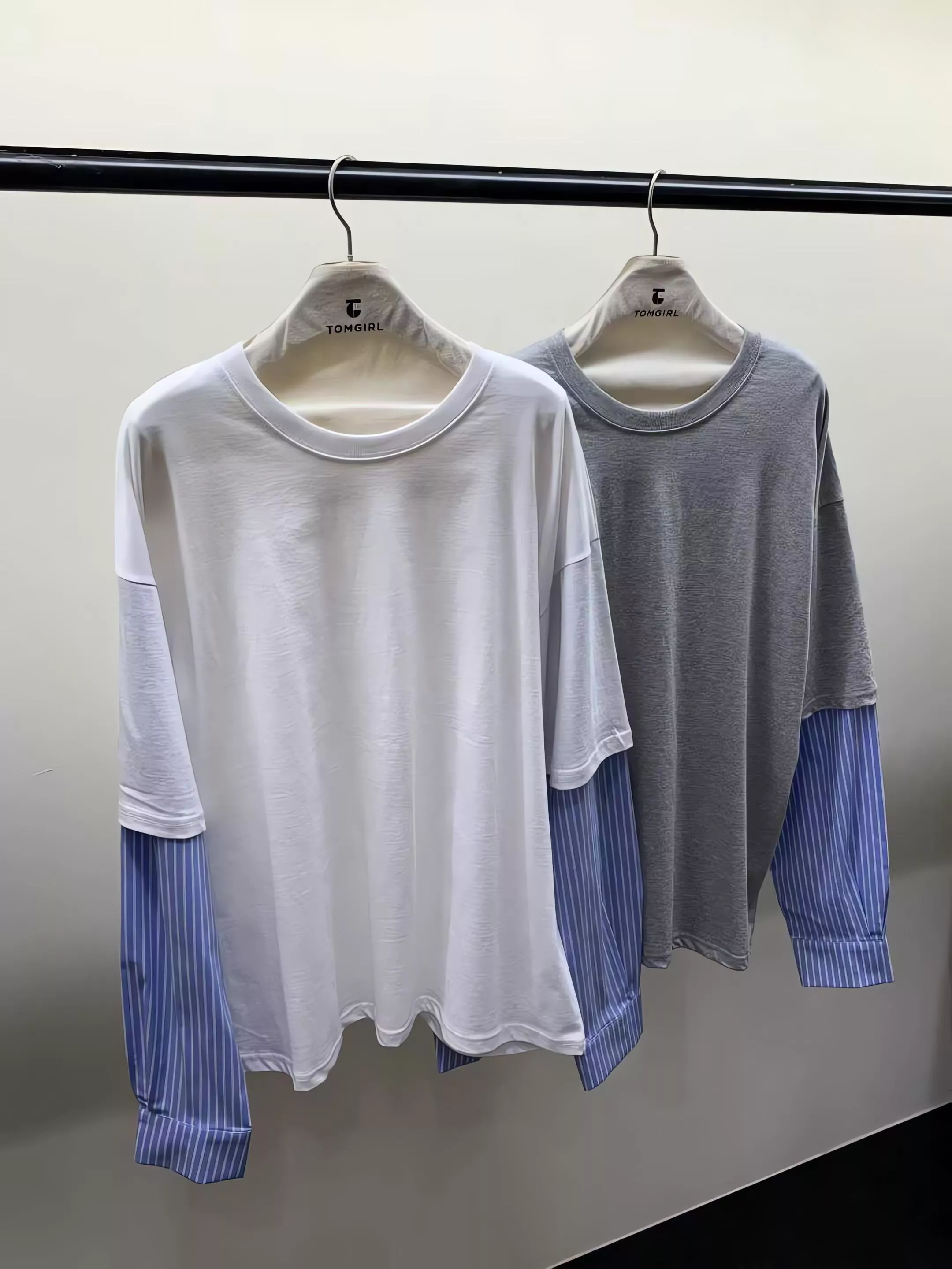 Tom Girl 假兩件拼襯衫袖大學T 一件就有層次的拼襯衫袖Tee