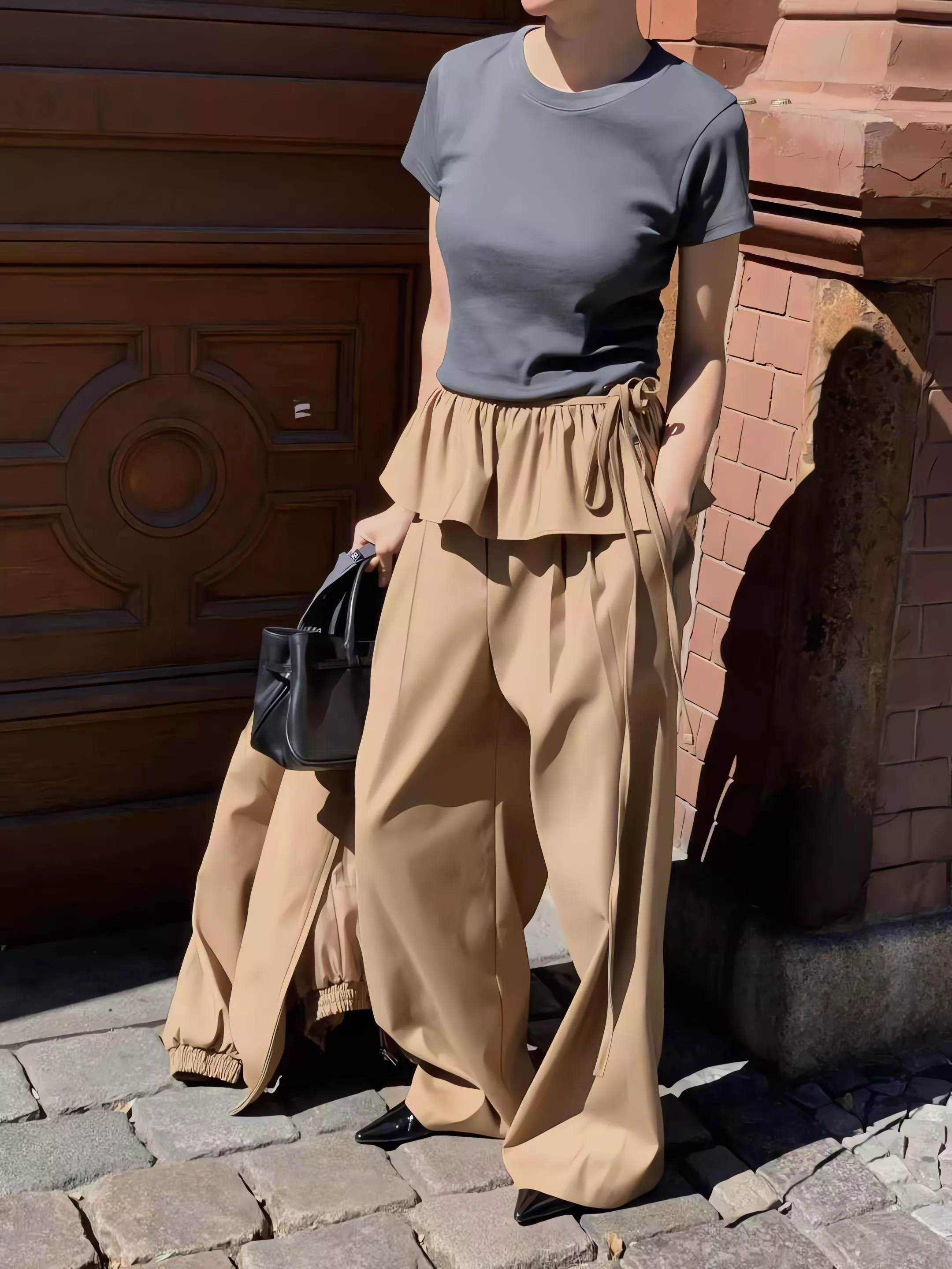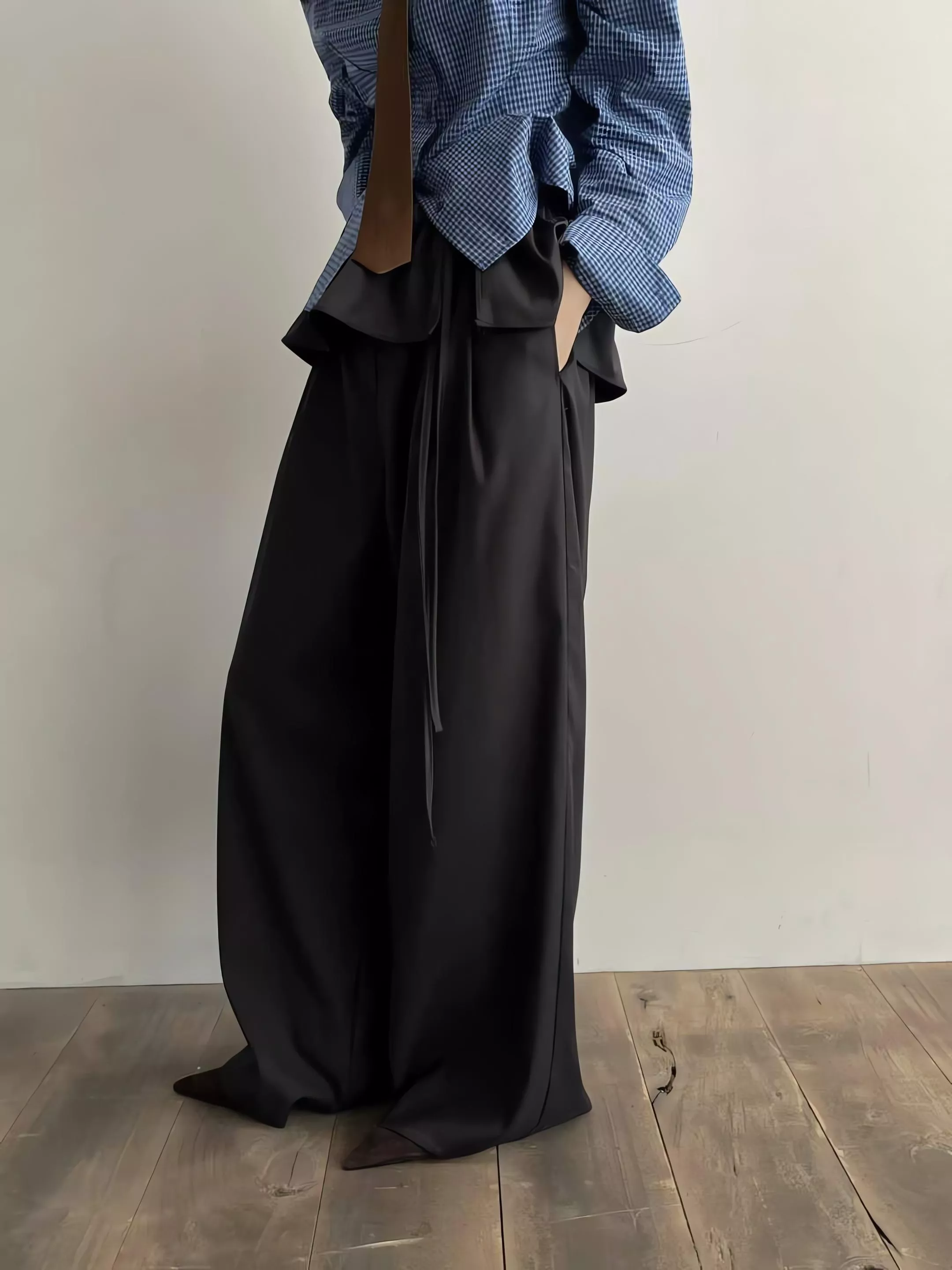 Tom GIrl 可拆荷葉腰綁帶 西裝寬褲 西裝長褲