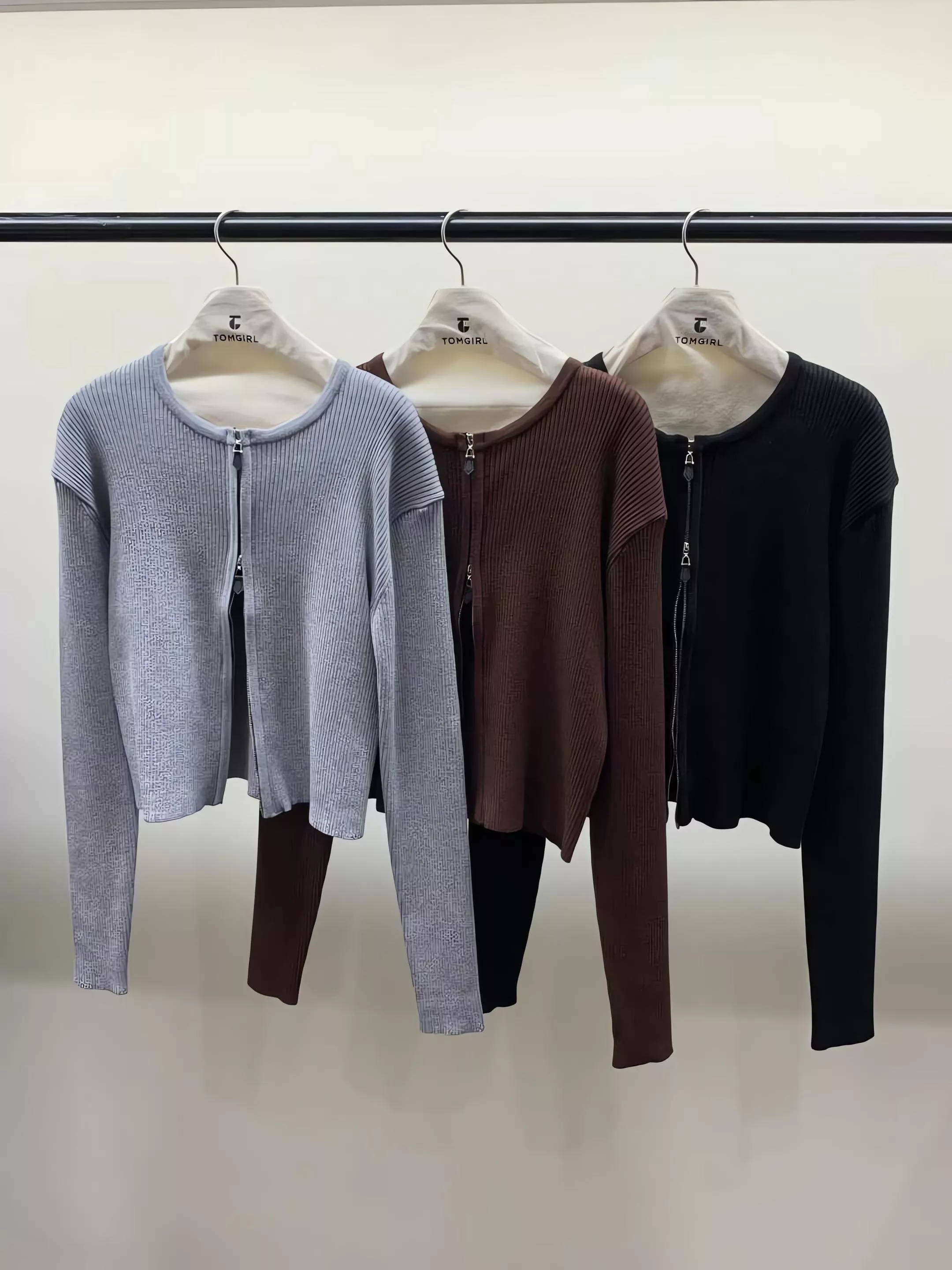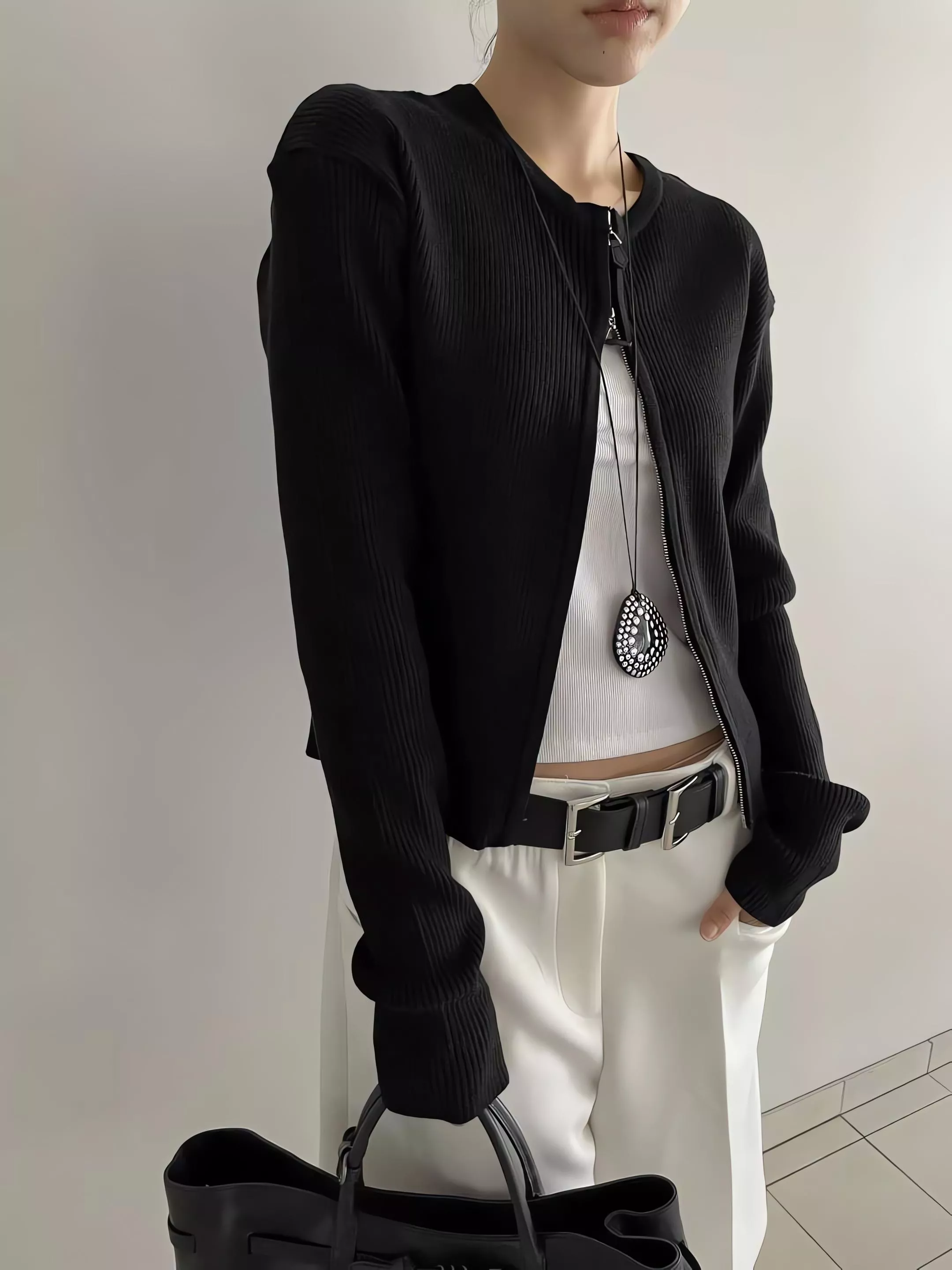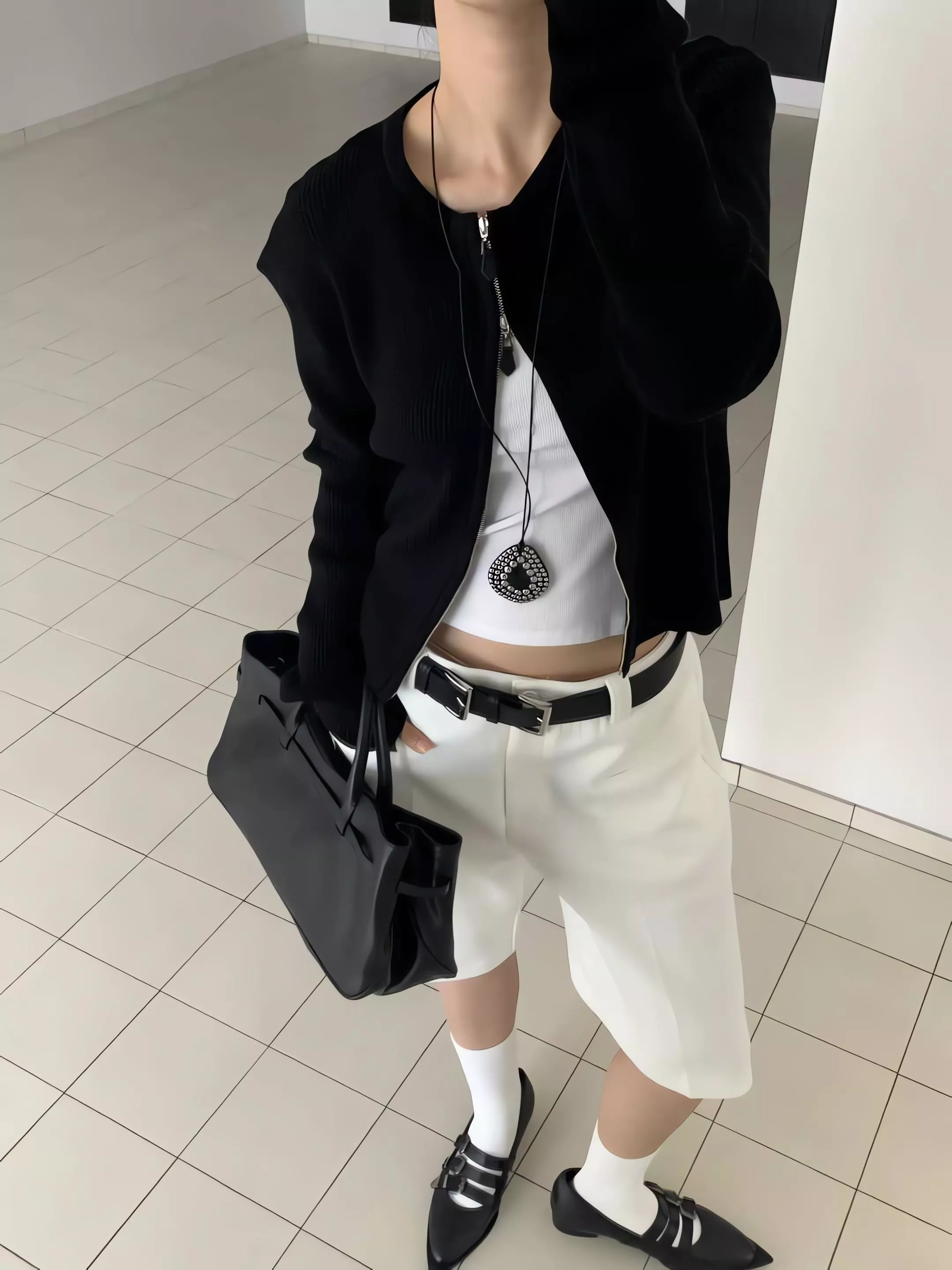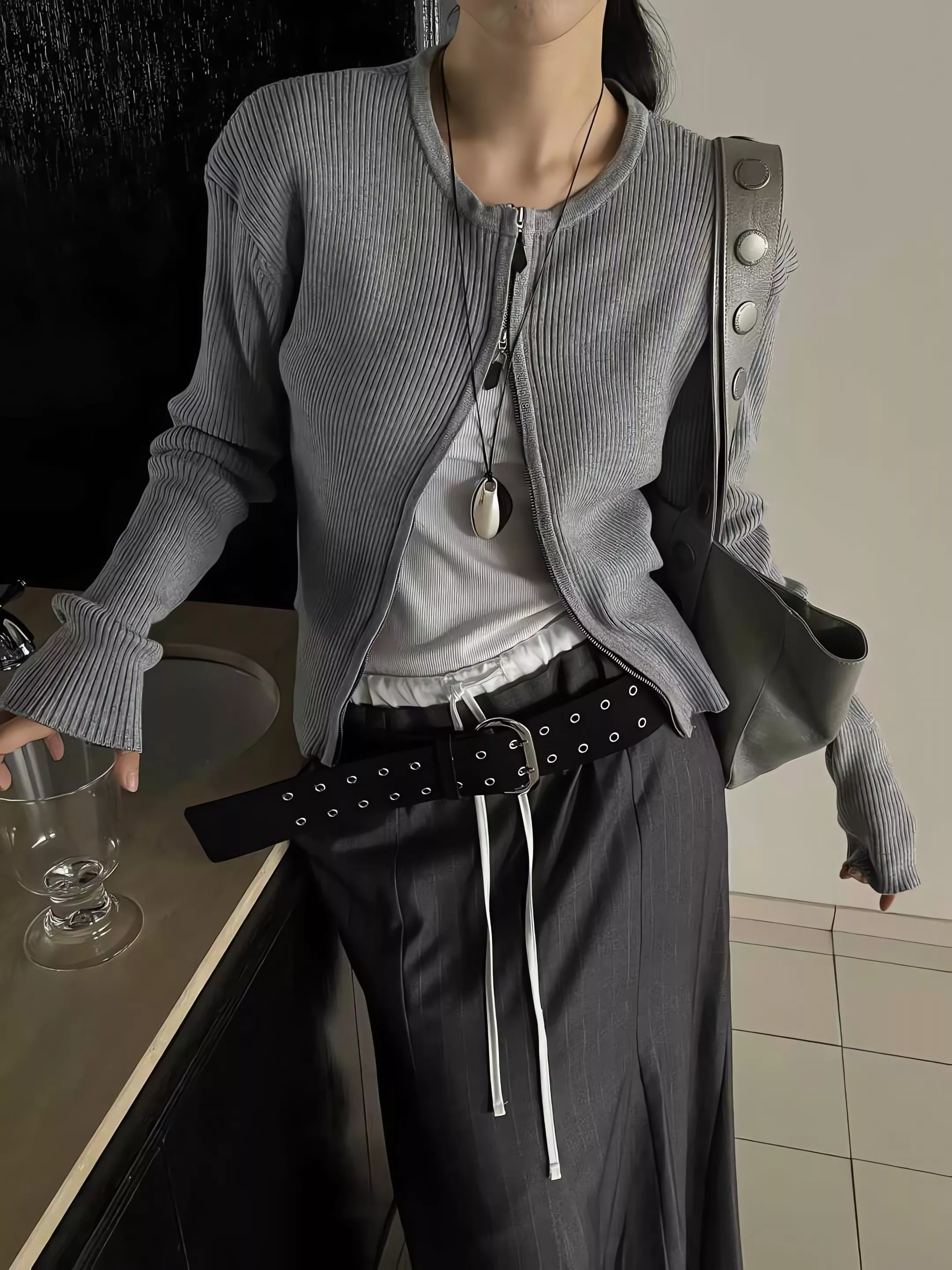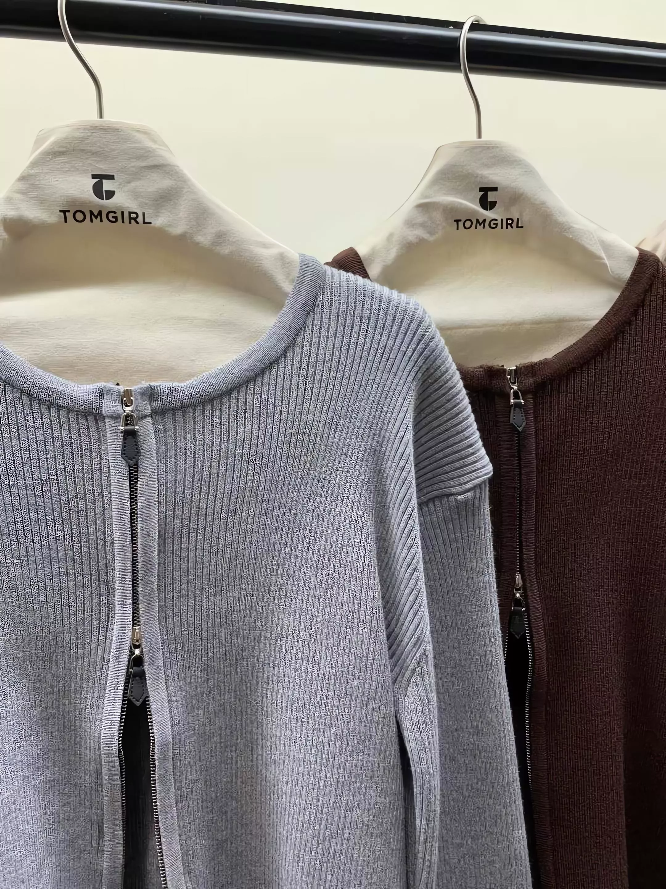 前拉鍊為雙向設計,可依造型自由開合,展現不同層次。