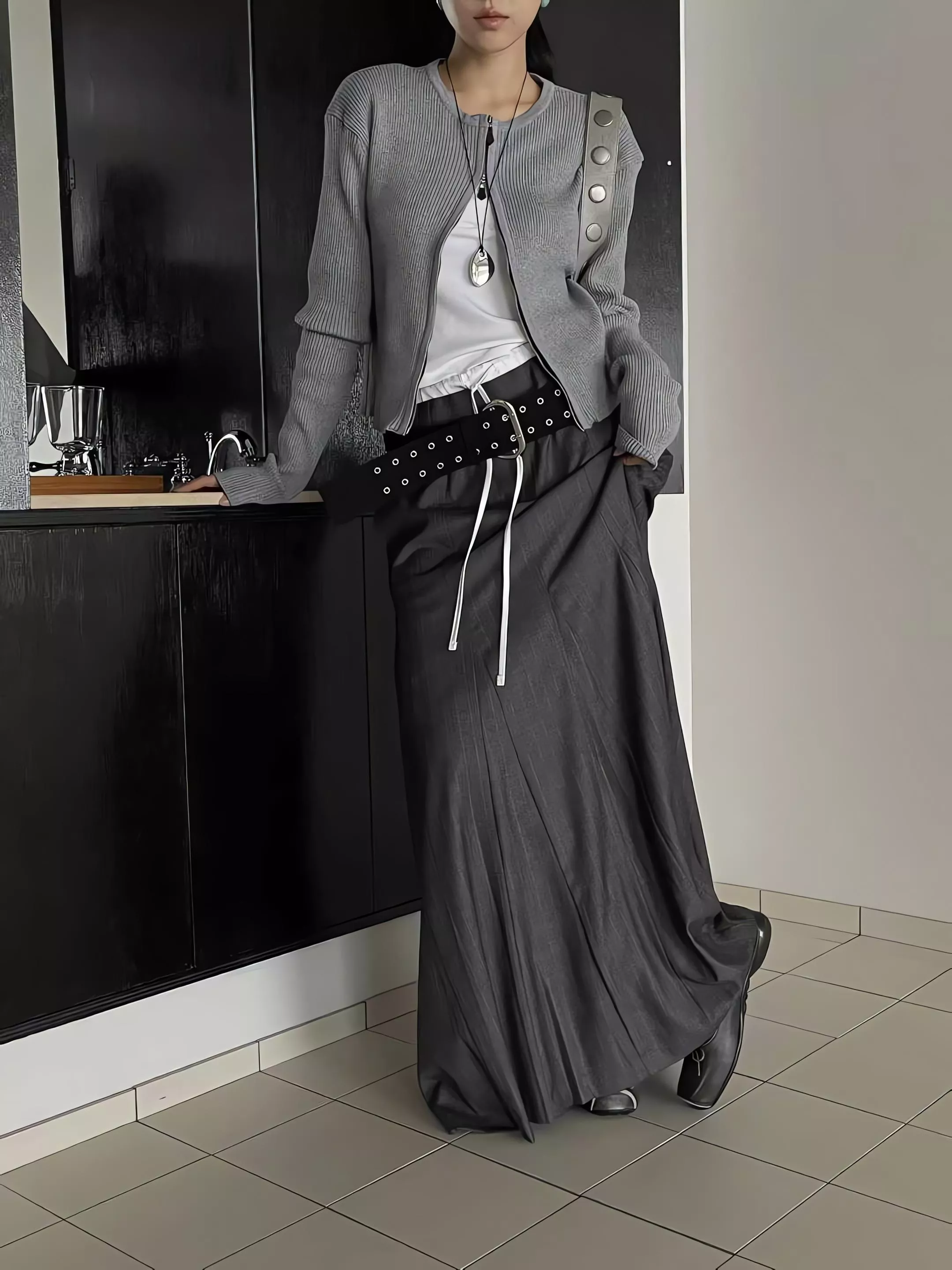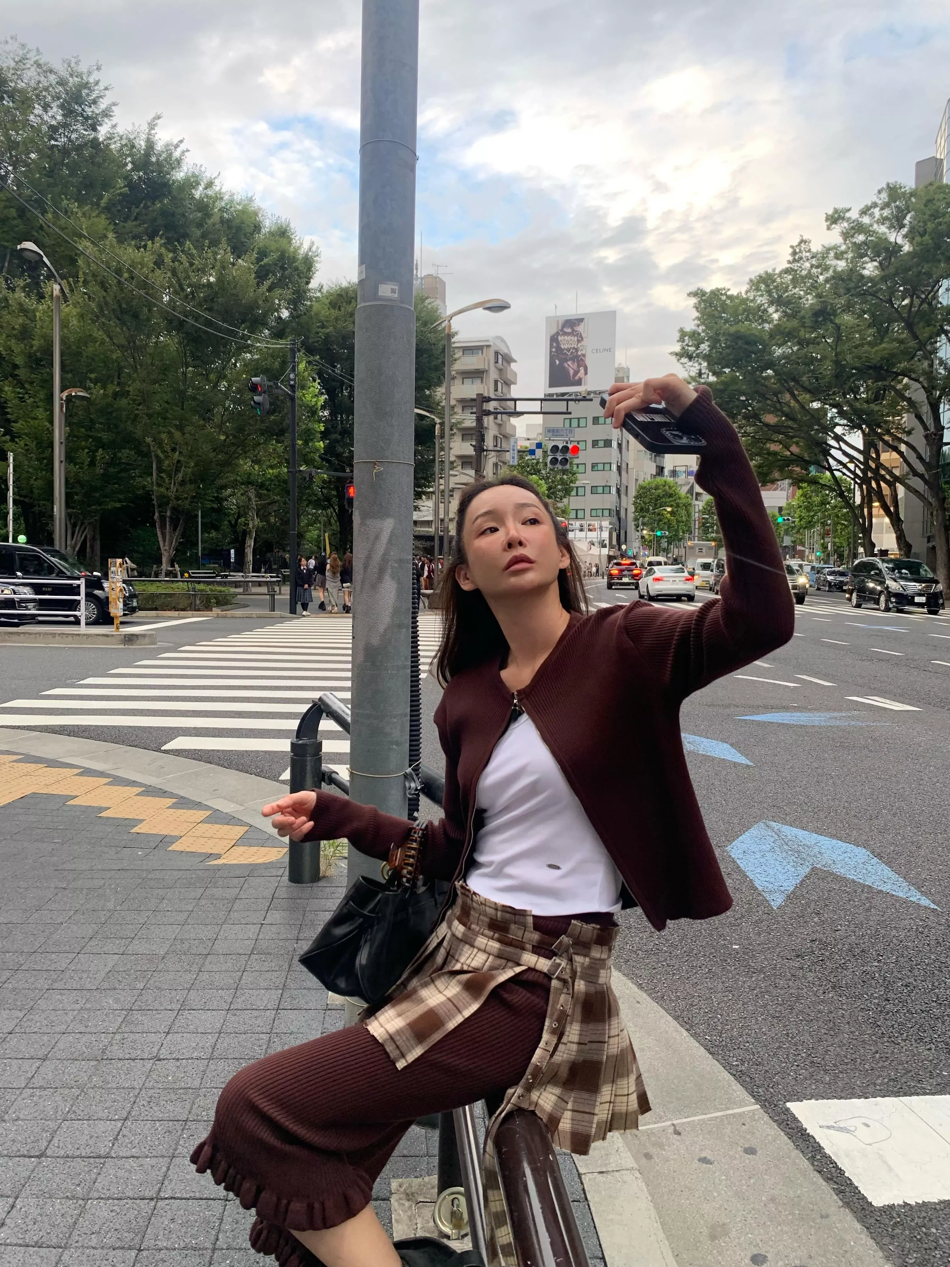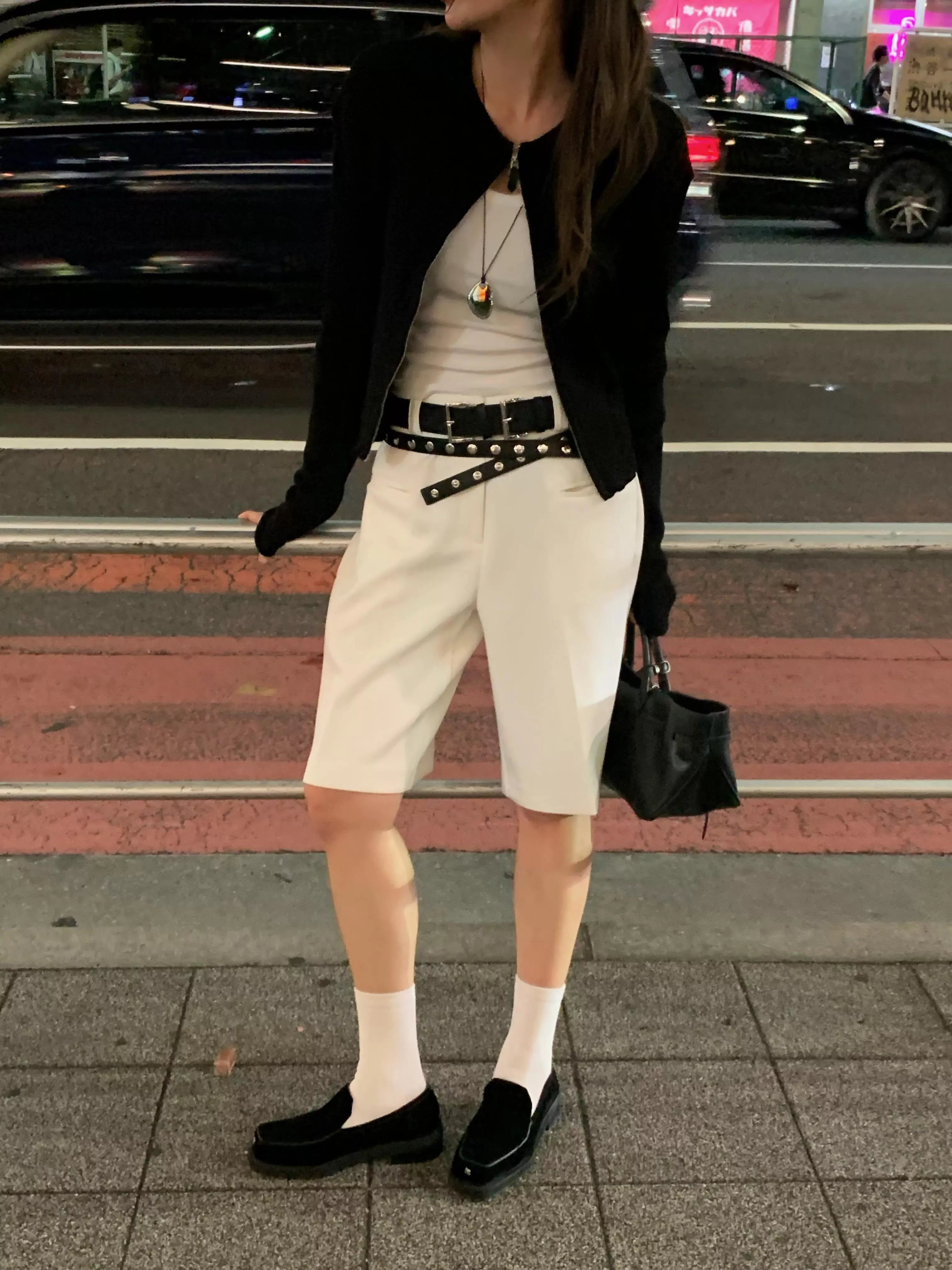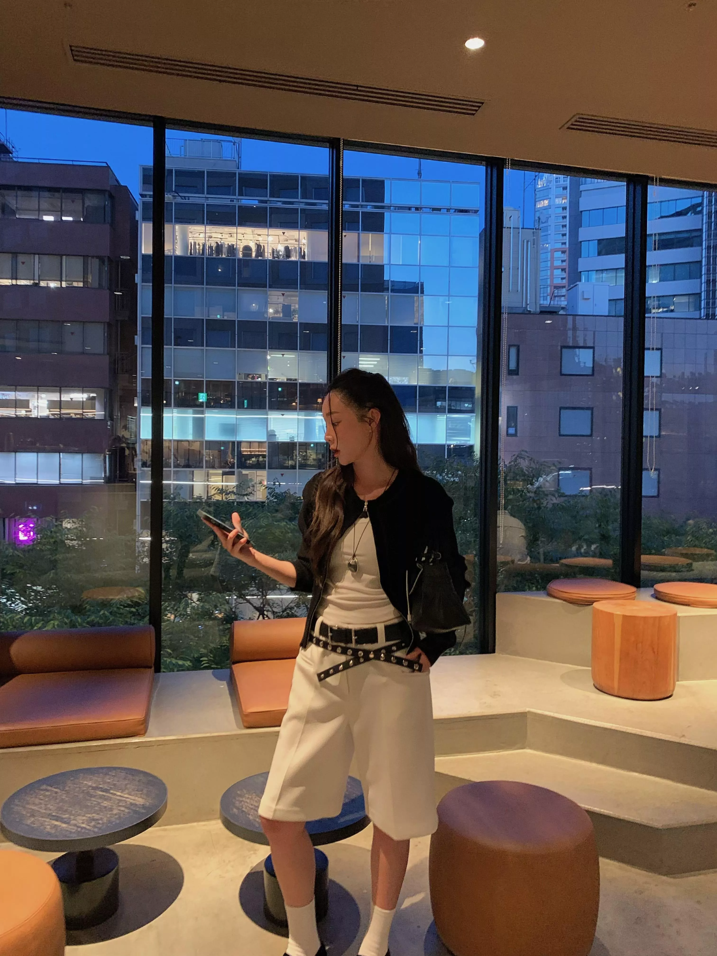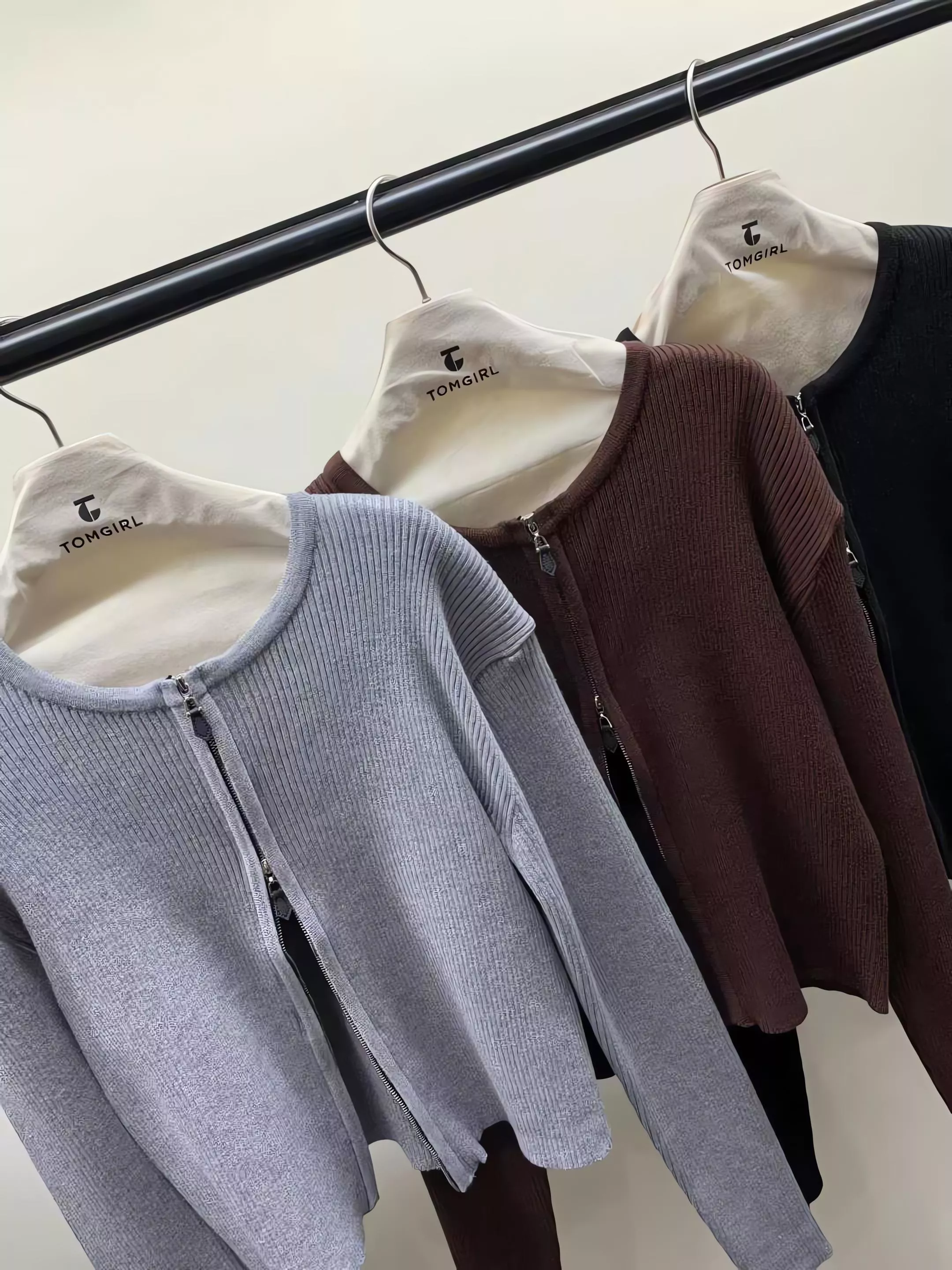 前拉鍊為雙向設計,可依造型自由開合,展現不同層次。