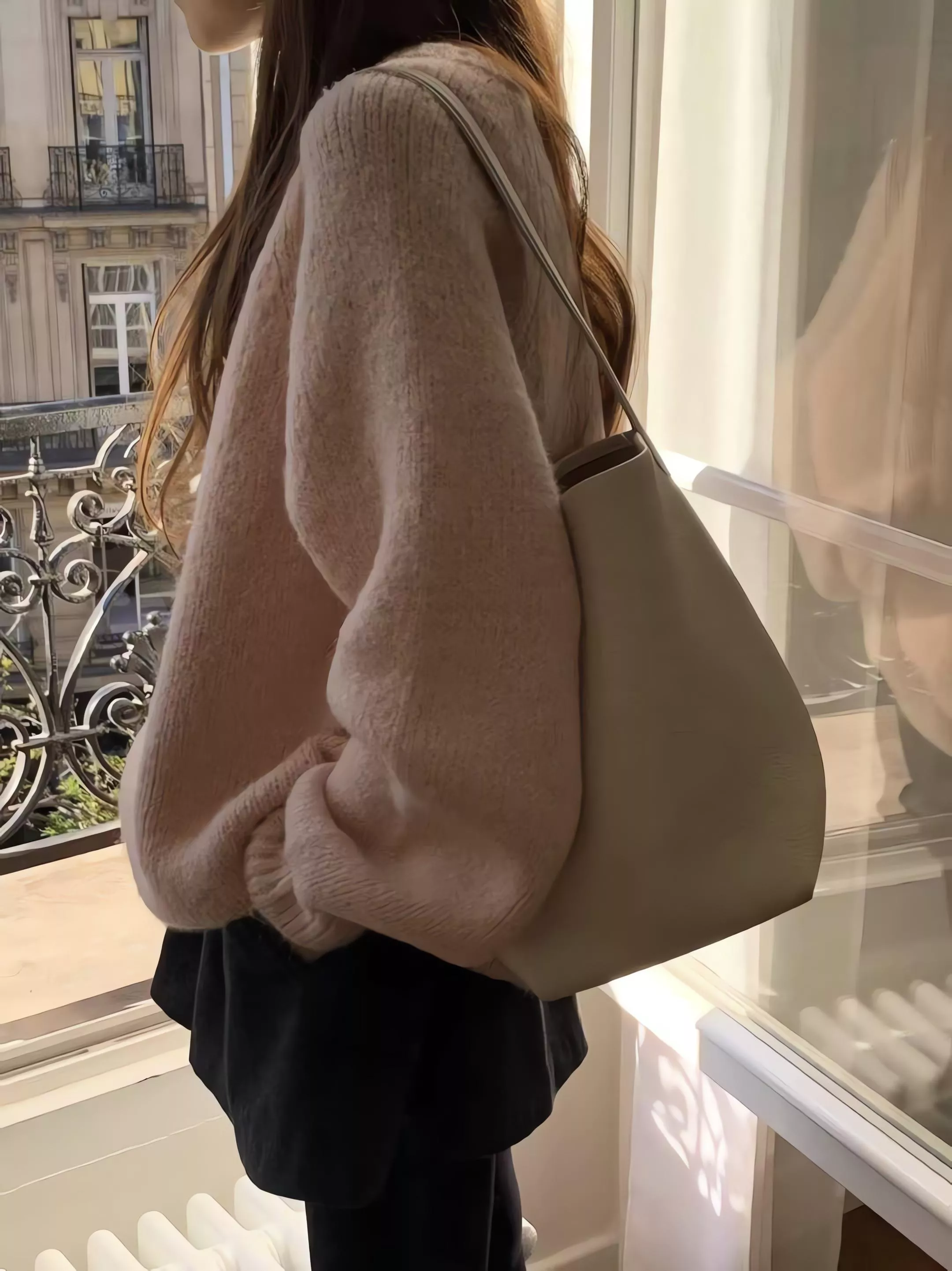 是適合咖啡館、散步、或靜靜待在午後陽光裡的一件毛衣。
