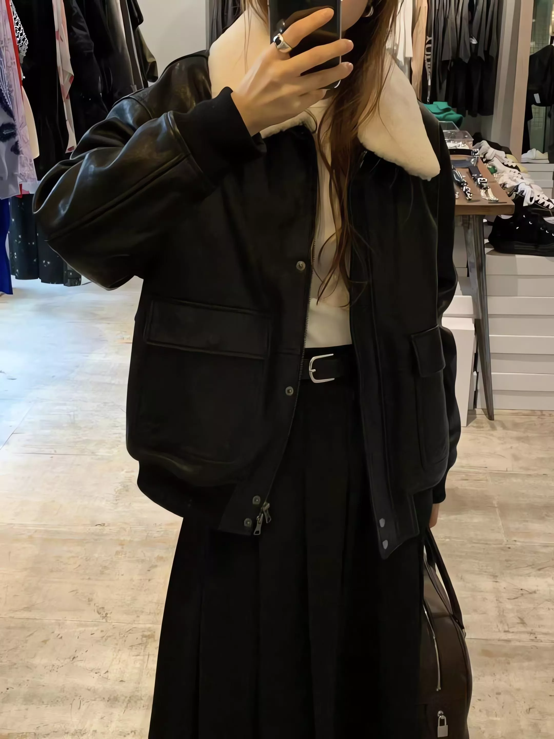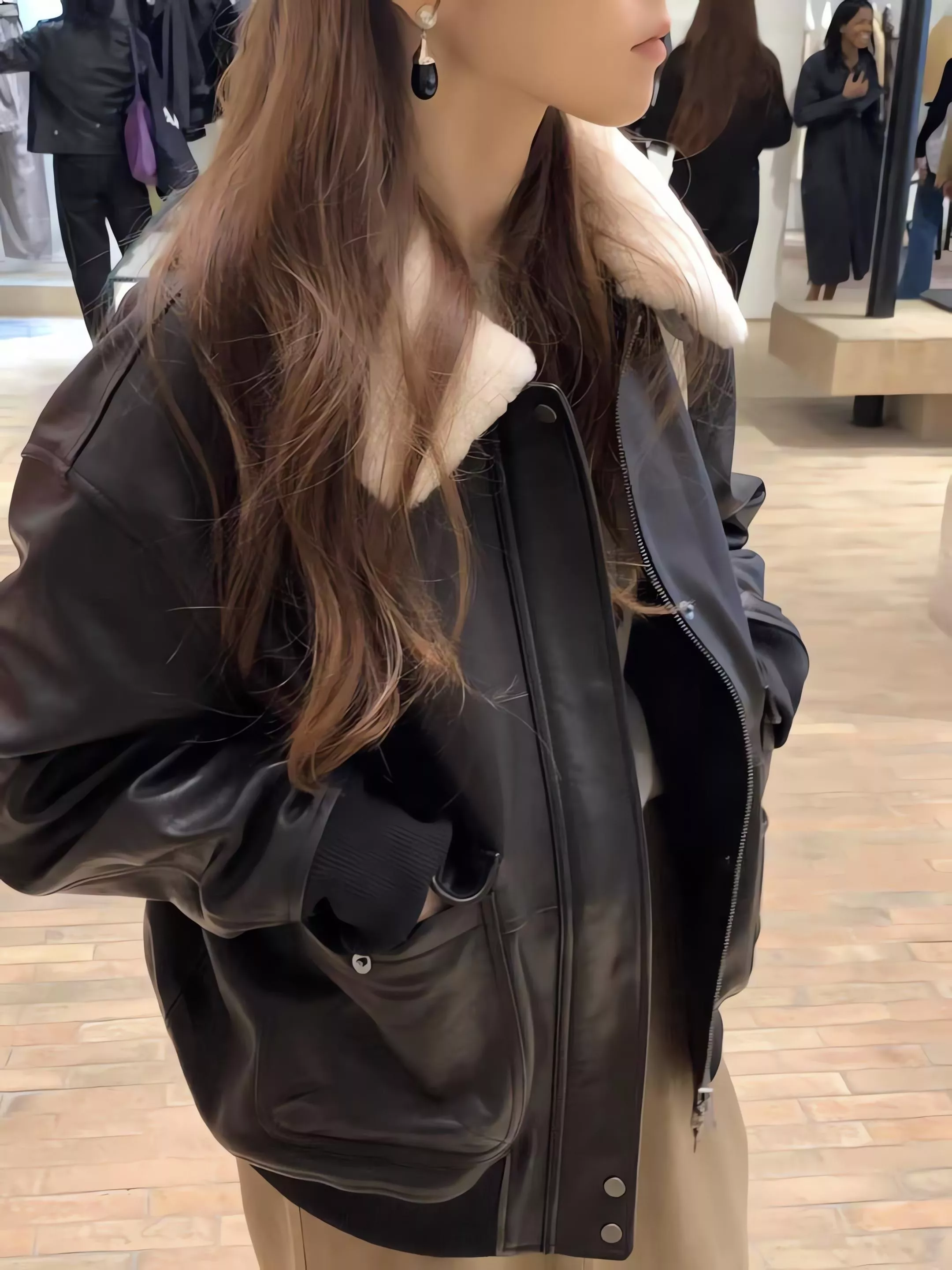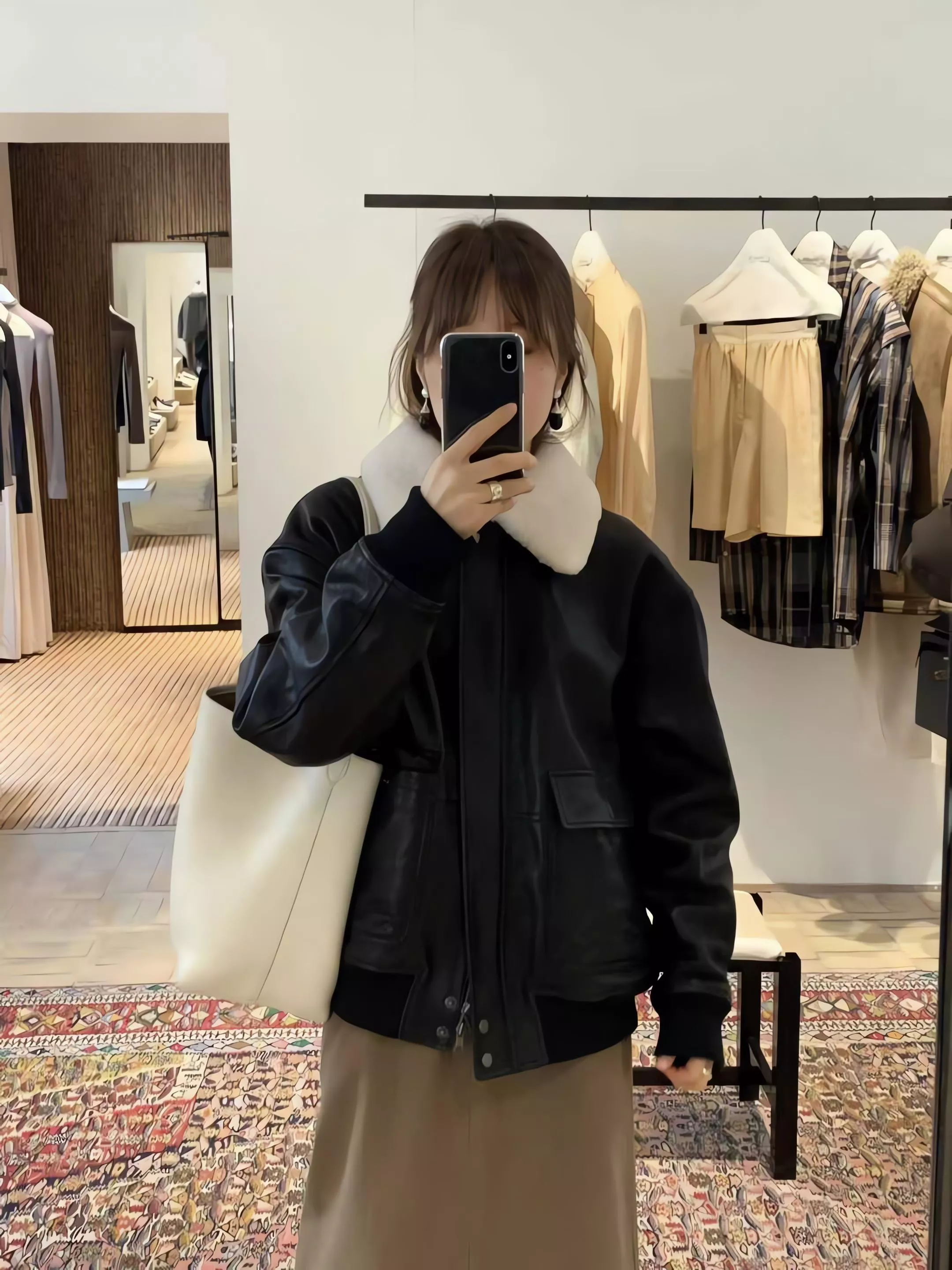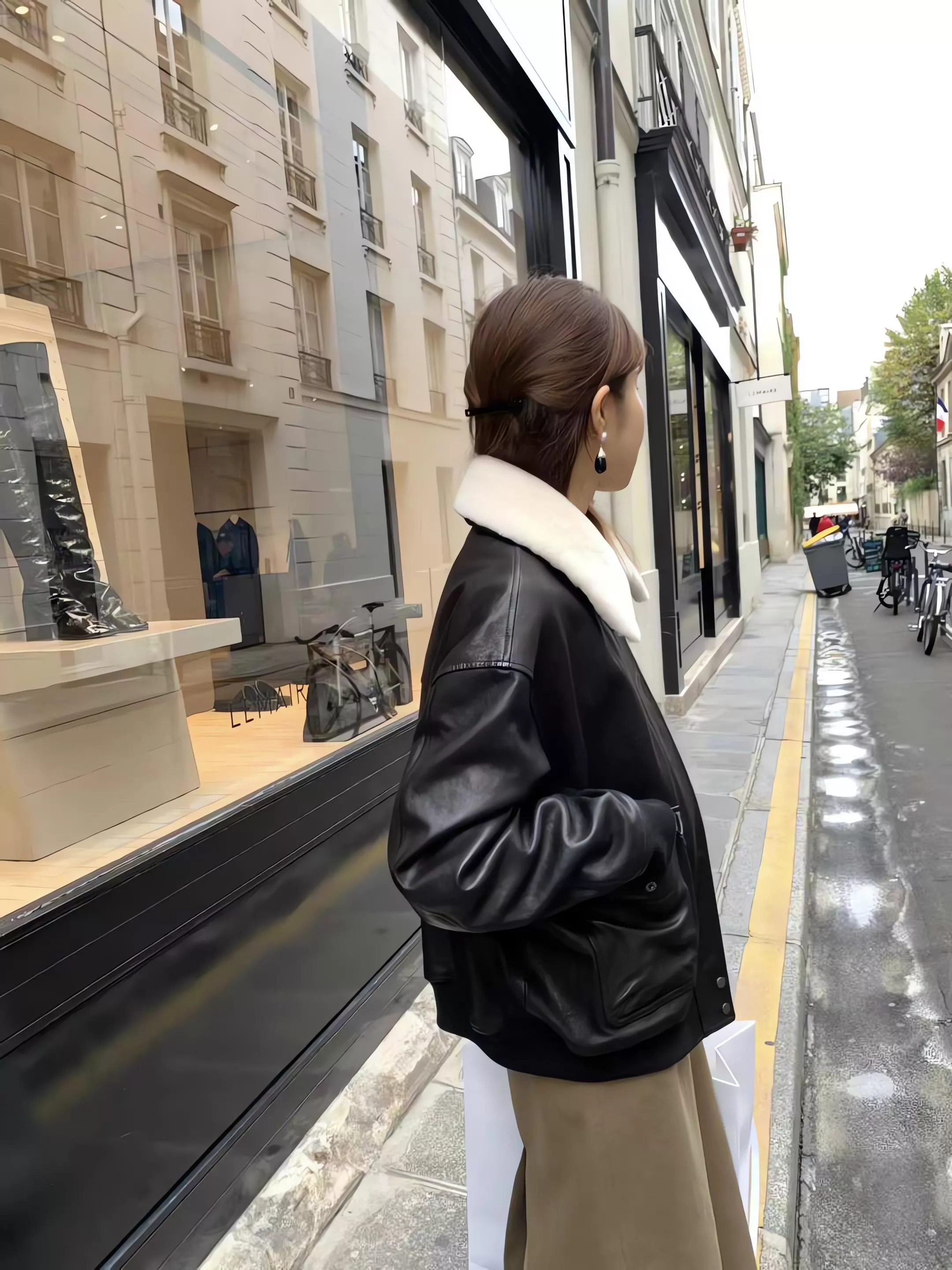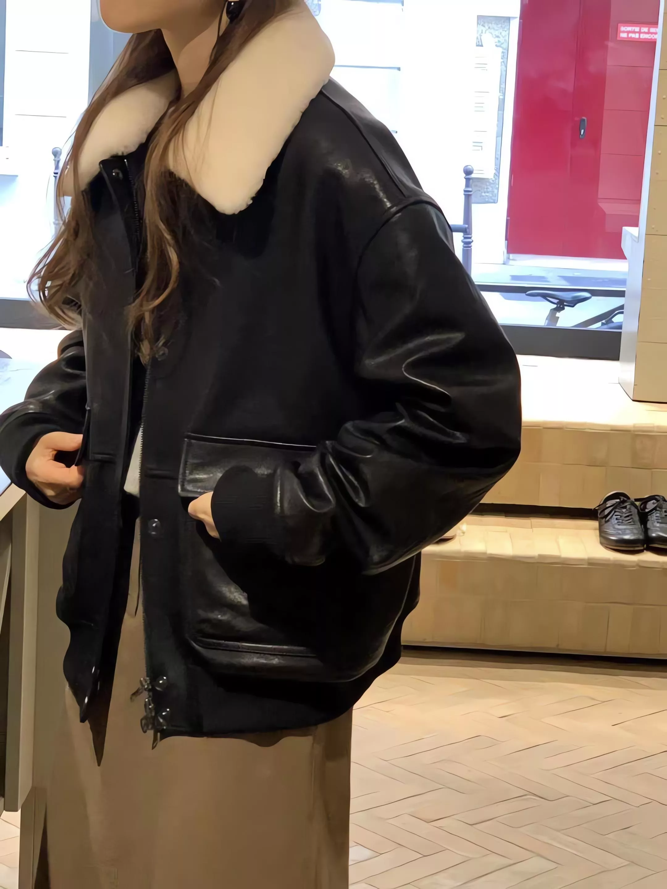 ✨材質:義大利製羊皮 100 + 可拆式羊毛翻領