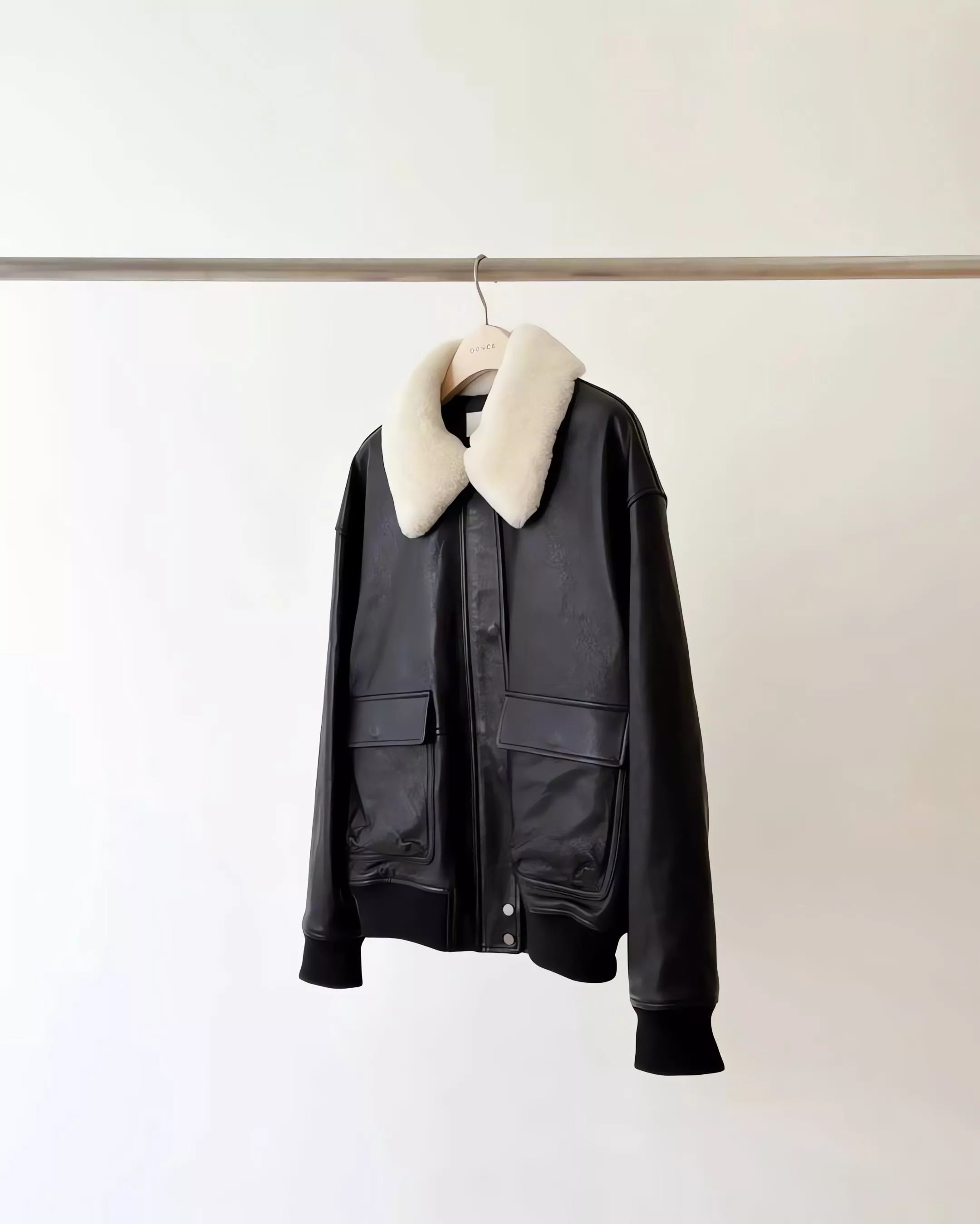Ounce 義大利小羊皮翻領羊毛夾克外套 可拆式羊毛翻領