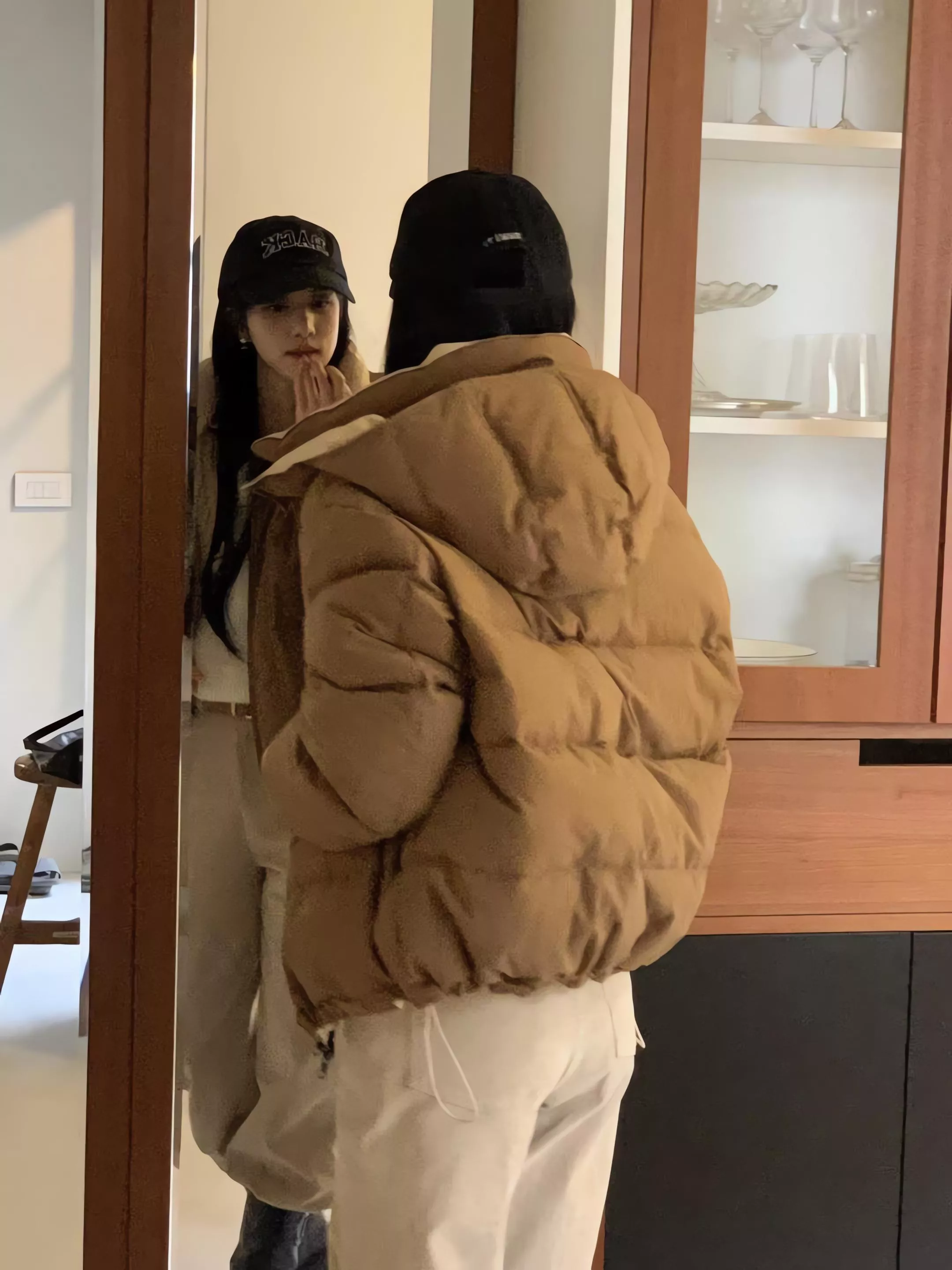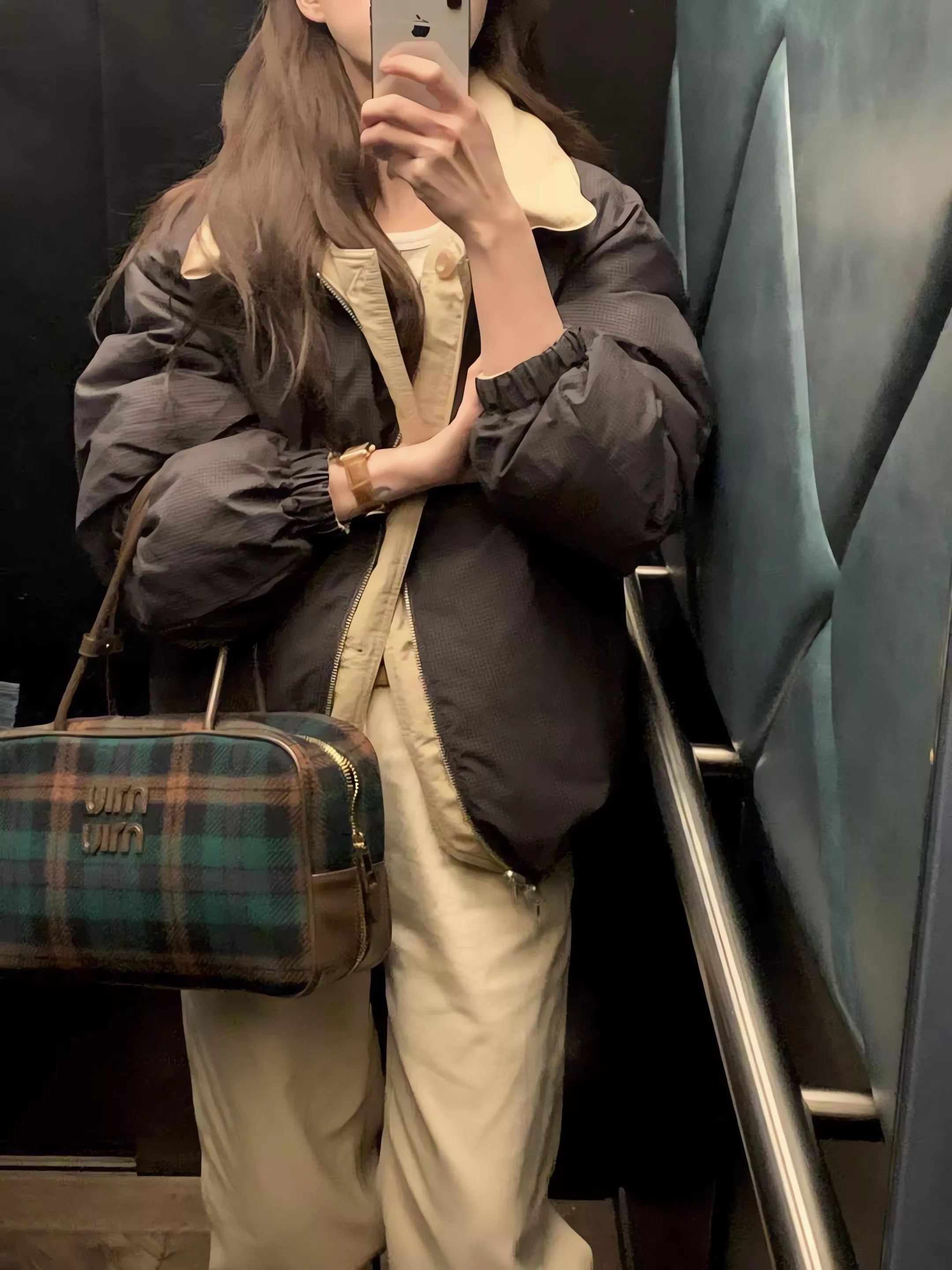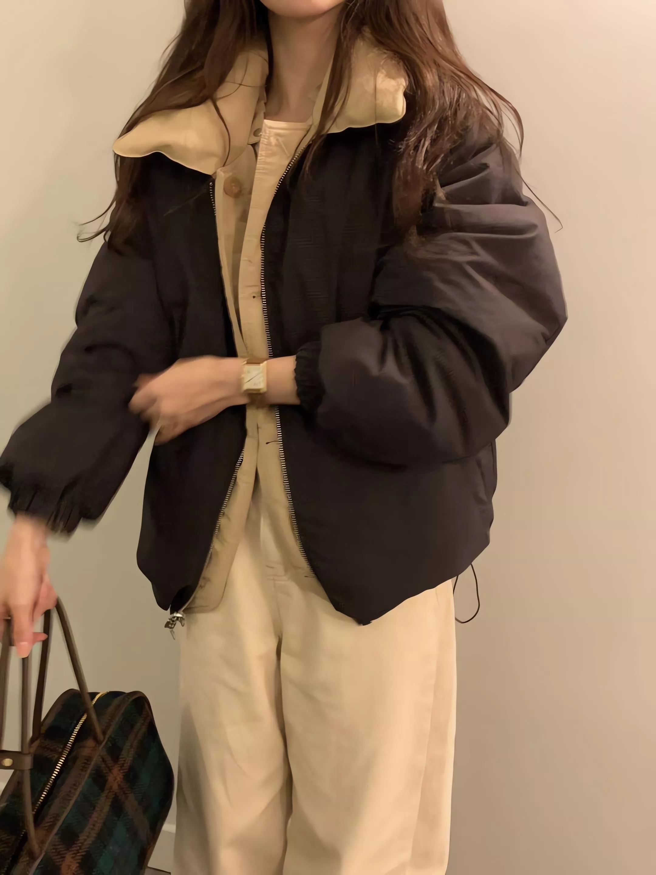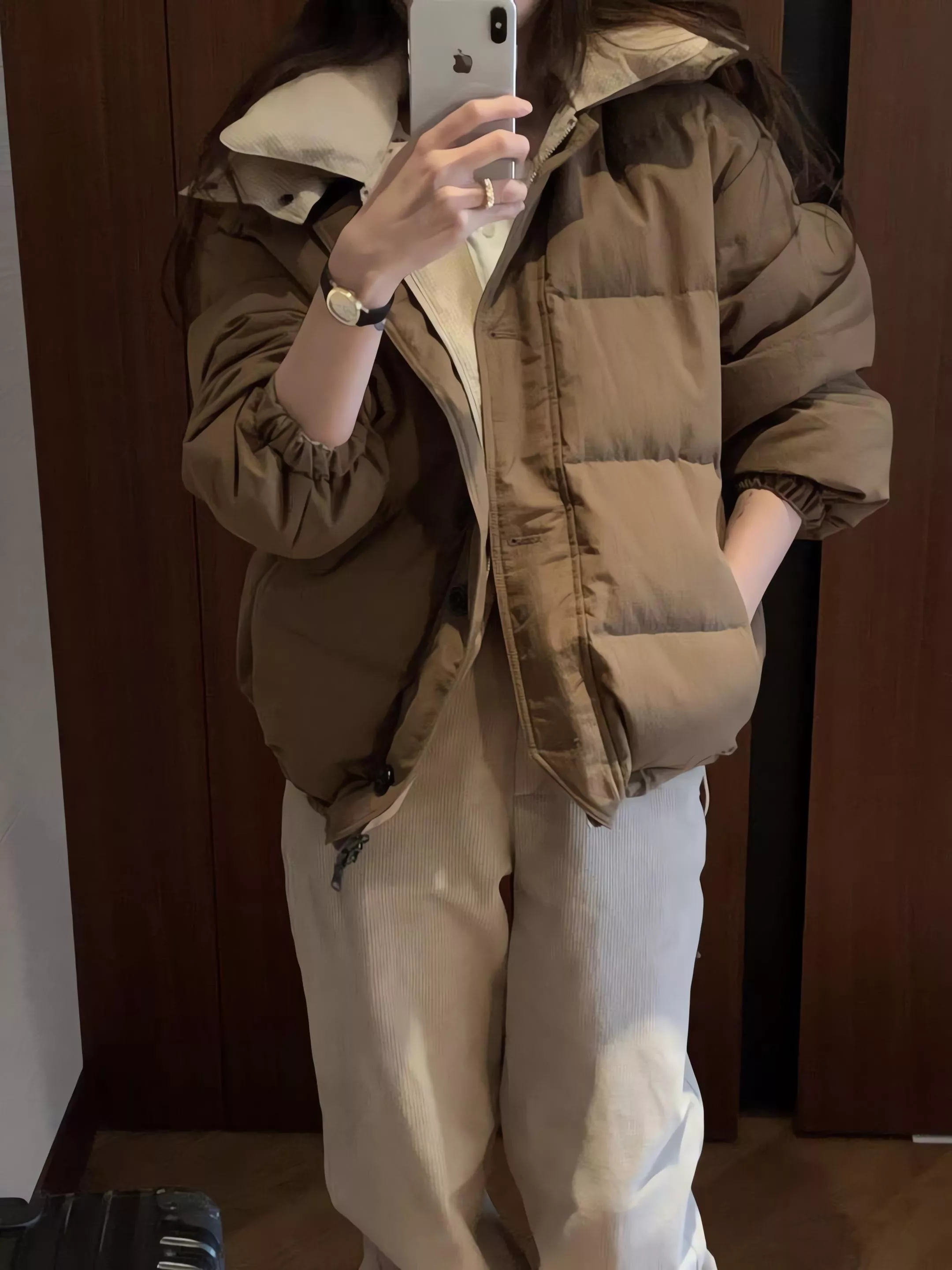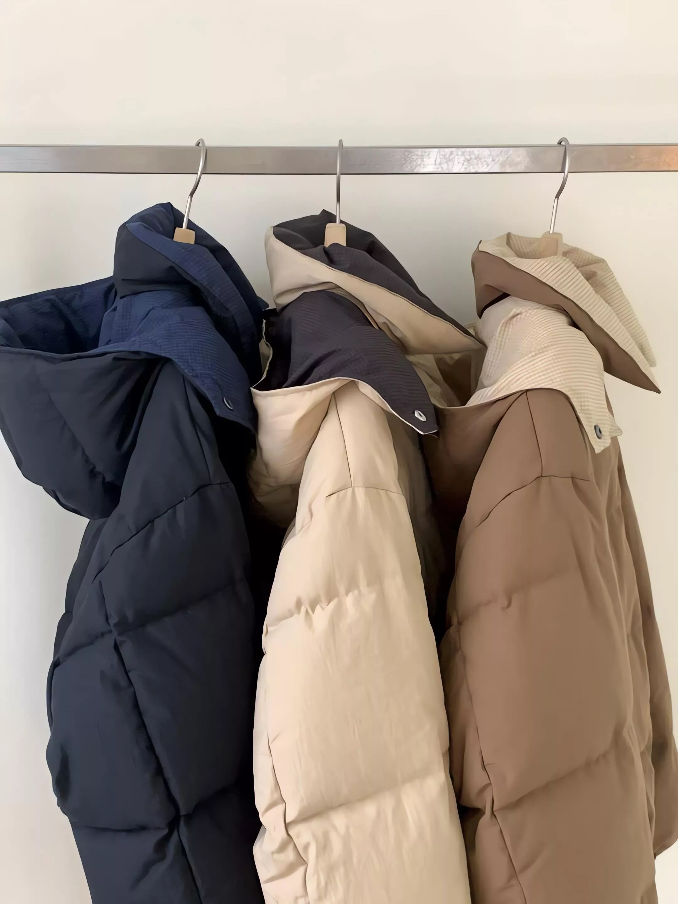 Objet 素面格紋兩面穿鵝絨外套 羽絨外套