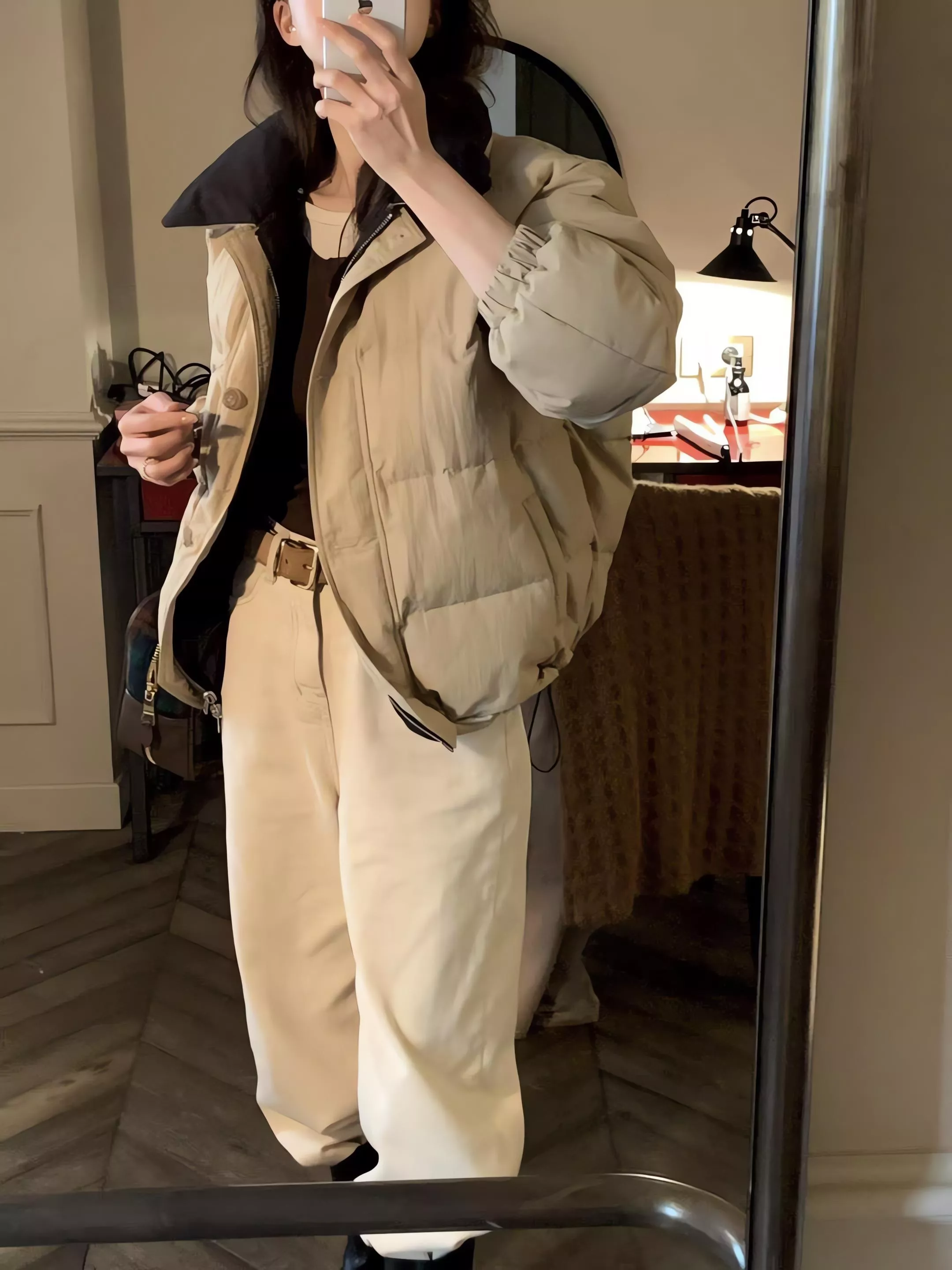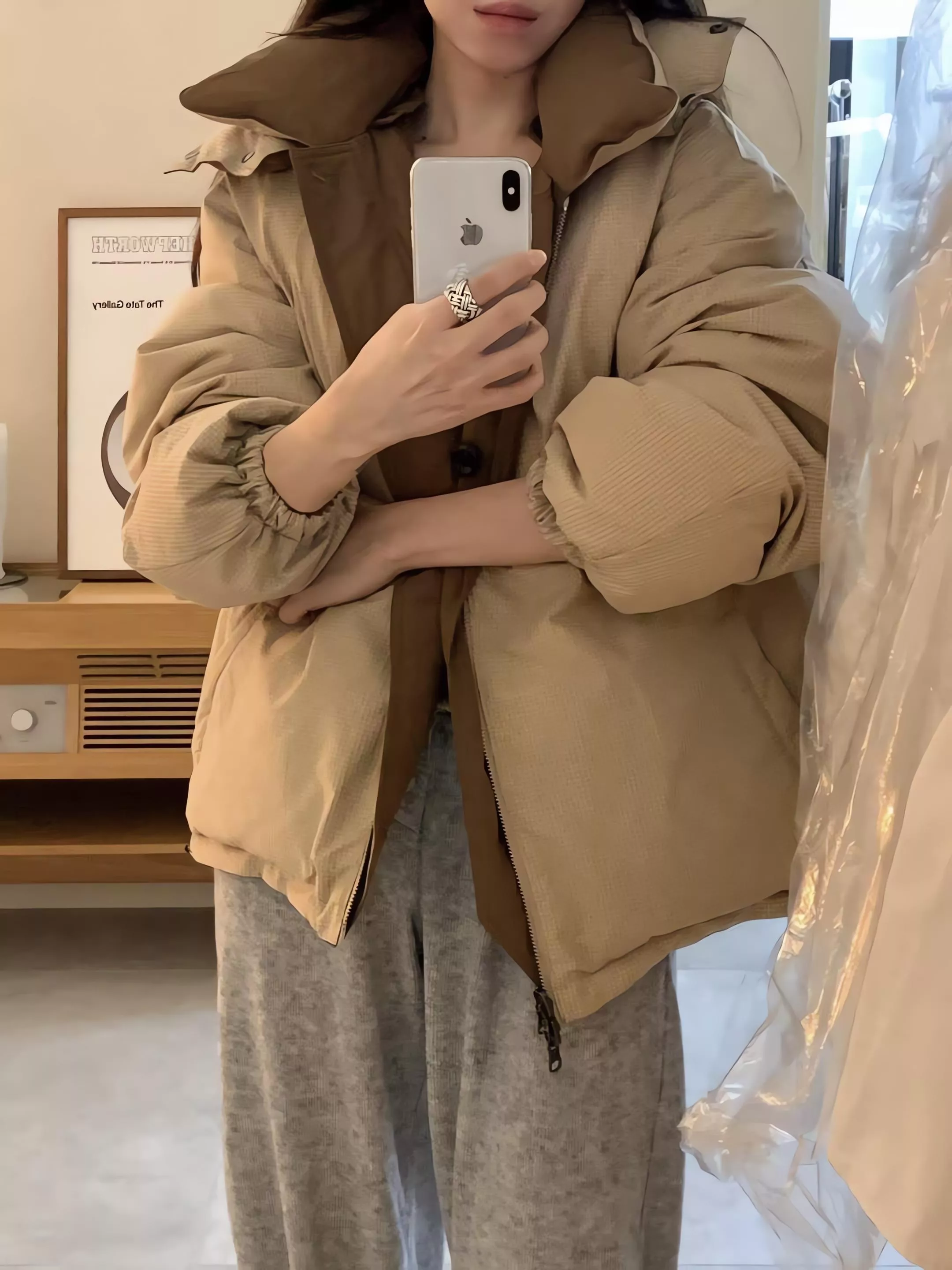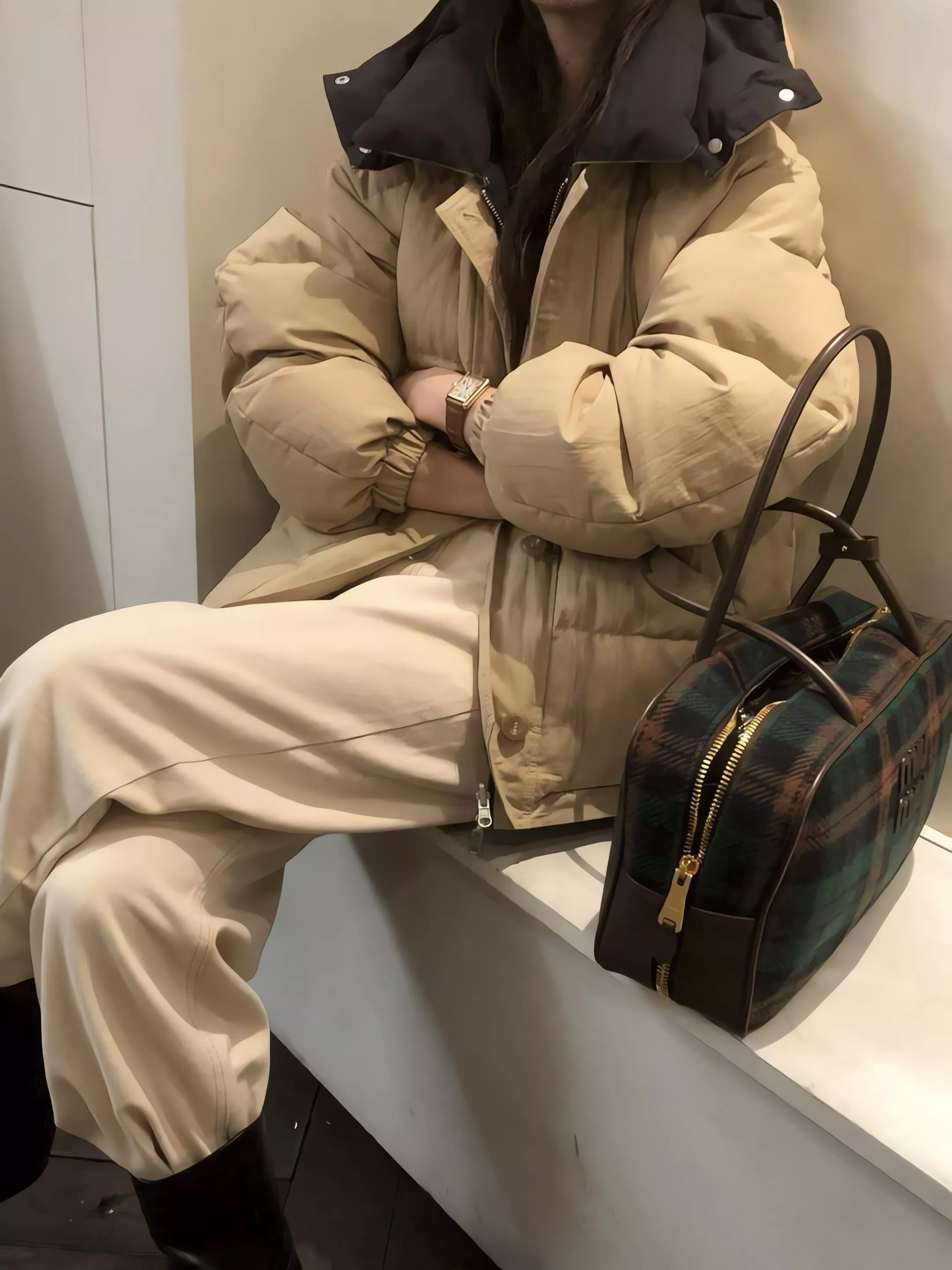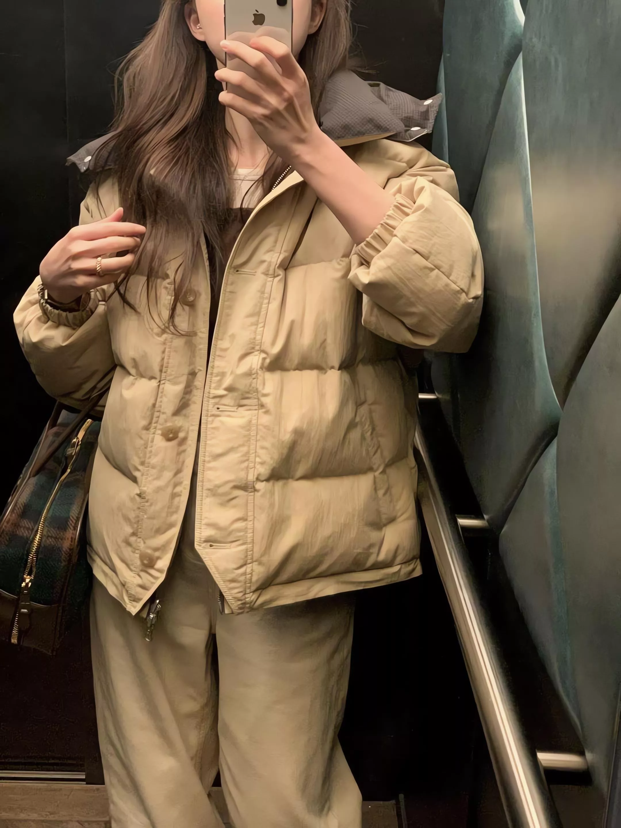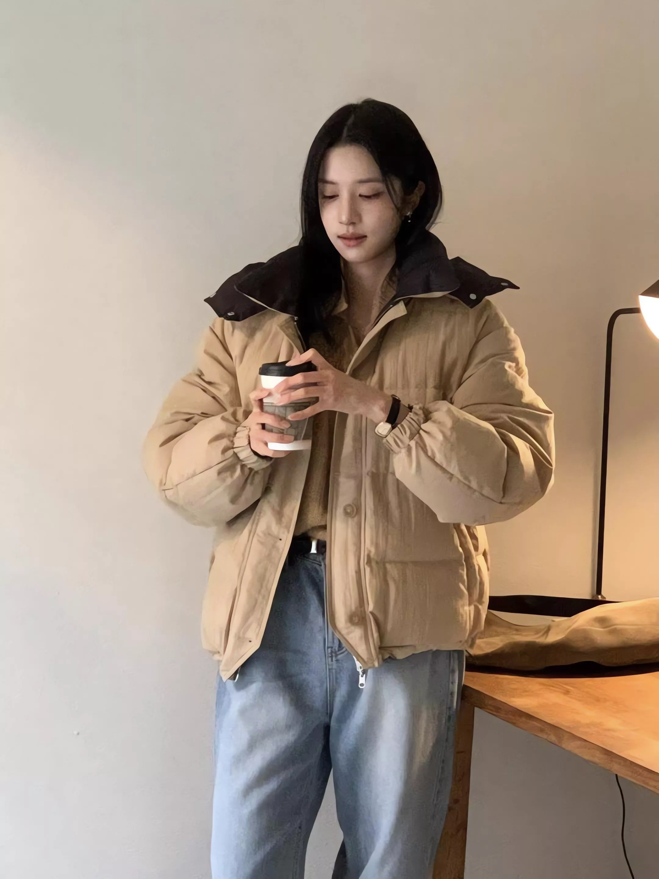 Objet 素面格紋兩面穿鵝絨外套 羽絨外套