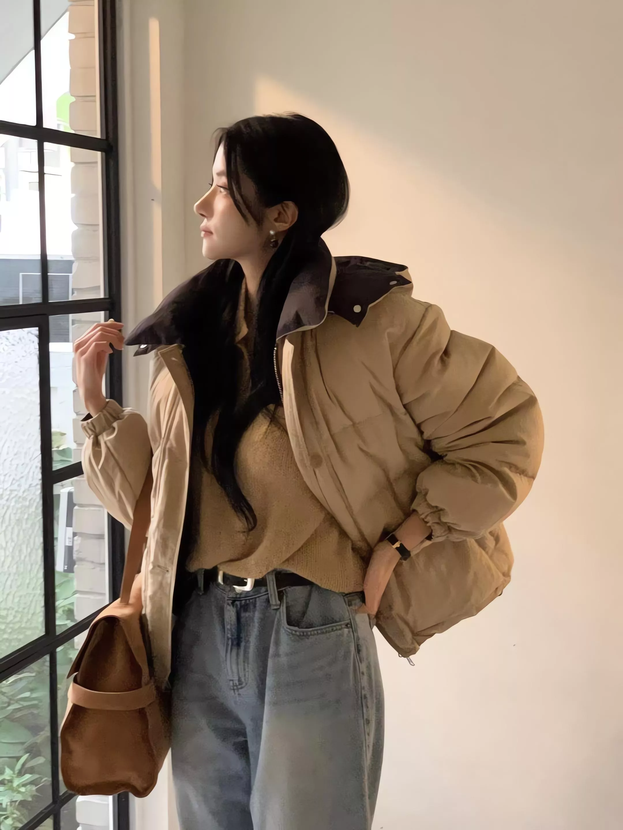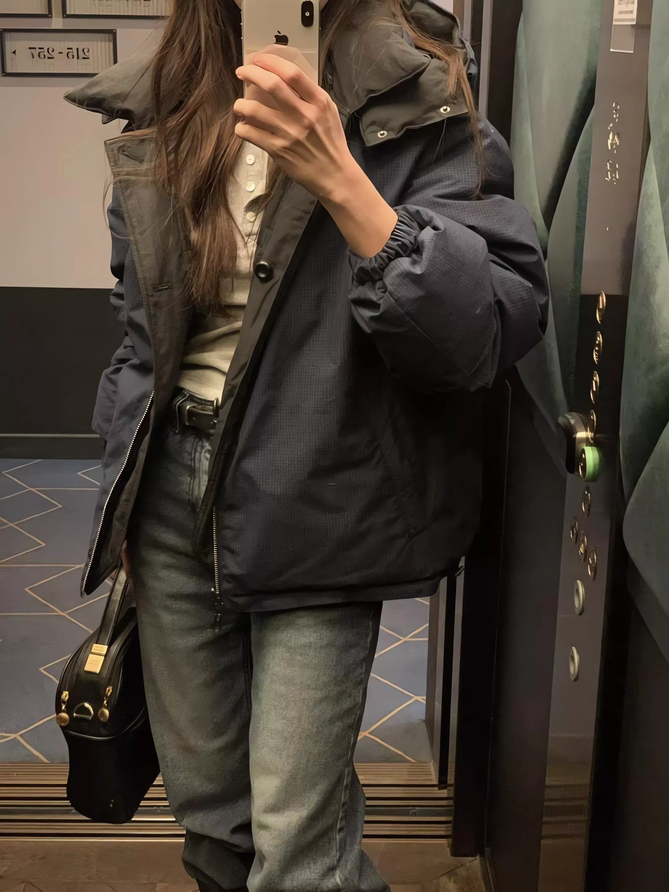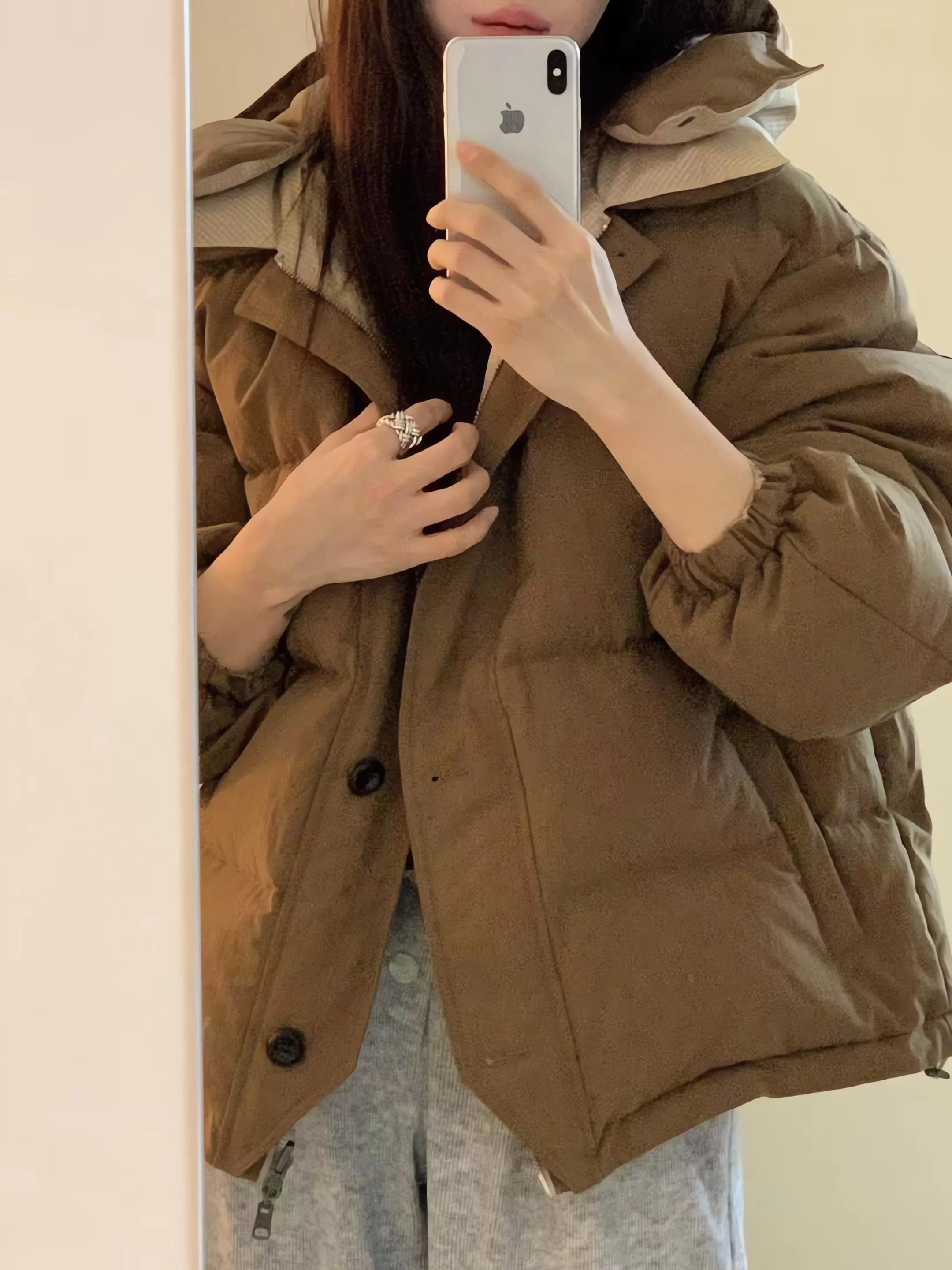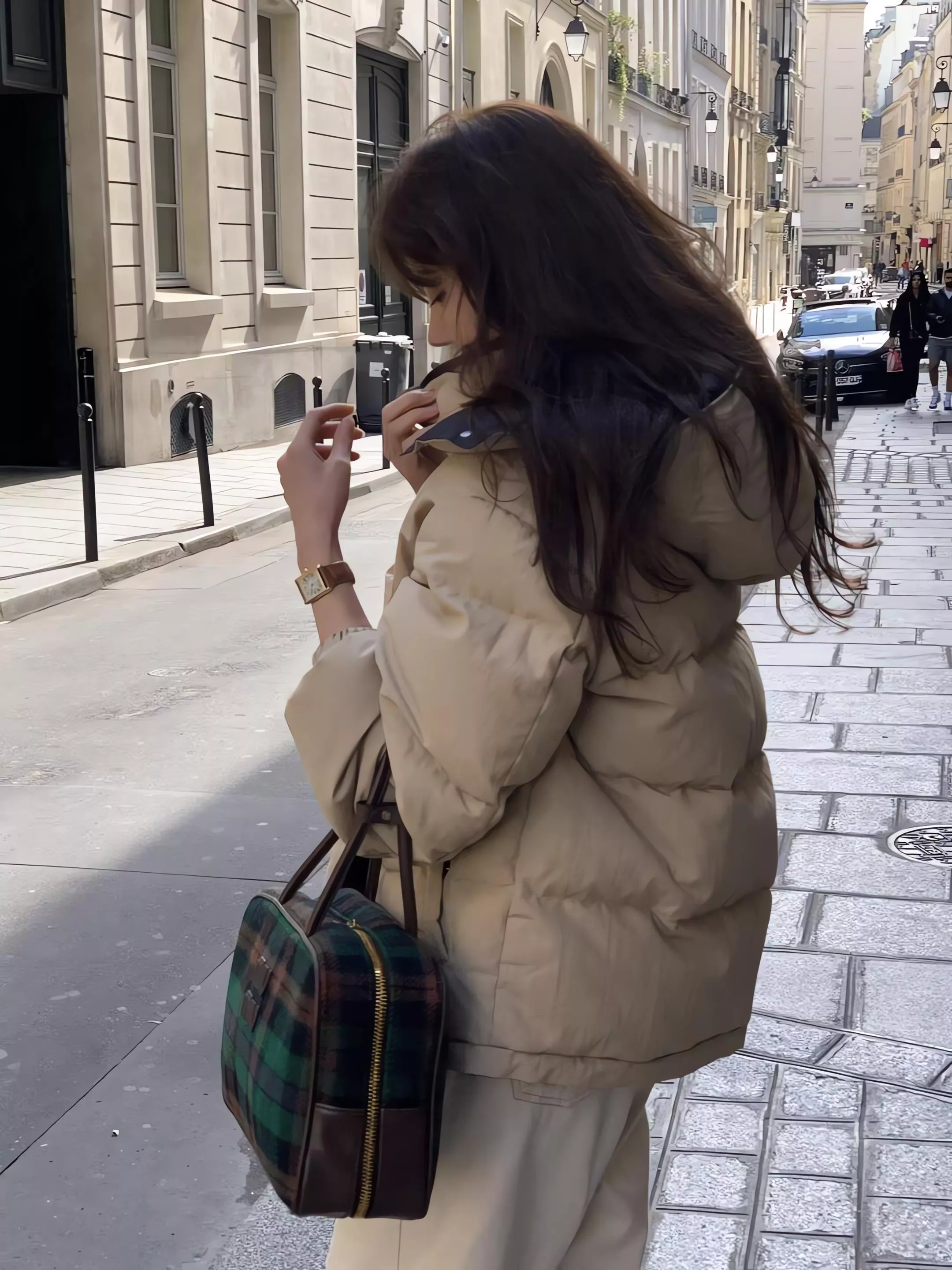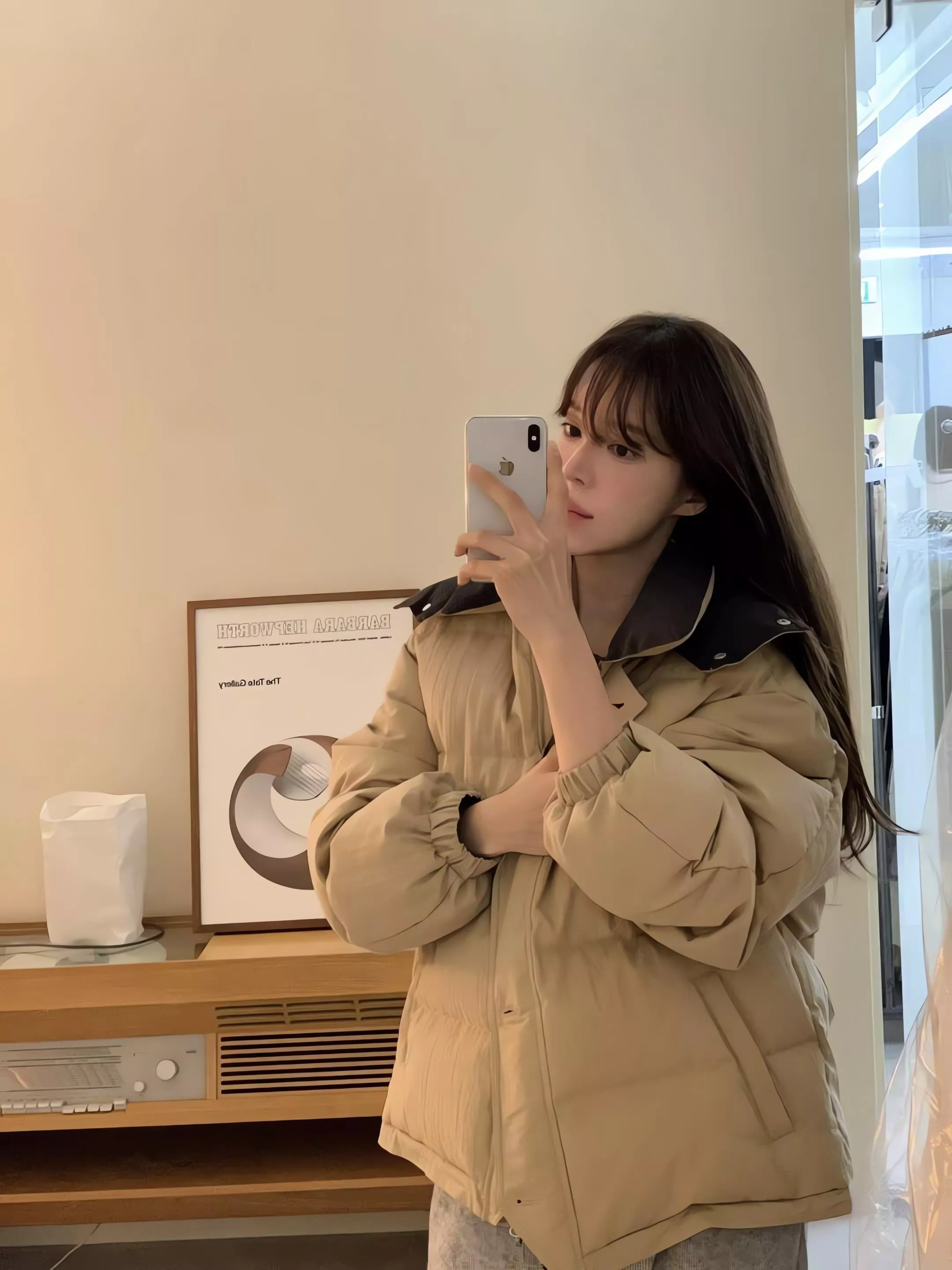 Objet 素面格紋兩面穿鵝絨外套 羽絨外套