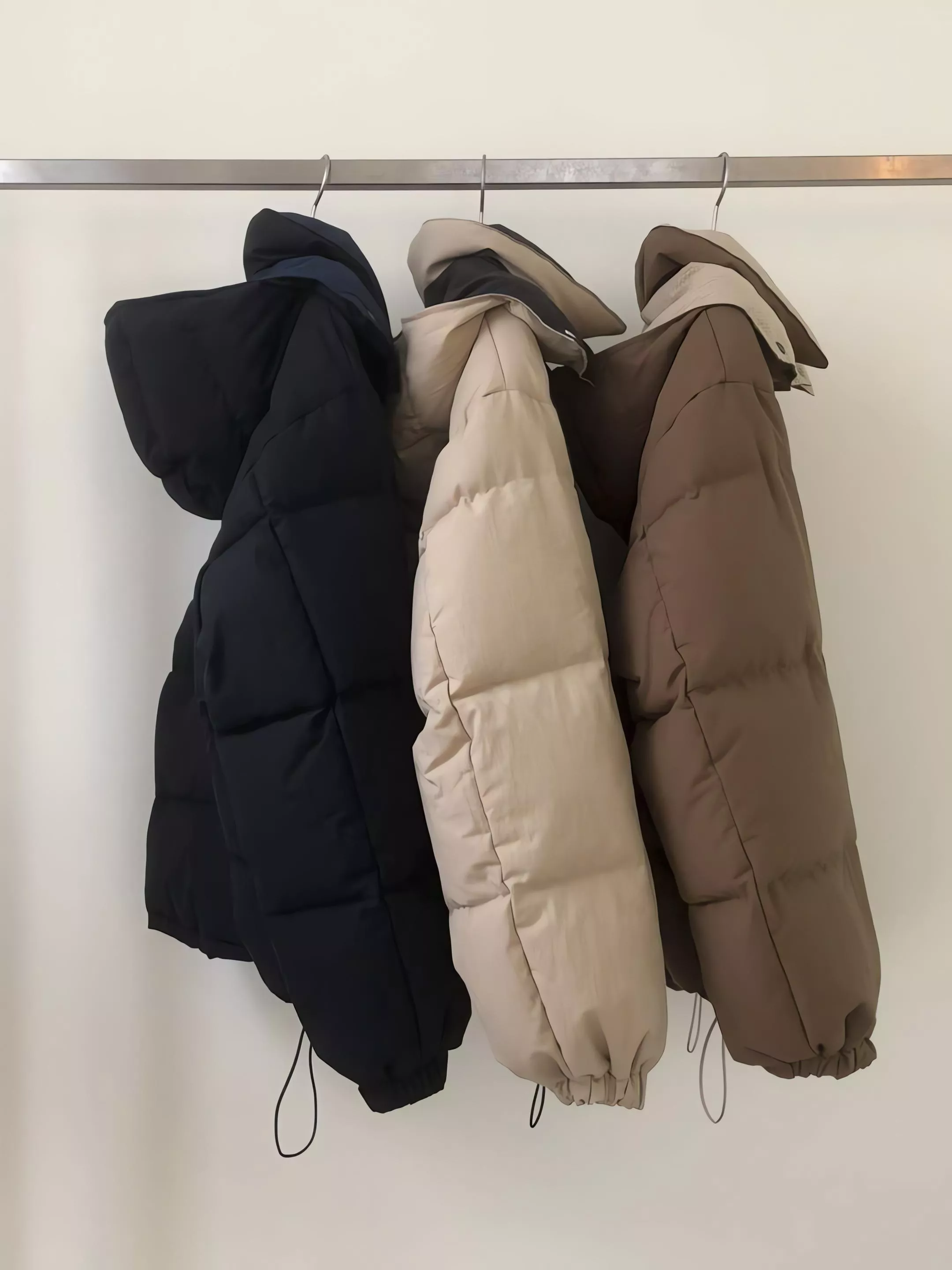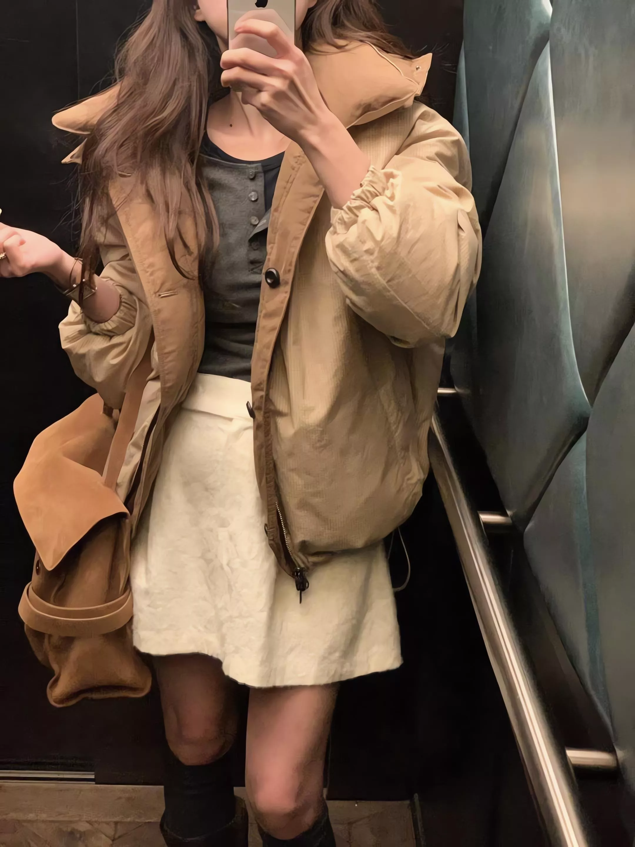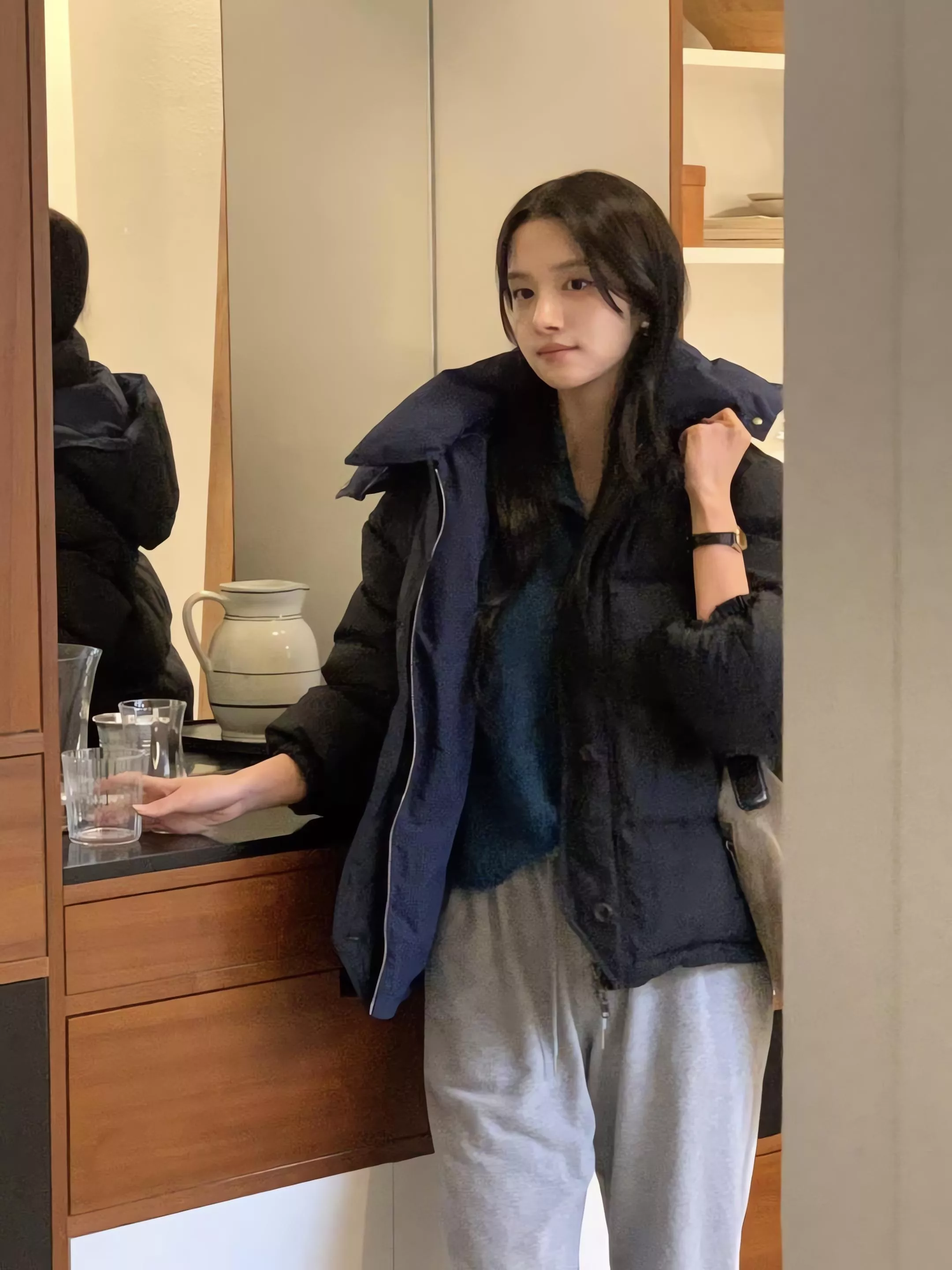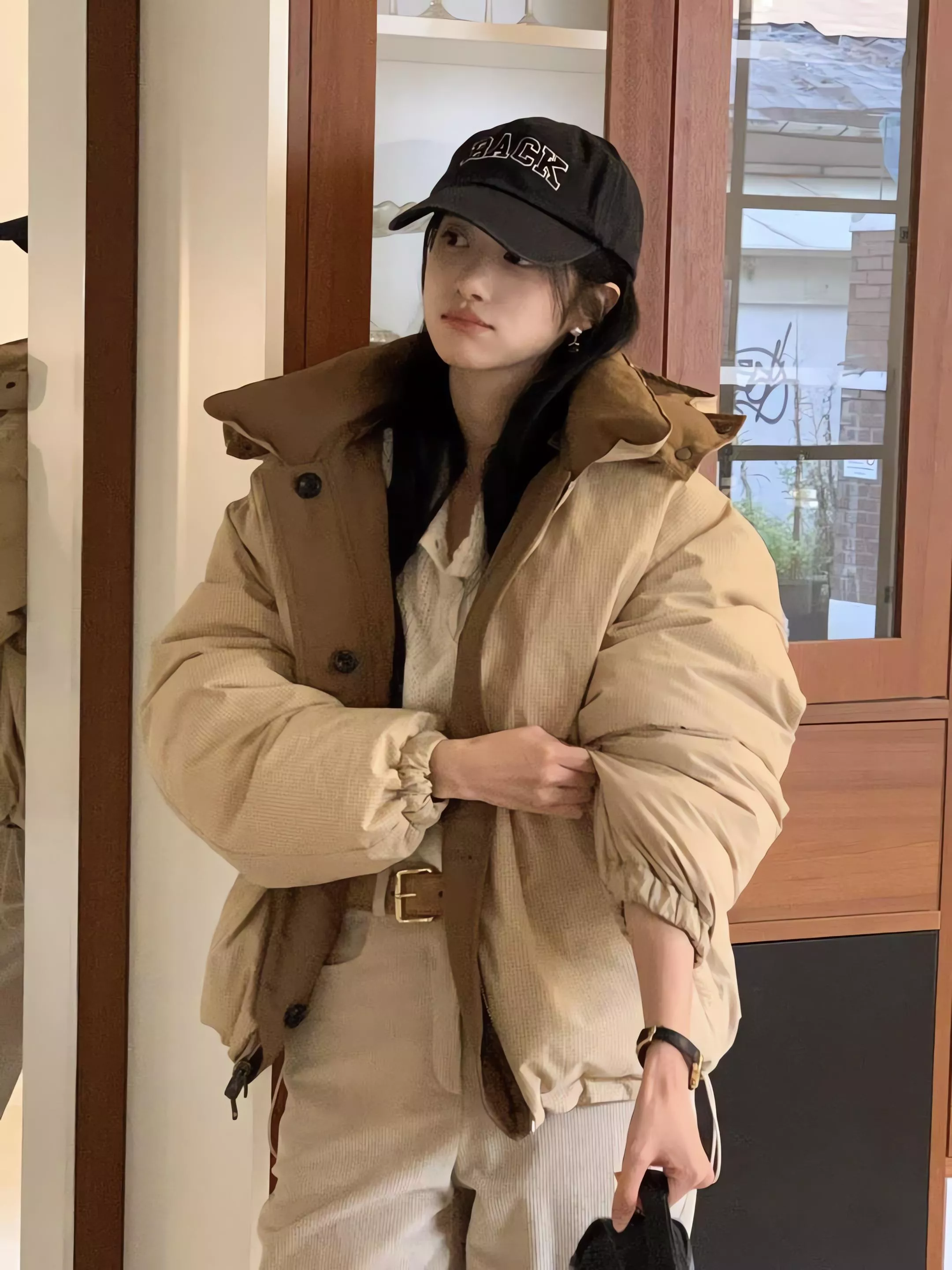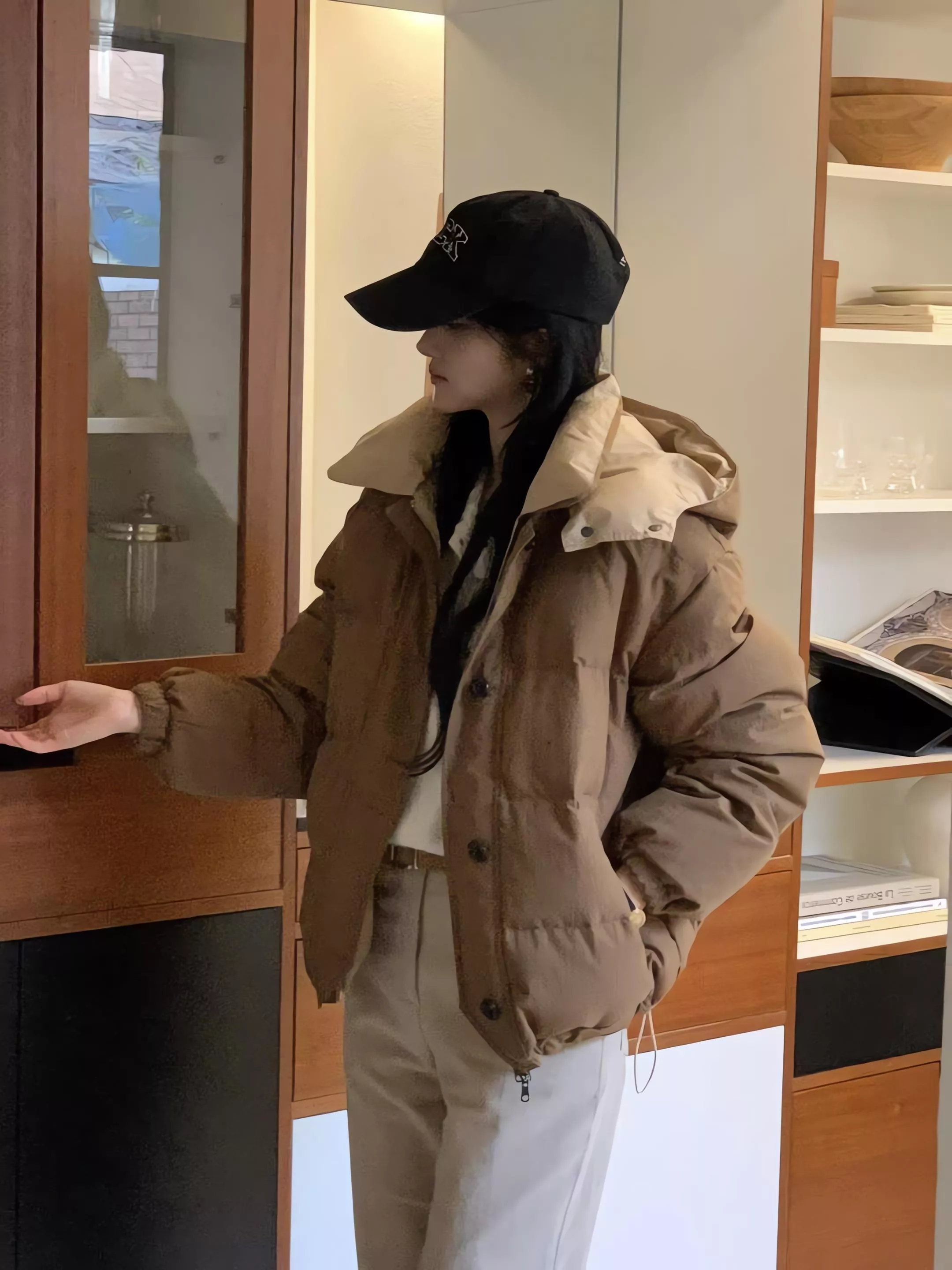 Objet 素面格紋兩面穿鵝絨外套 羽絨外套