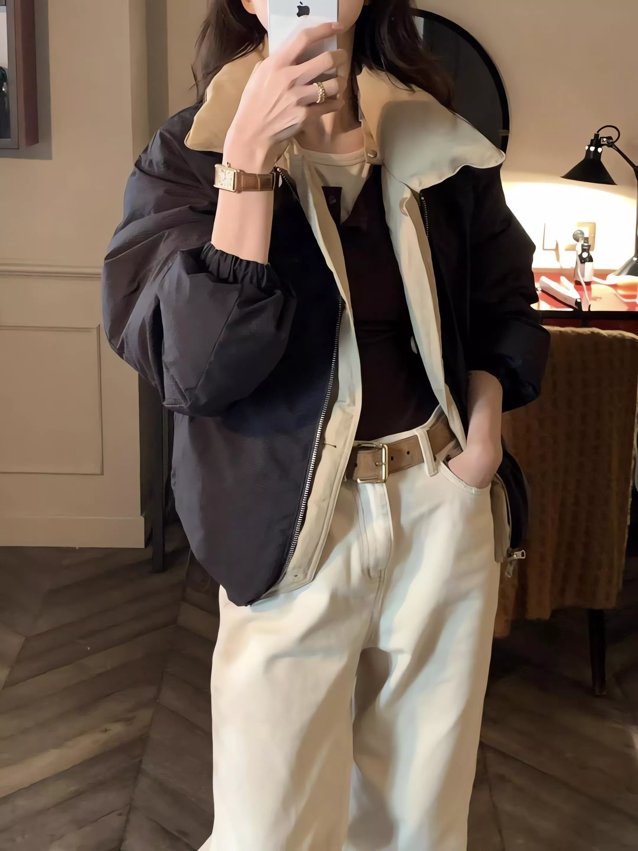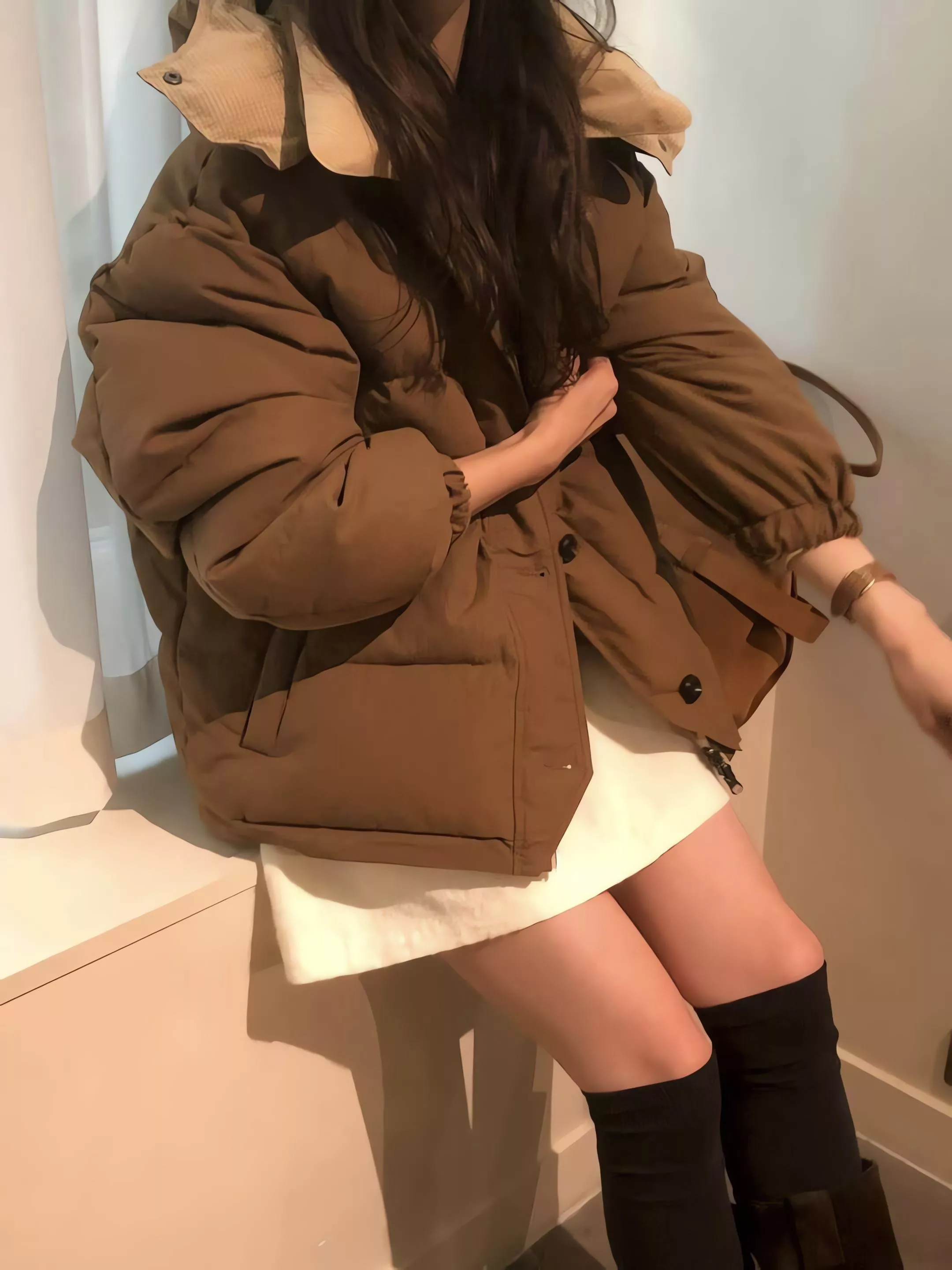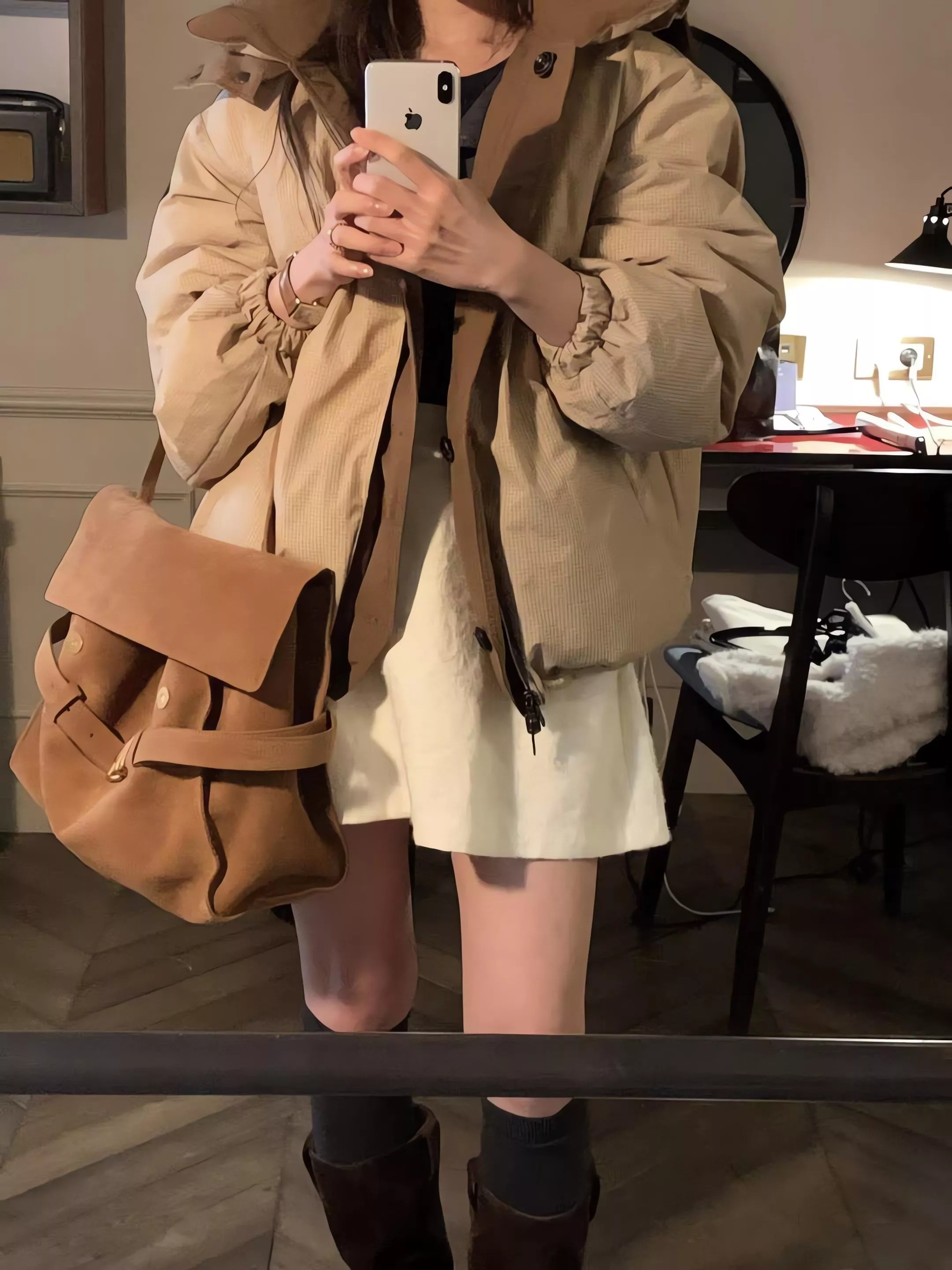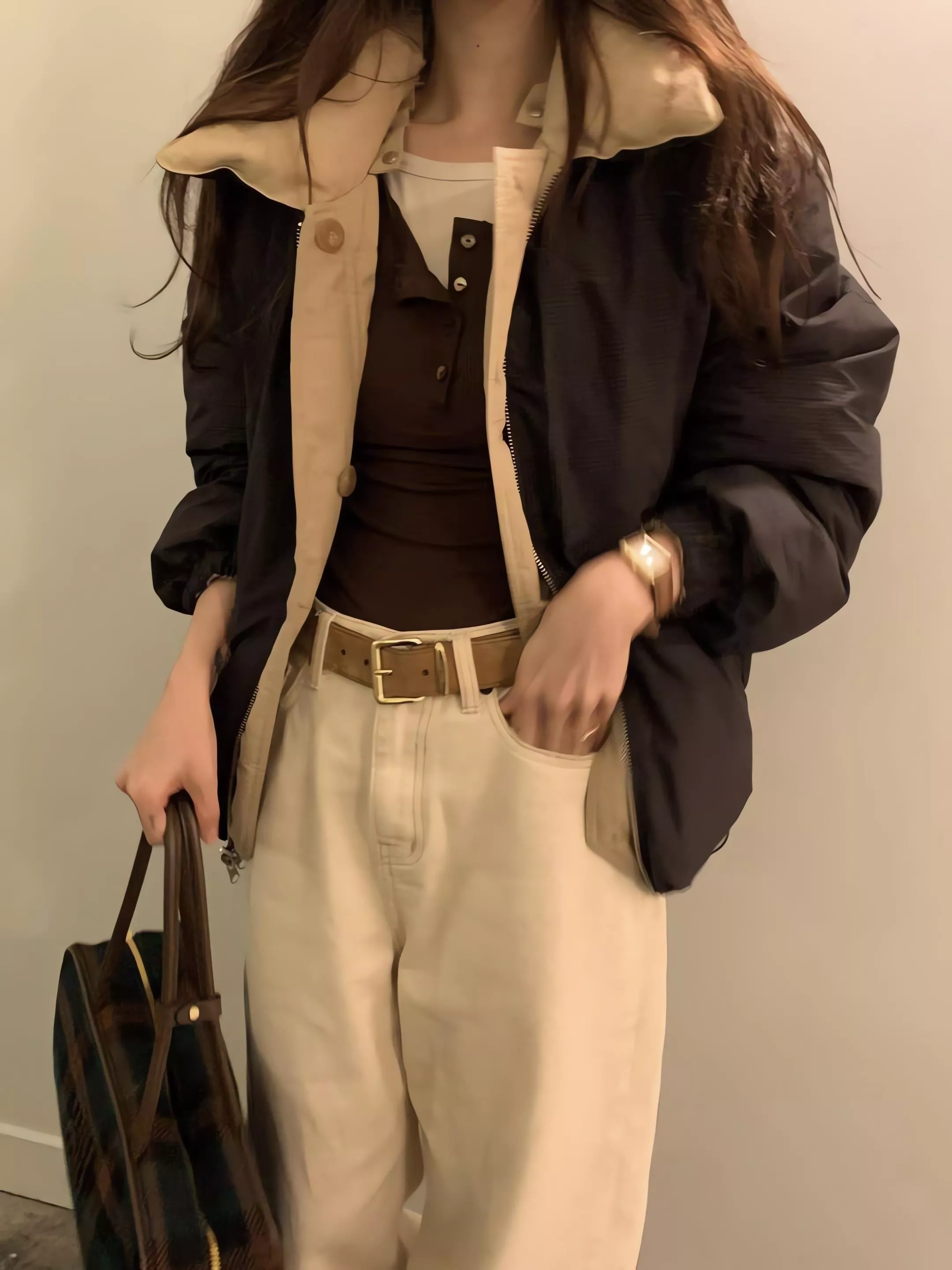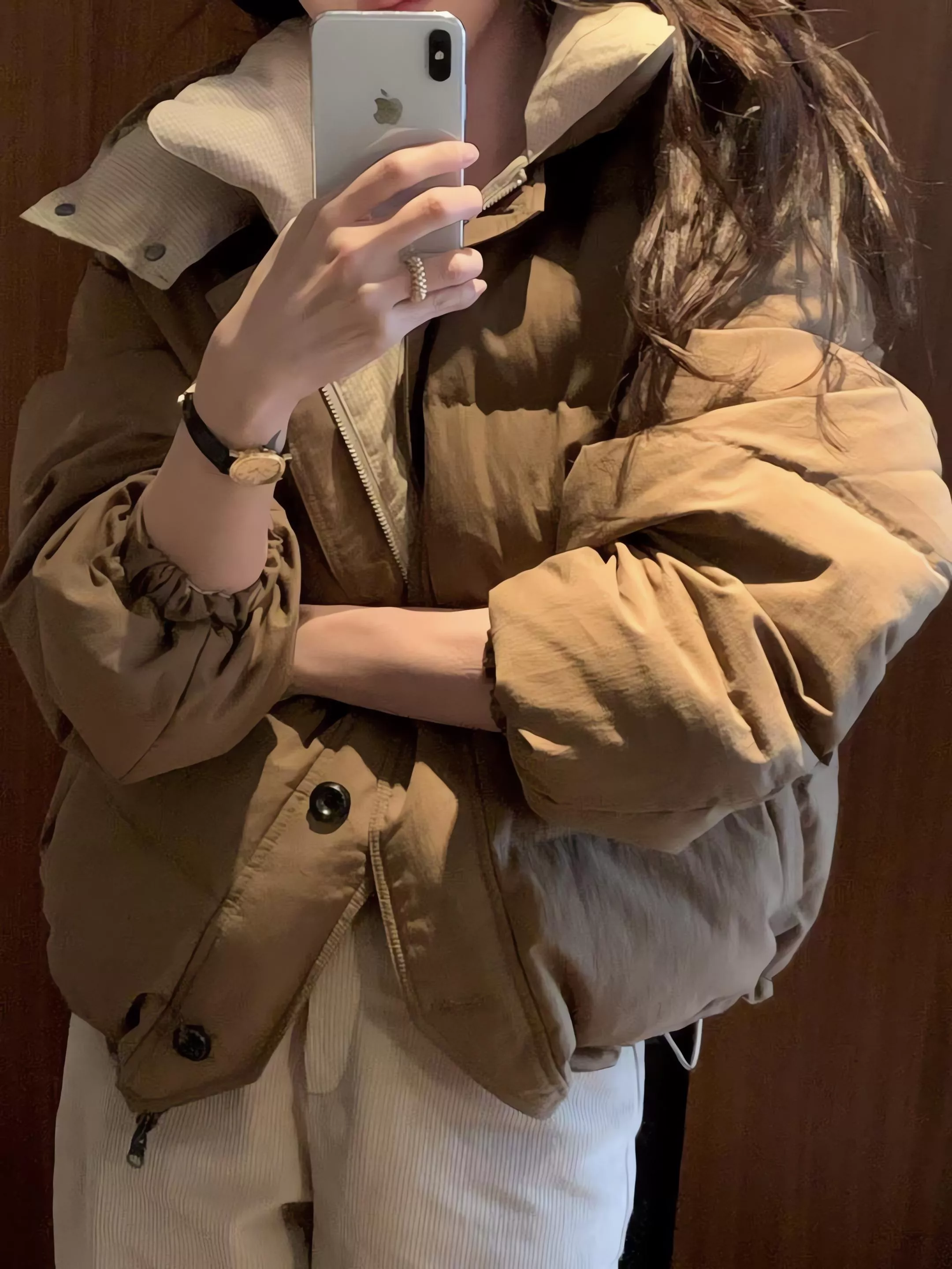 Objet 素面格紋兩面穿鵝絨外套 羽絨外套