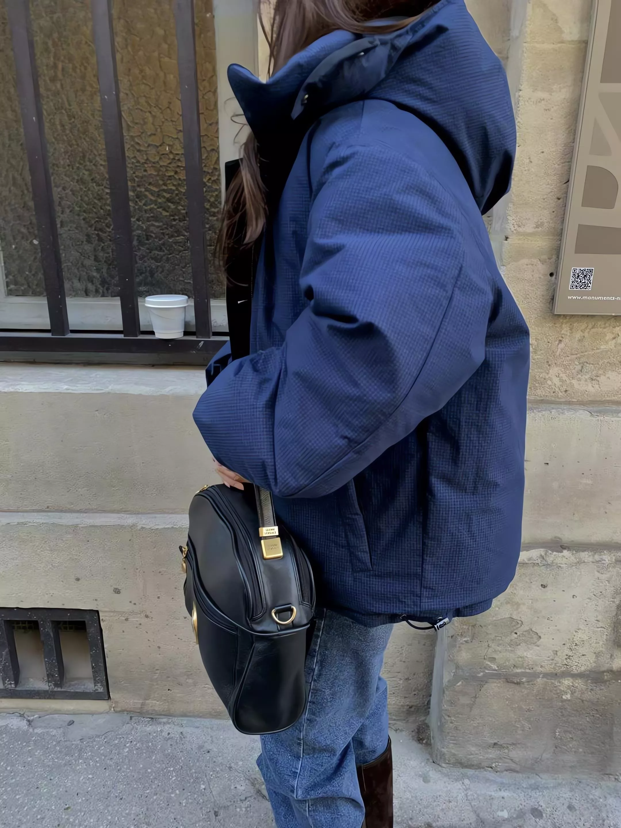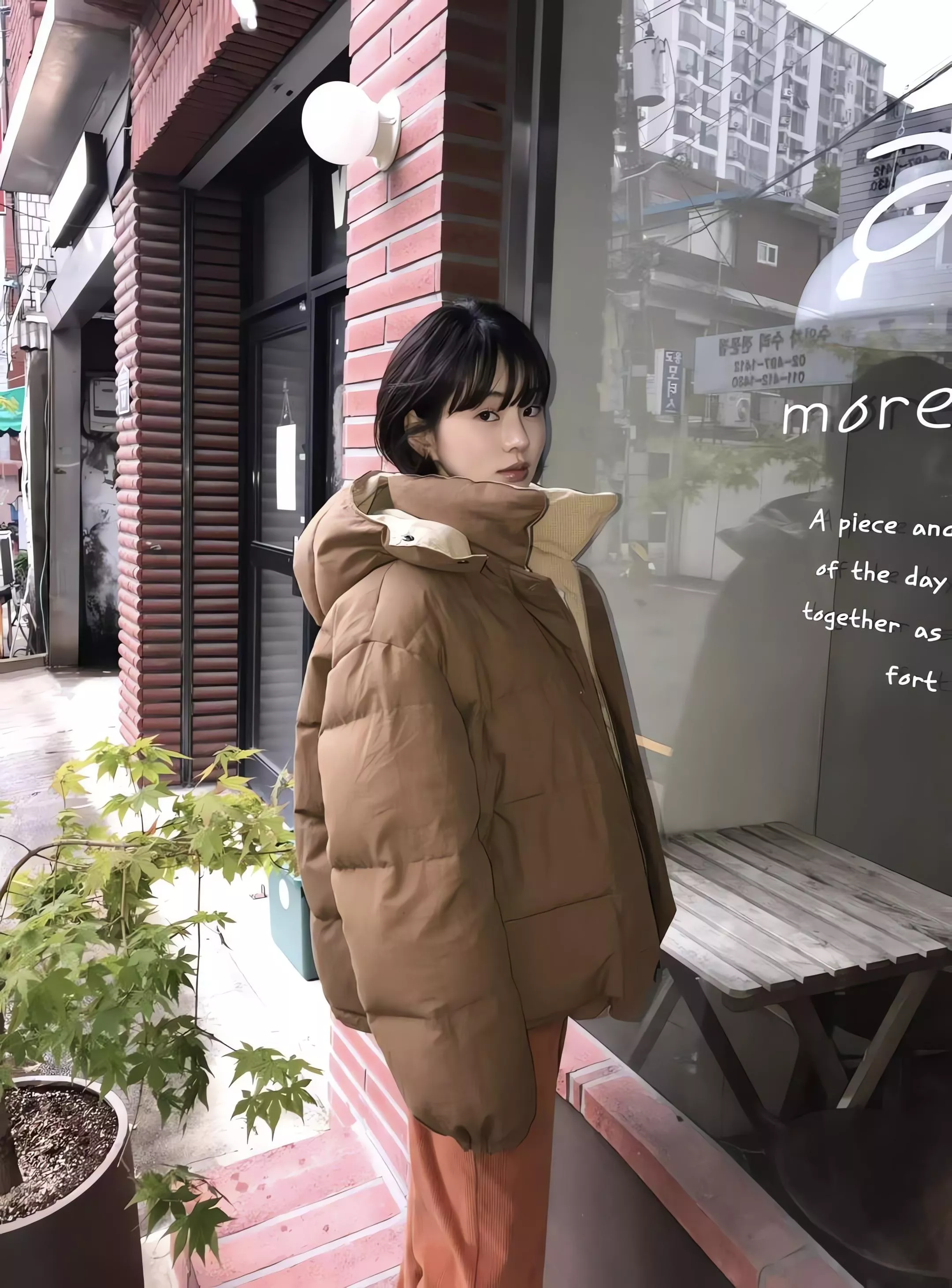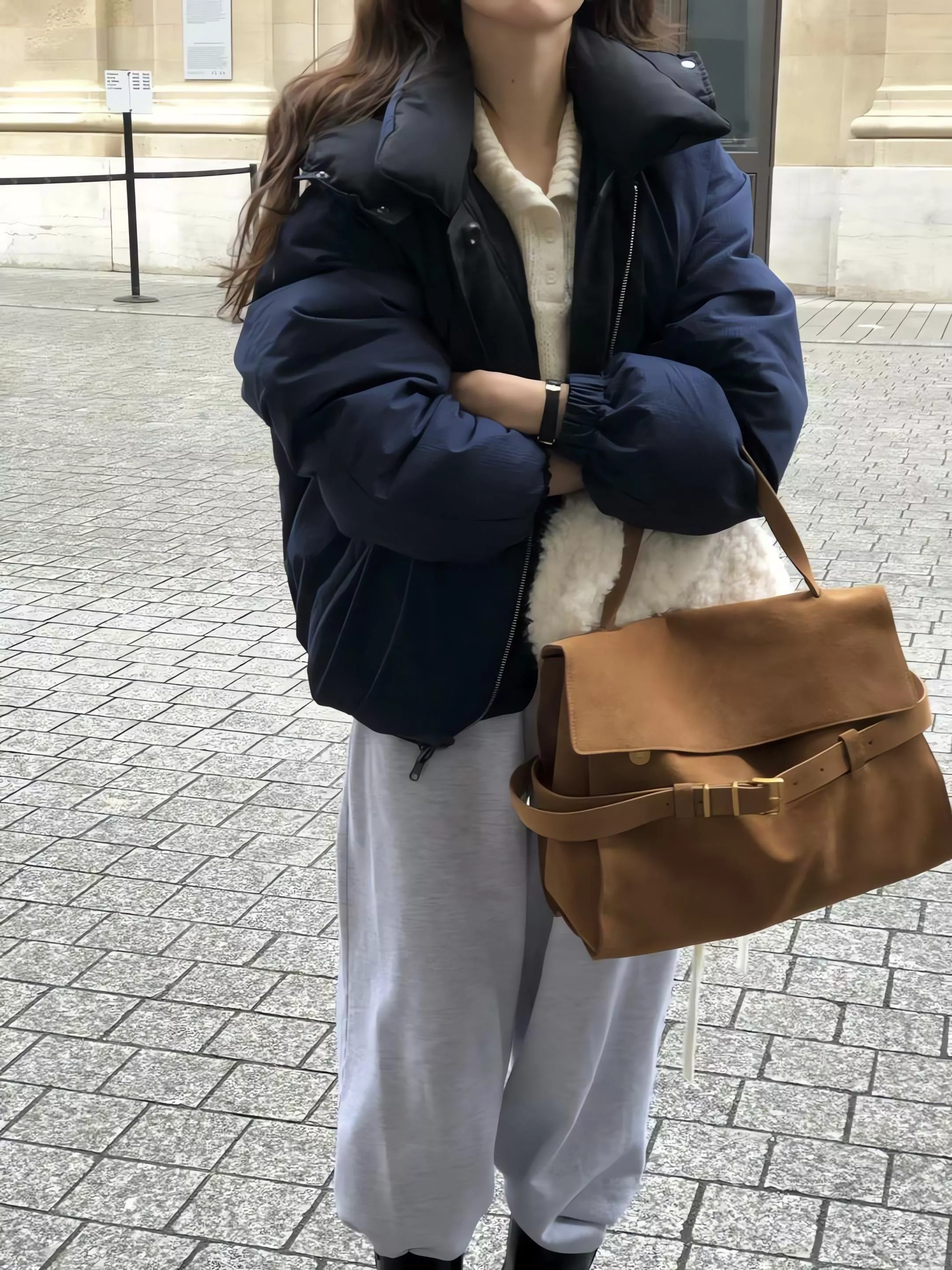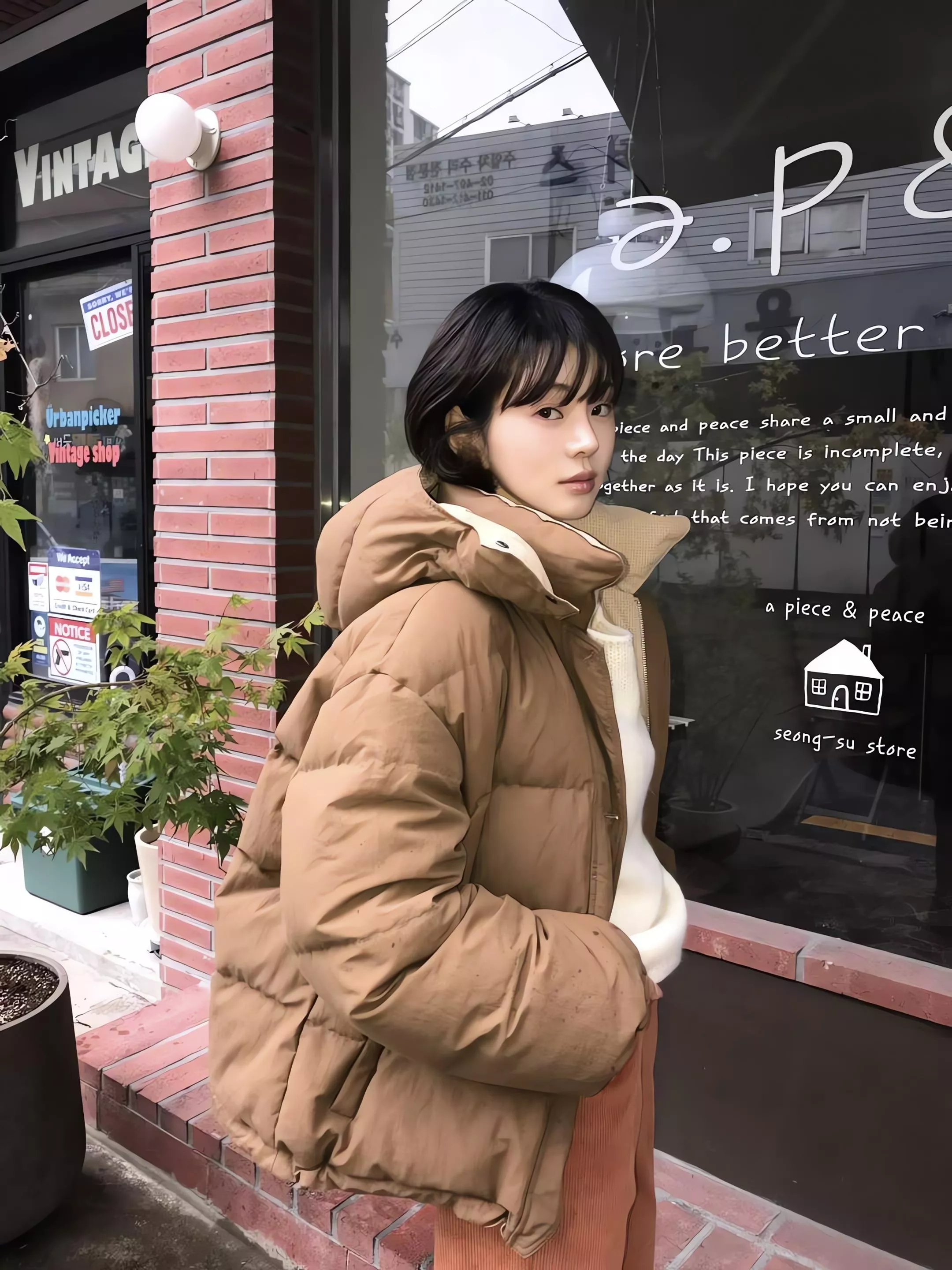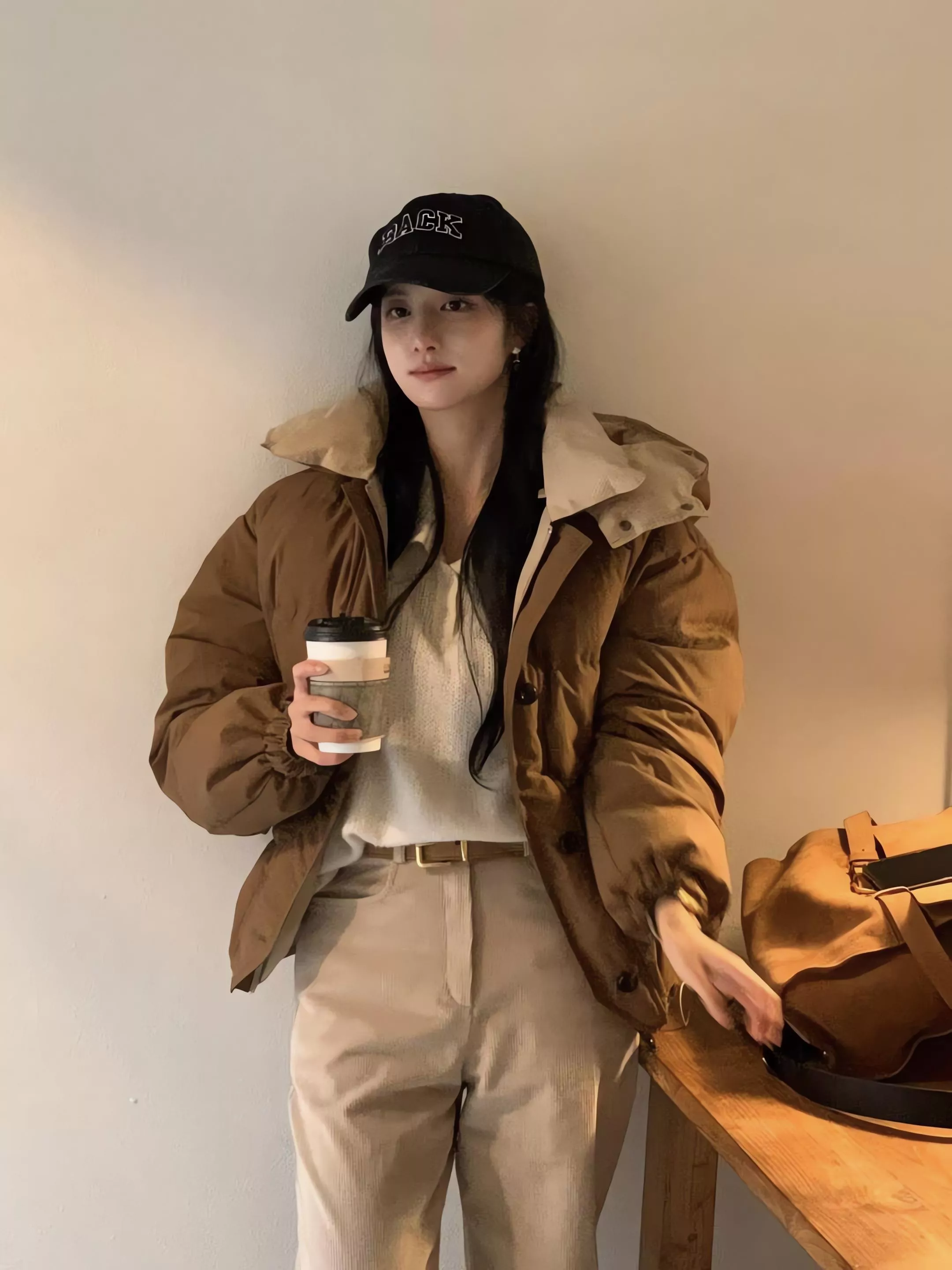 Objet 素面格紋兩面穿鵝絨外套 羽絨外套