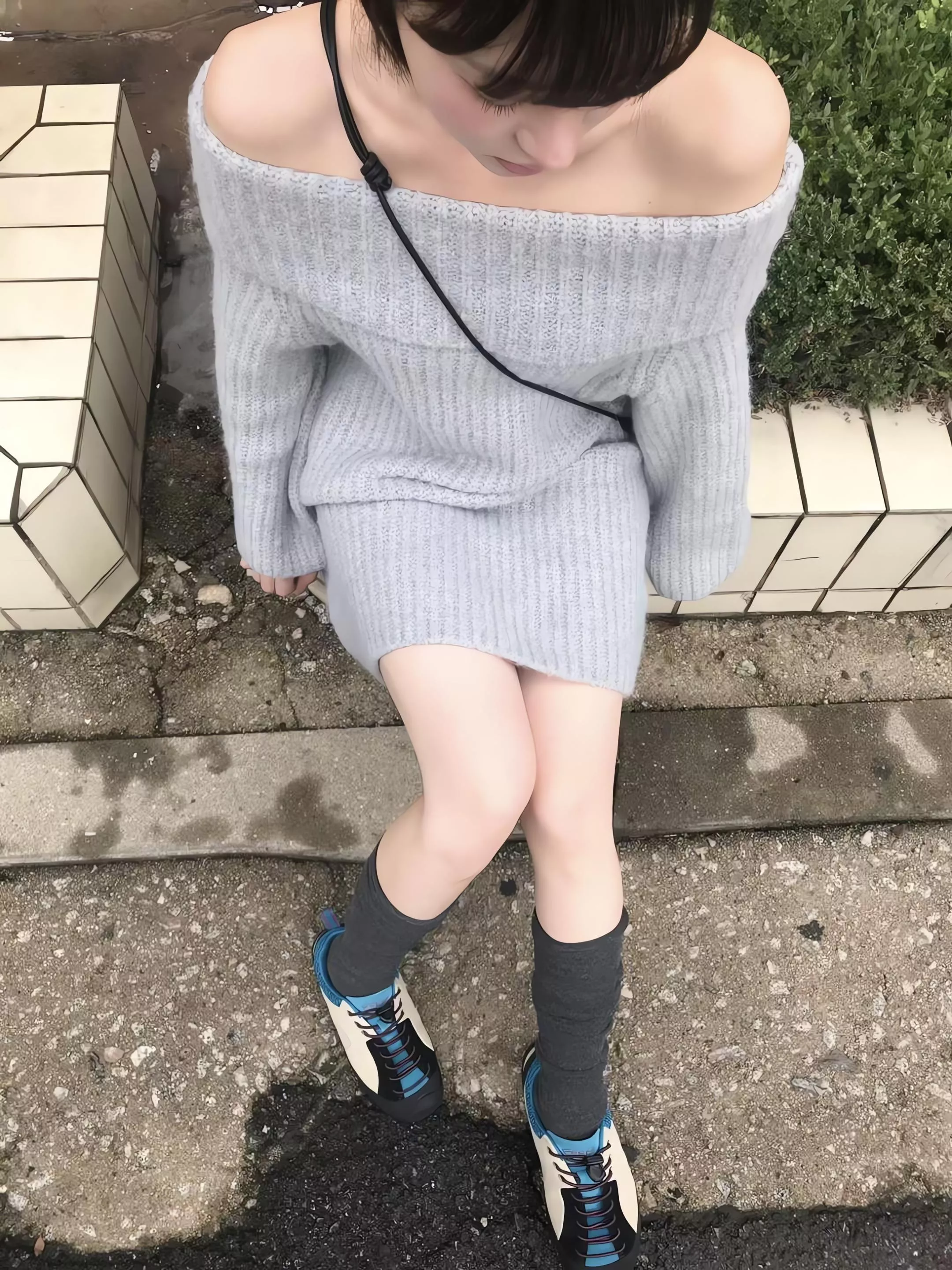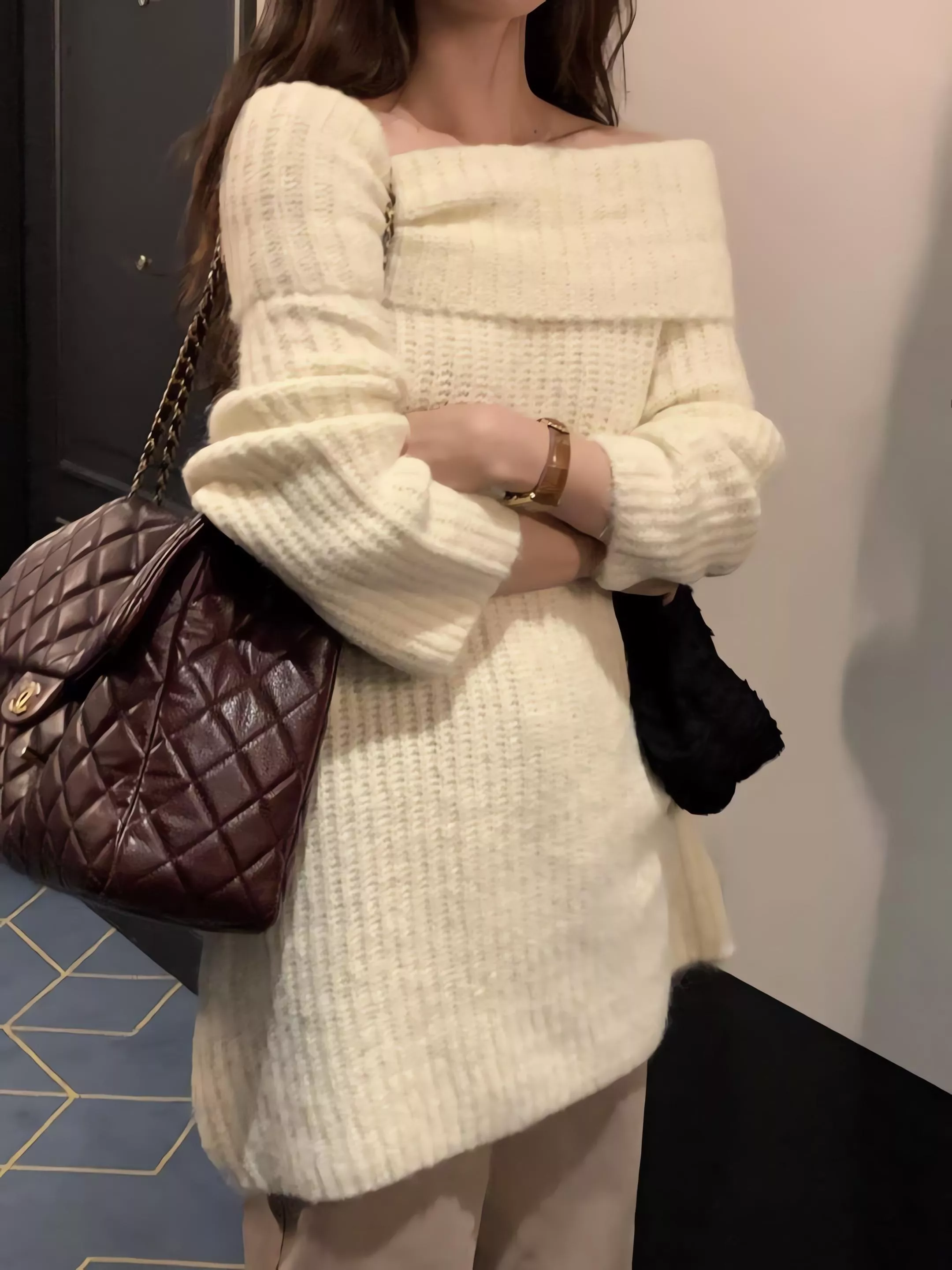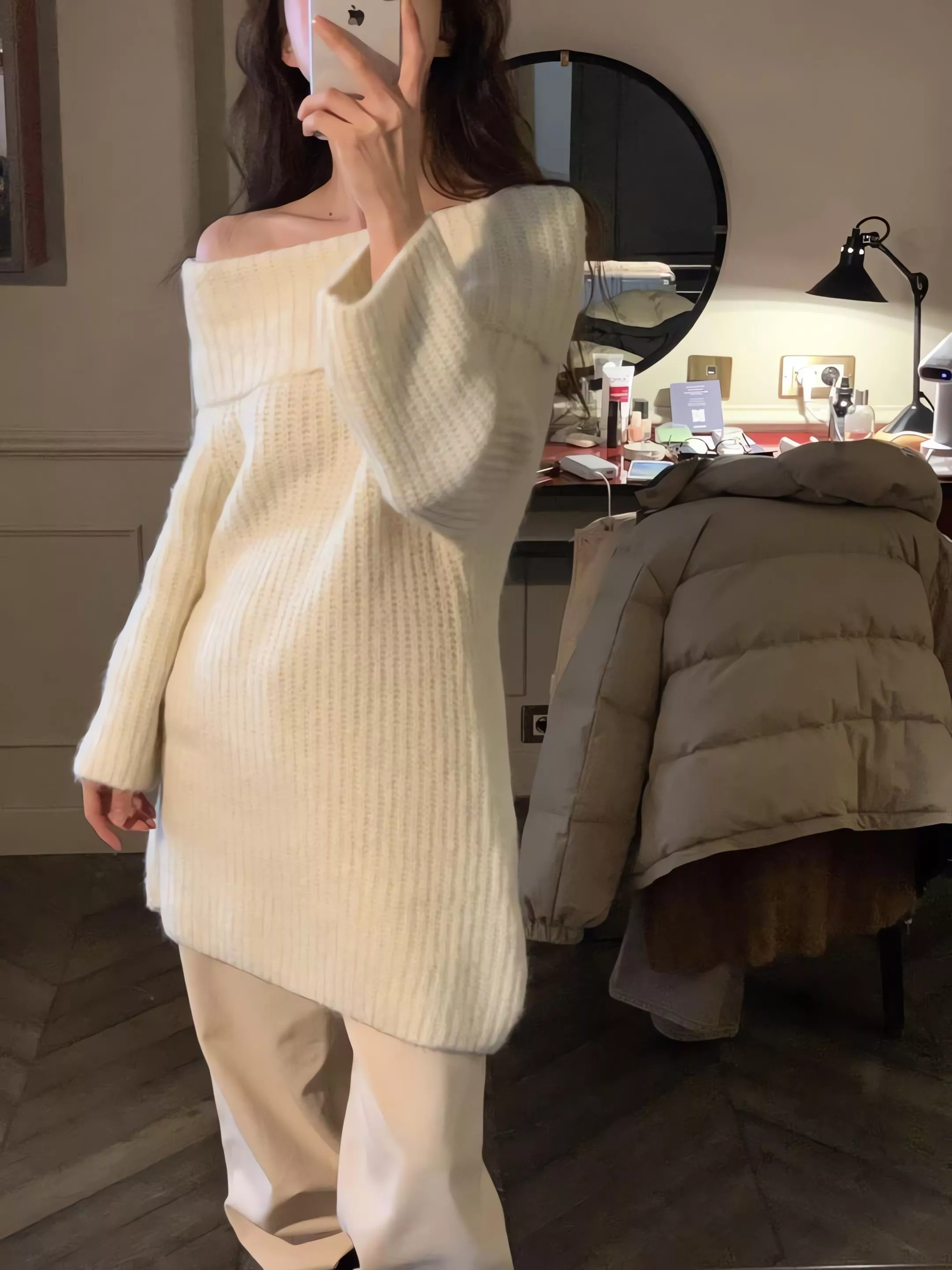 Objet 露肩針織連身裙 駱馬毛混紡針織
