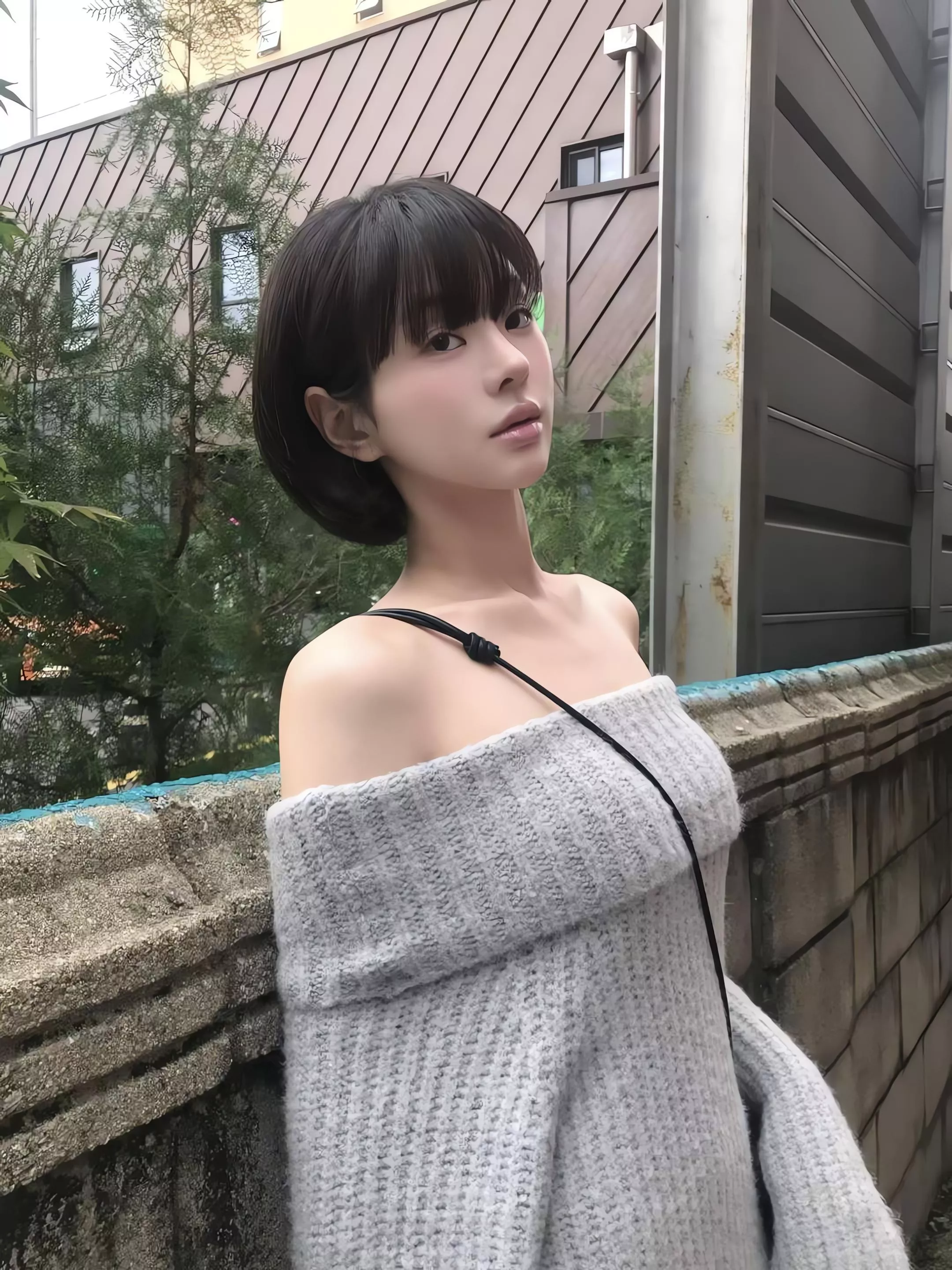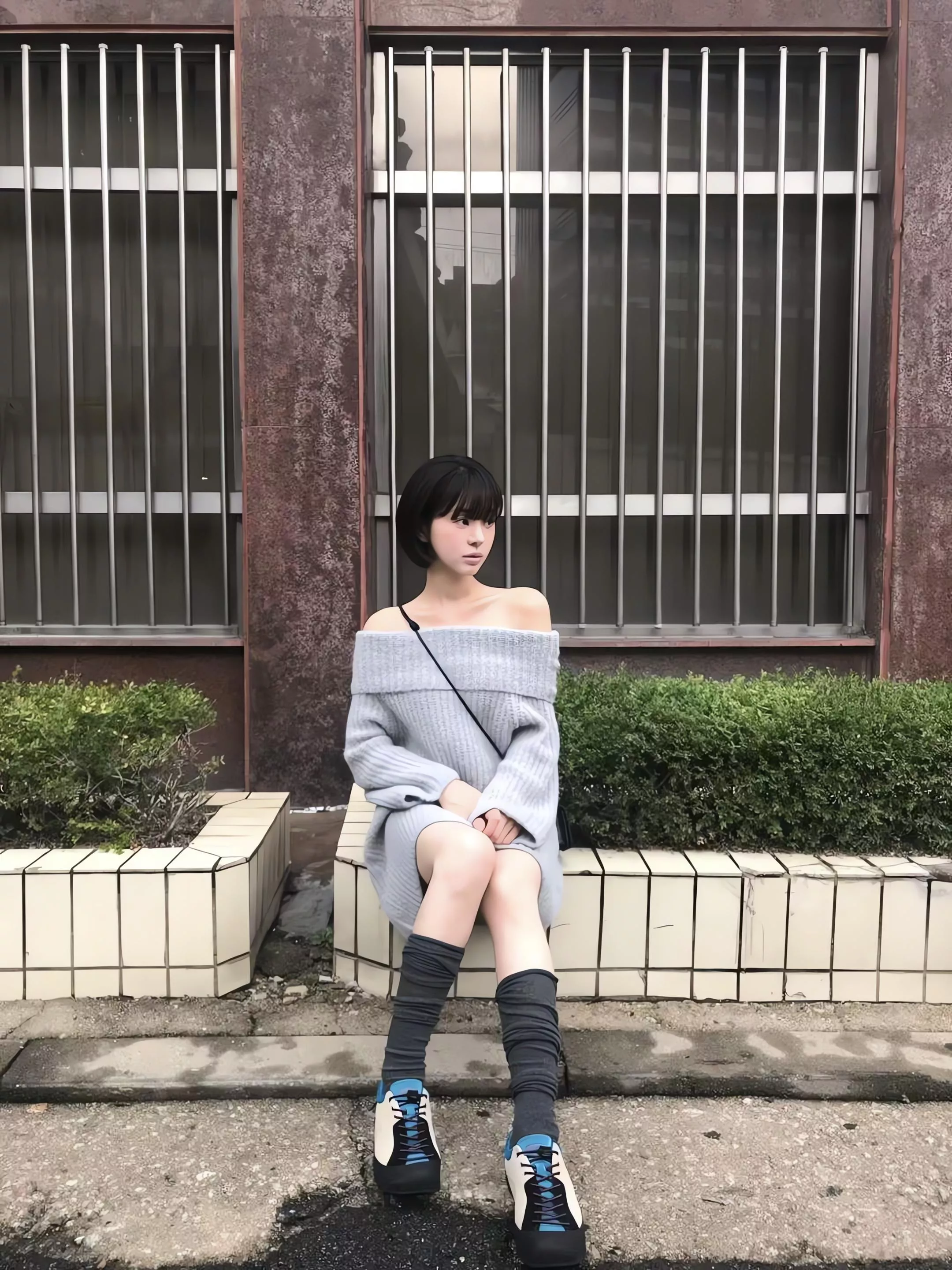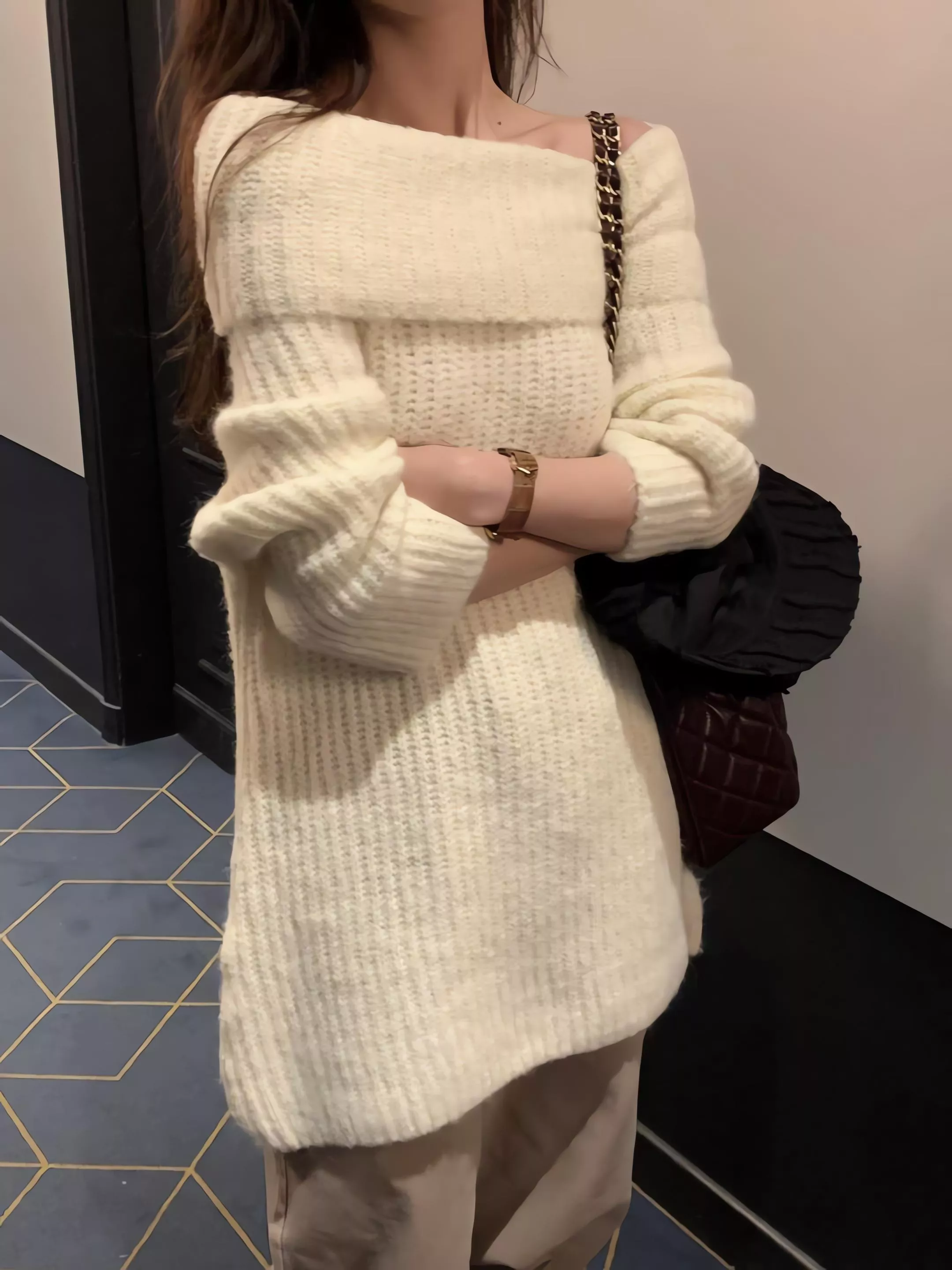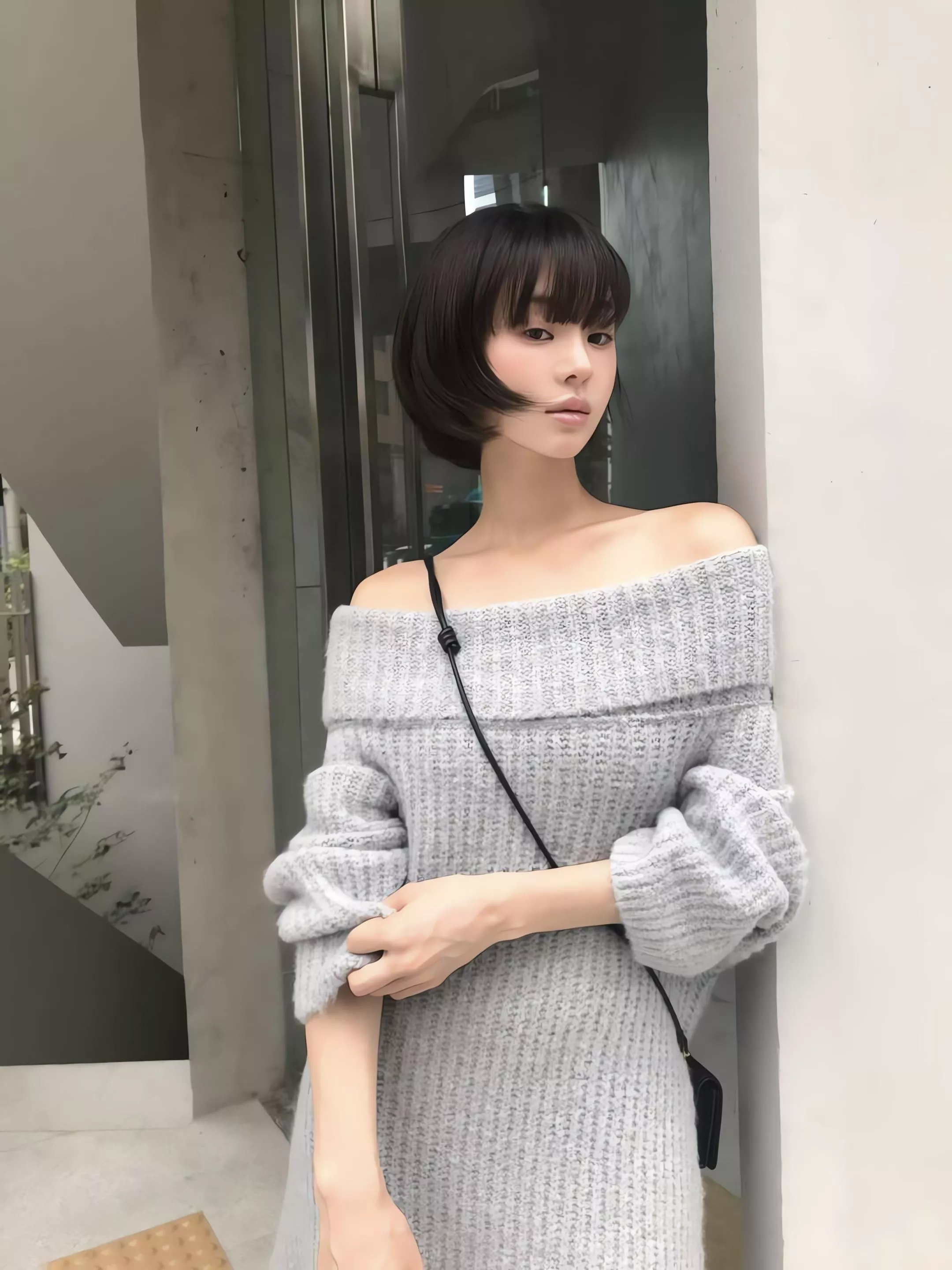 Objet 露肩針織連身裙 駱馬毛混紡針織