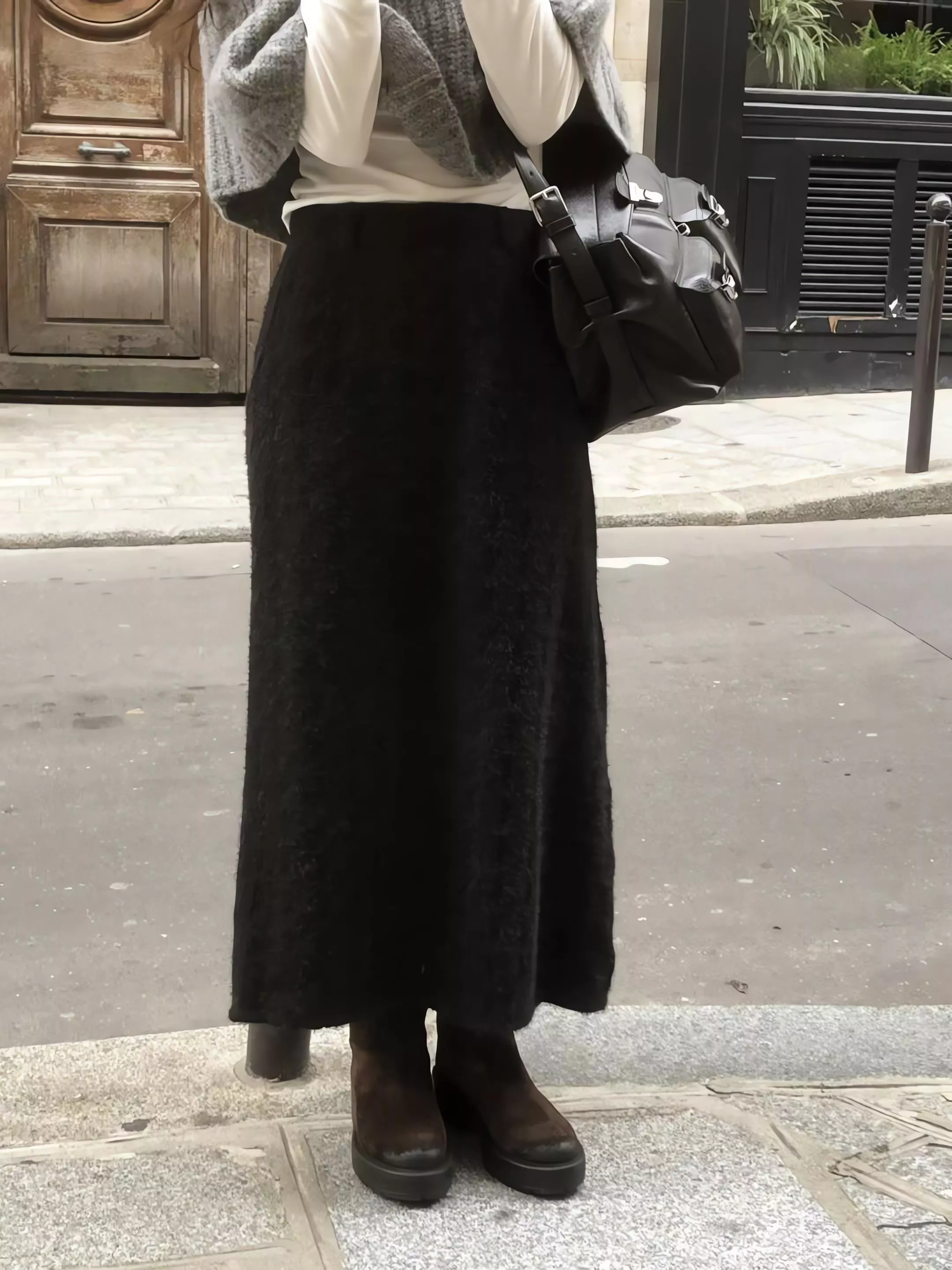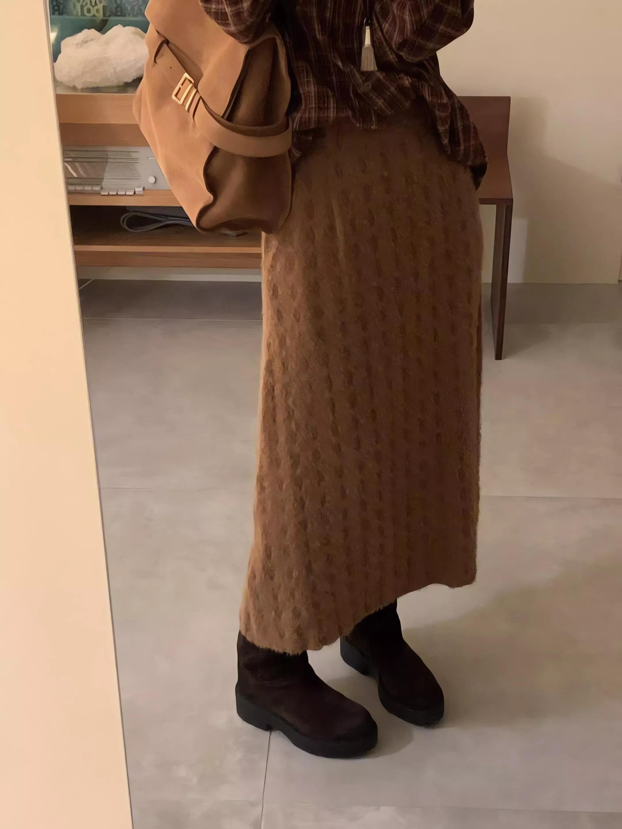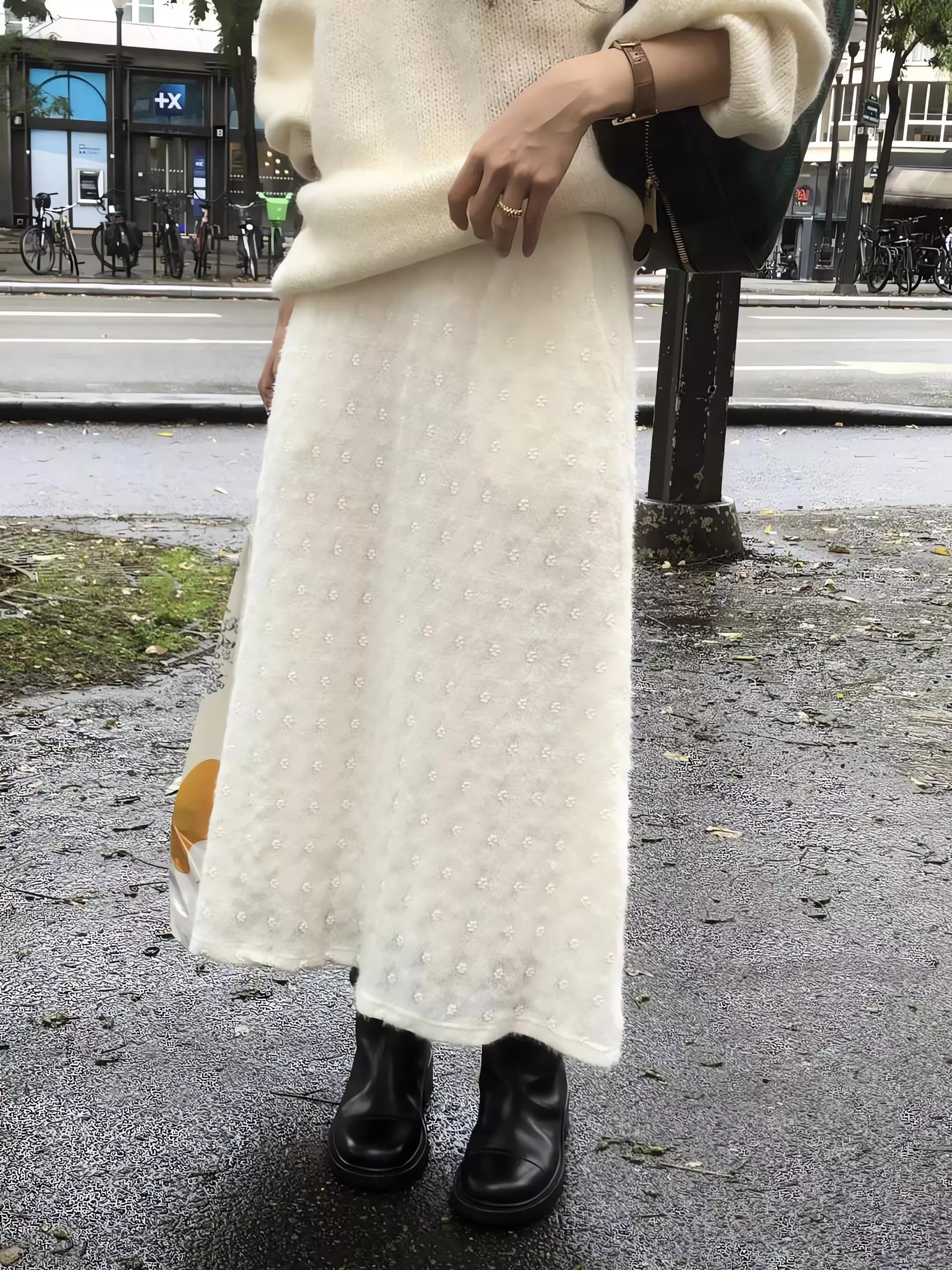 Objet 刷毛蕾絲針織半身裙 A字裙