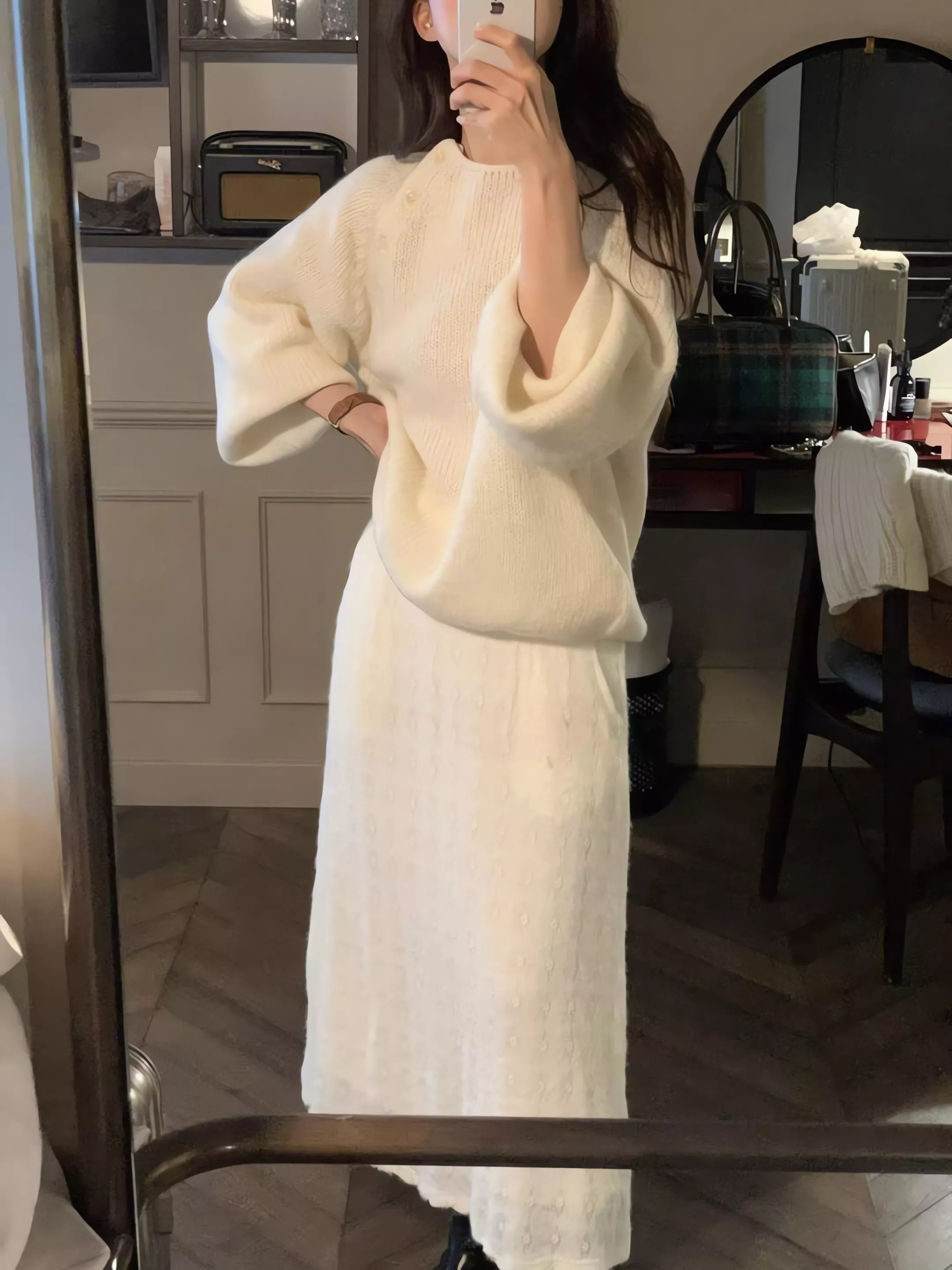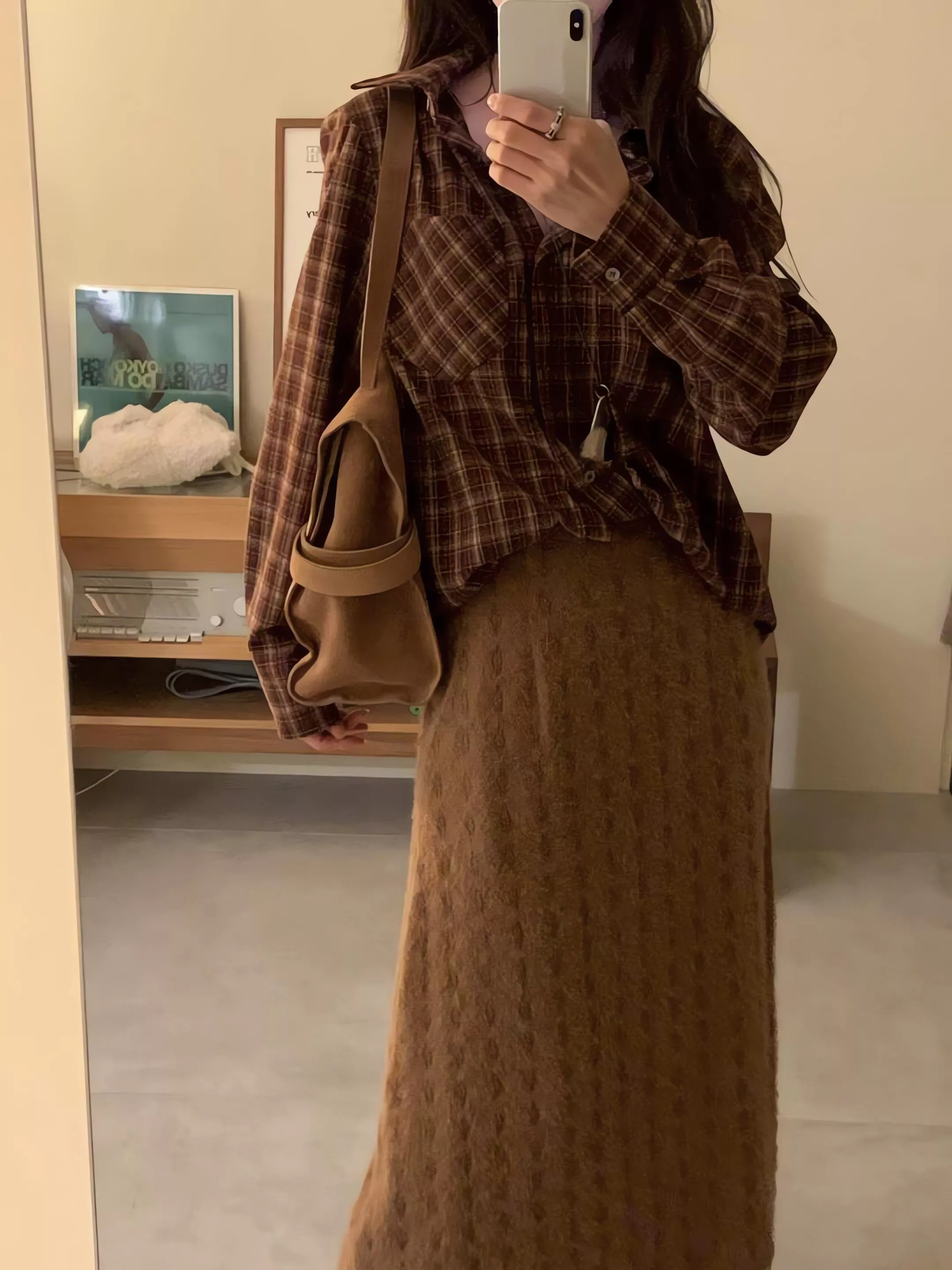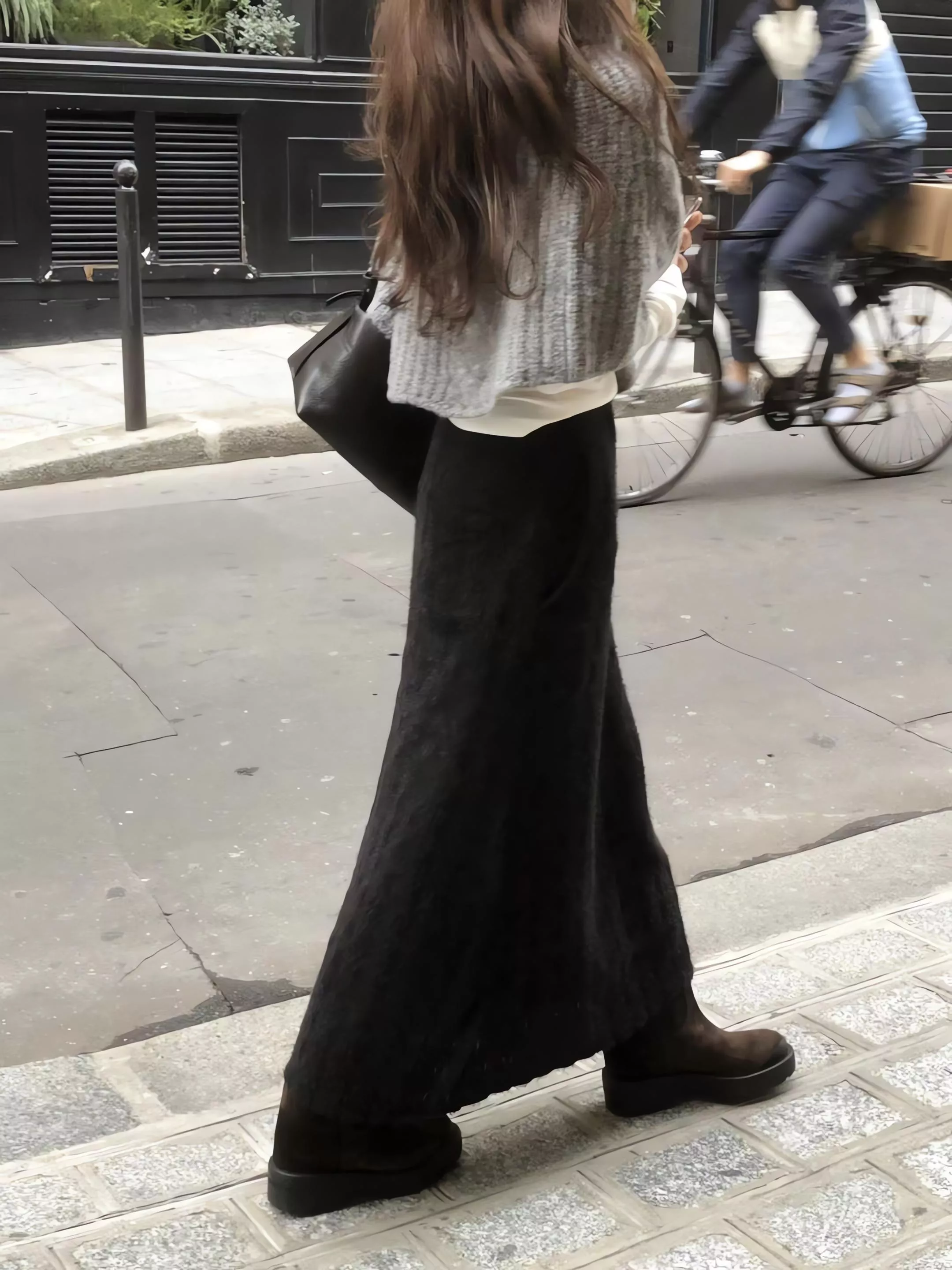 Objet 刷毛蕾絲針織半身裙 A字裙