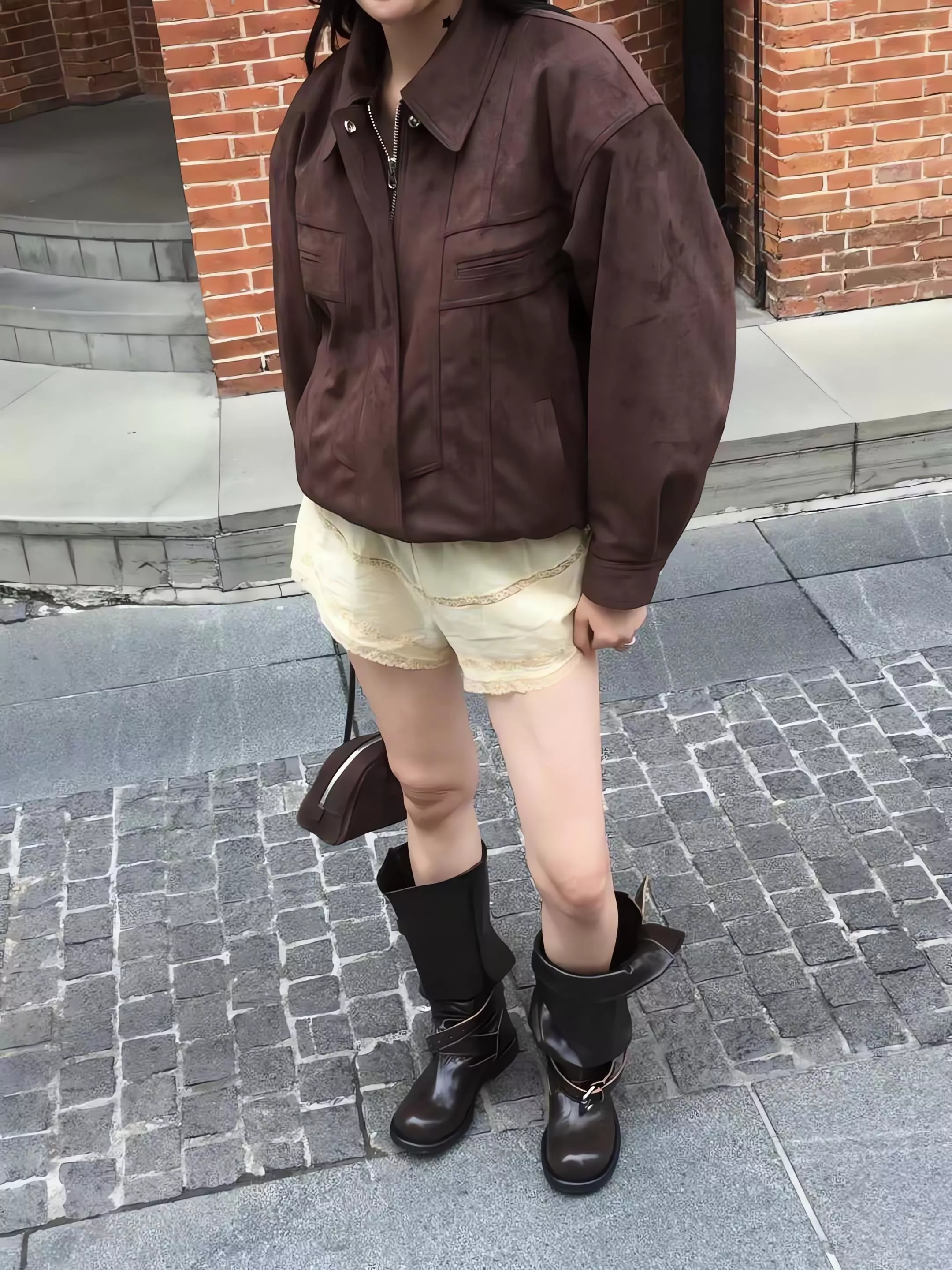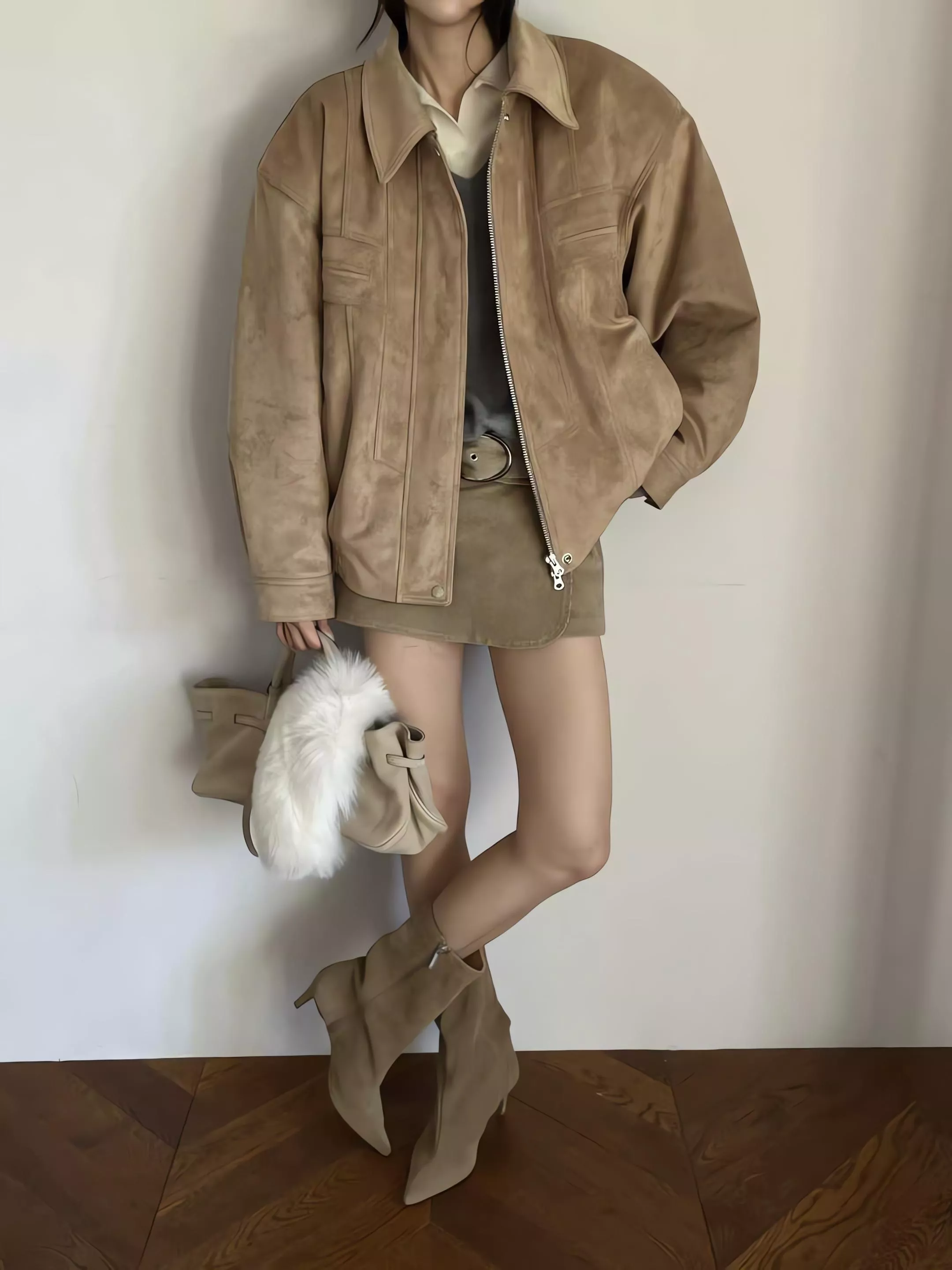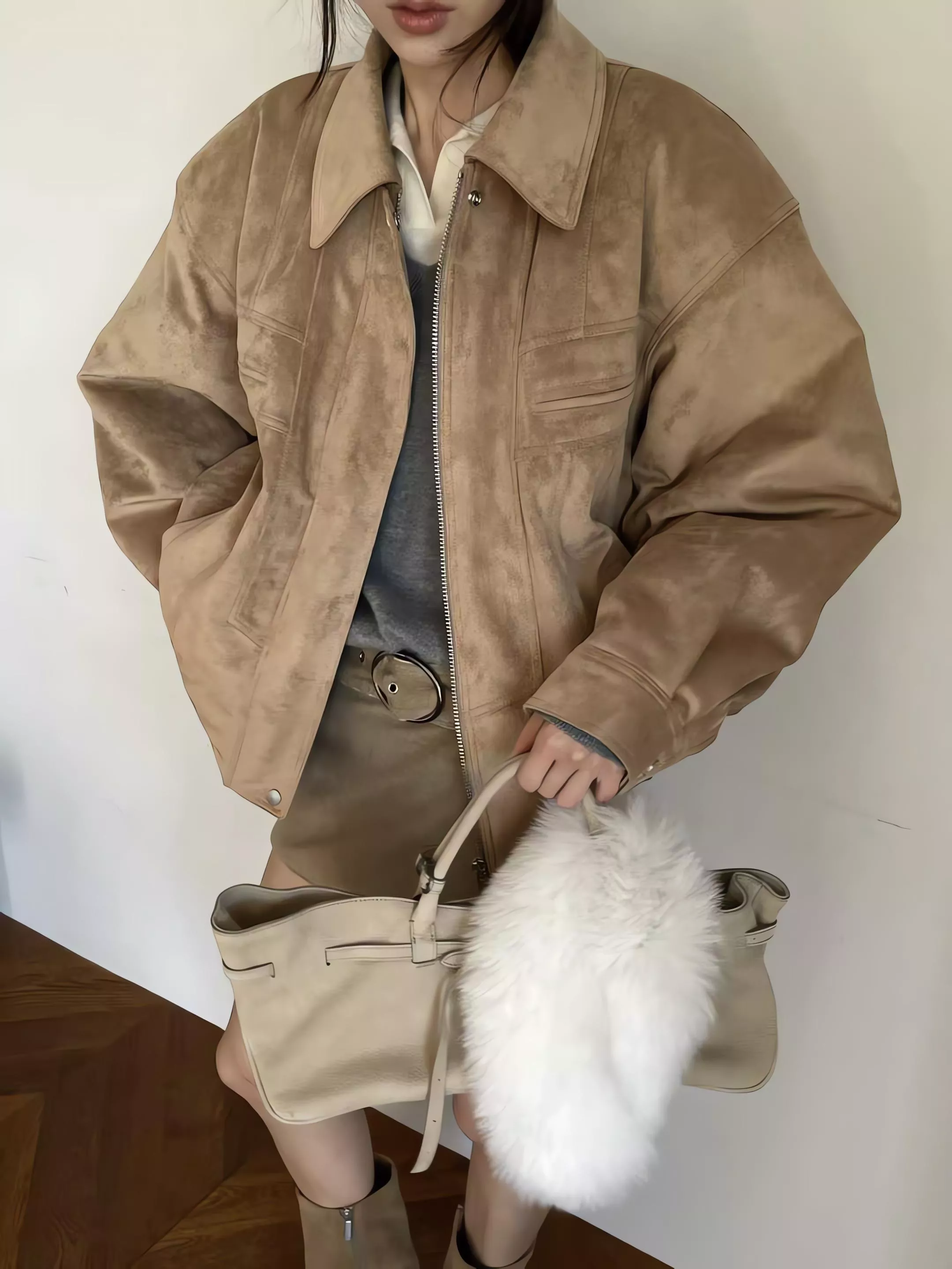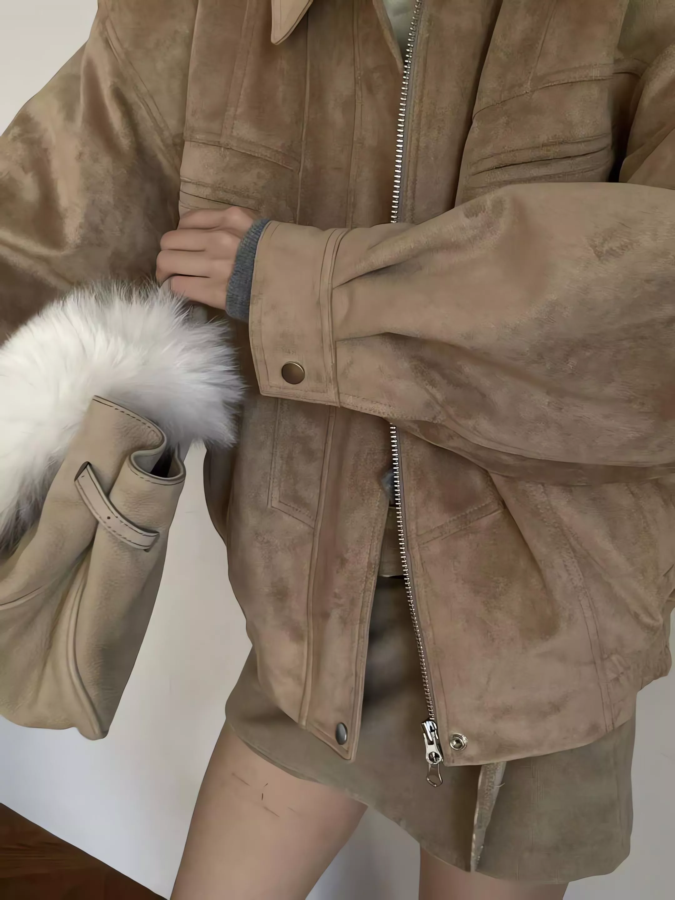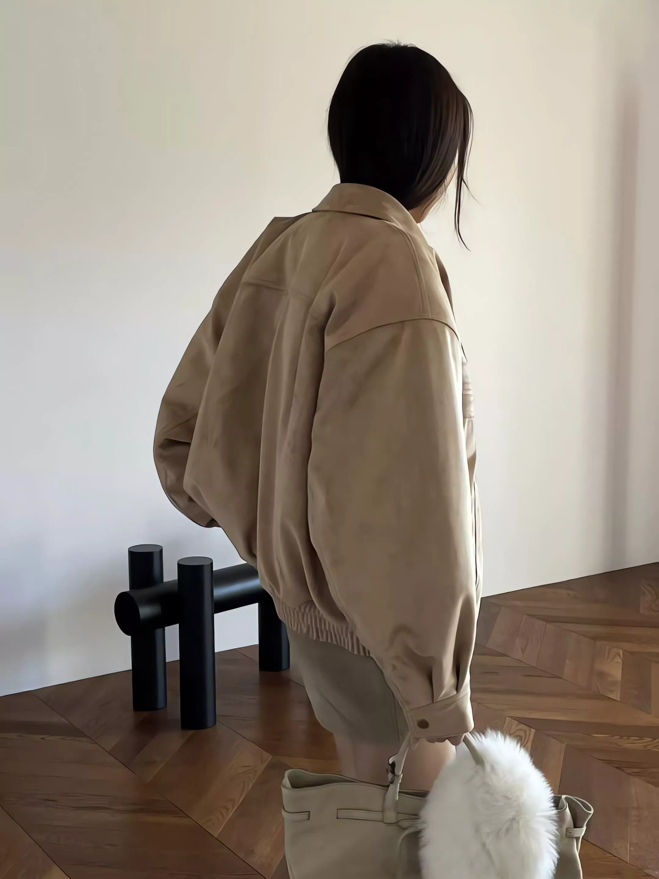 Tom GIrl 霧面麂皮感 立領鋪棉拉鍊夾克外套