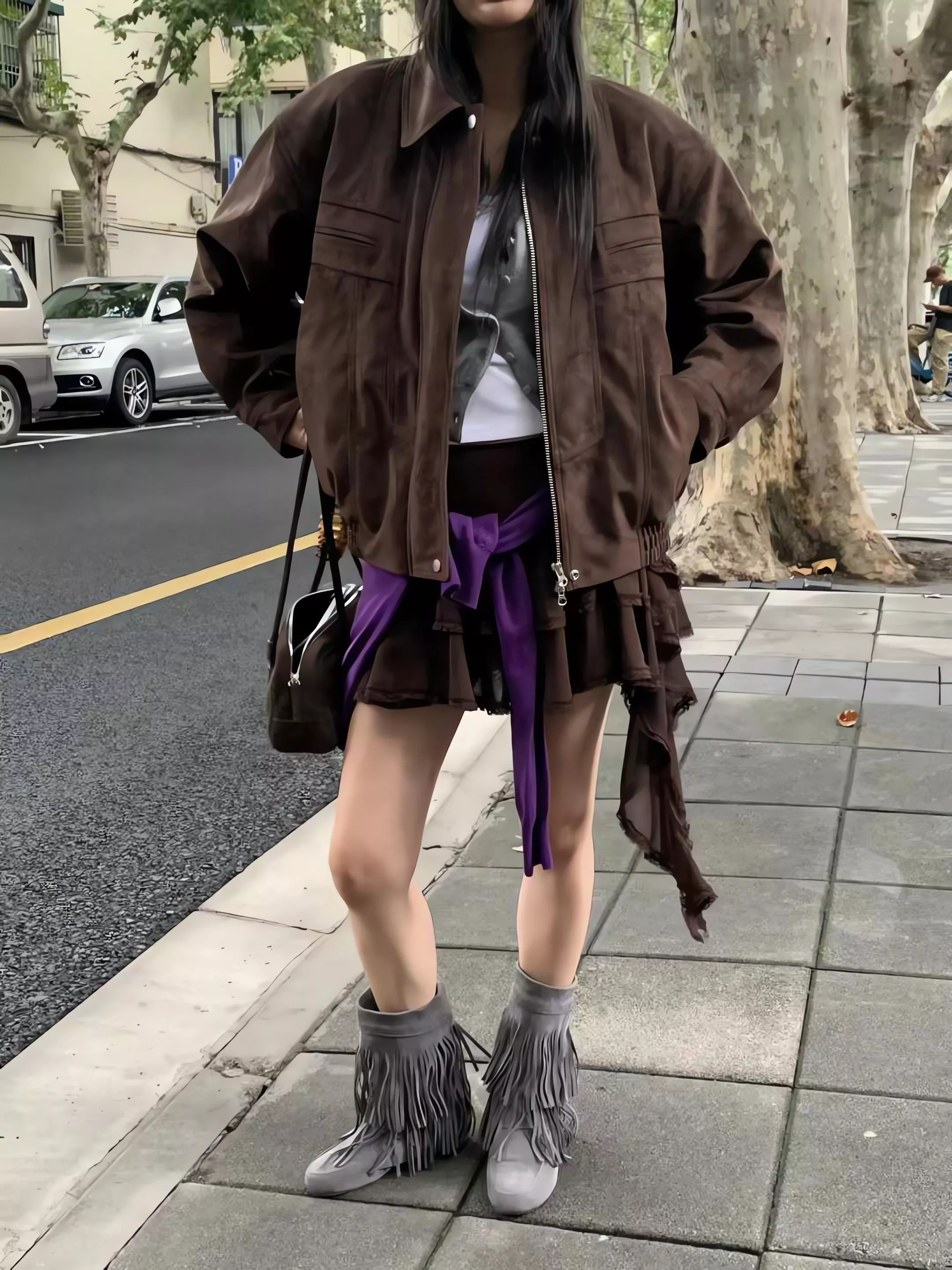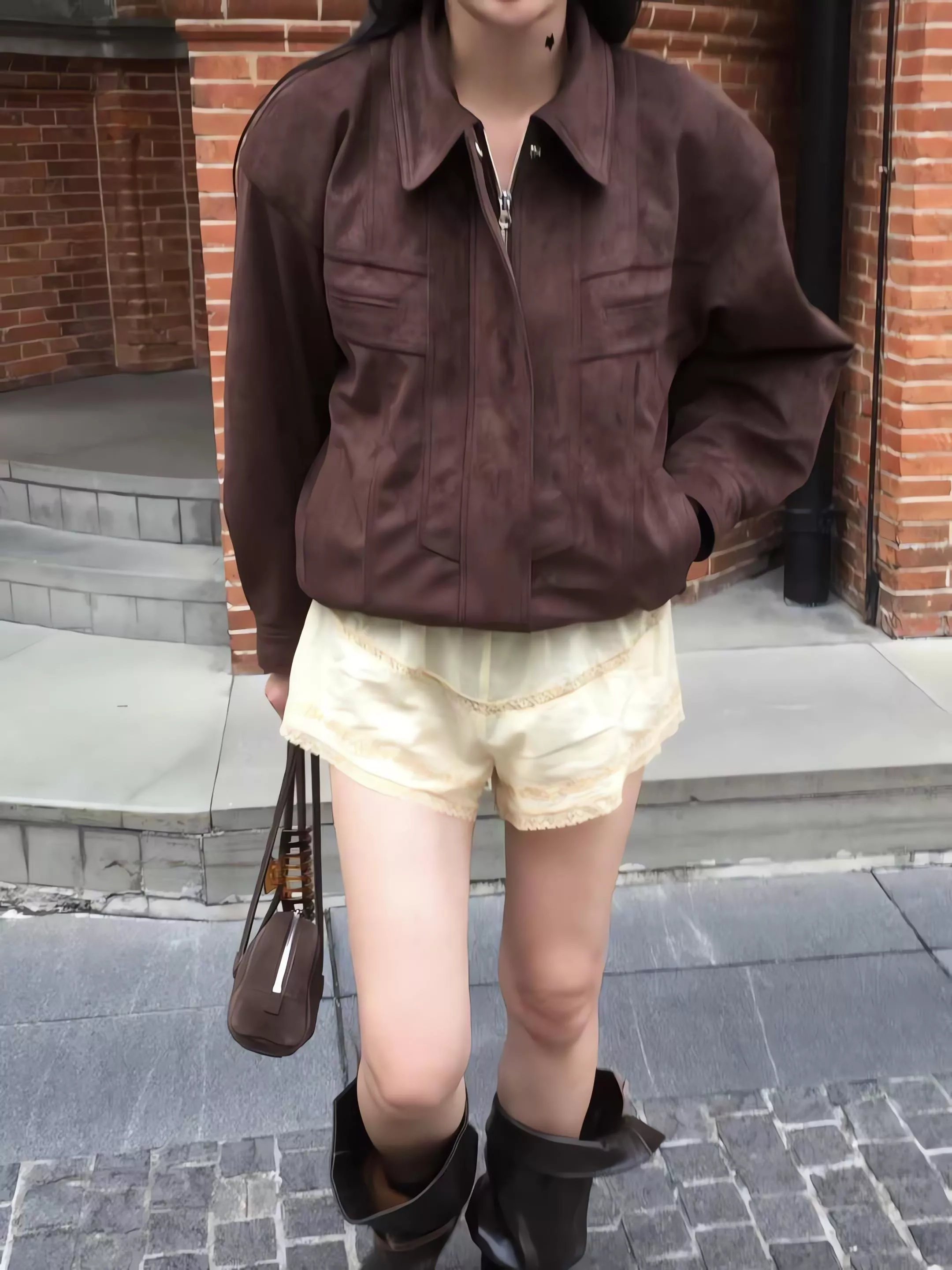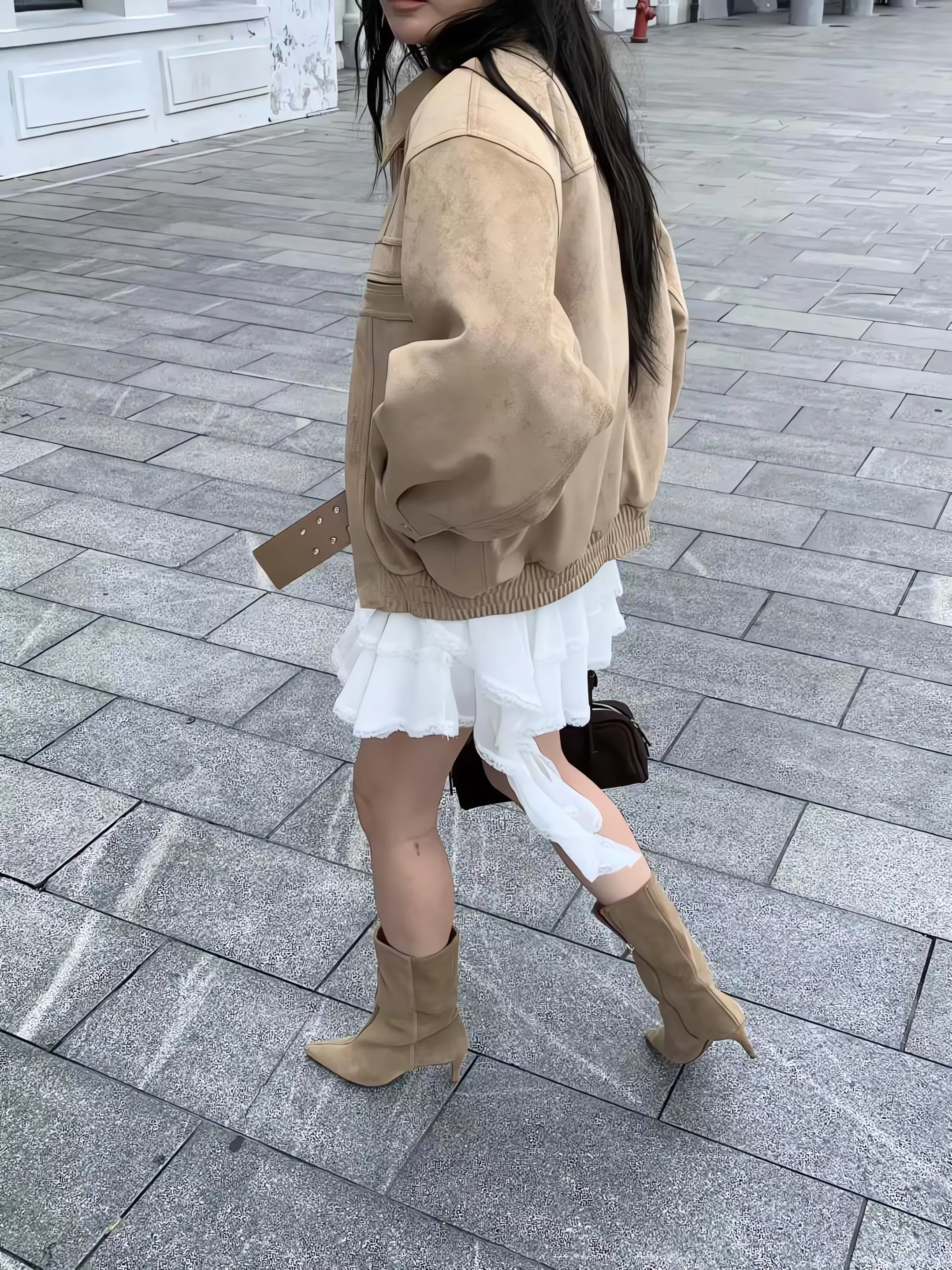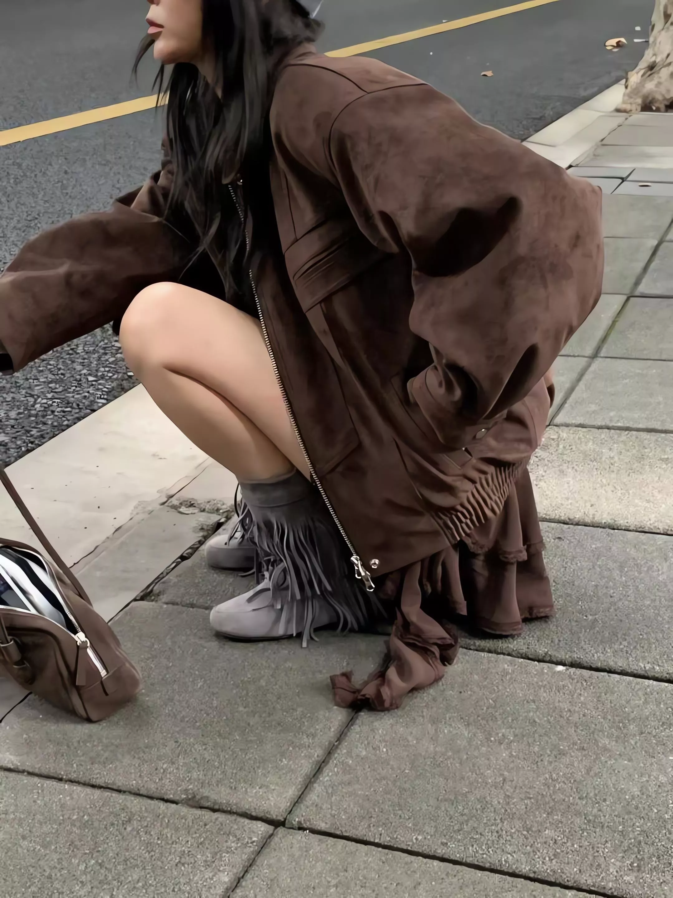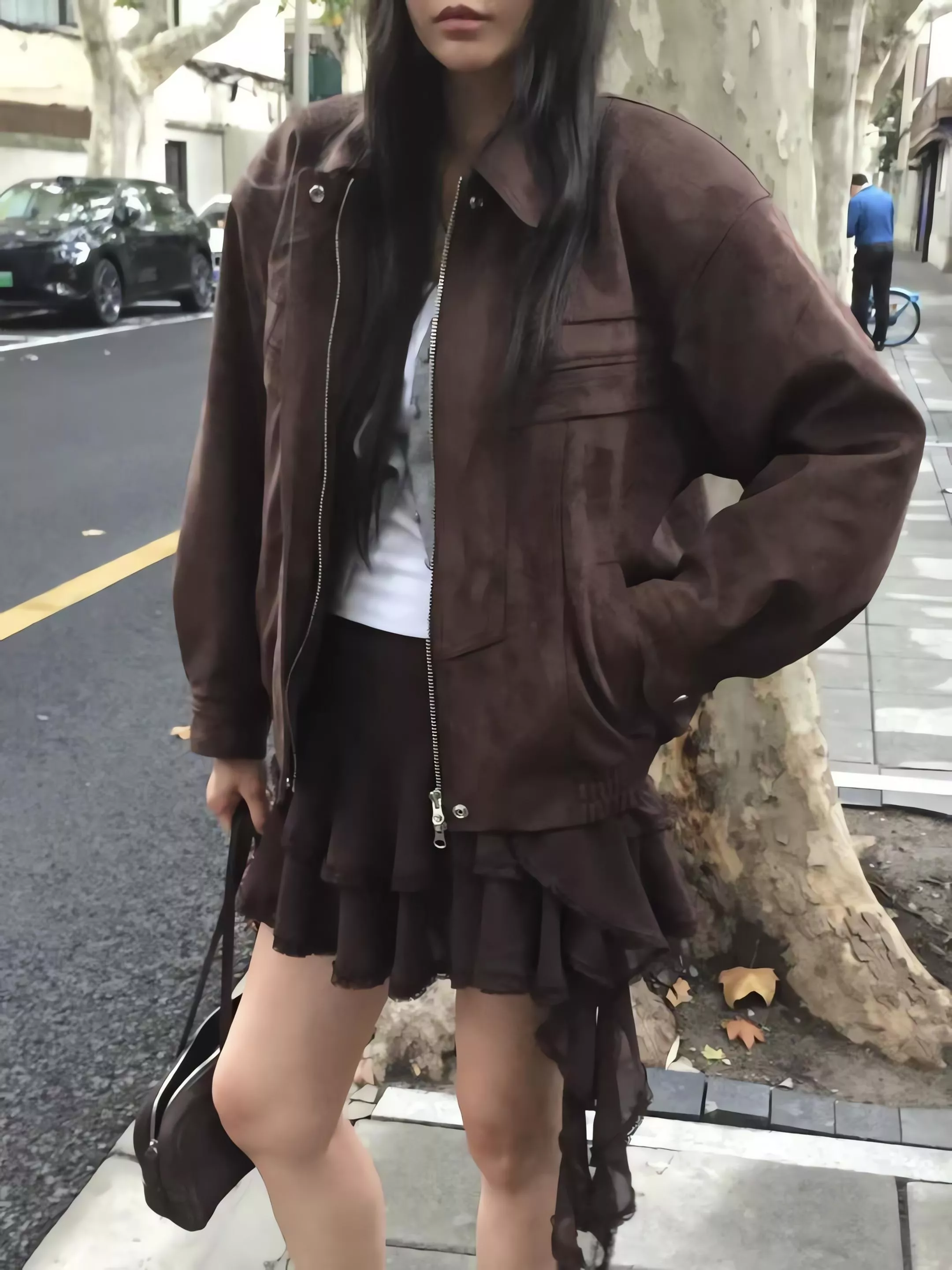 Tom GIrl 霧面麂皮感 立領鋪棉拉鍊夾克外套