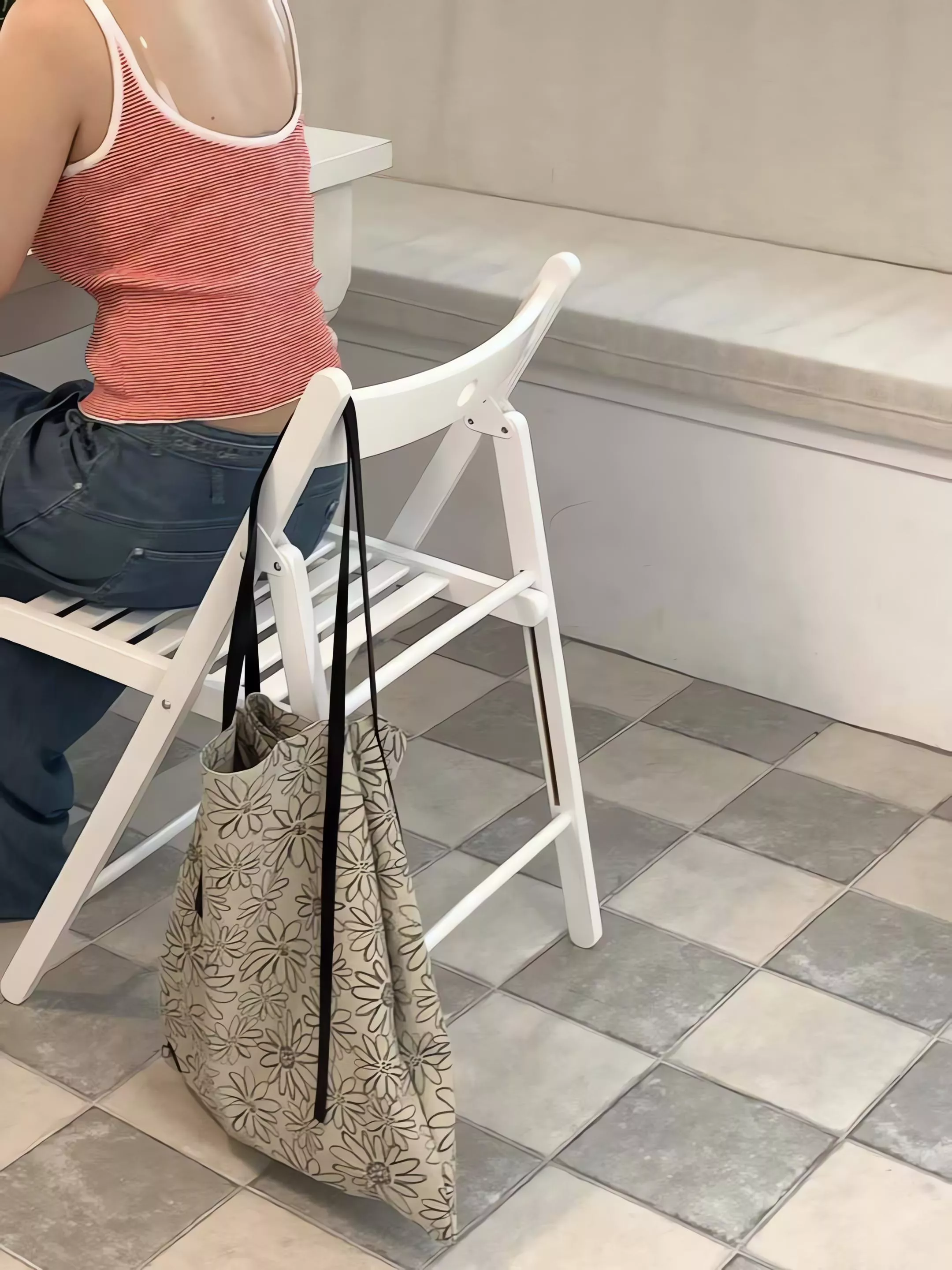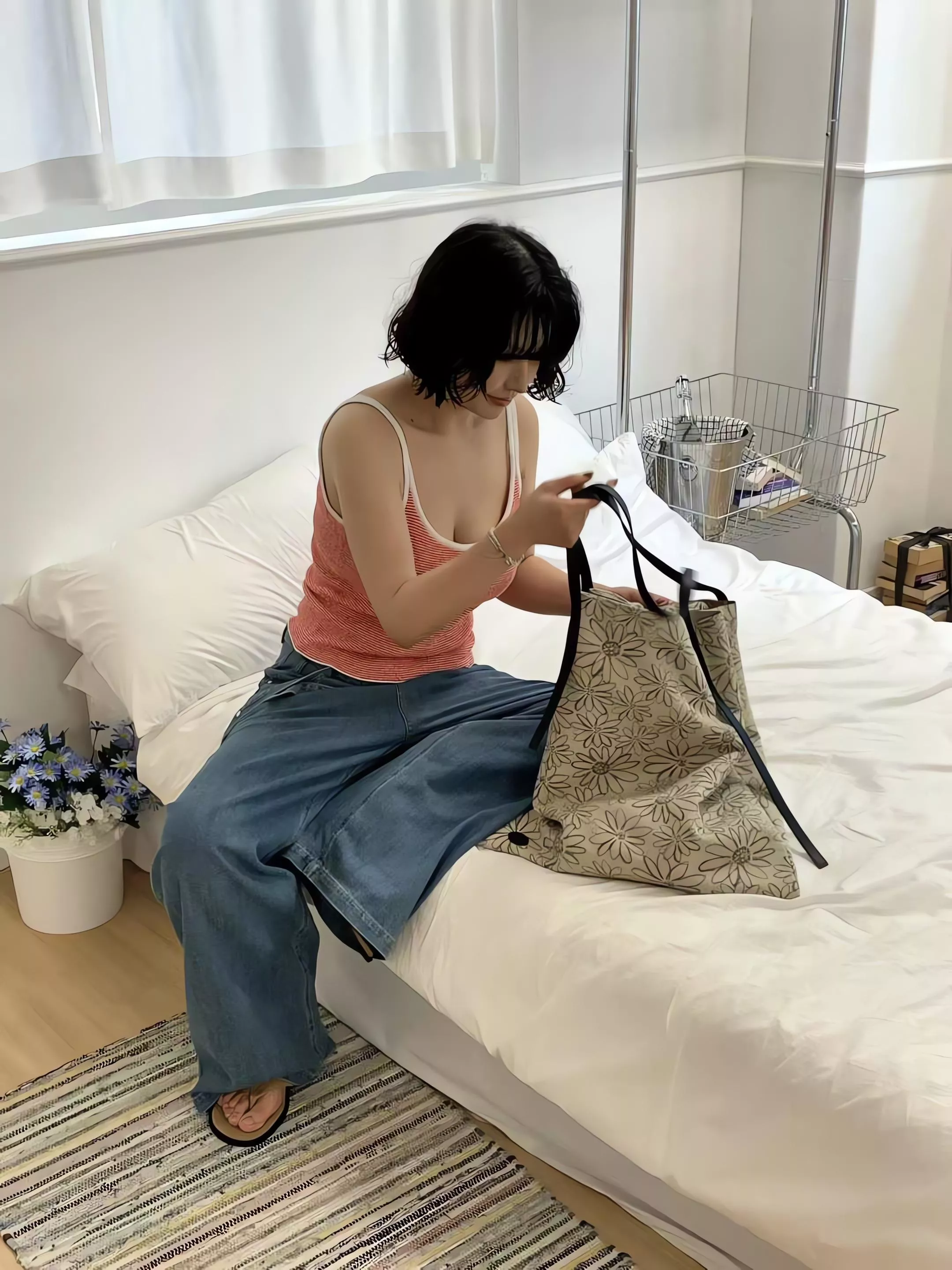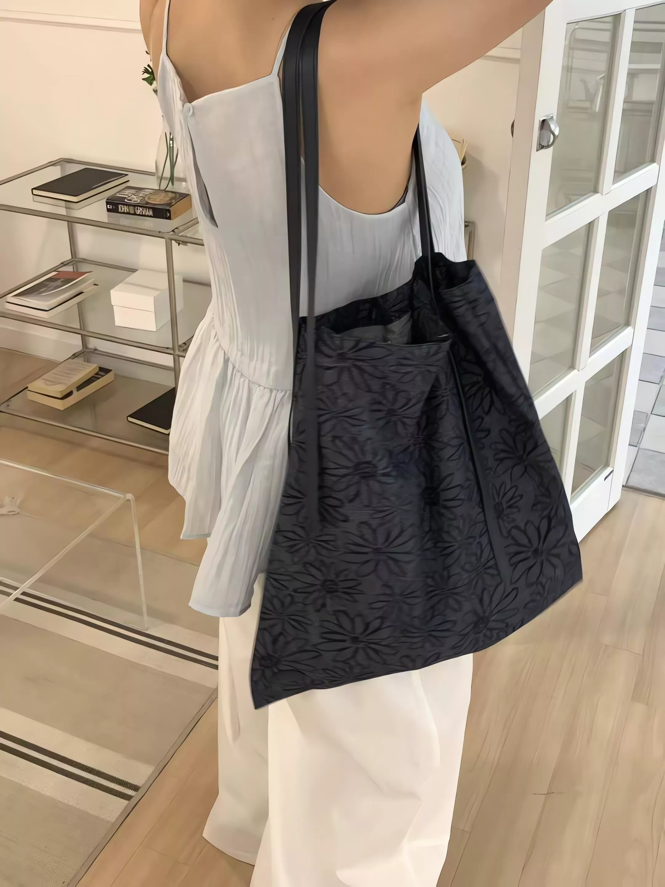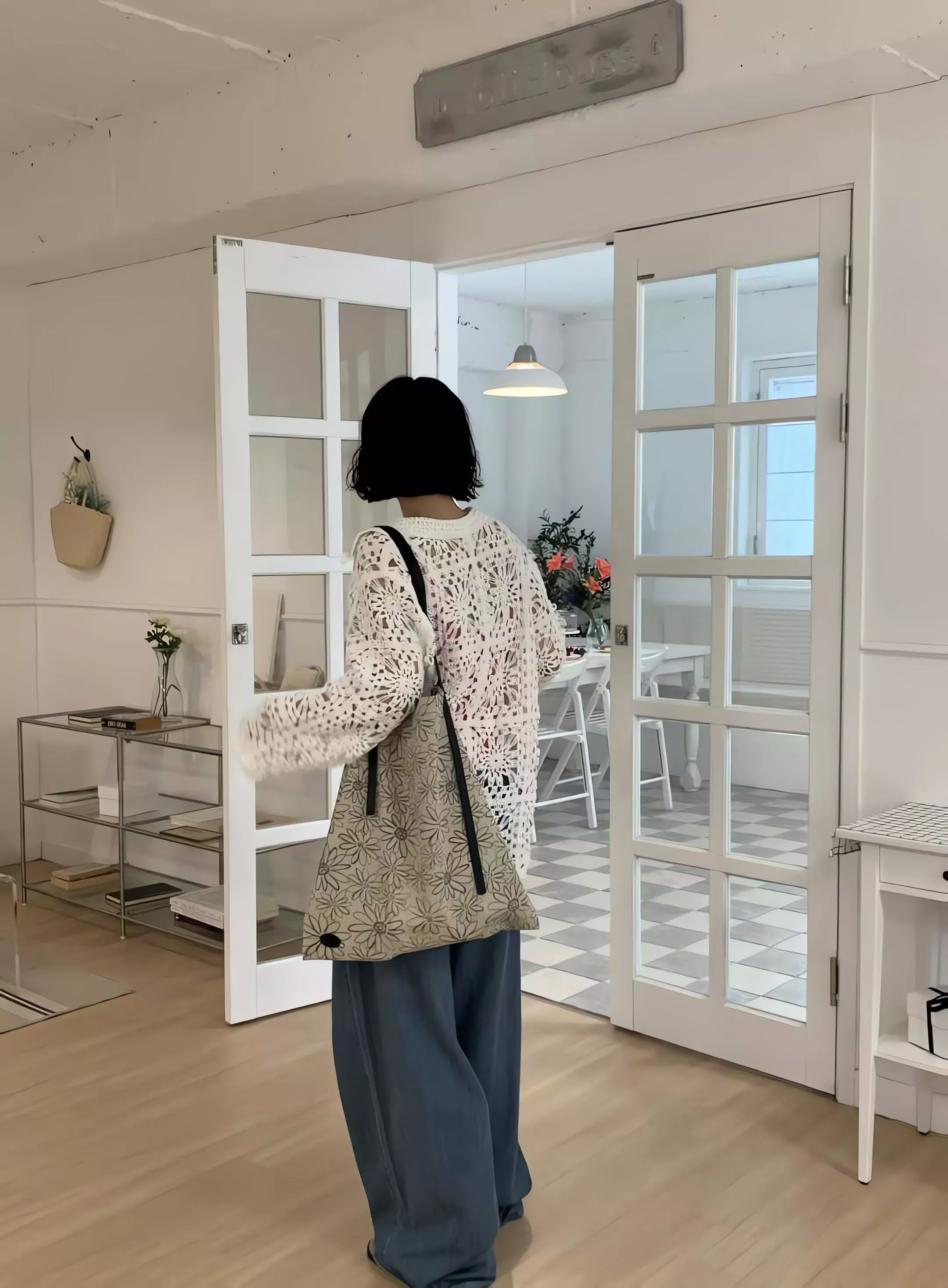 韓國製 繪本感棉布花朵不對稱背帶托特帆布包