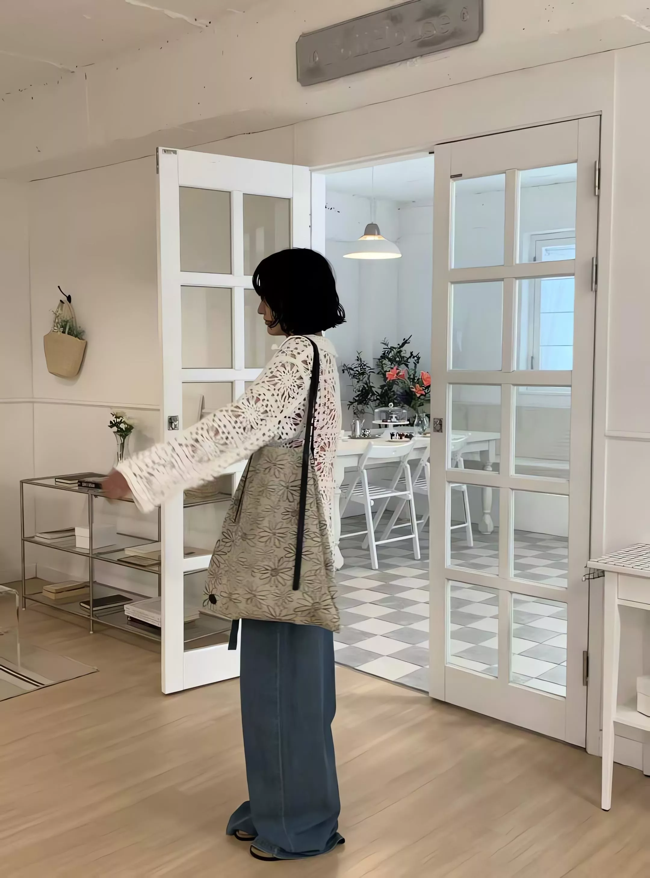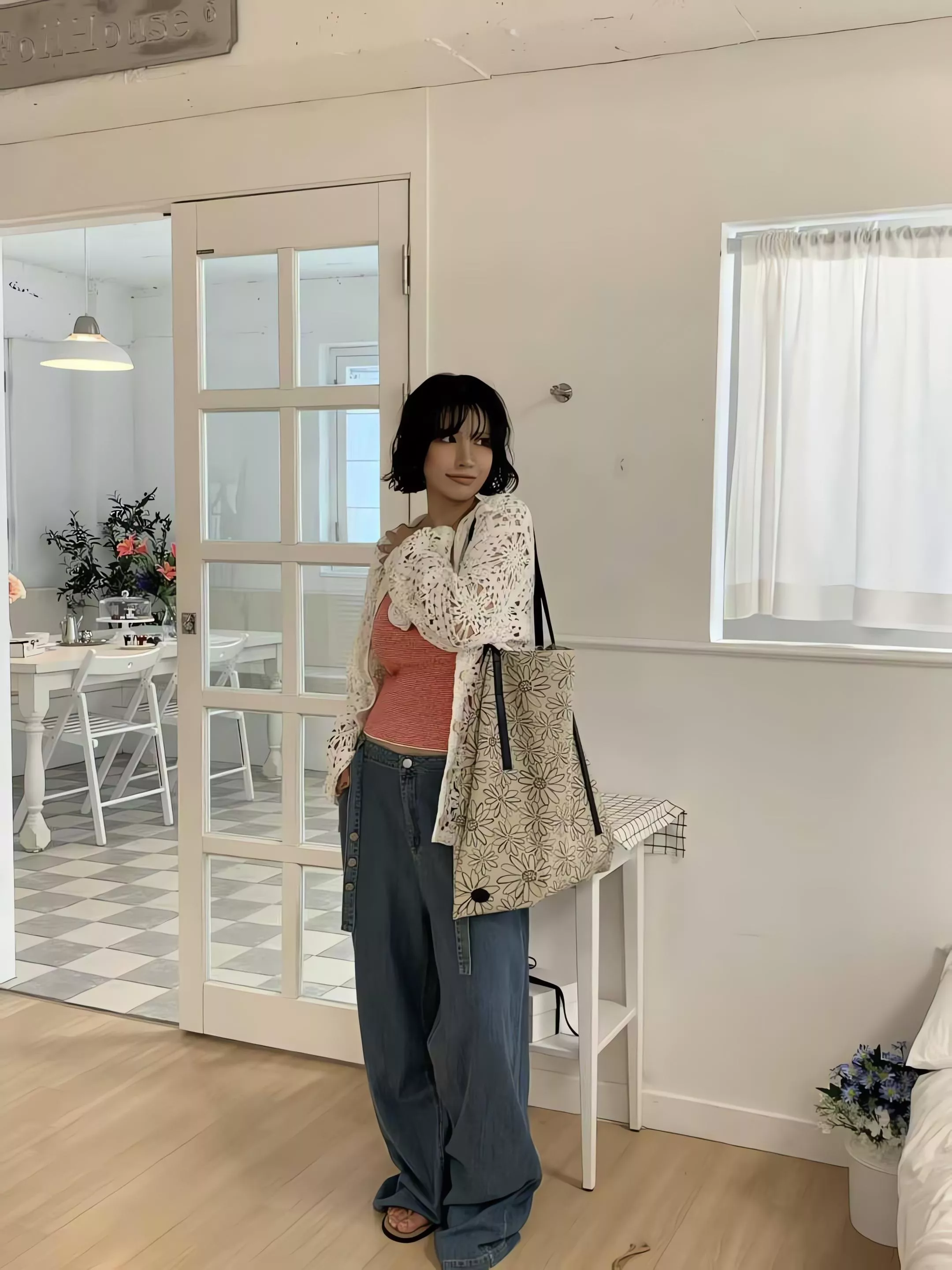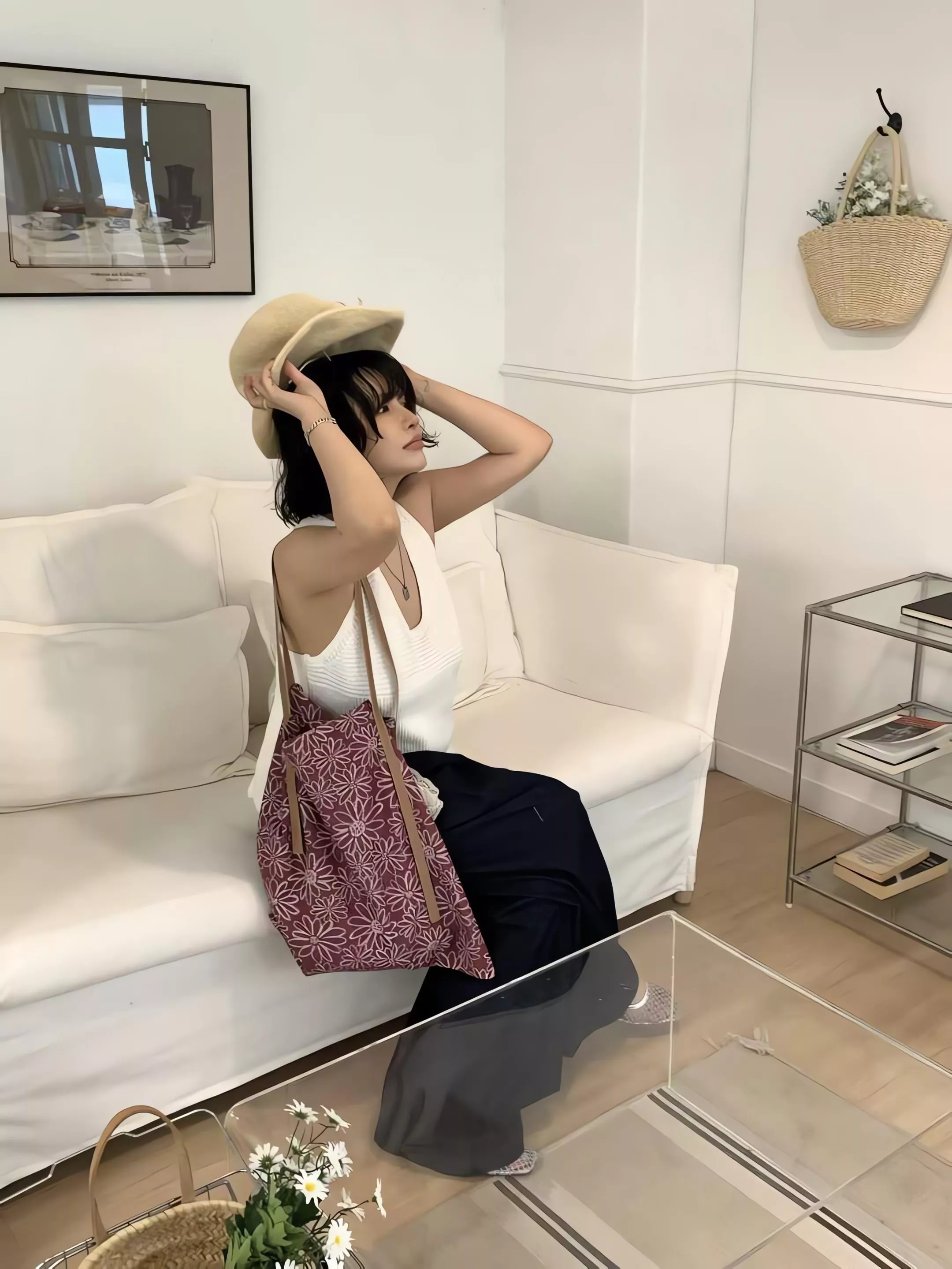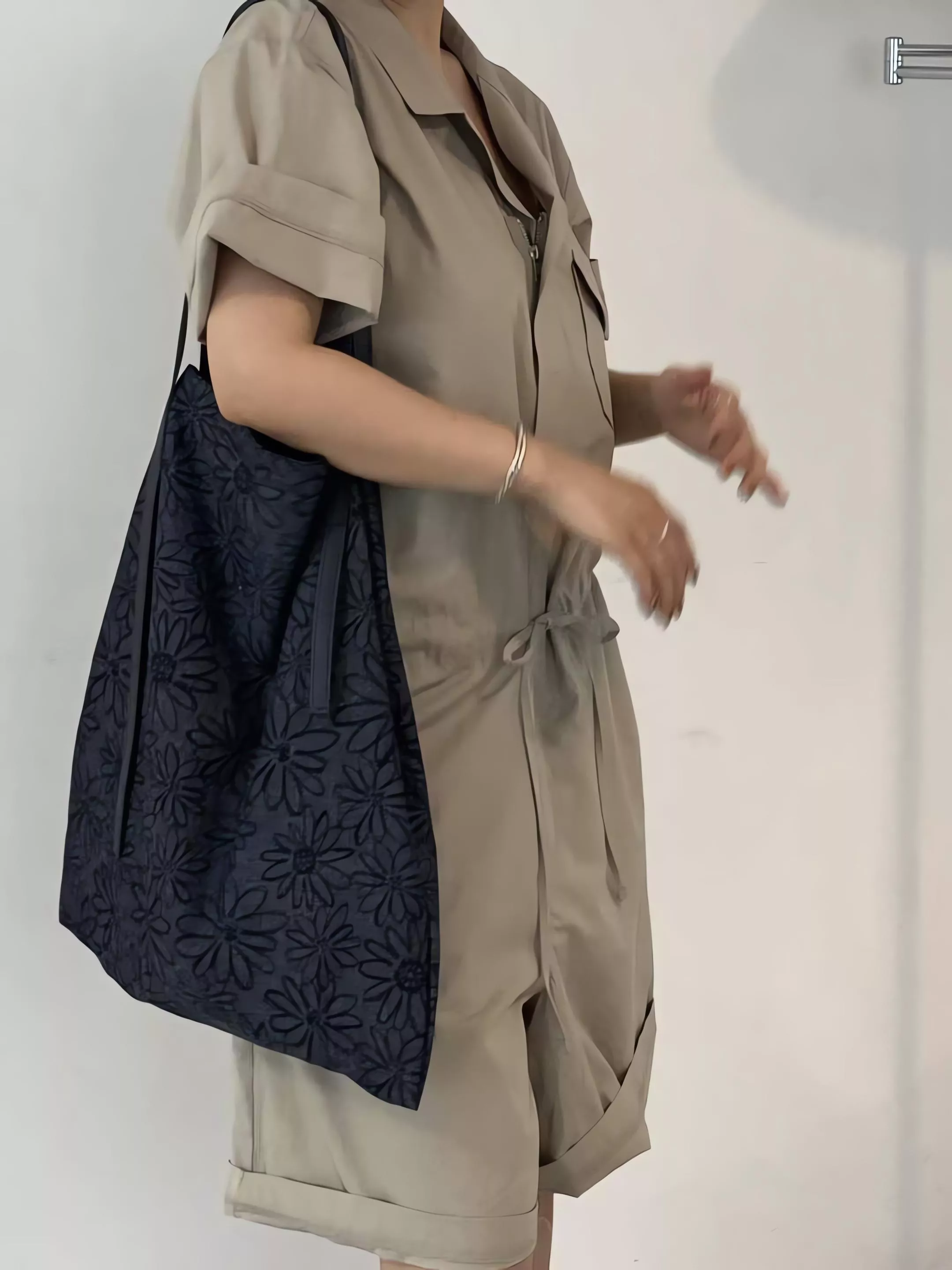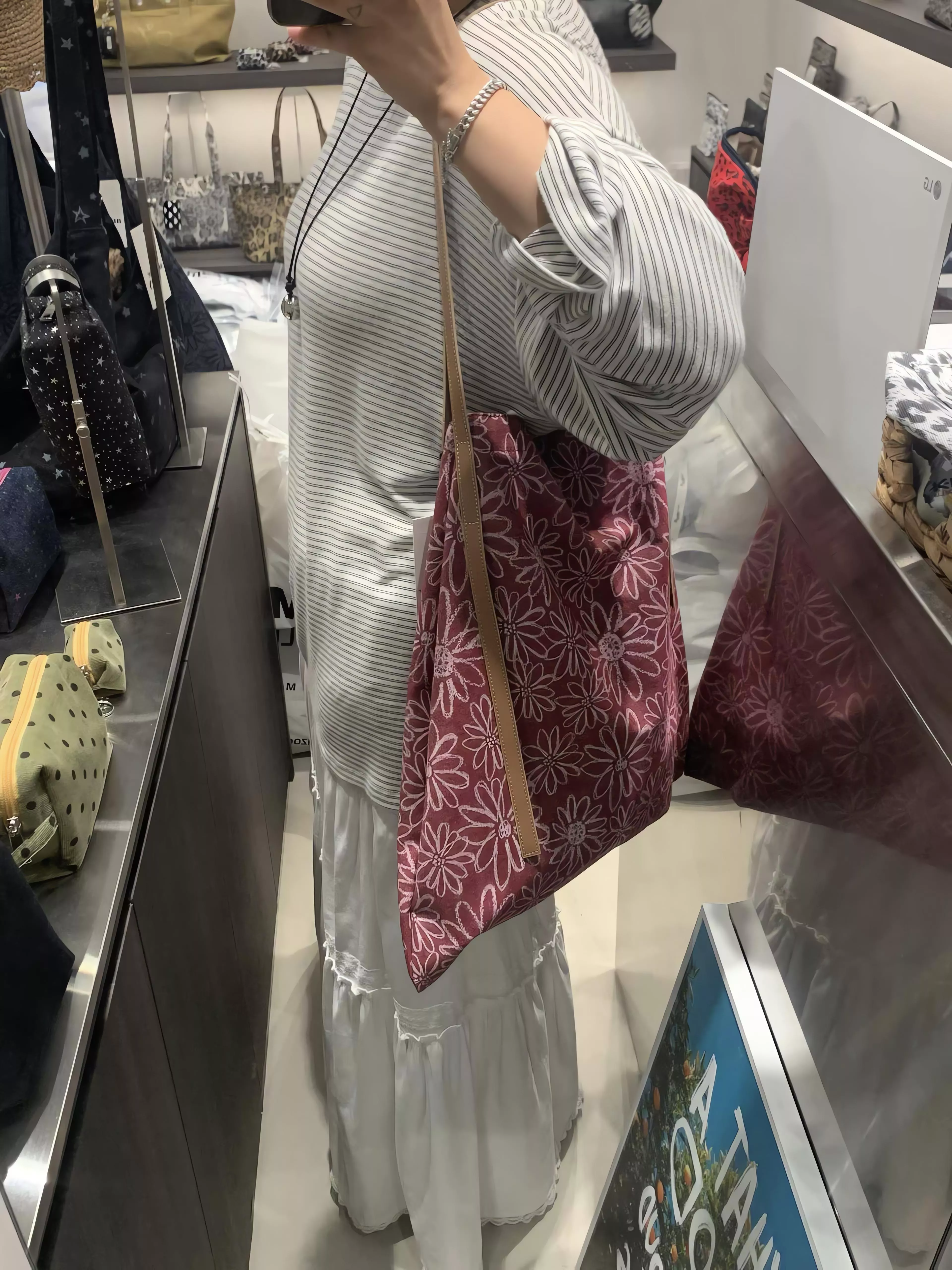韓國製 繪本感棉布花朵不對稱背帶托特帆布包