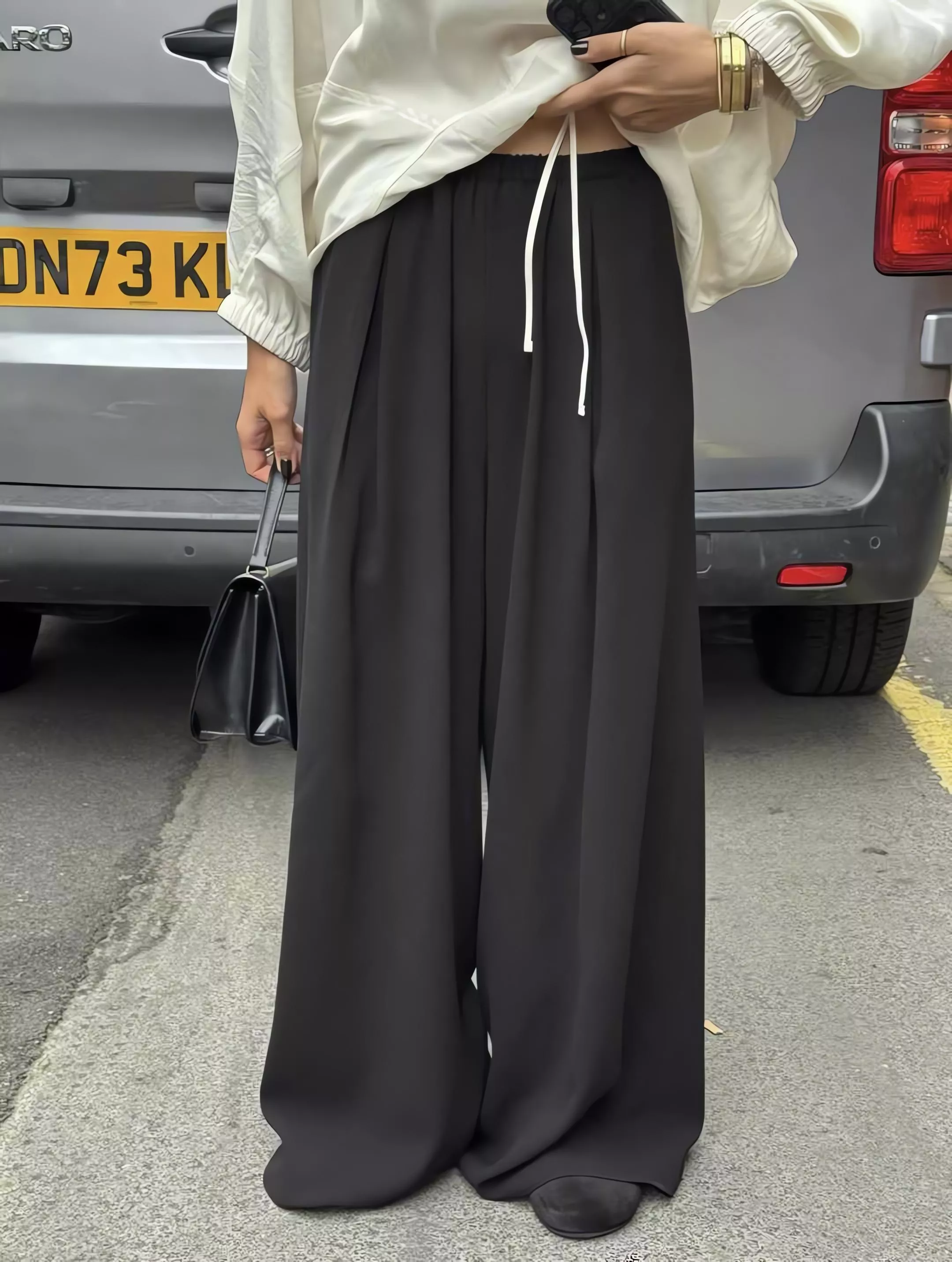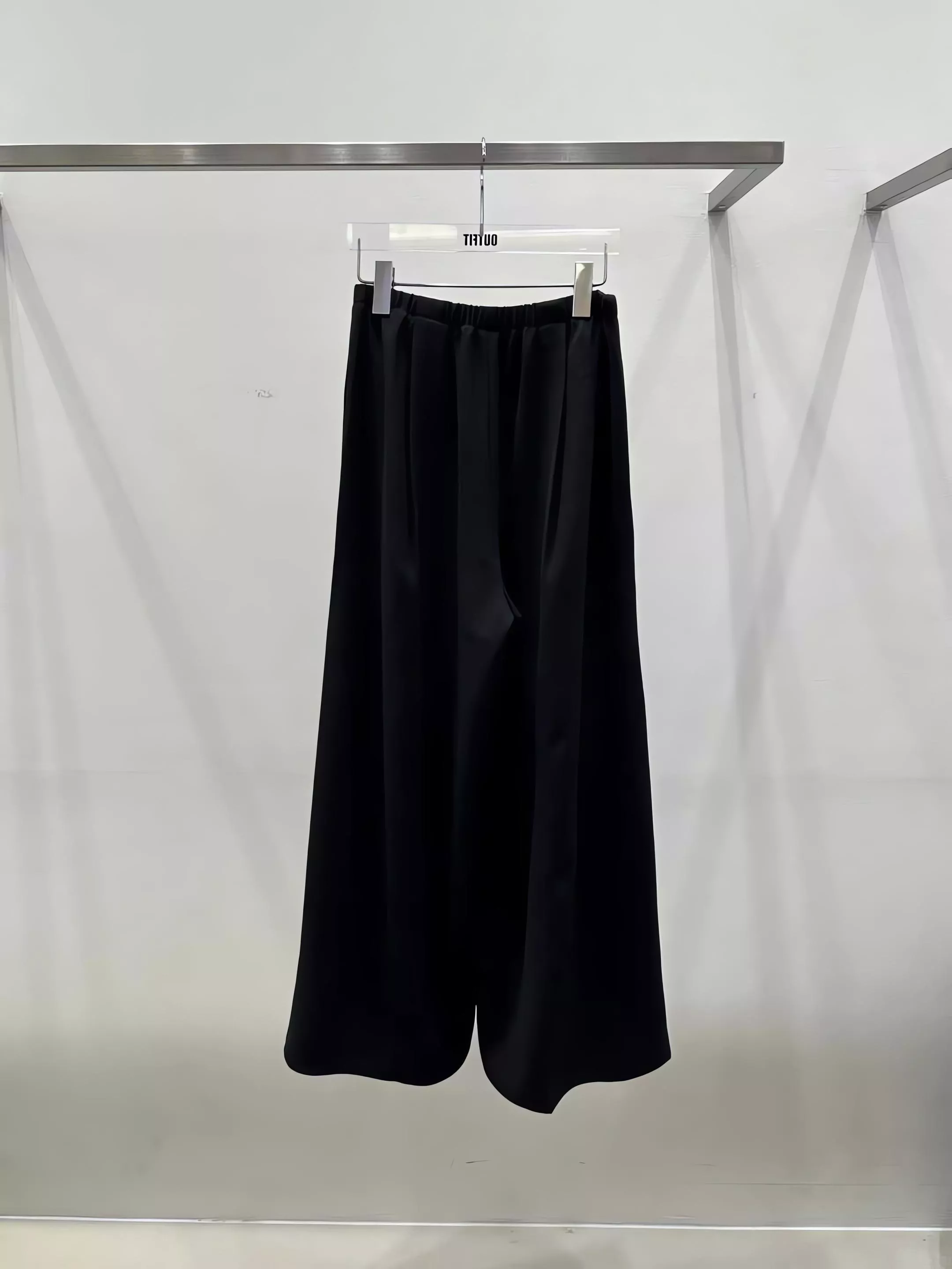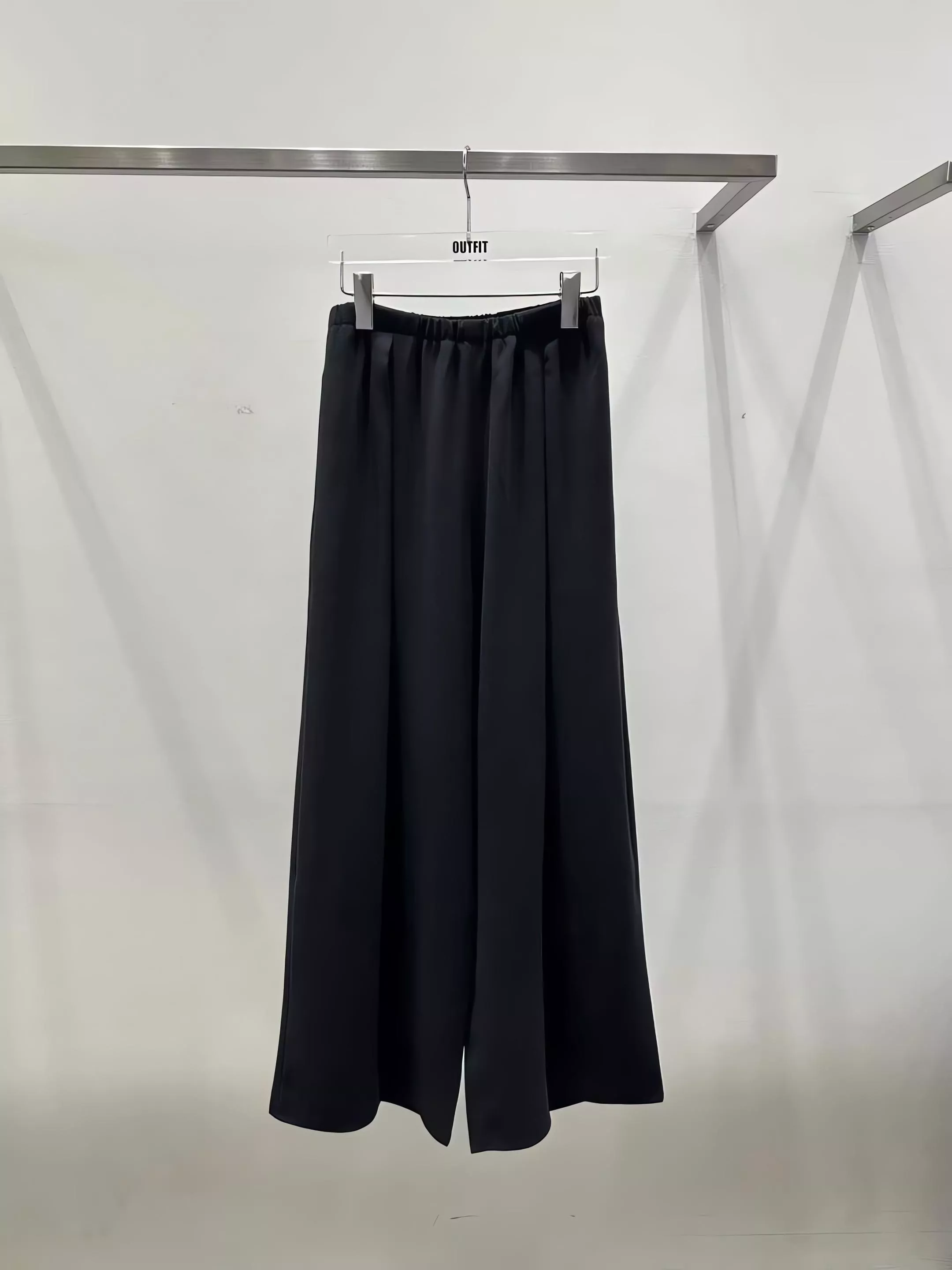 Outfit 黑色垂墜感鬆緊腰寬褲休閒褲