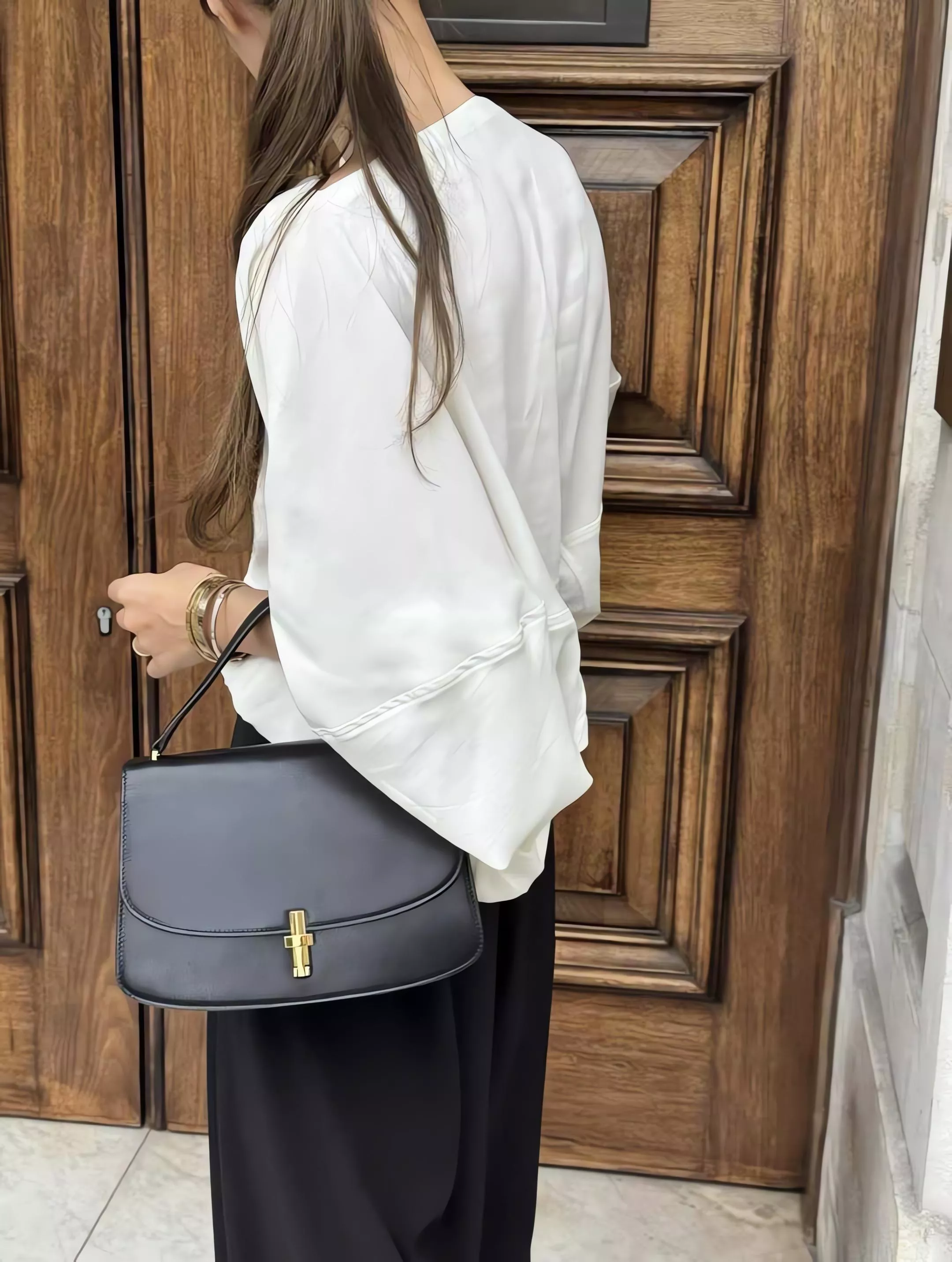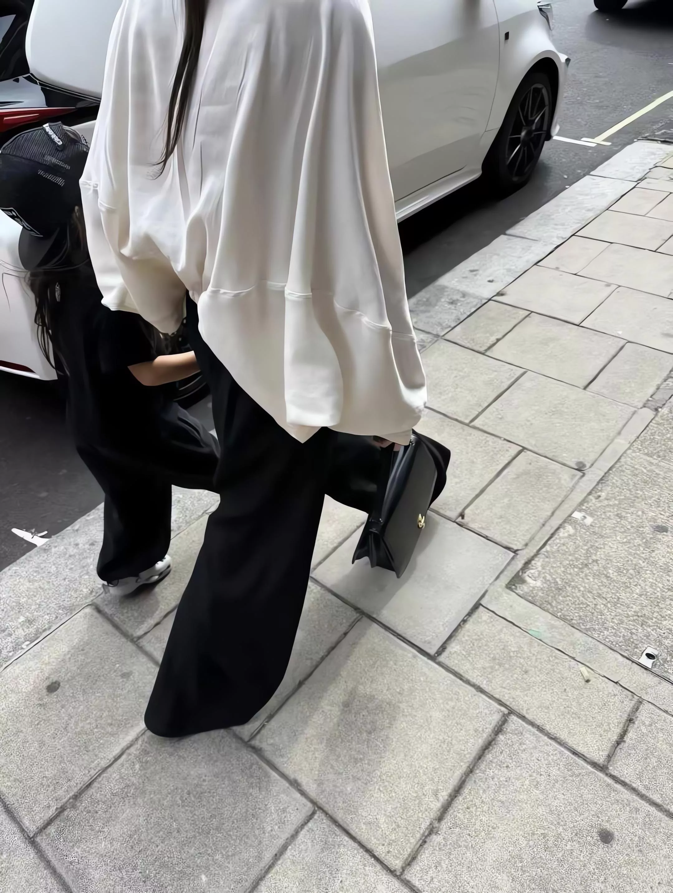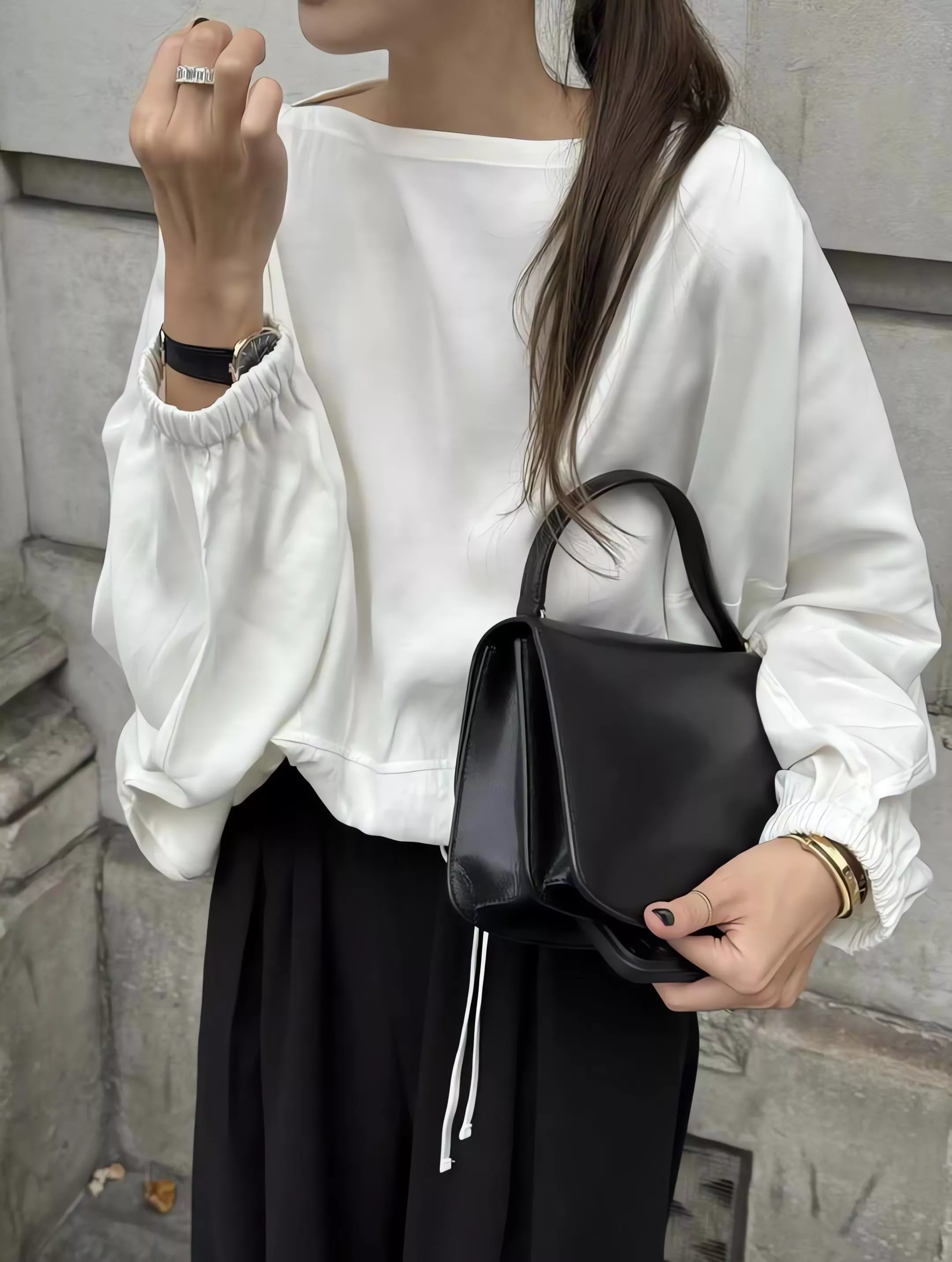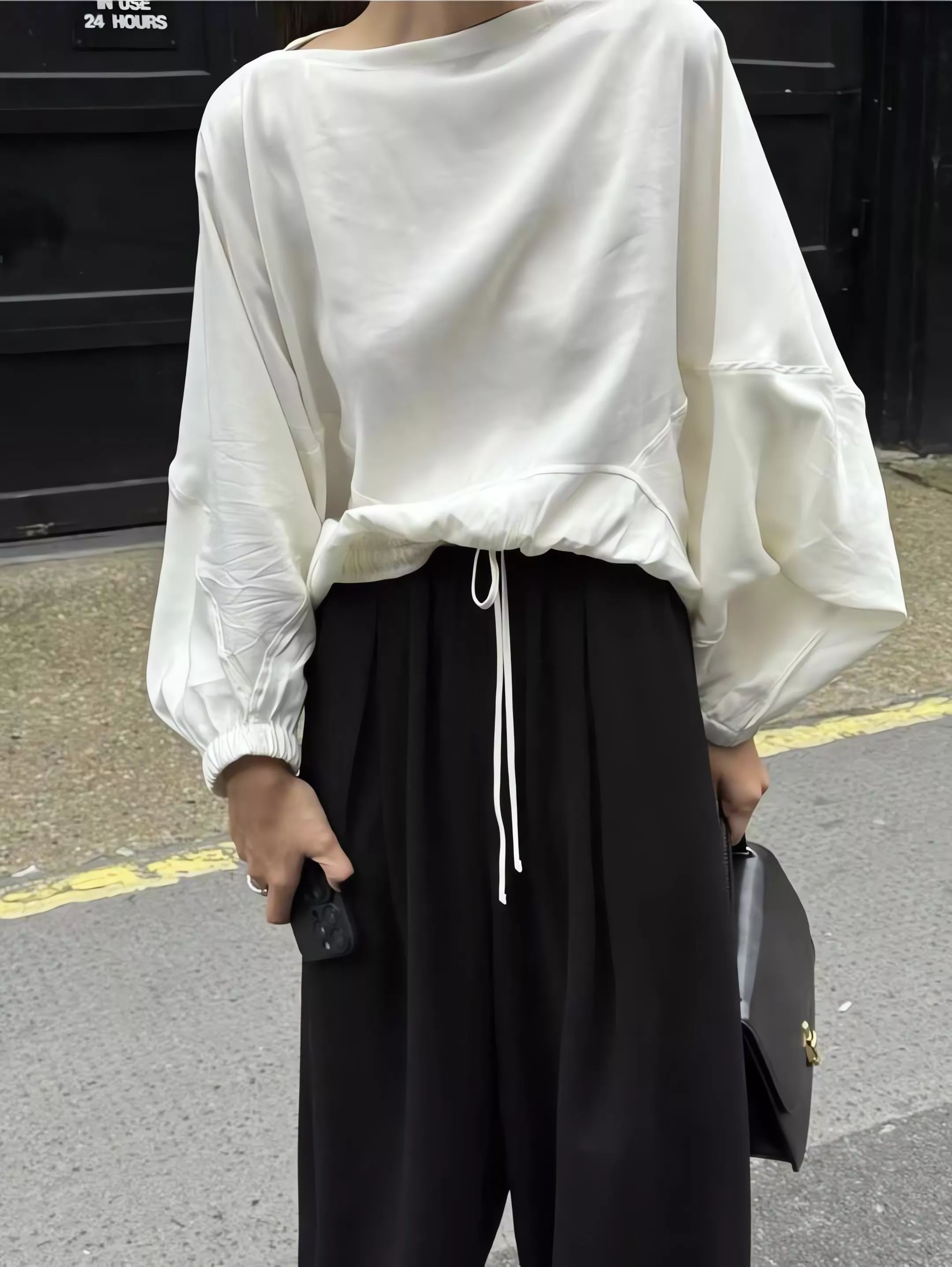 Outfit 黑色垂墜感鬆緊腰寬褲休閒褲