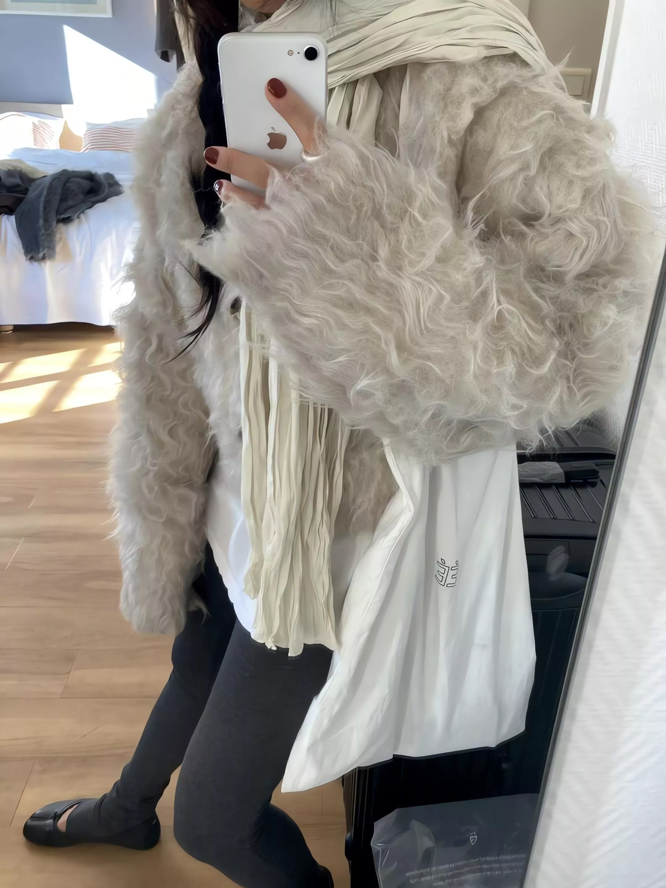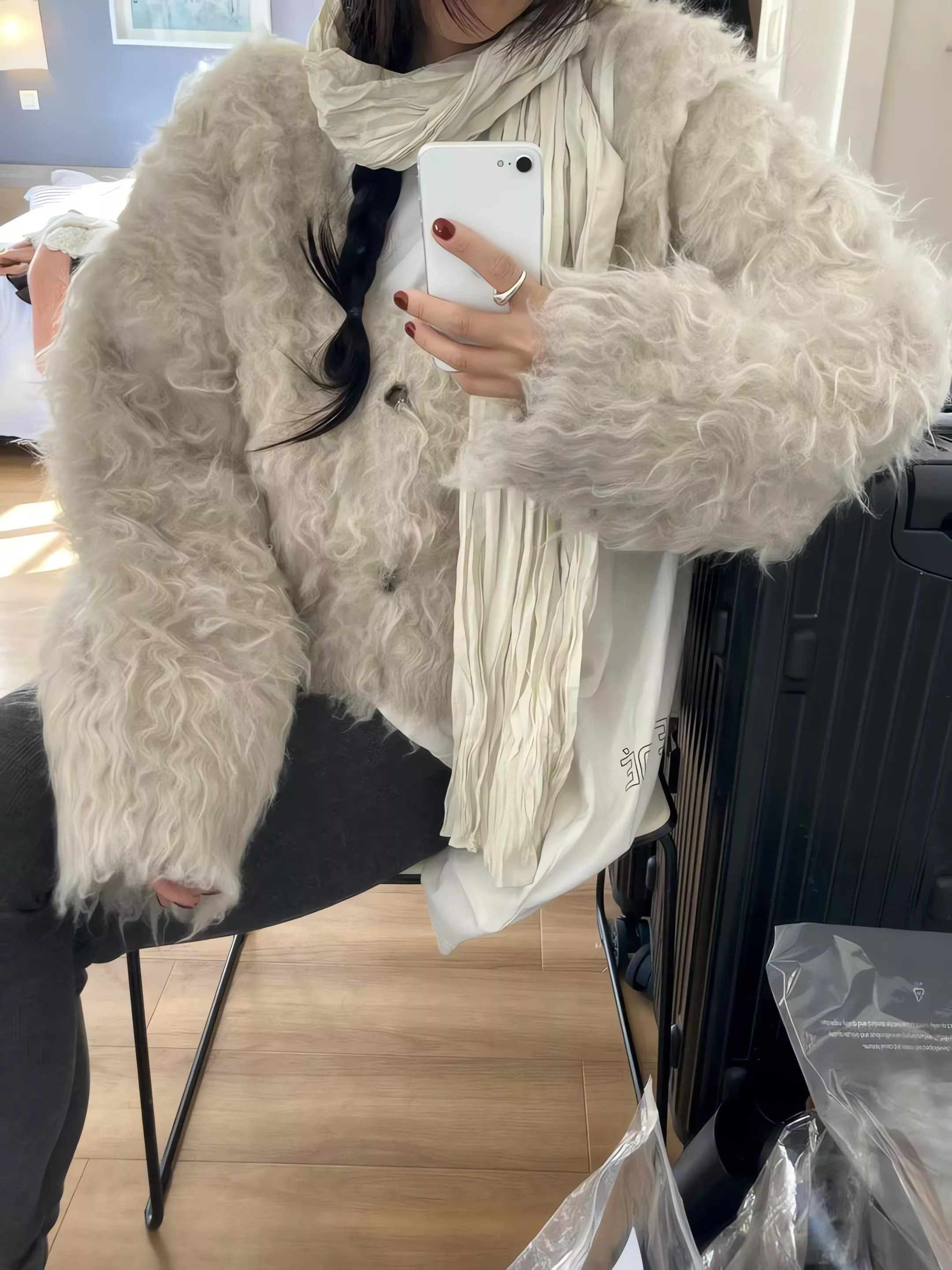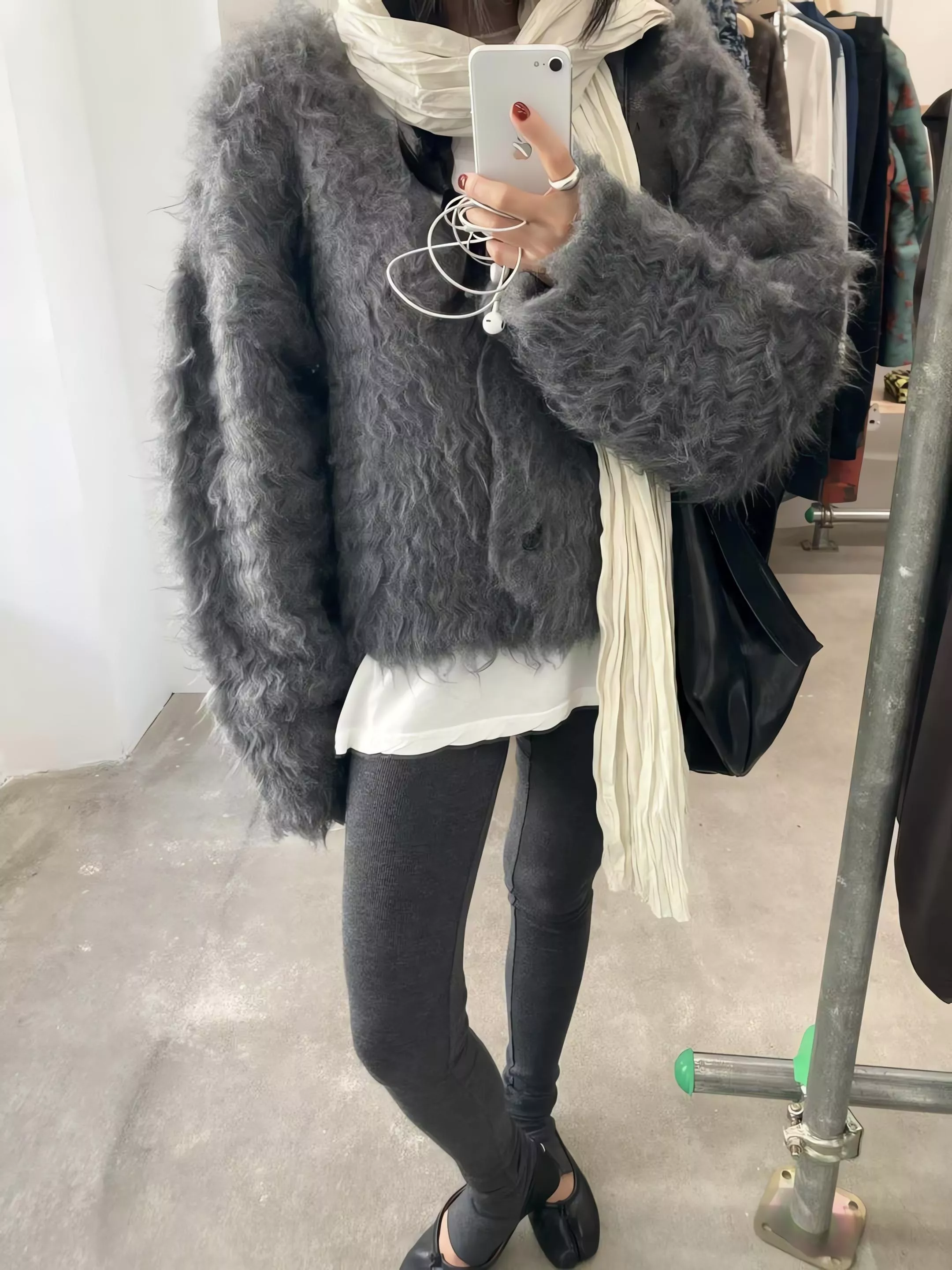以柔軟毛線結合特殊刷毛加工,織出豐富而細緻的毛感。