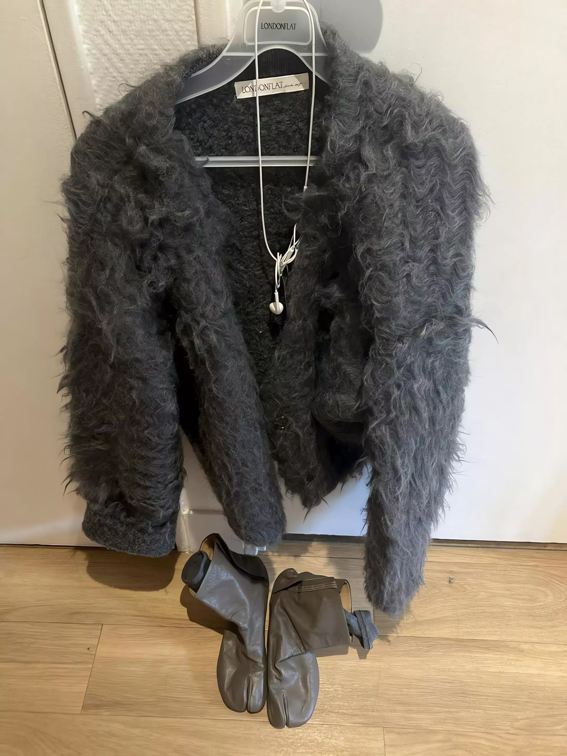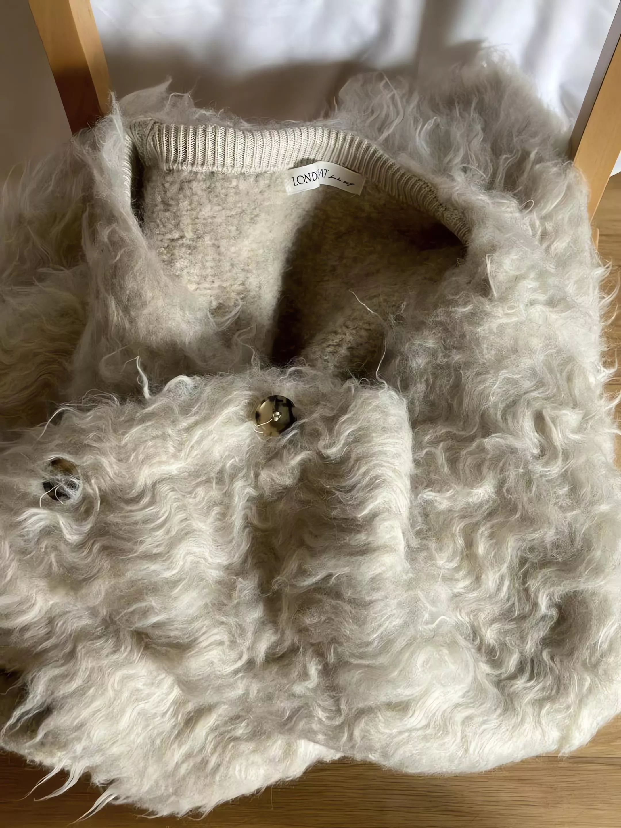 London Flat 刷毛V領 羊毛針織開衫 針織外套